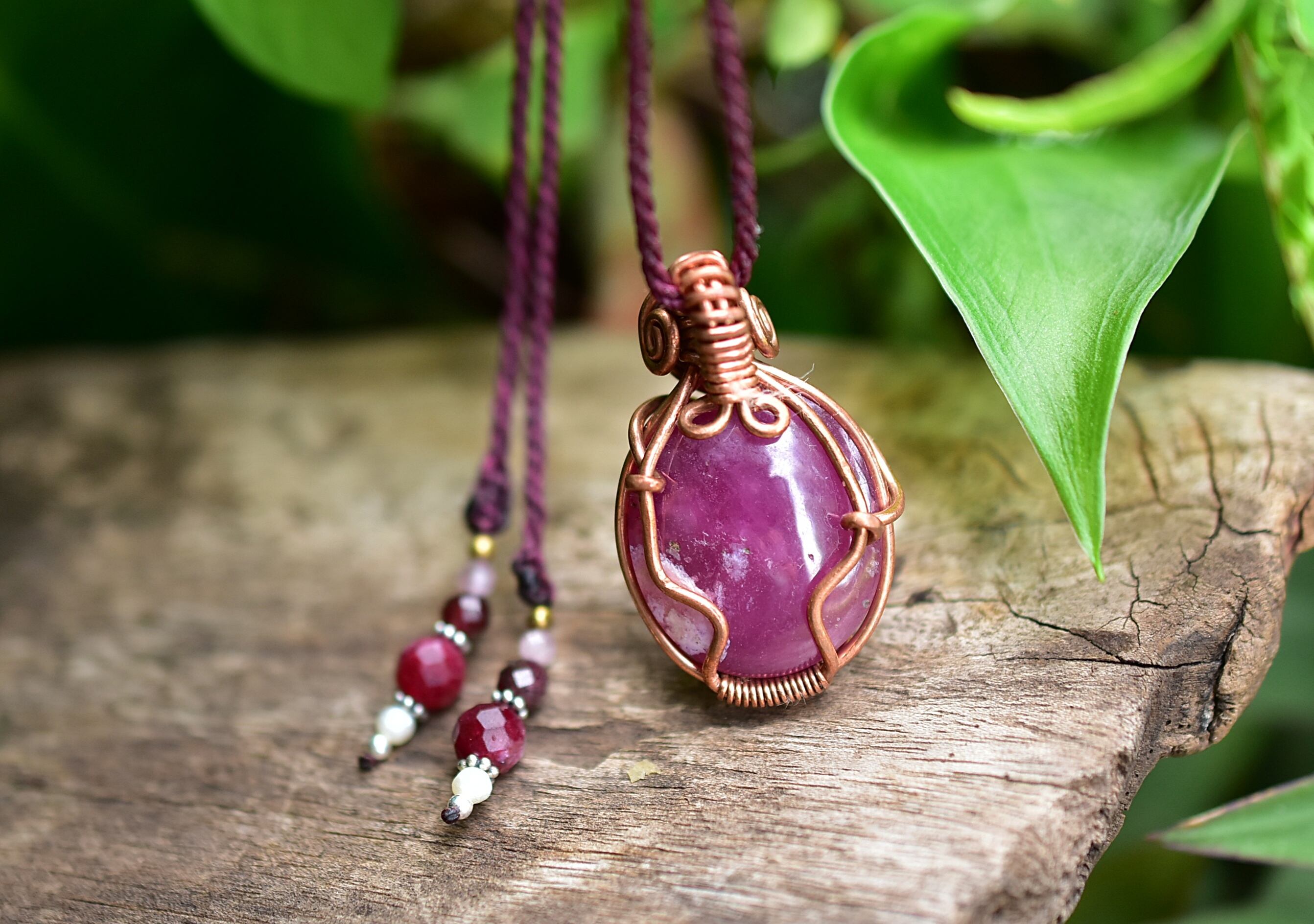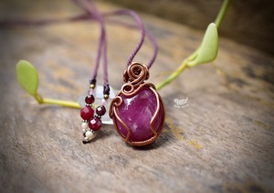 ピンクの実★wire wrapping★ローズルビーネックレス759
