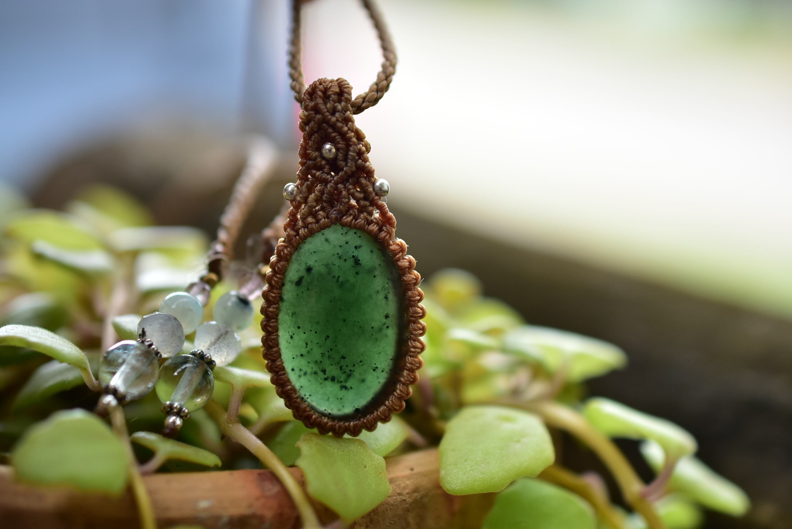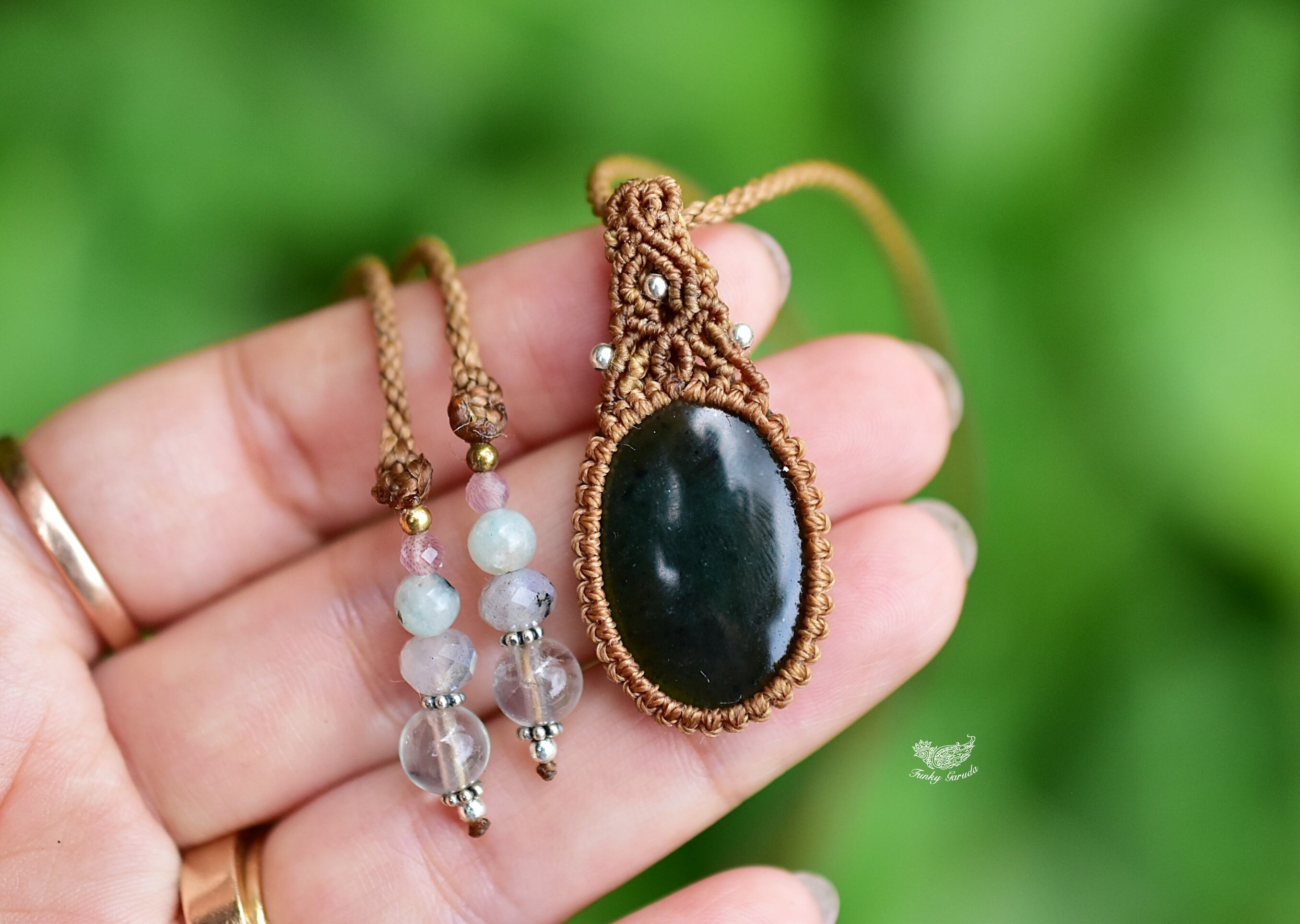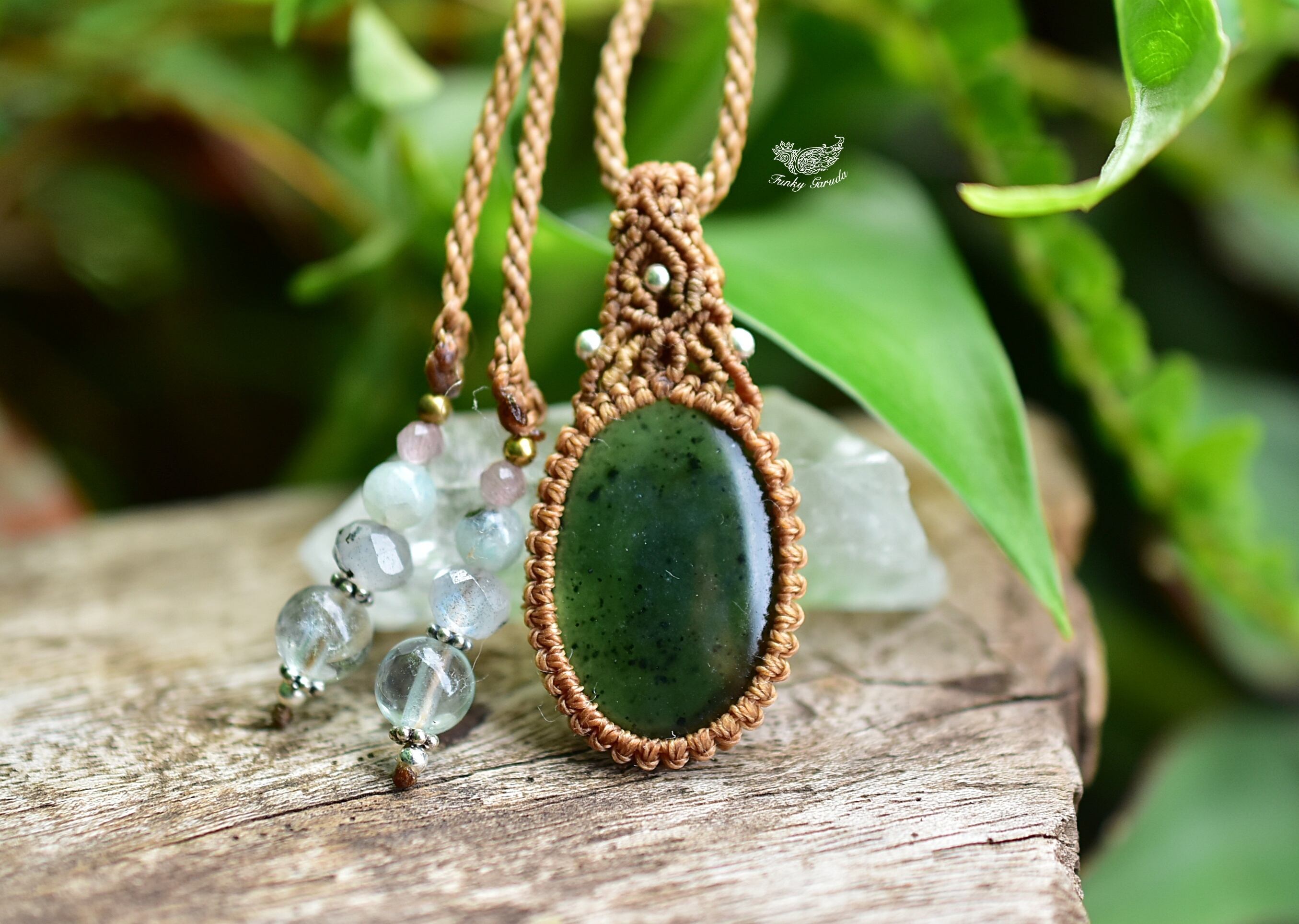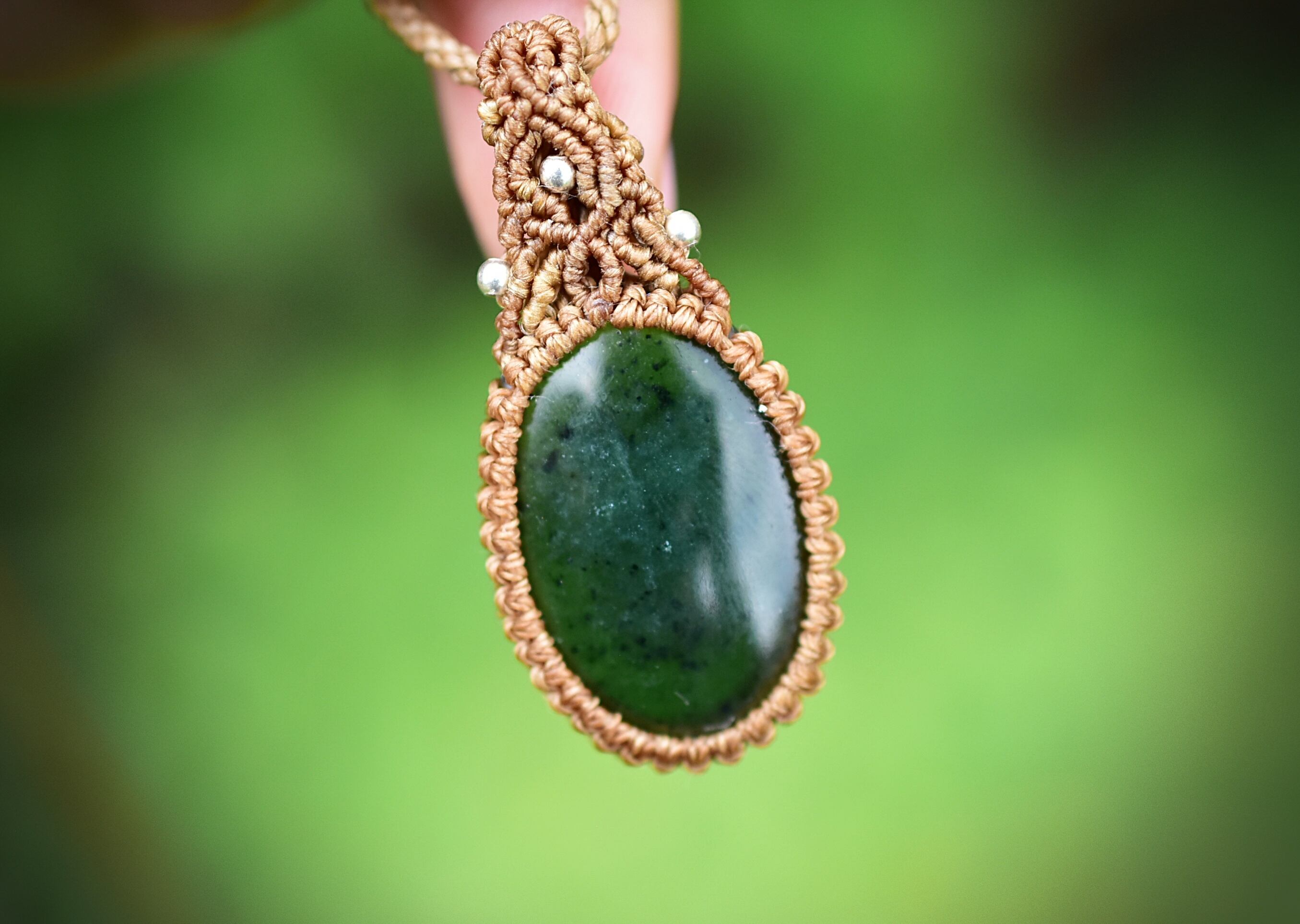 ディープグリーン★ミャンマー翡翠 マクラメネックレス767