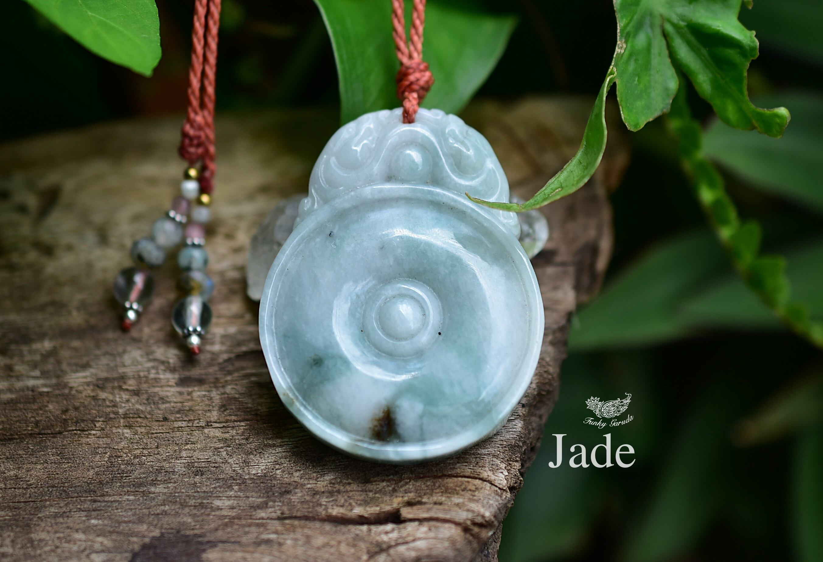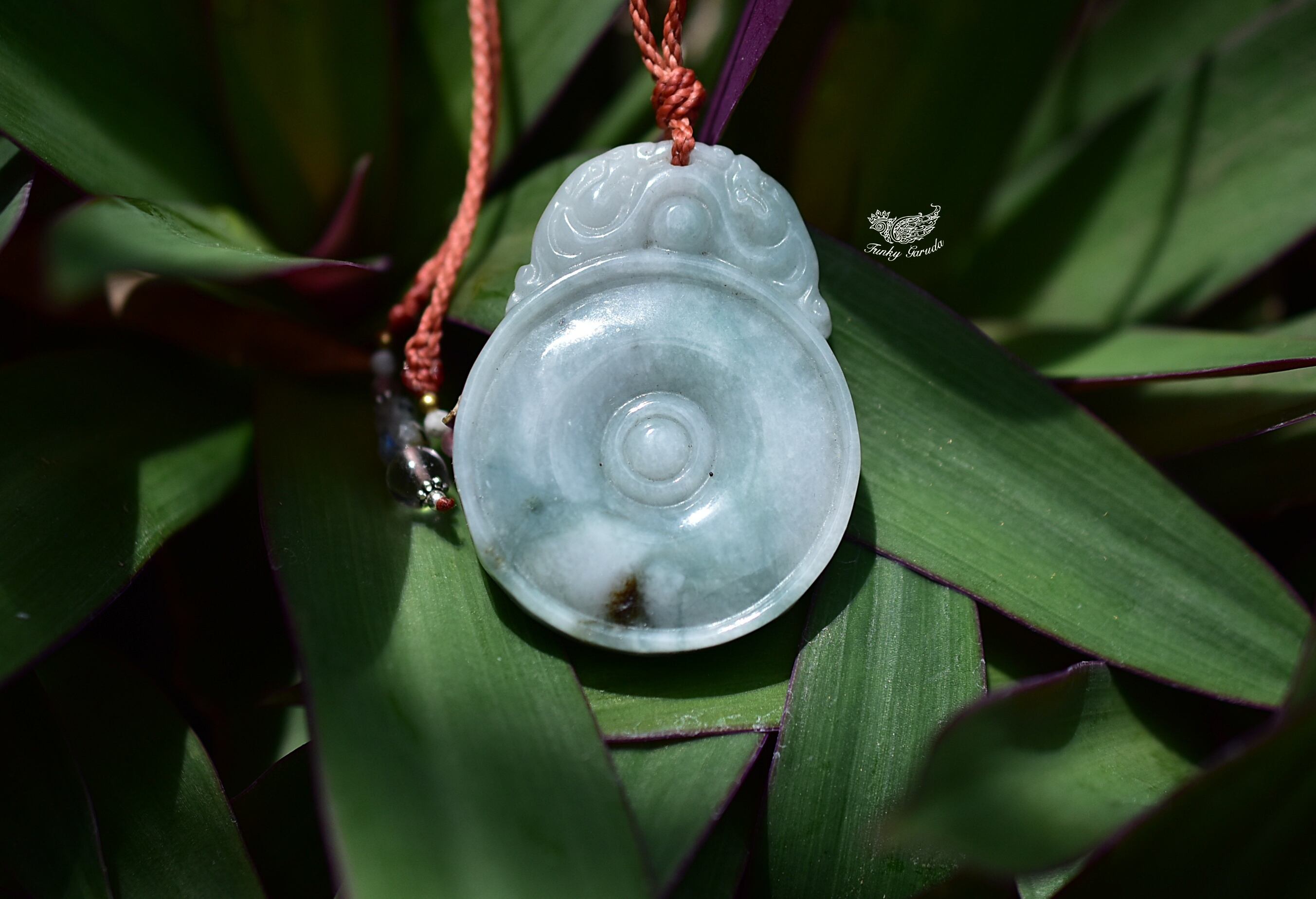 大粒★ラッキーコイン★ミャンマー翡翠 マクラメネックレス769