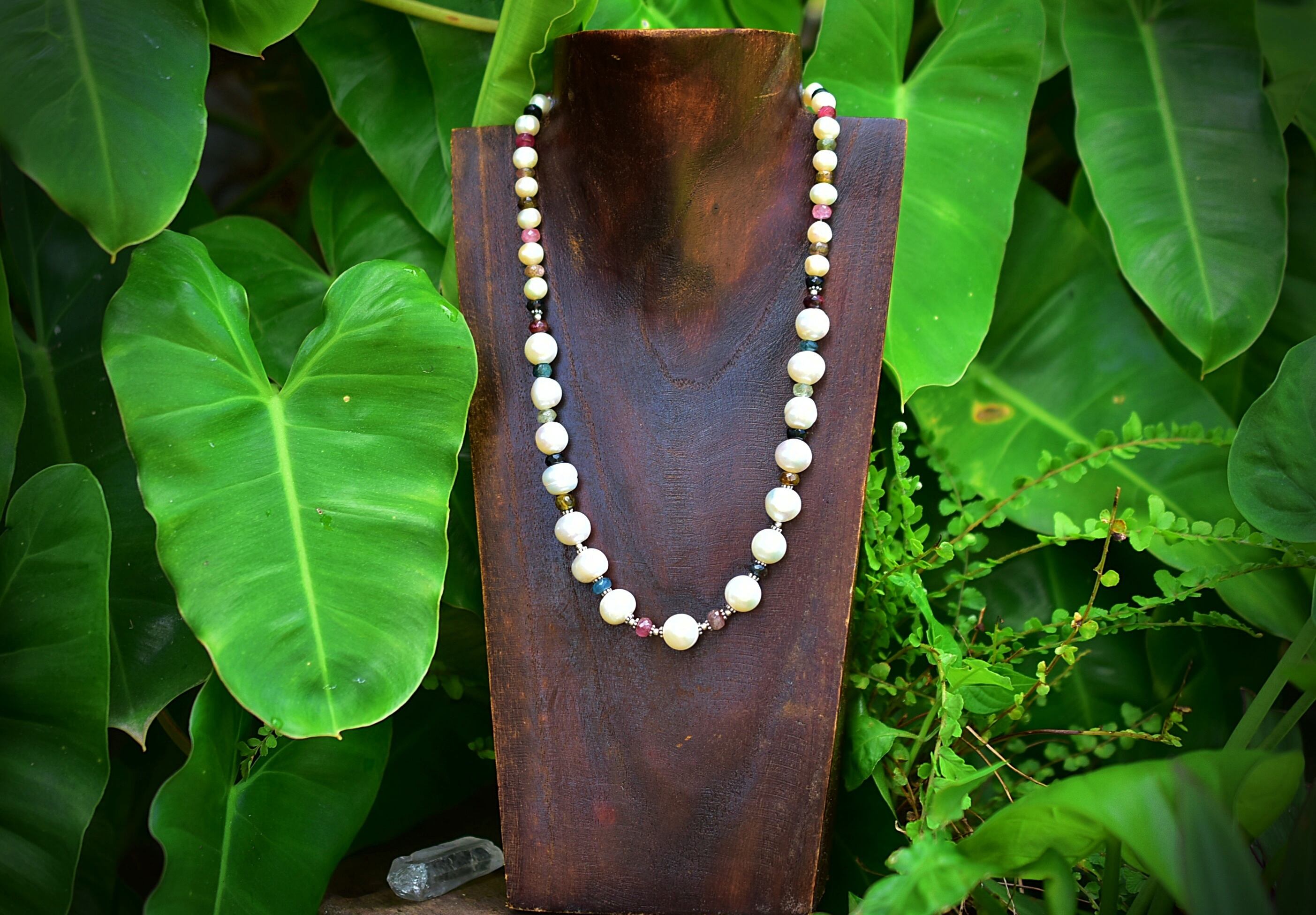 大粒ホワイティルージュ★真珠パール +トルマリンネックレス773