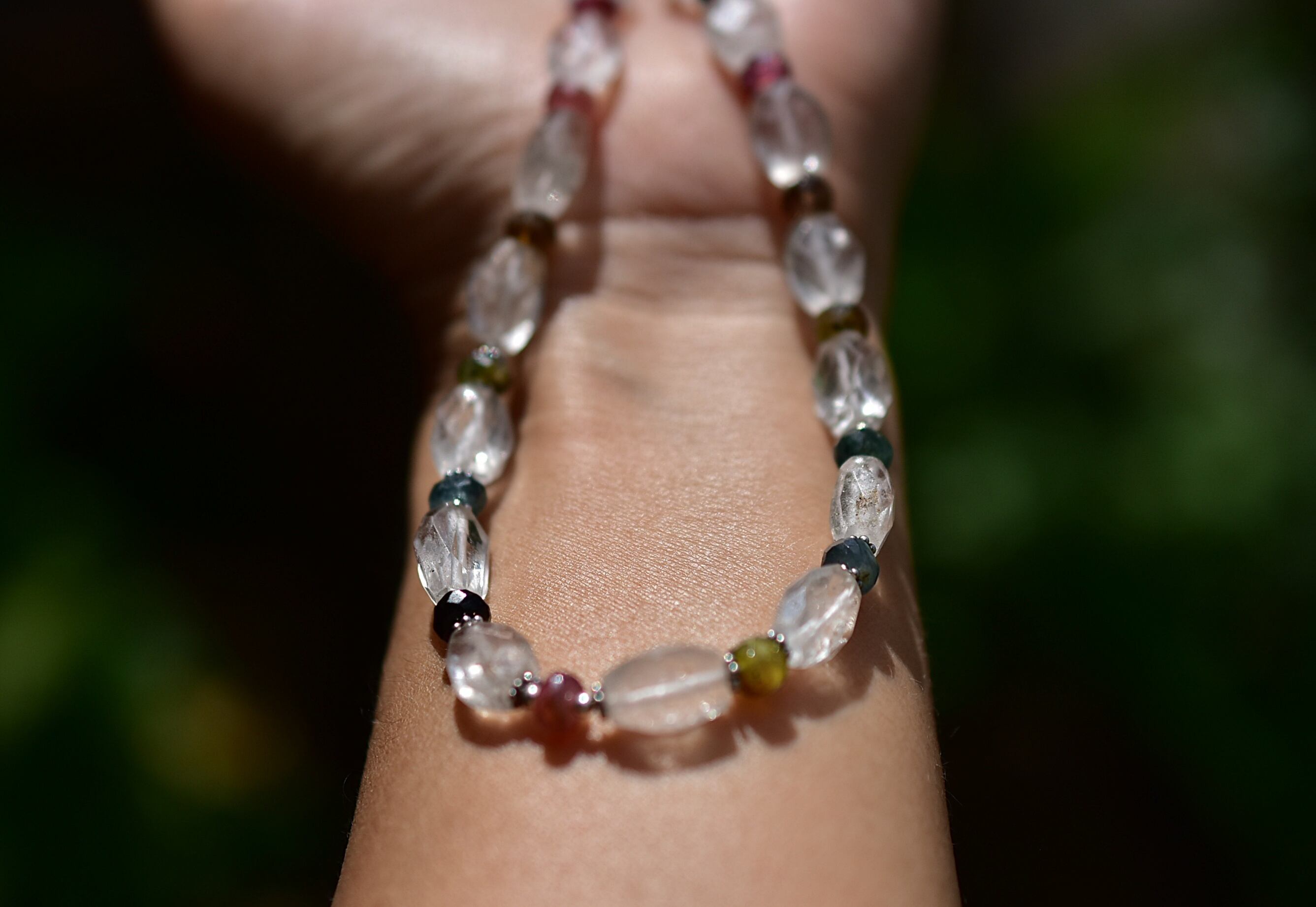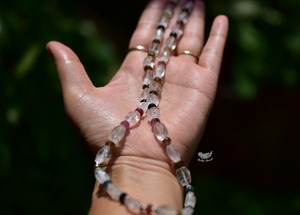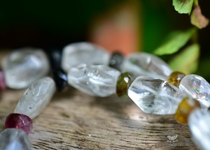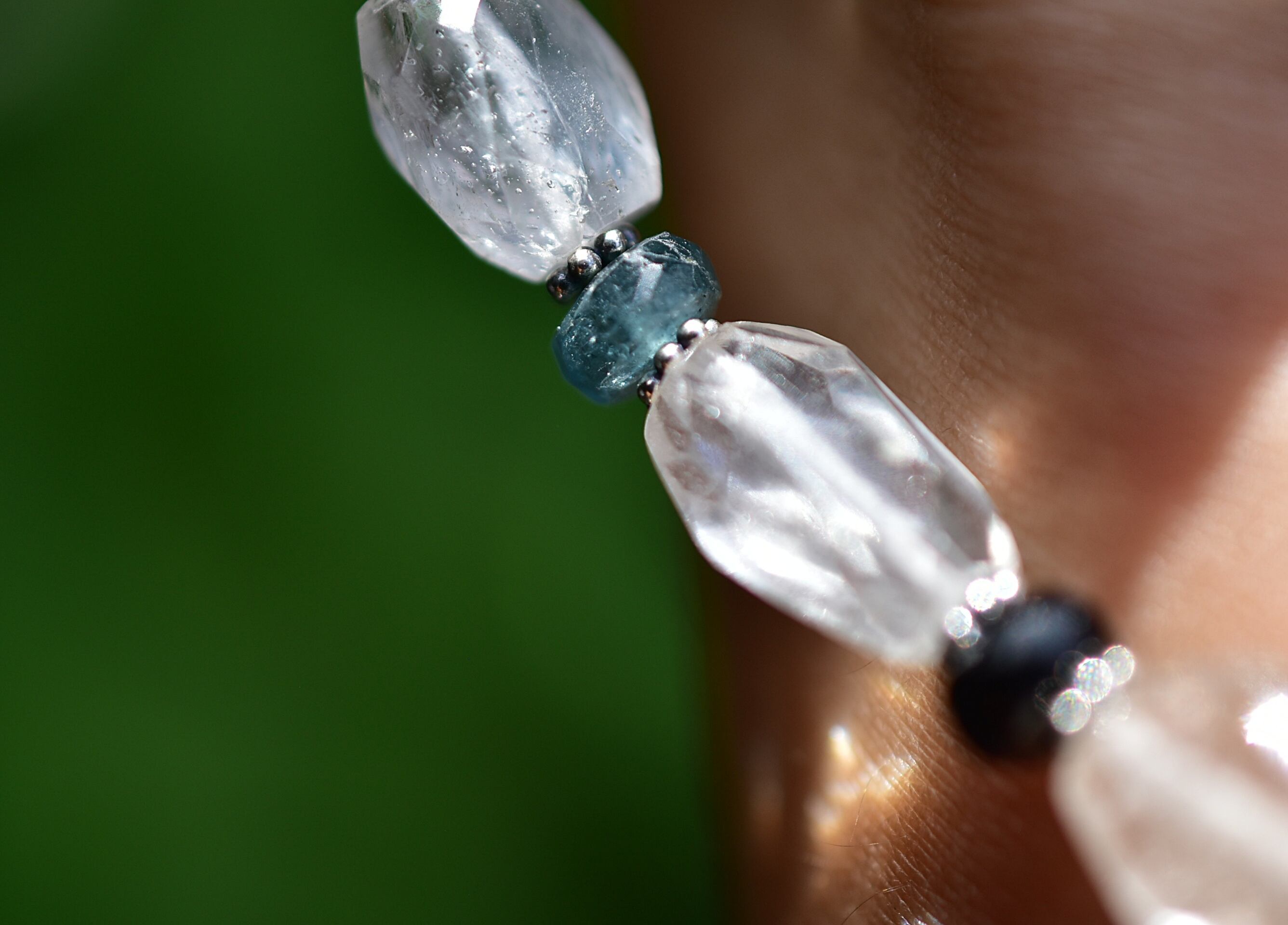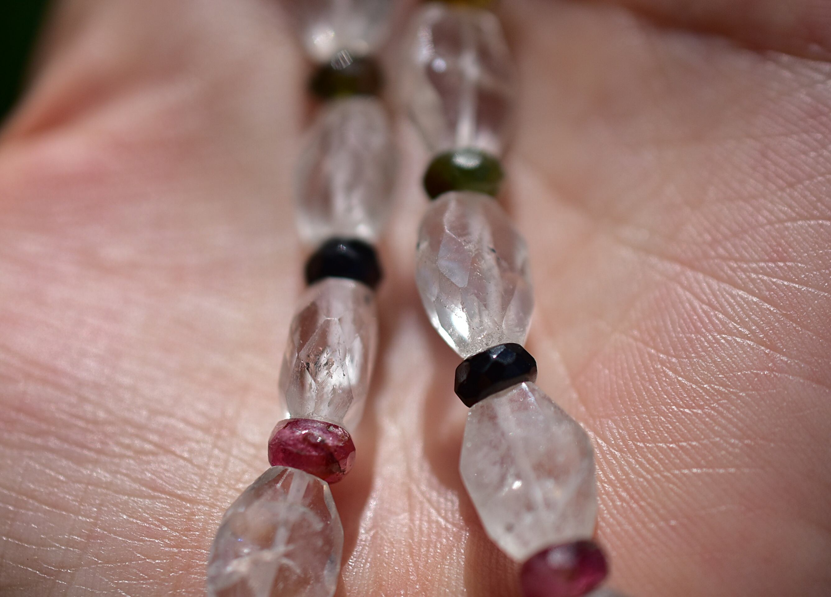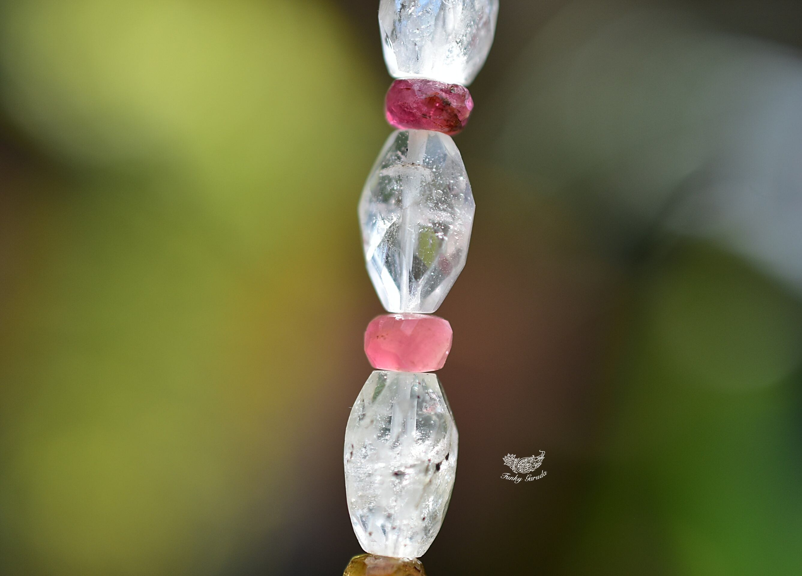 ひと粒ひと粒水晶とトルマリンビーズを見立てて