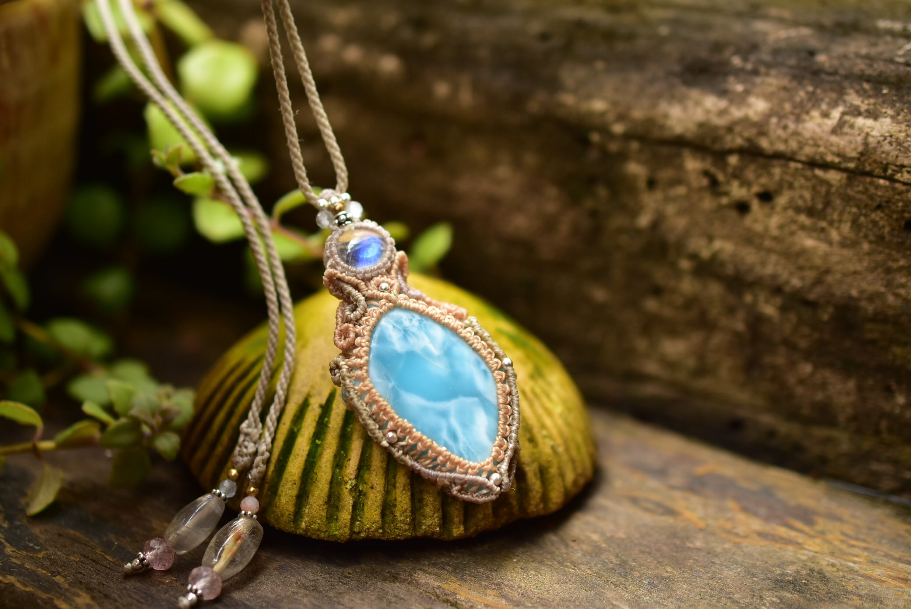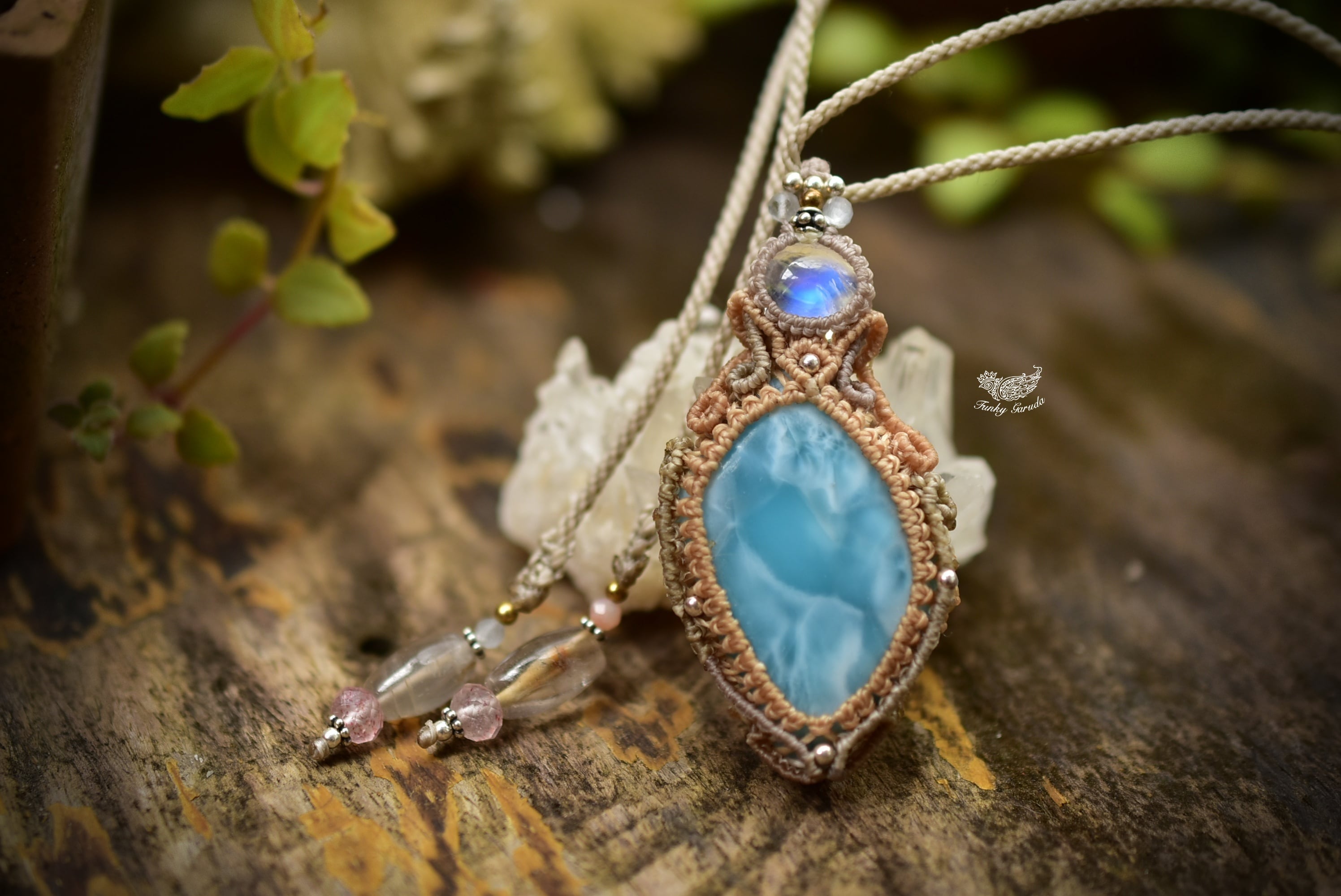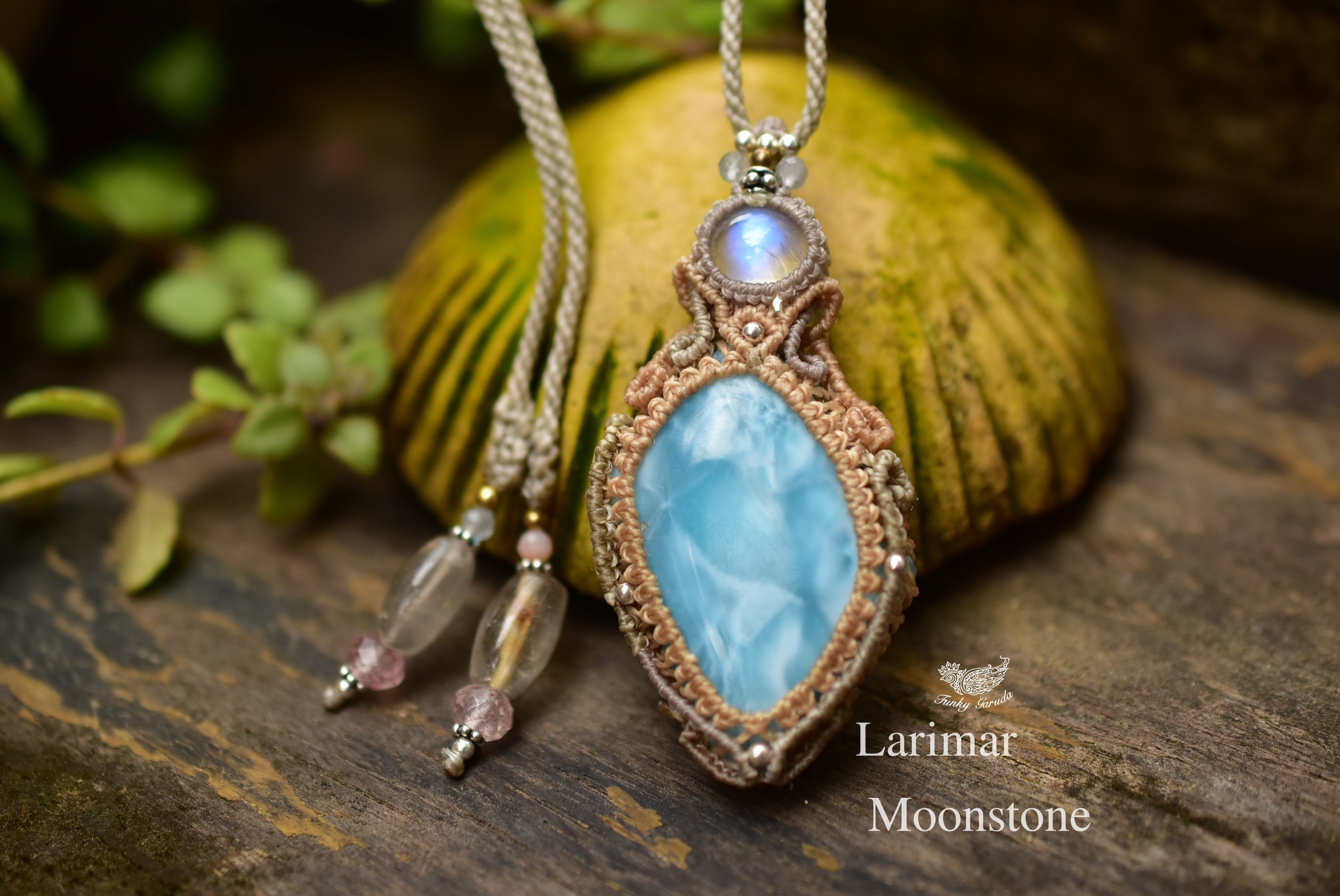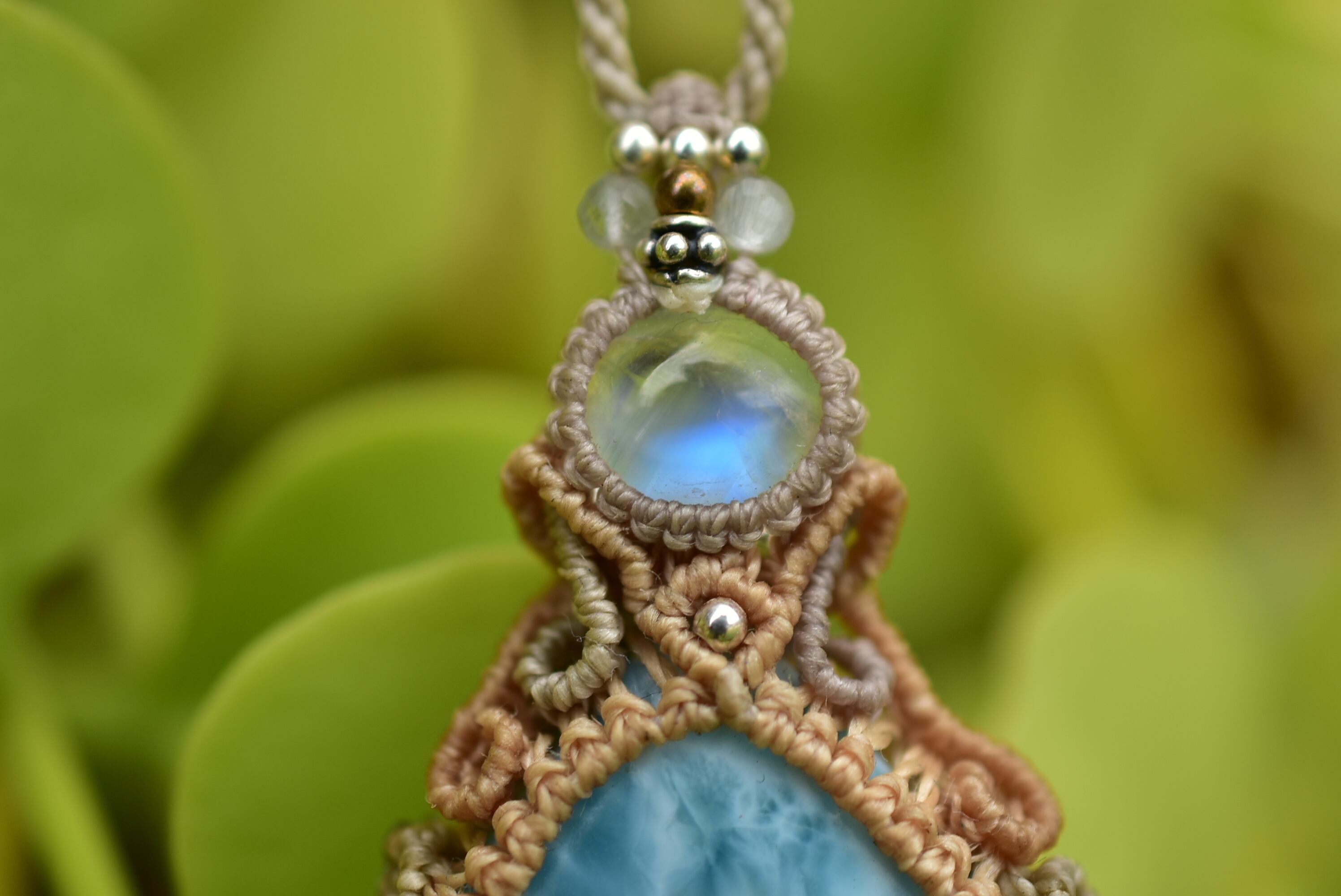月の光と波★ラリマー ムーンストーンマクラメネックレス792