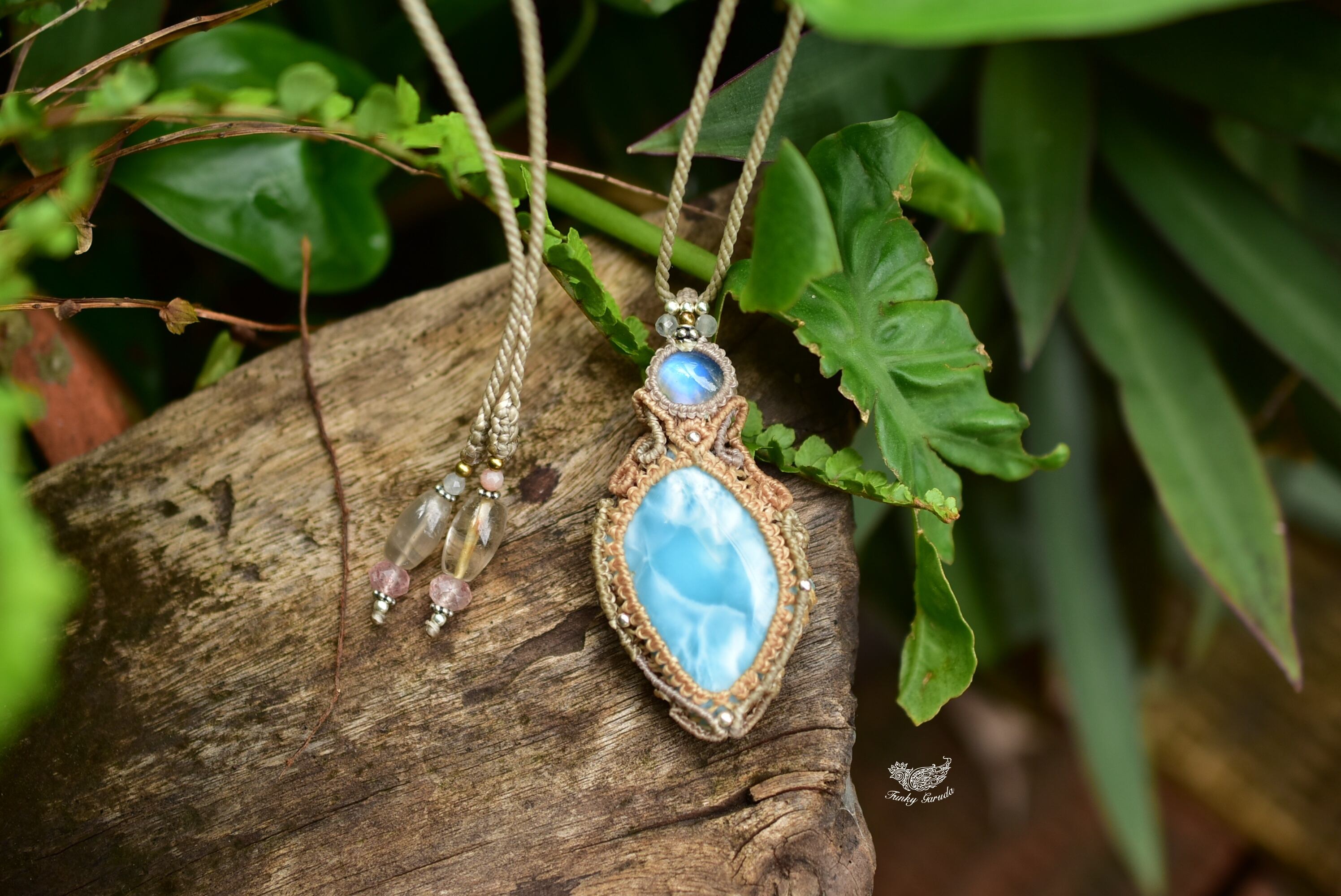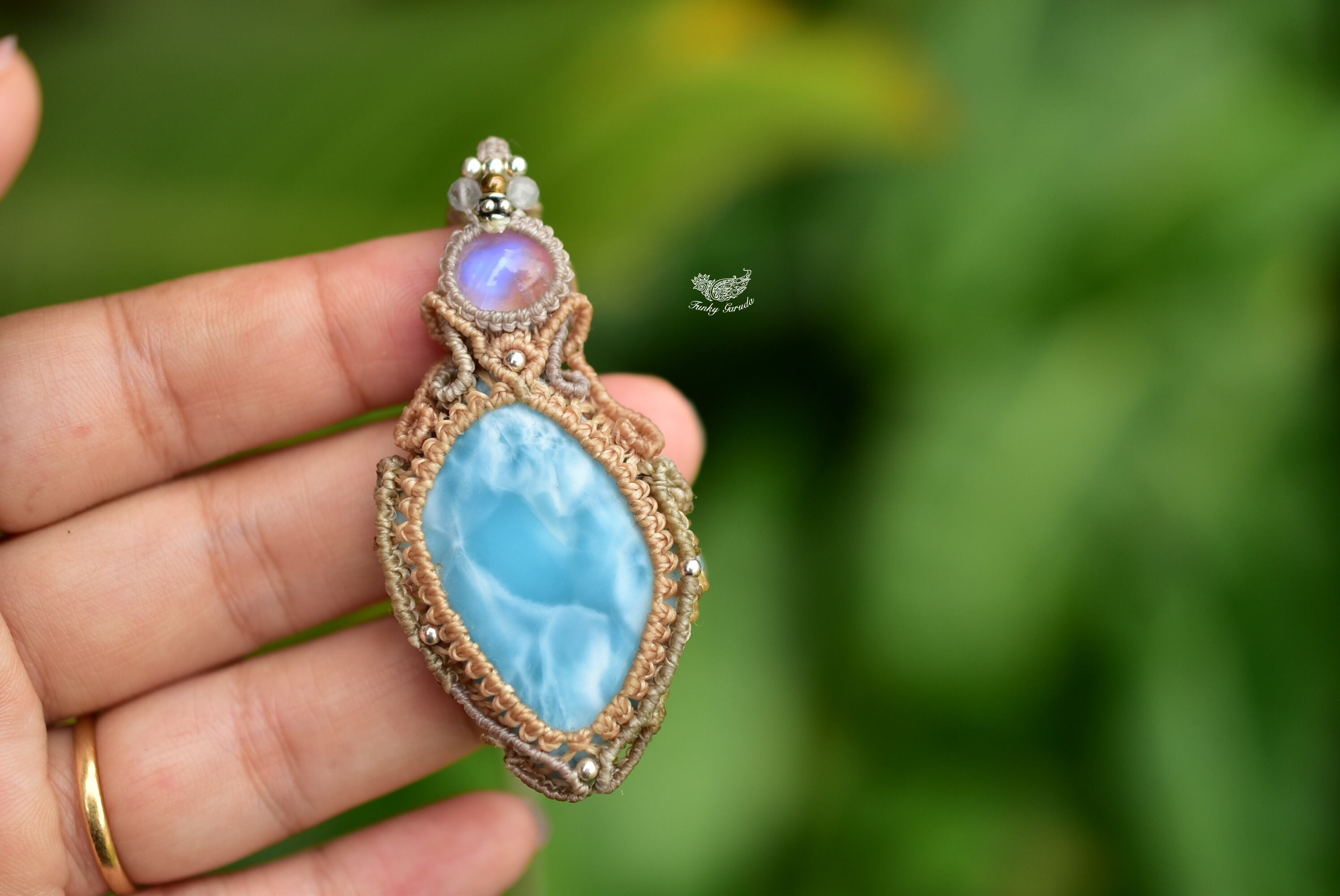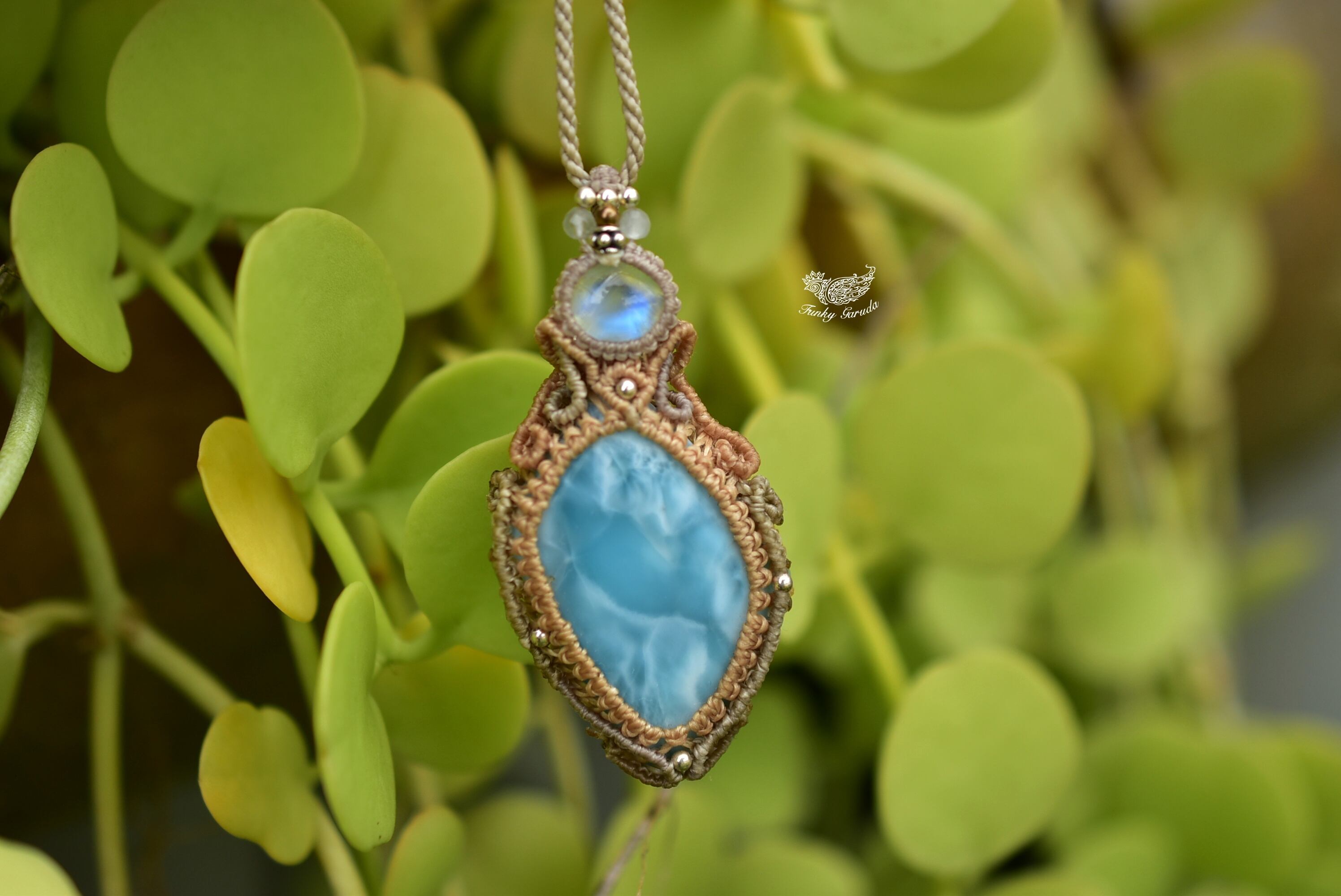 月の光と波★ラリマー ムーンストーンマクラメネックレス792