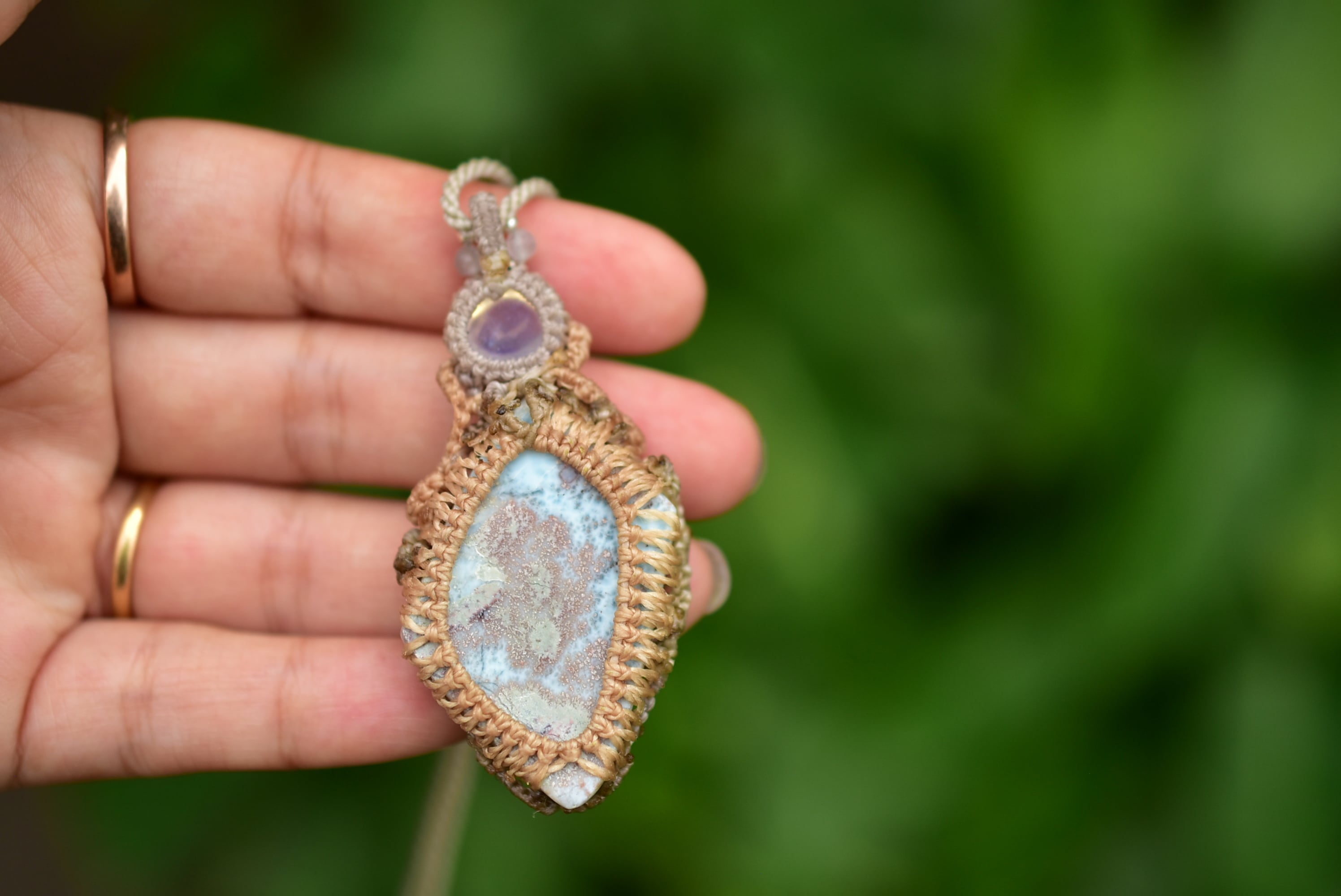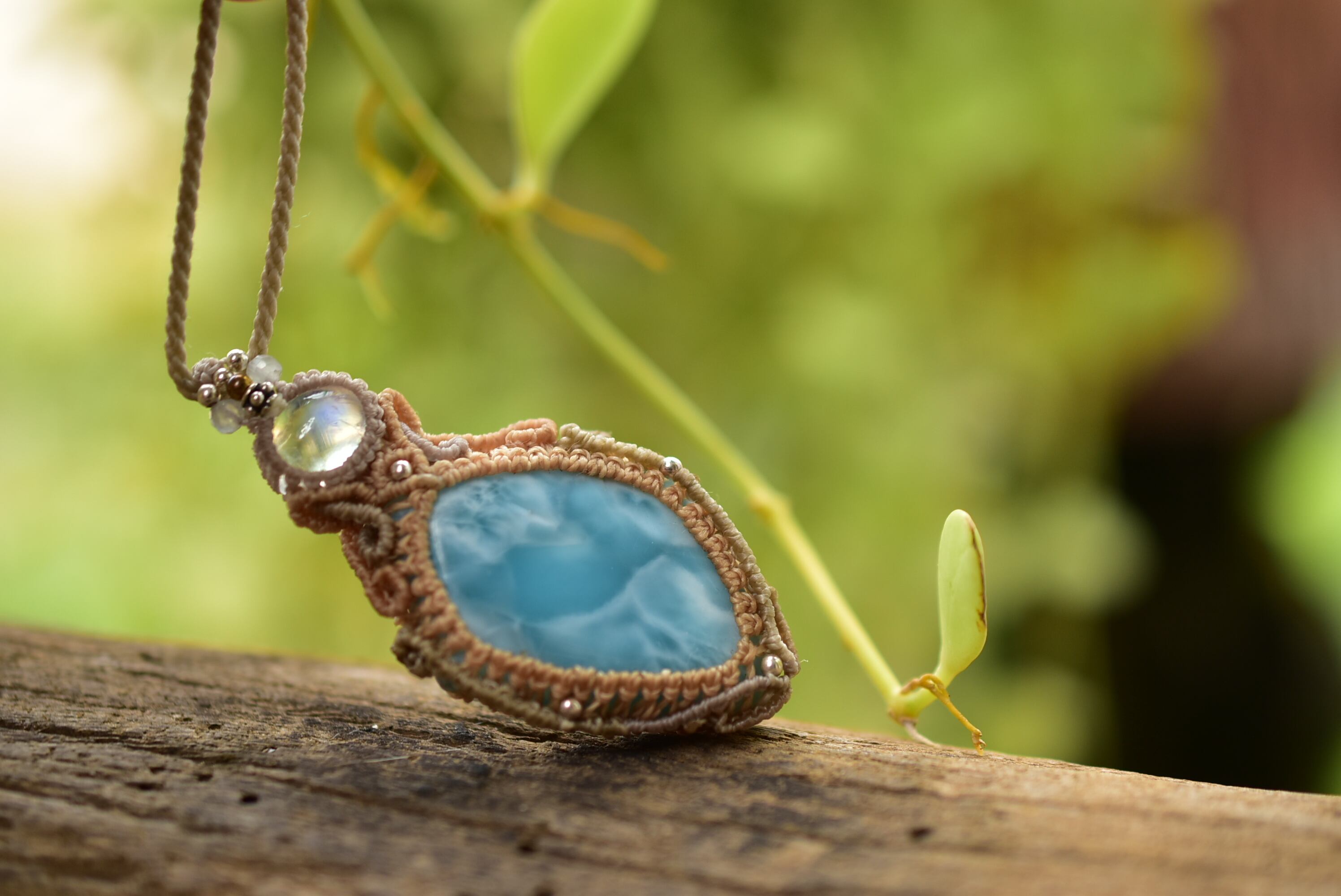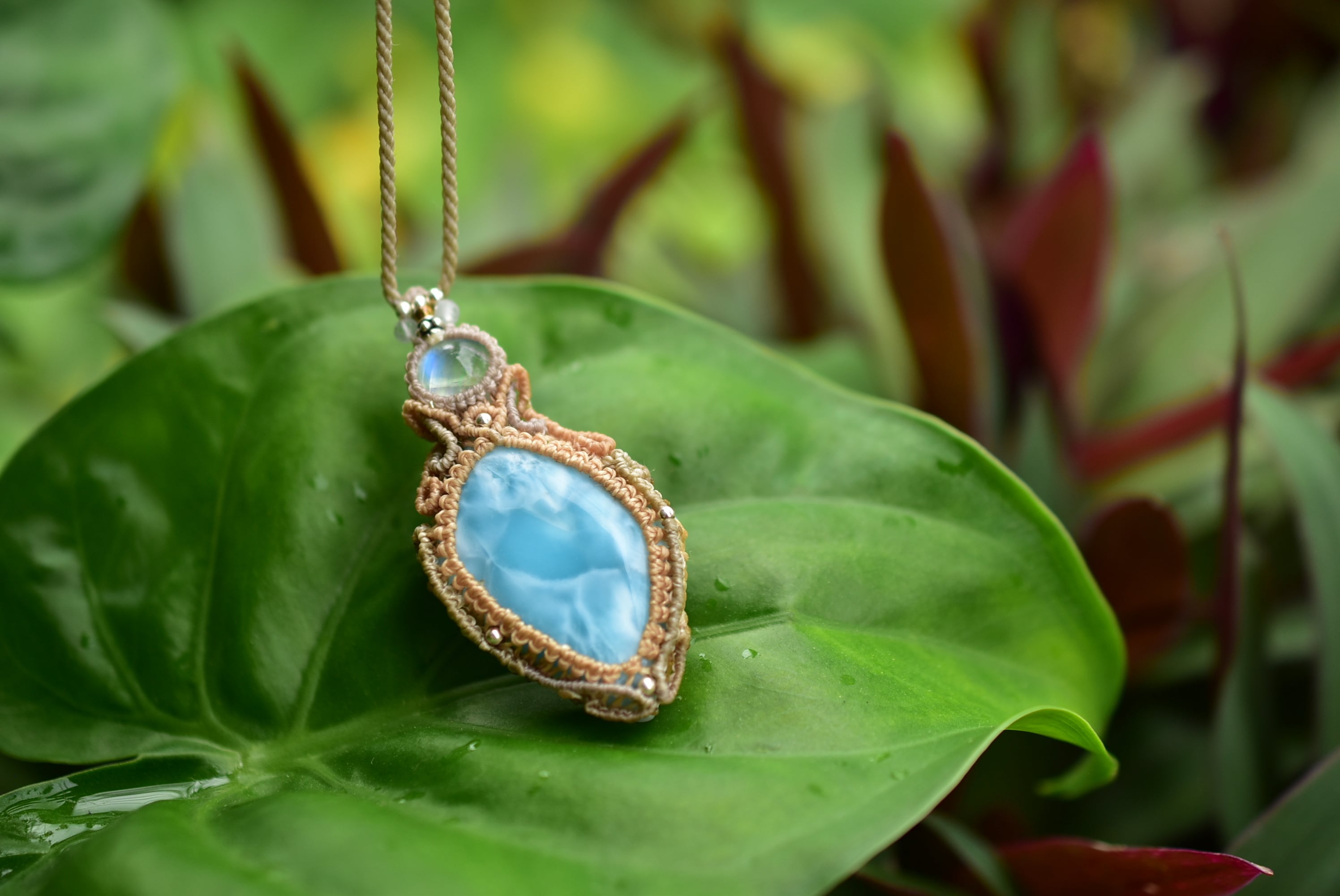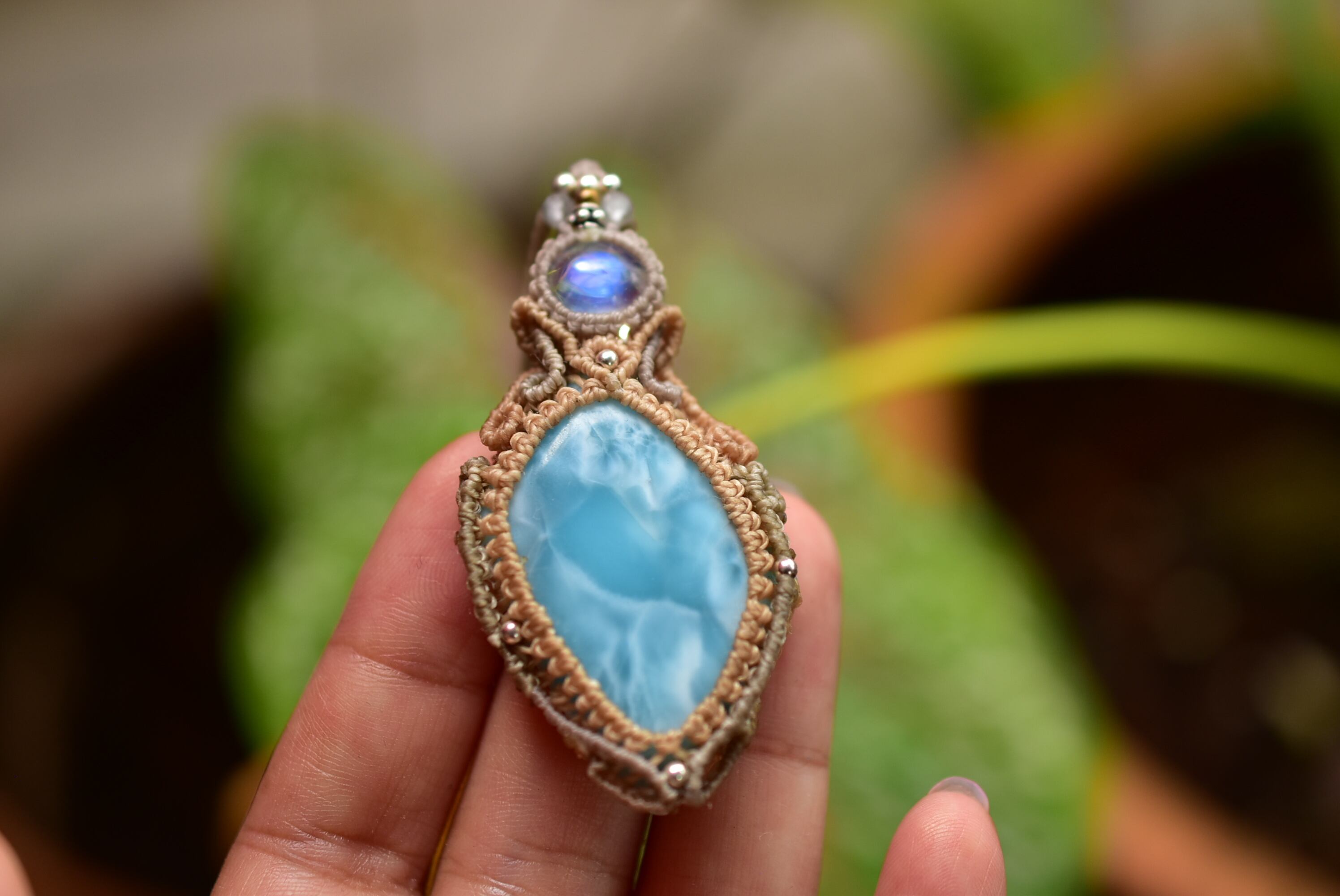 月の光と波★ラリマー ムーンストーンマクラメネックレス792