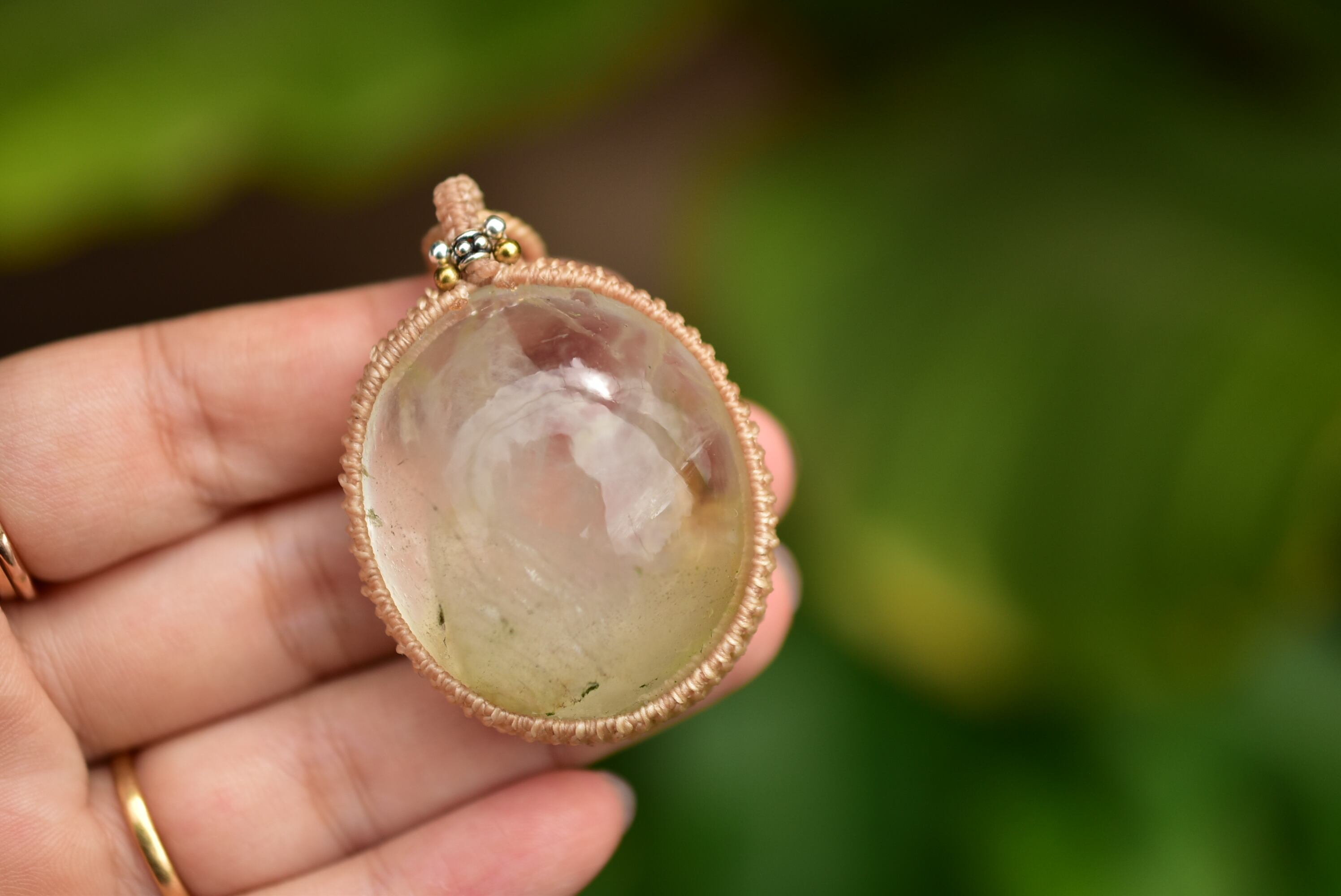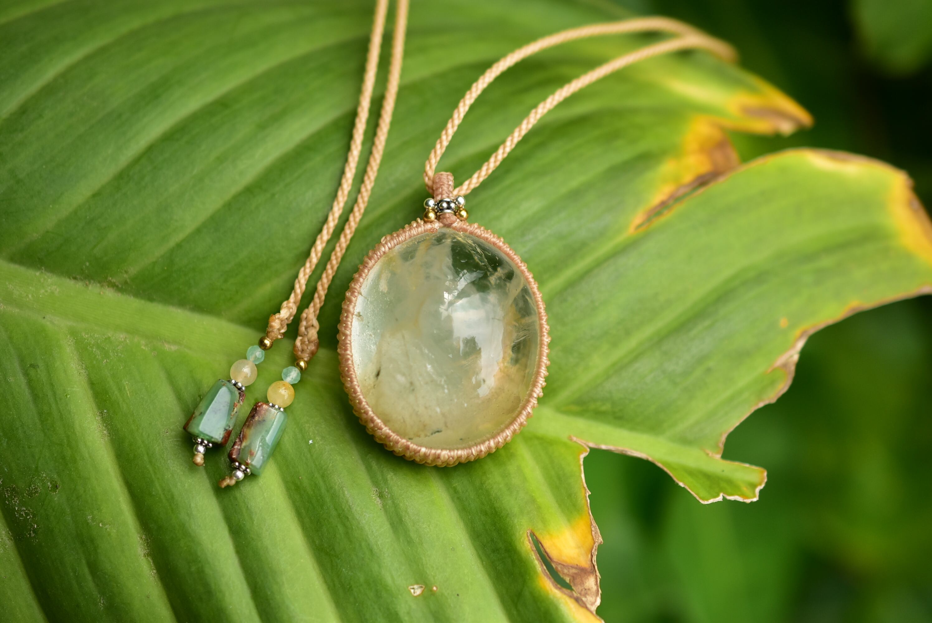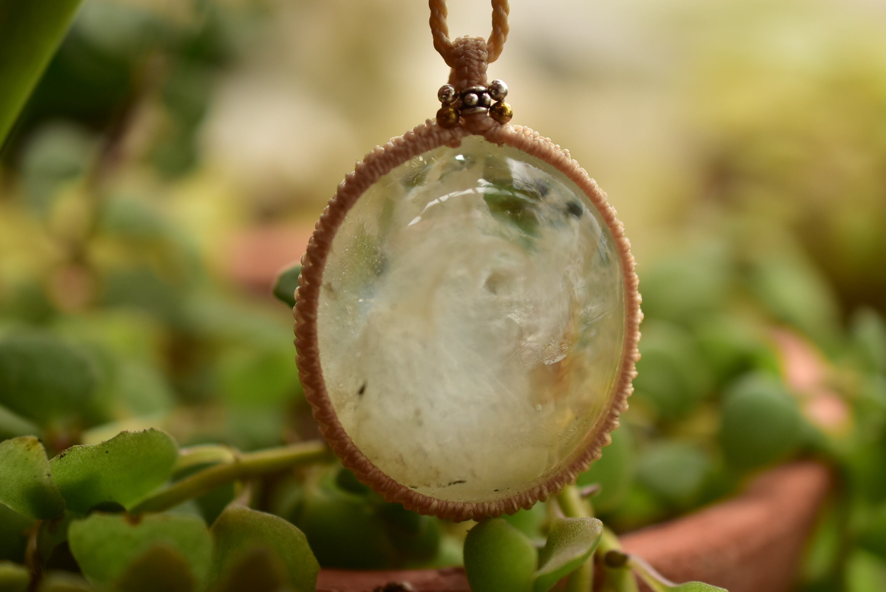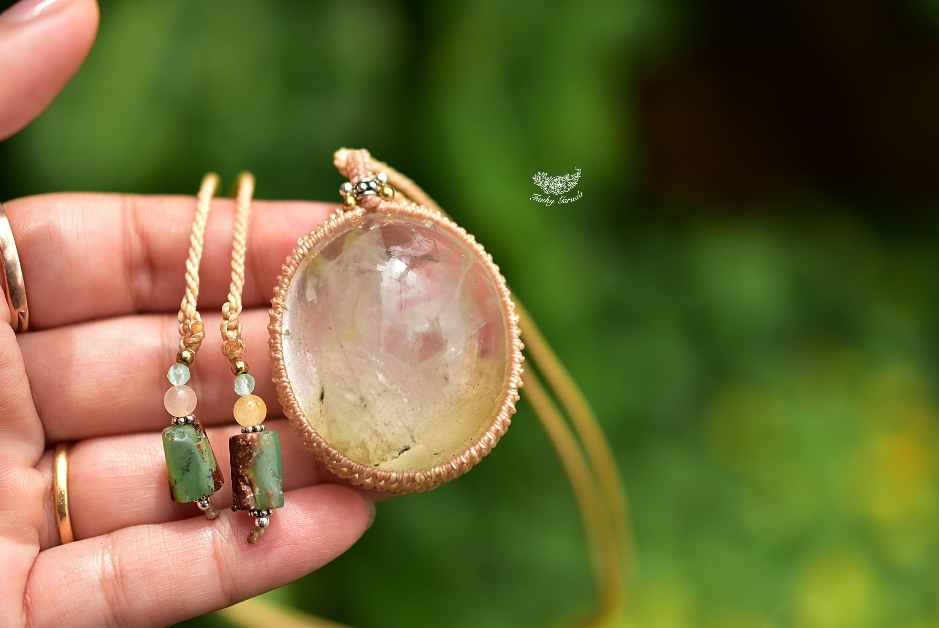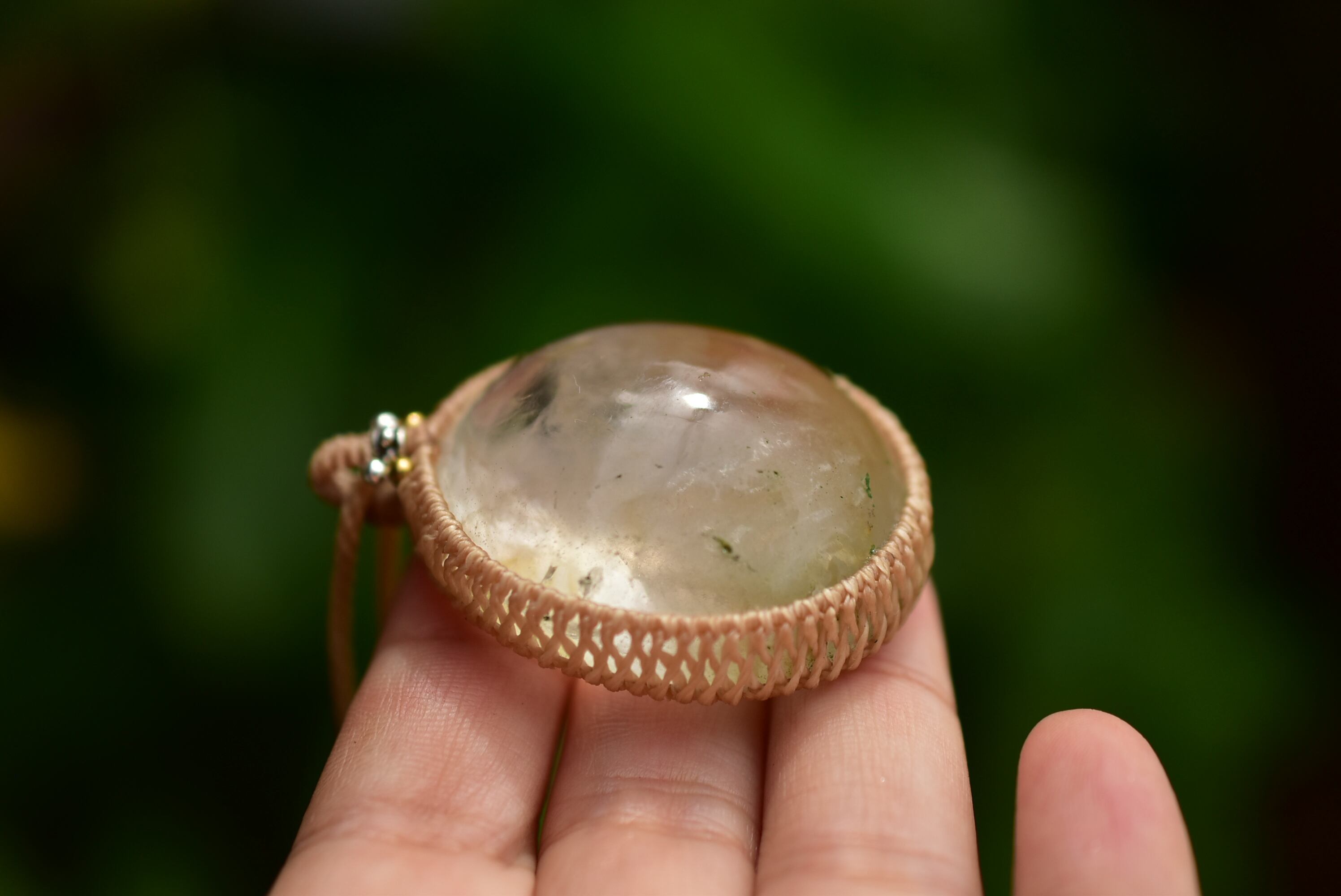 渦巻く煙★ホワイトガーデンクォーツ マクラメネックレス801