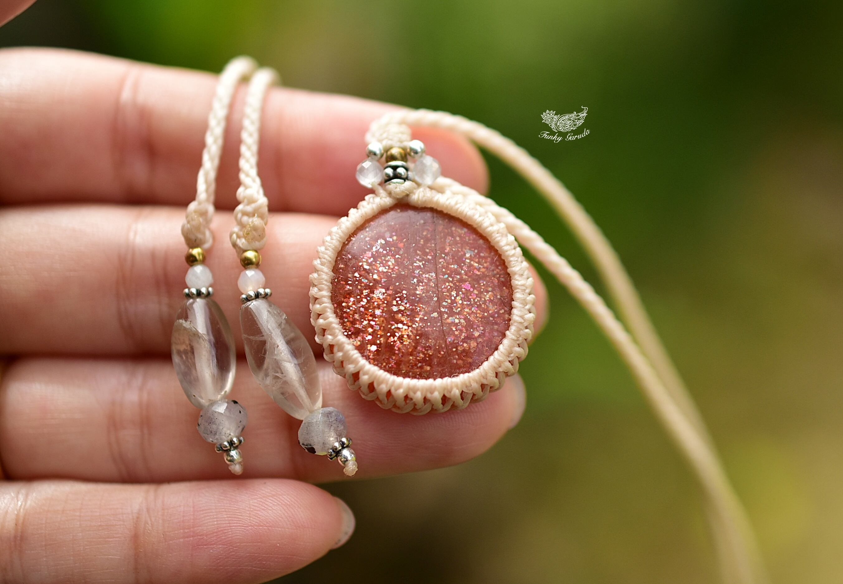 ◆このたびはナチュラルホワイト色の蝋引き糸を使用しマクラメ編み装飾を施しました。