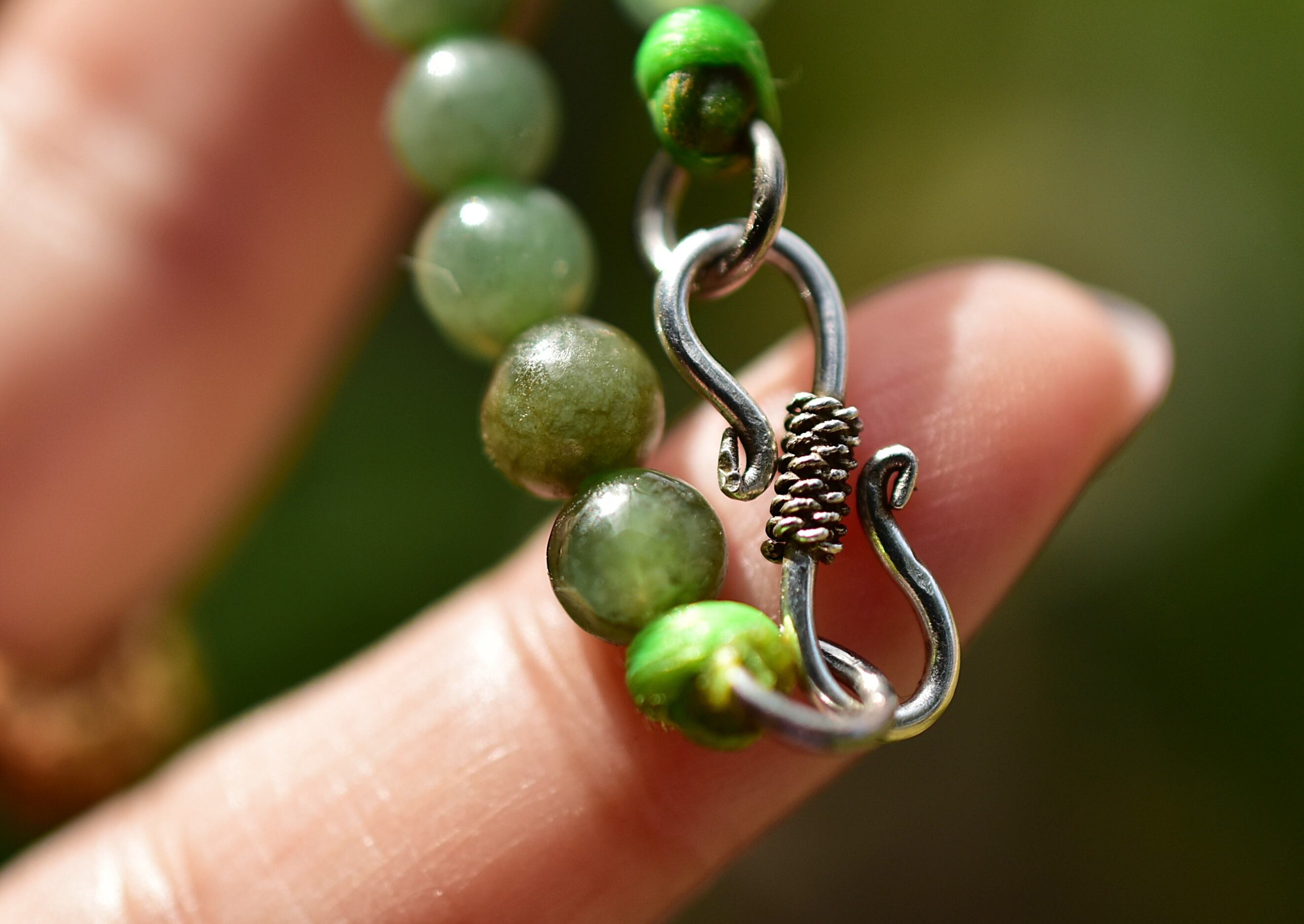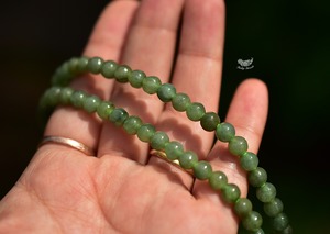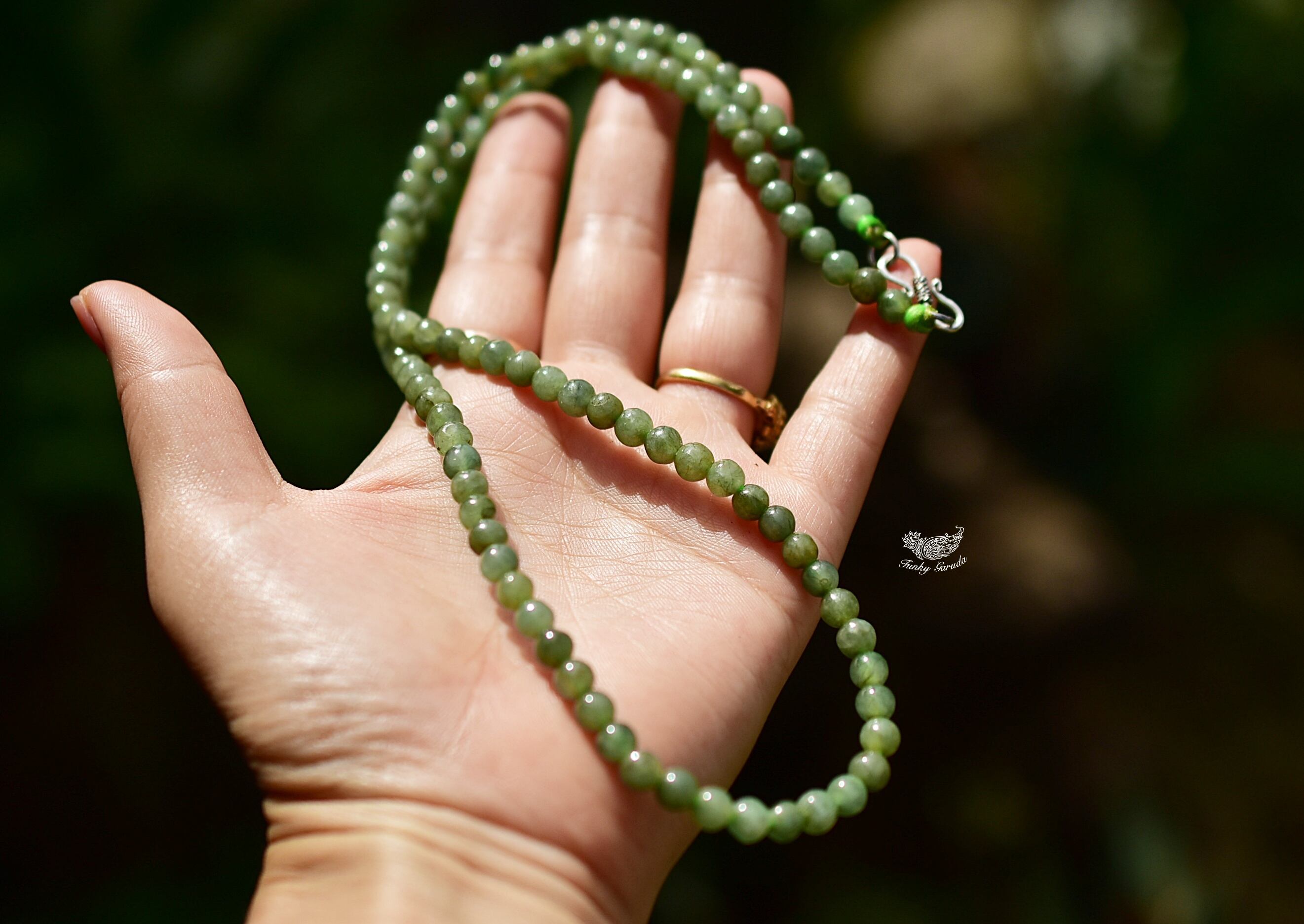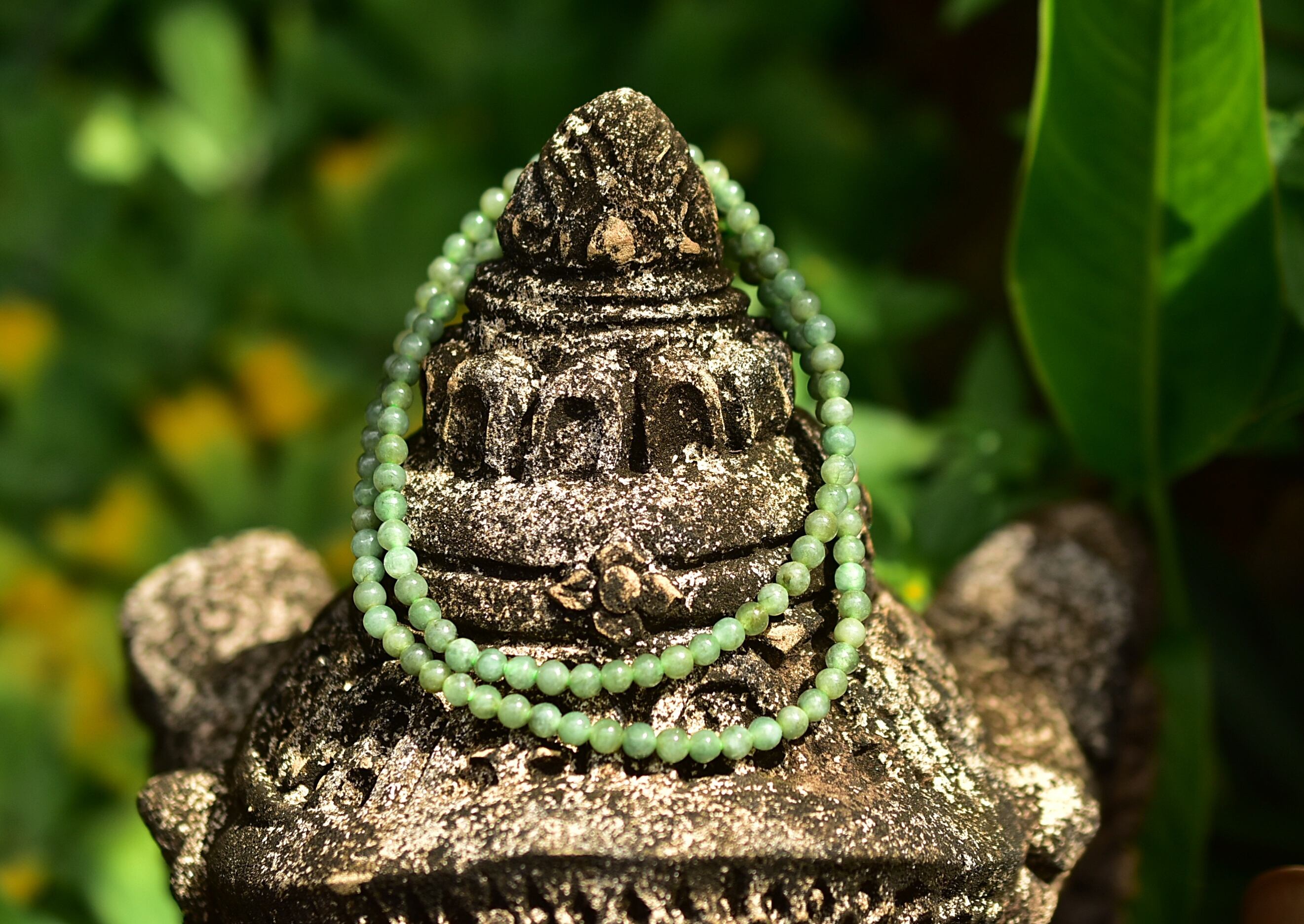 オリエンタルなイメージのミャンマー翡翠は身に付けるとぐっと引き締まる色合いです。