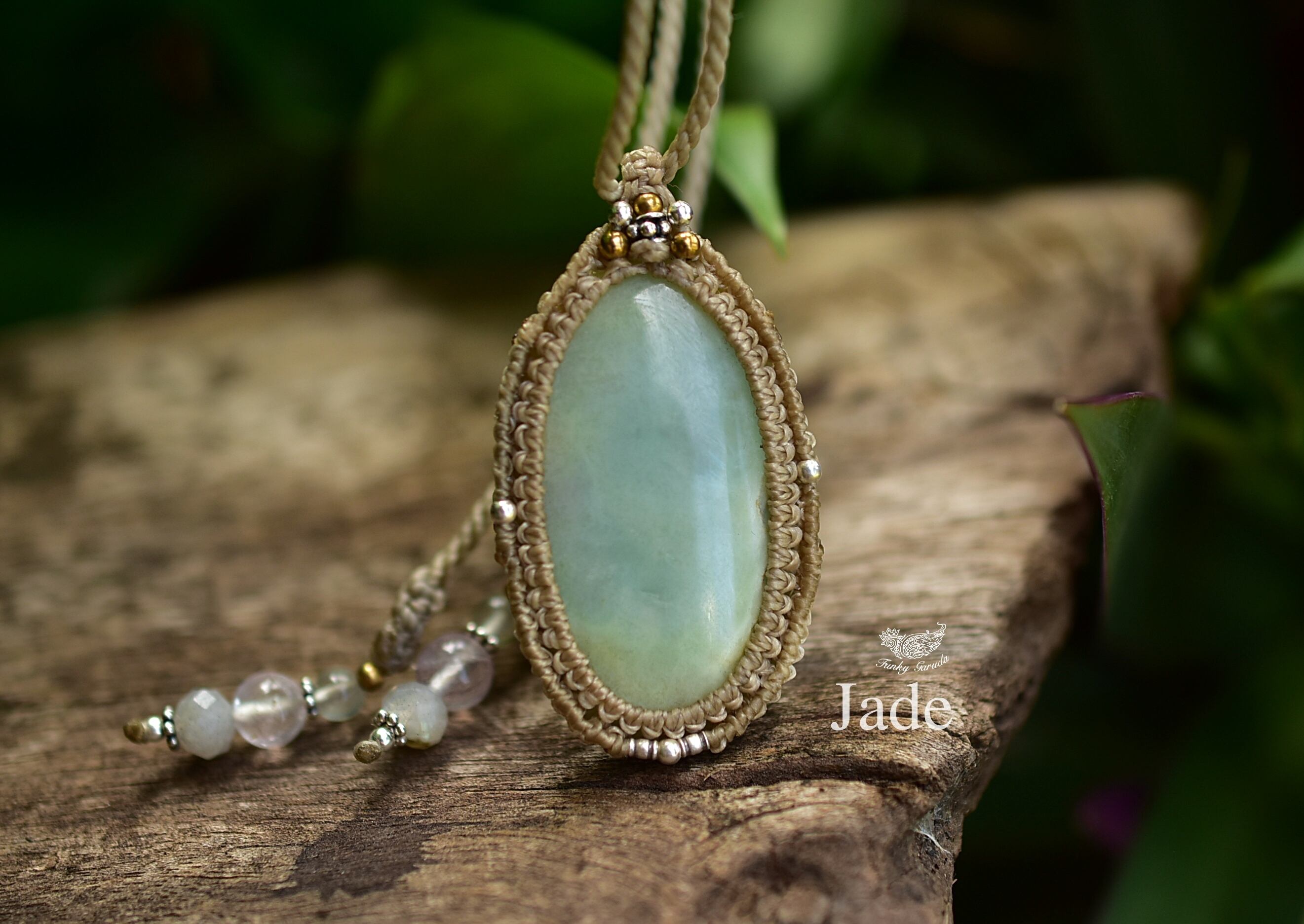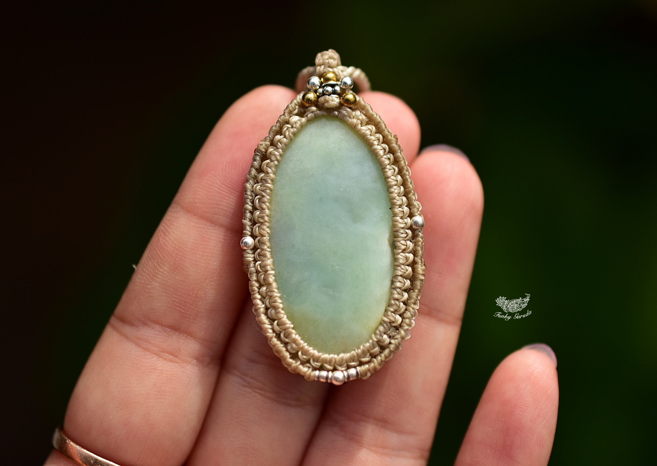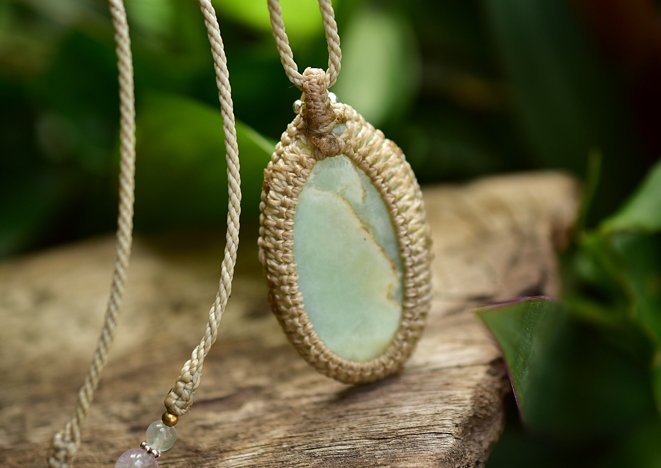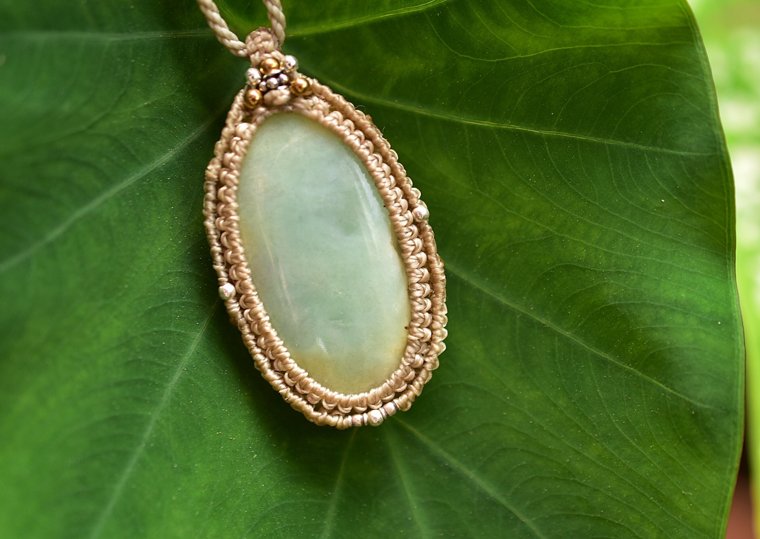かわいい色★ミャンマー翡翠★マクラメネックレス806