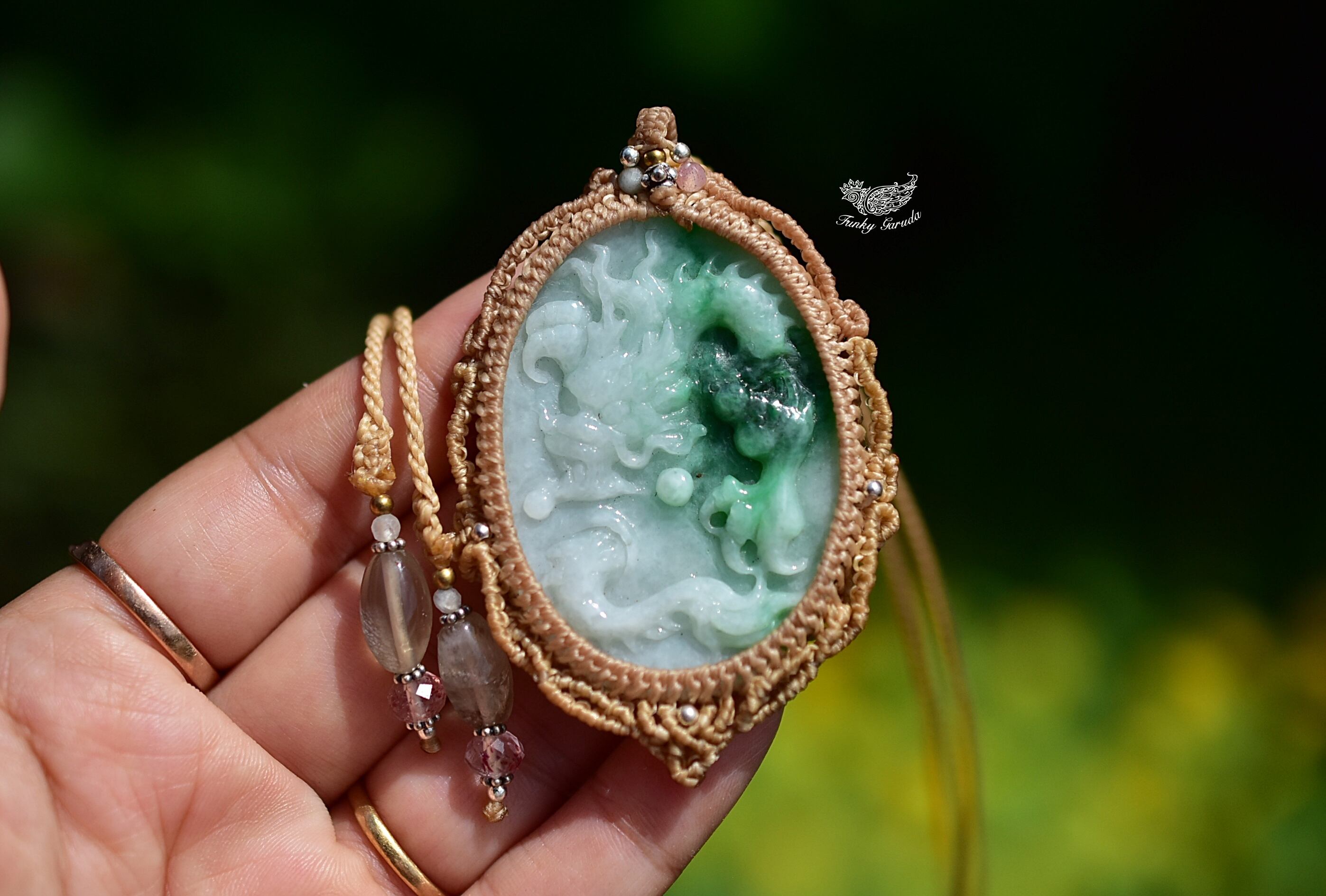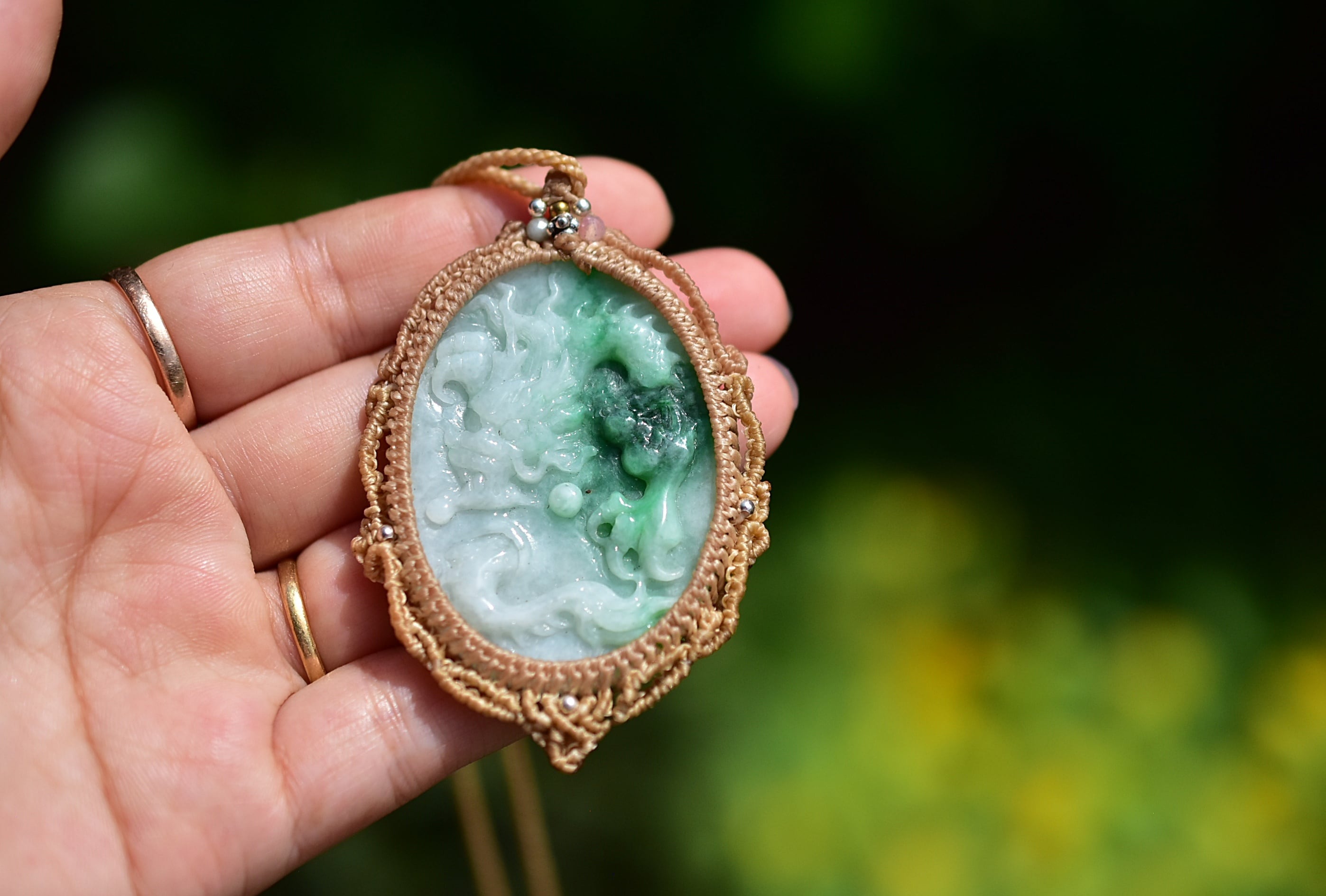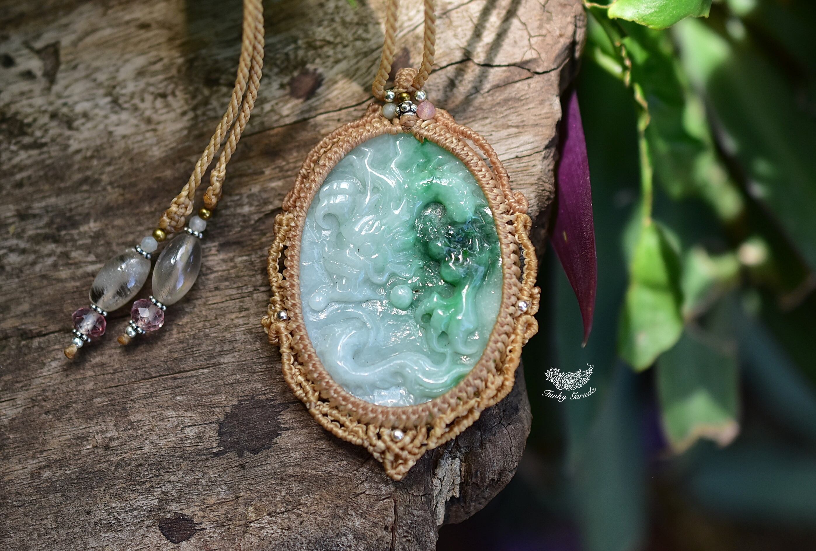 大粒ドラゴン★ミャンマー翡翠★マクラメネックレス807