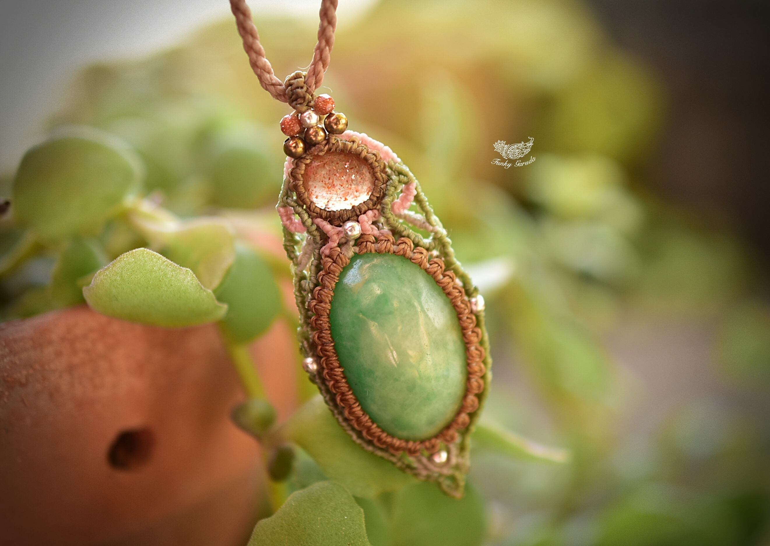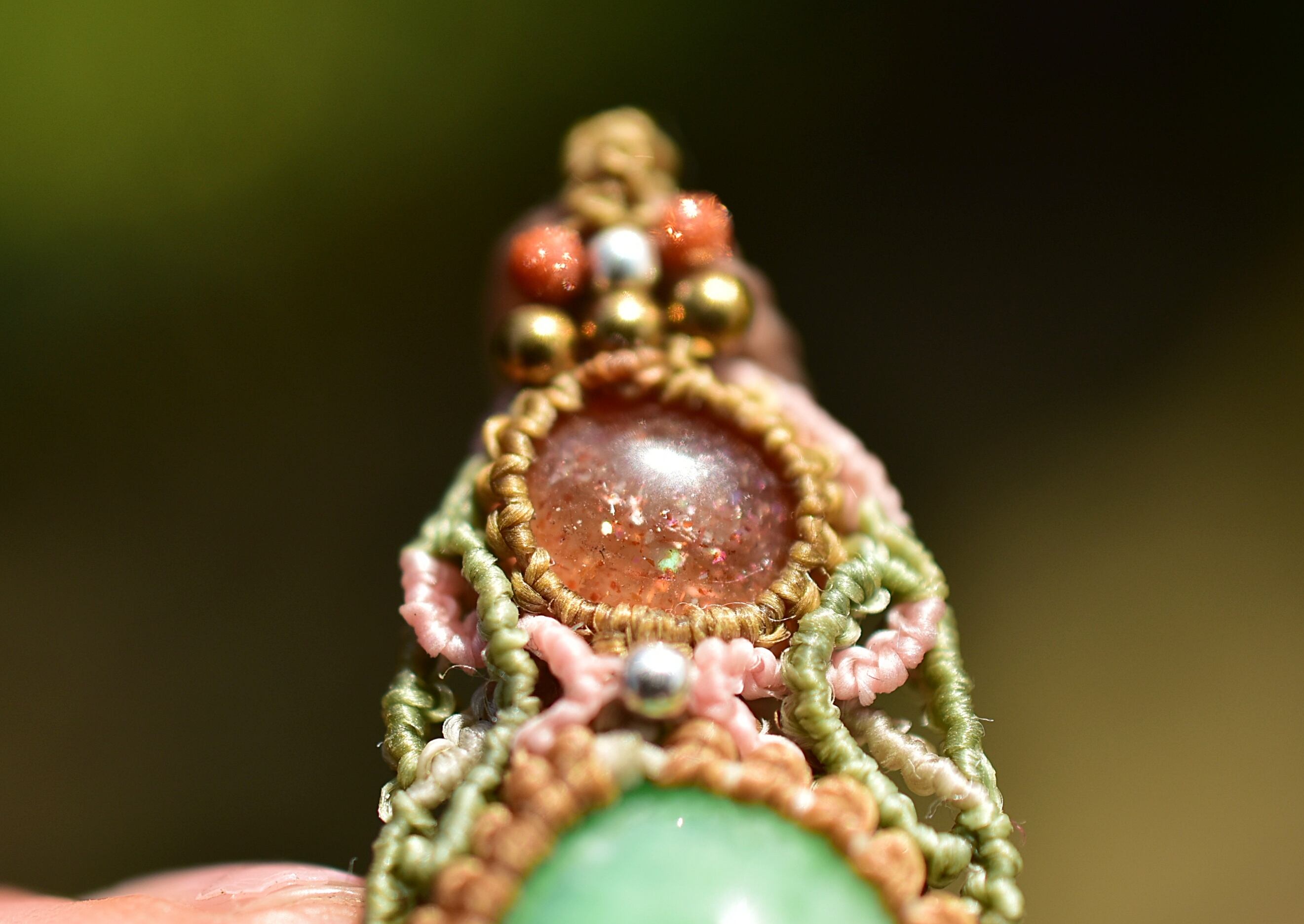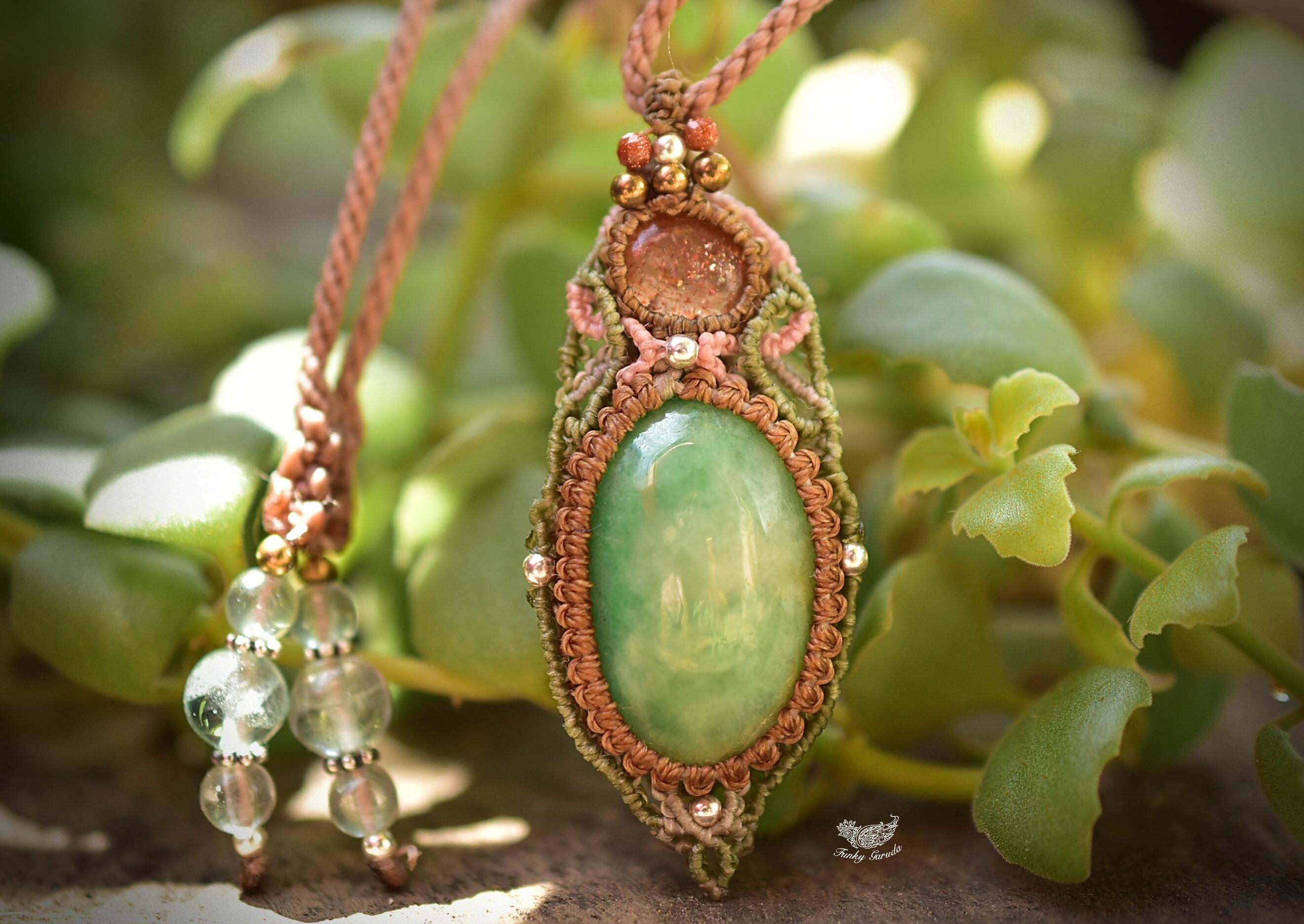 大地と太陽★サンストーン+翡翠★マクラメネックレス808
