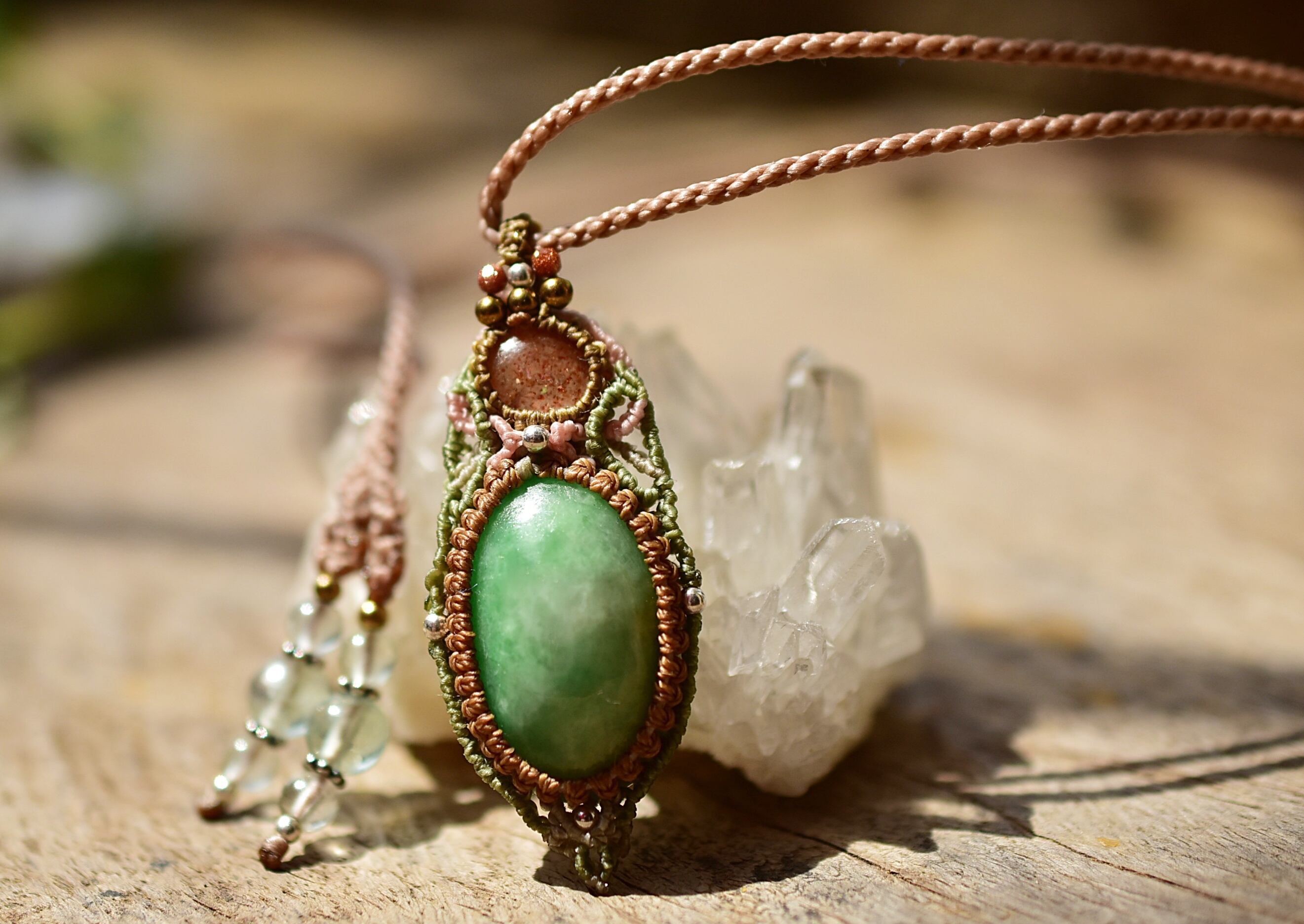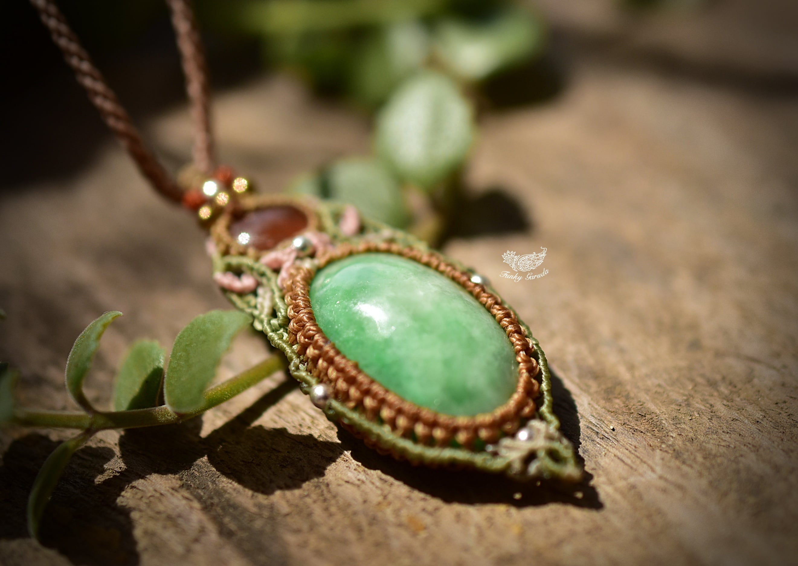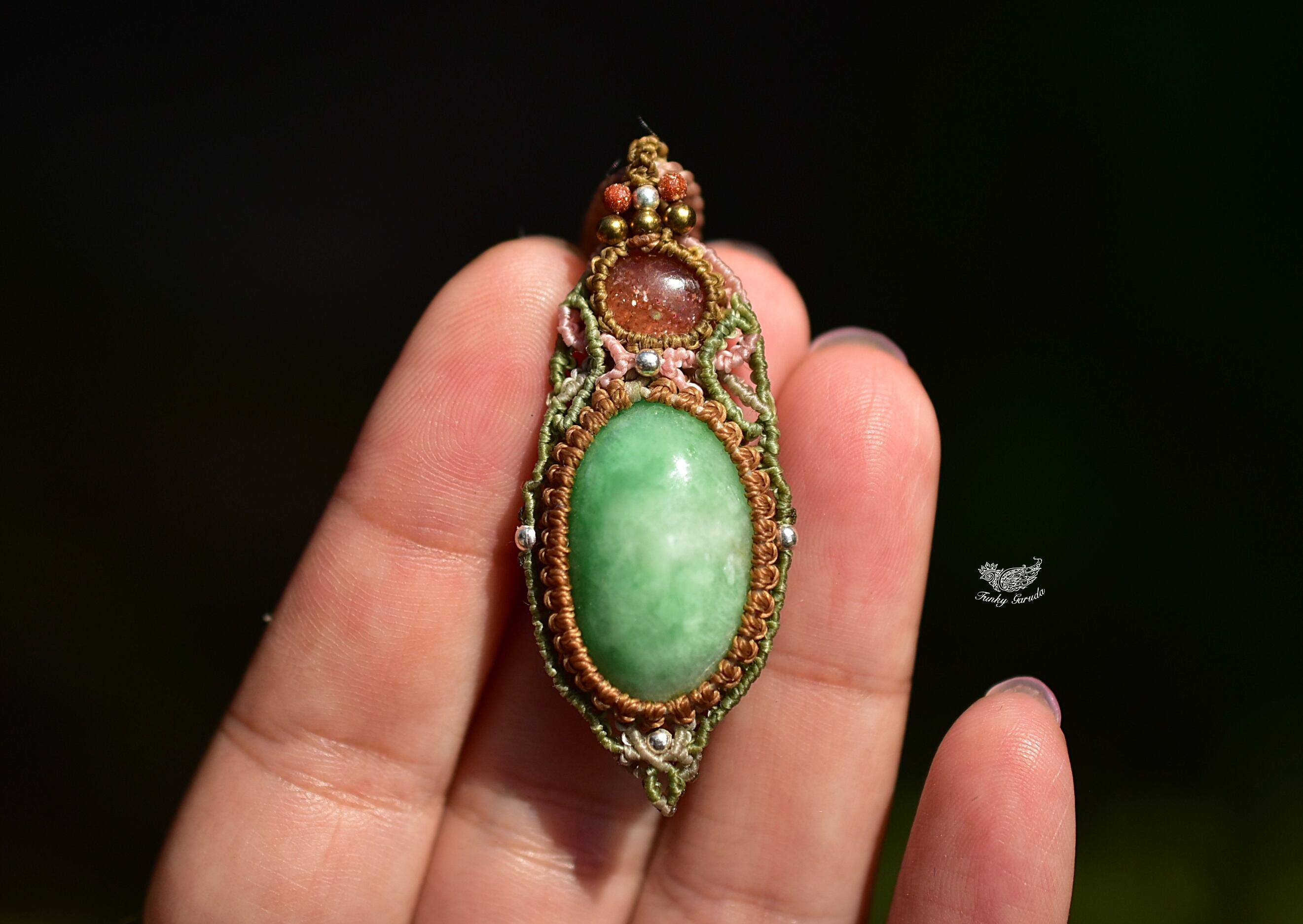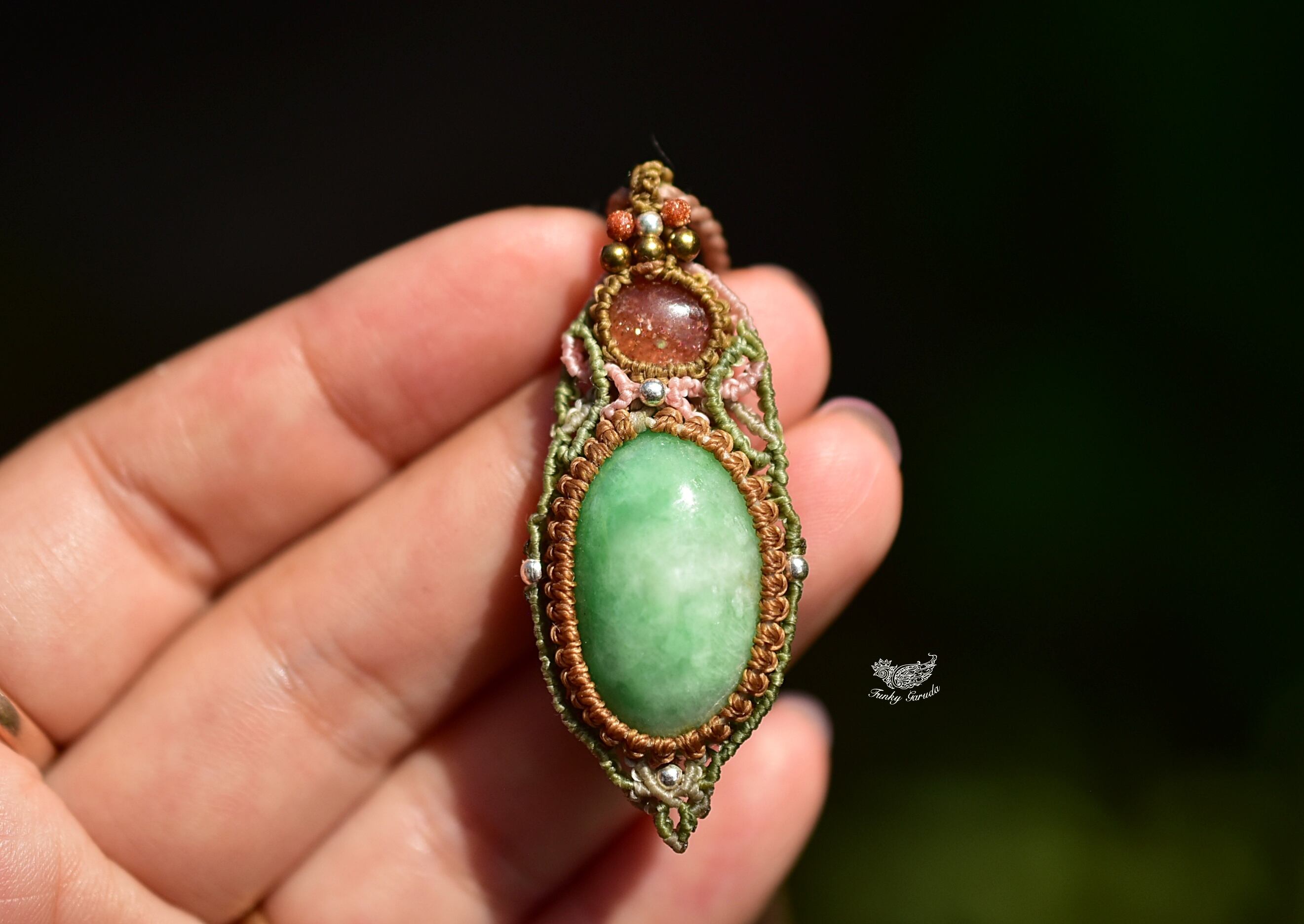 大地と太陽★サンストーン+翡翠★マクラメネックレス808