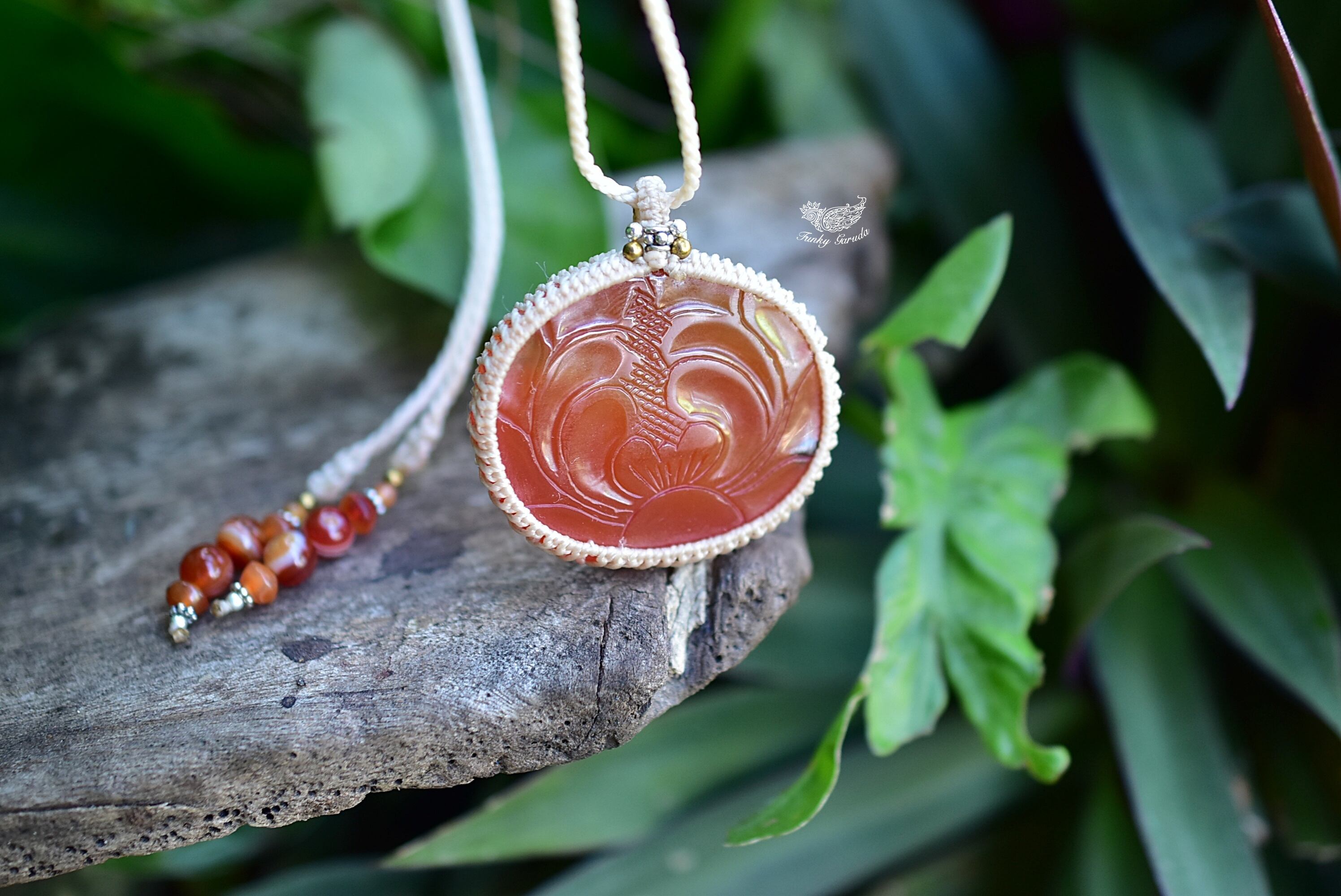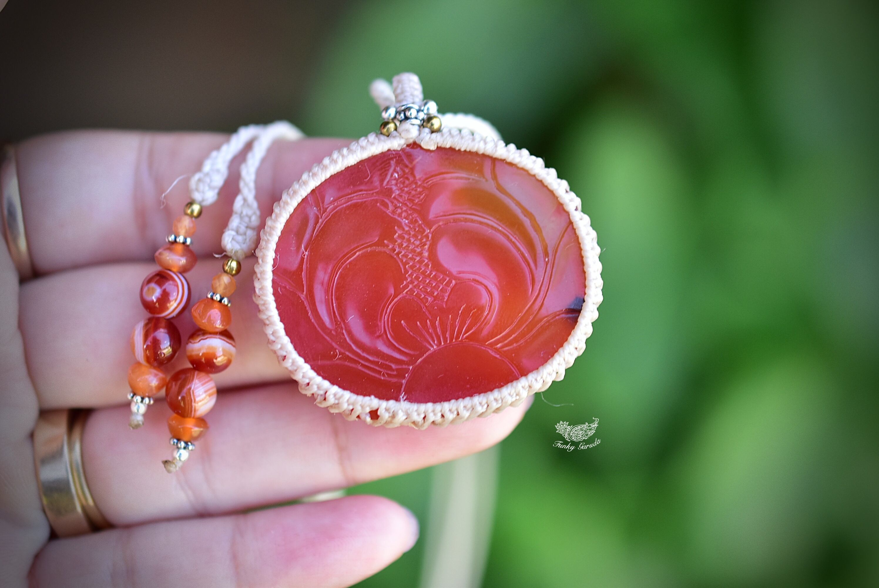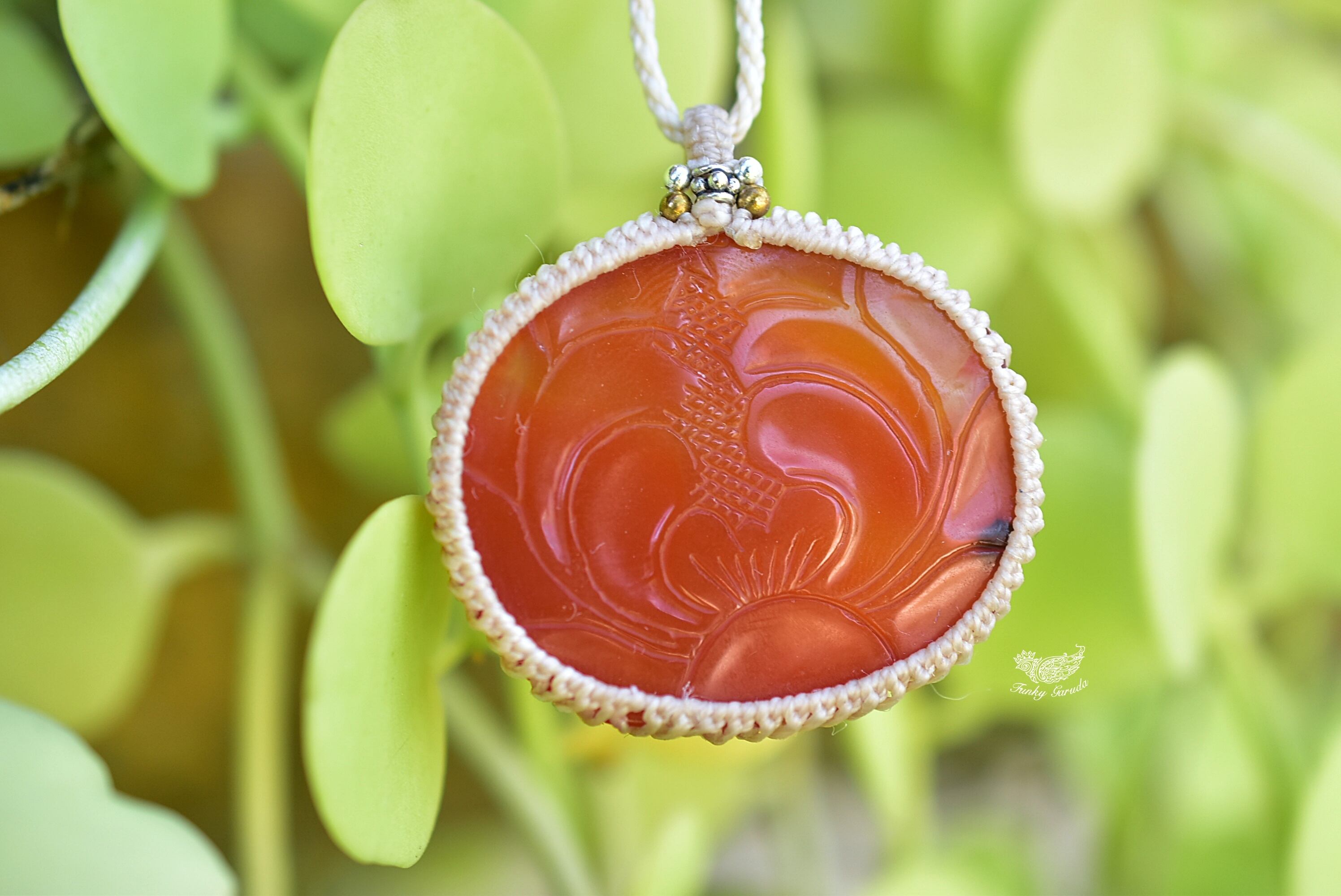 ◆このたびはナチュラルホワイト色の蝋引き糸を使用しマクラメ編み装飾を施しました。
