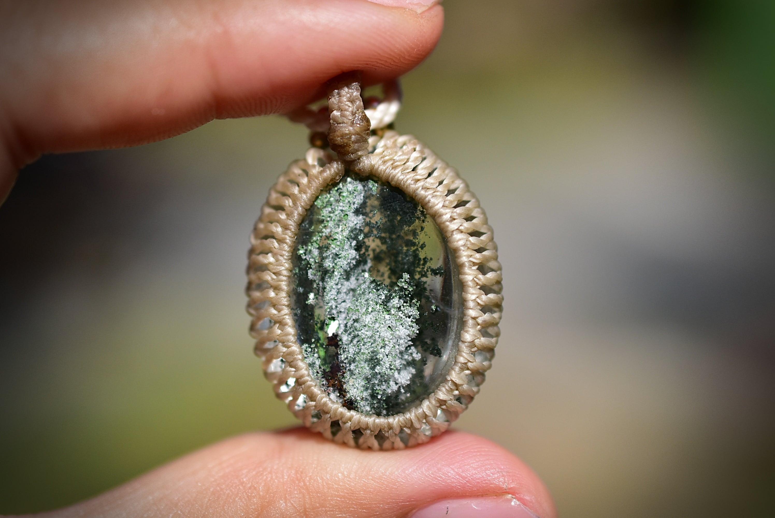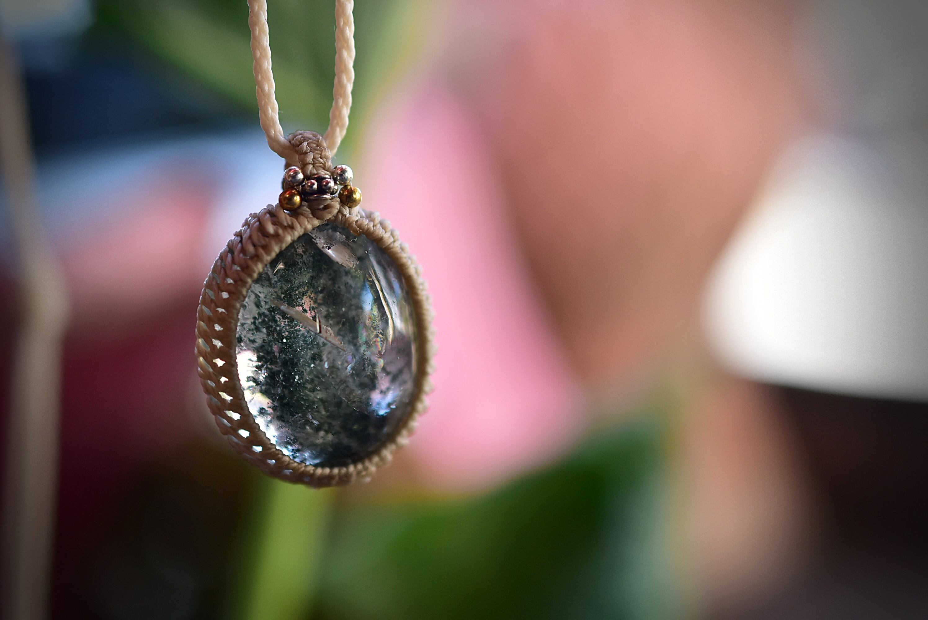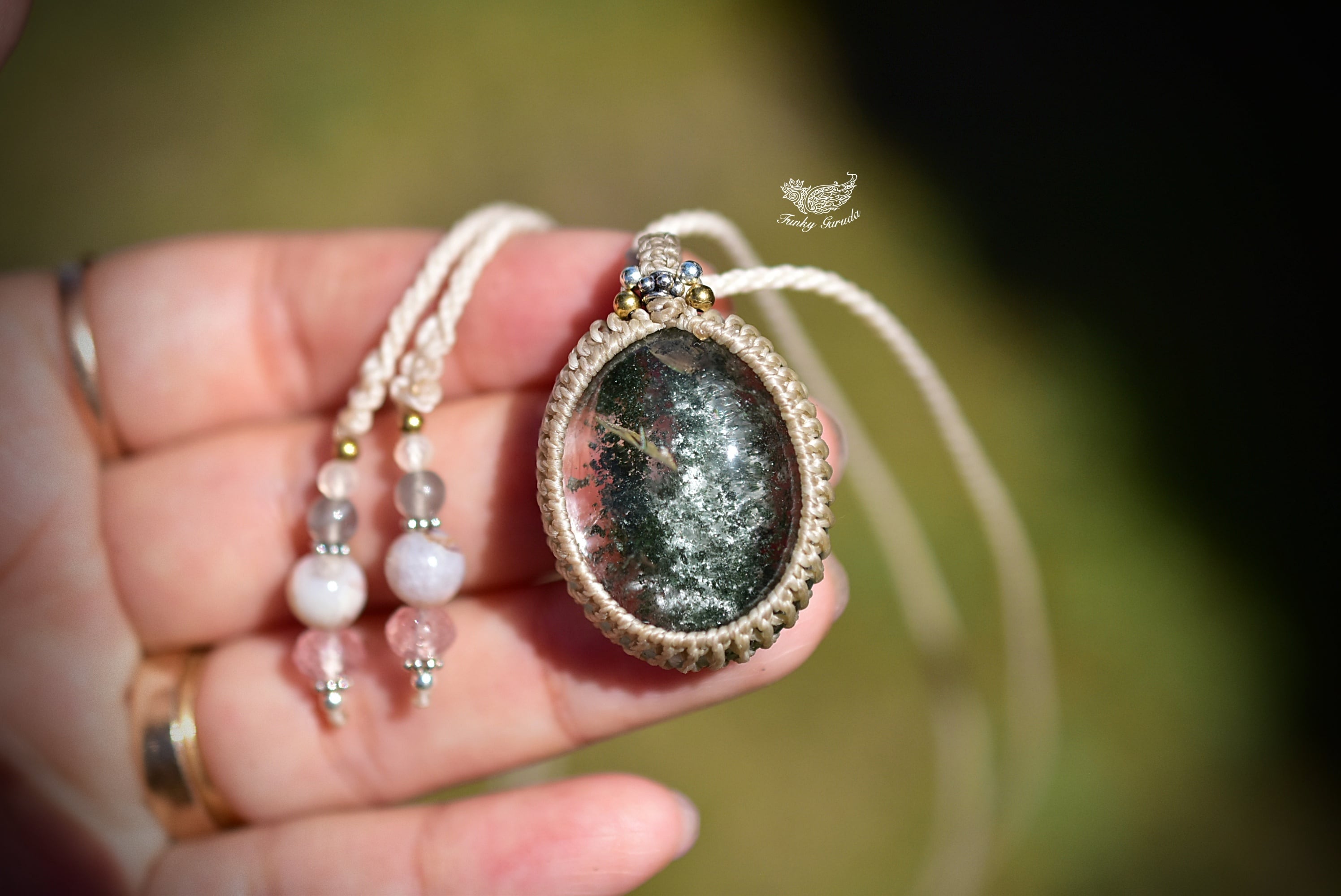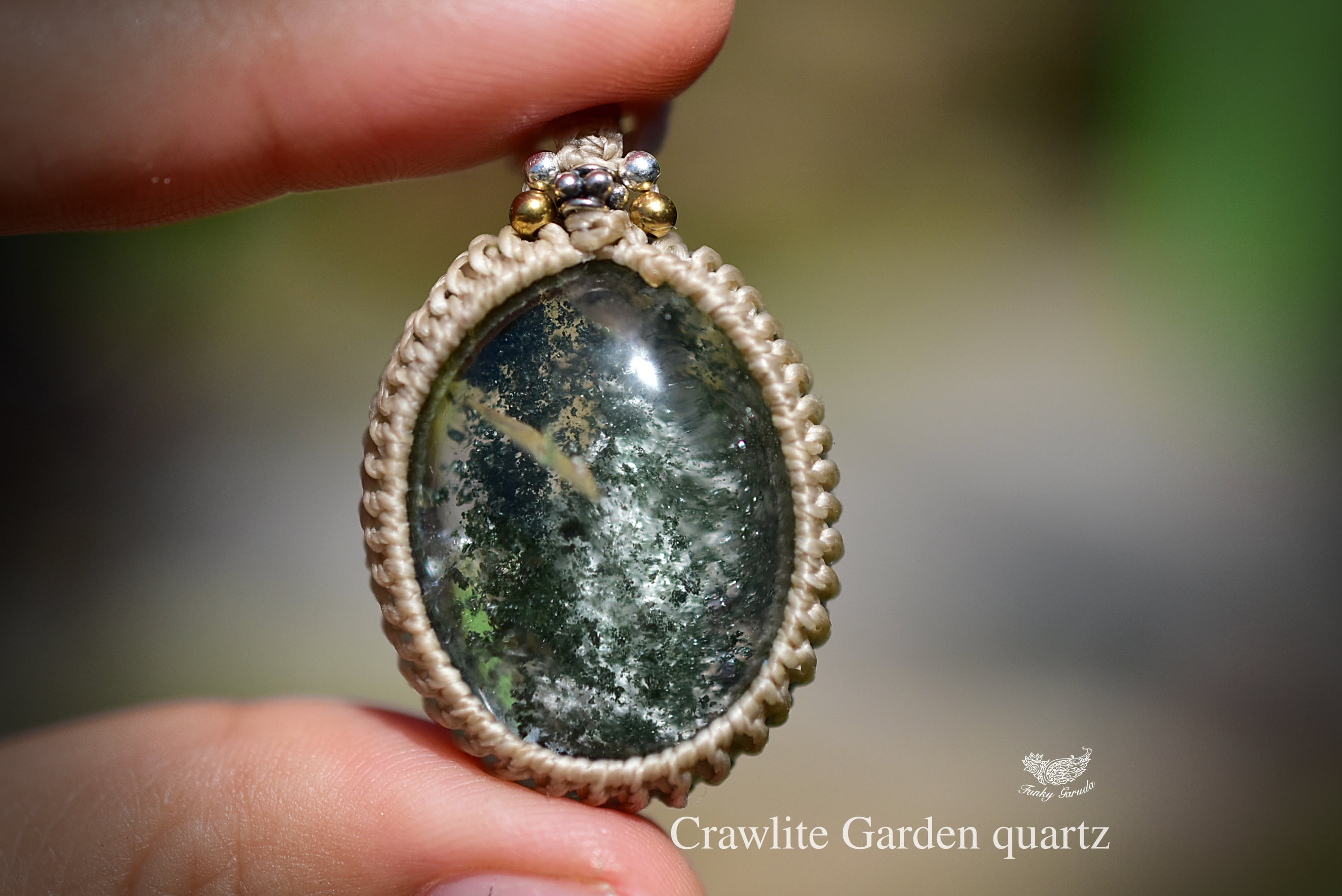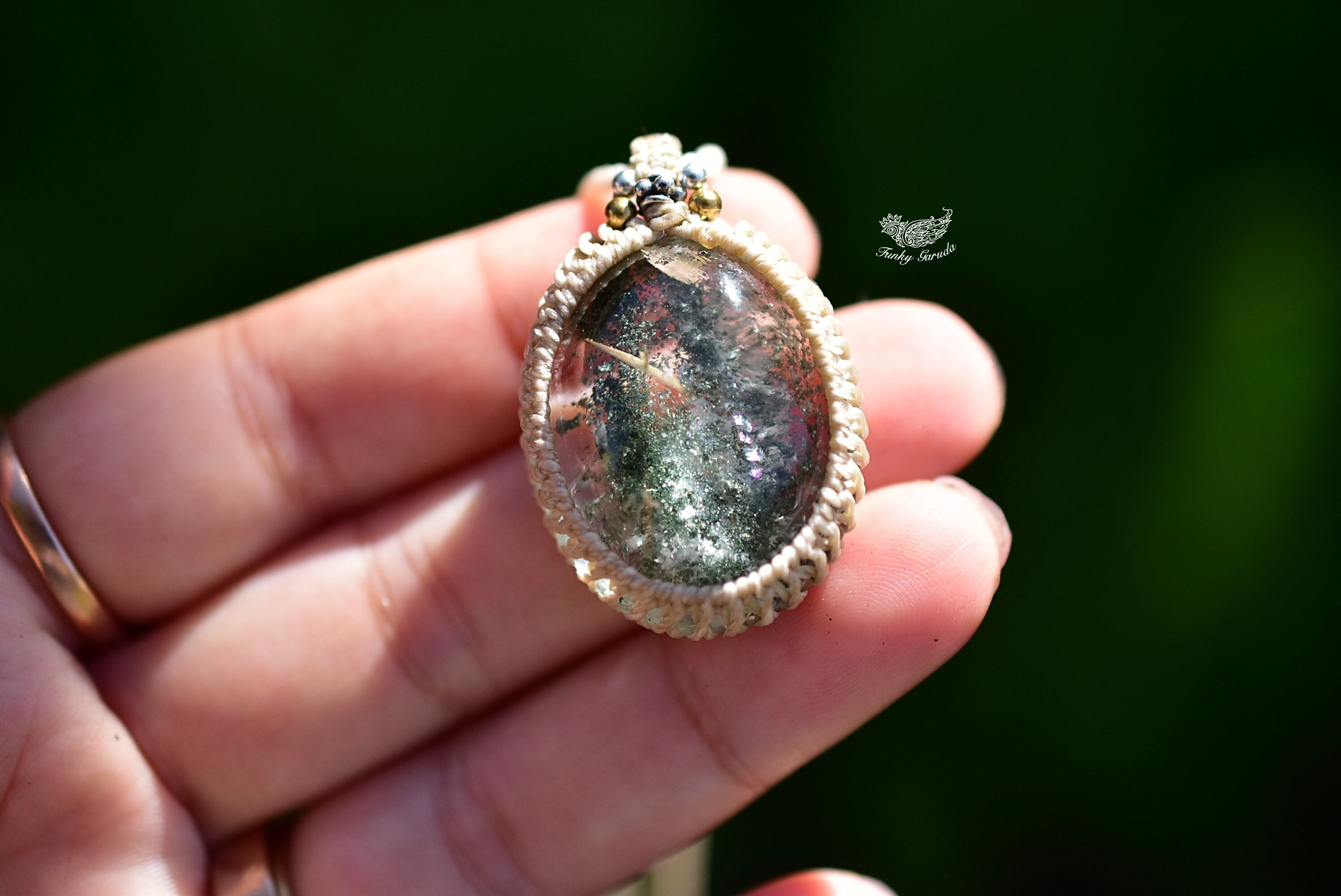 虹入りクローライト★ガーデンクォーツマクラメペンダント819