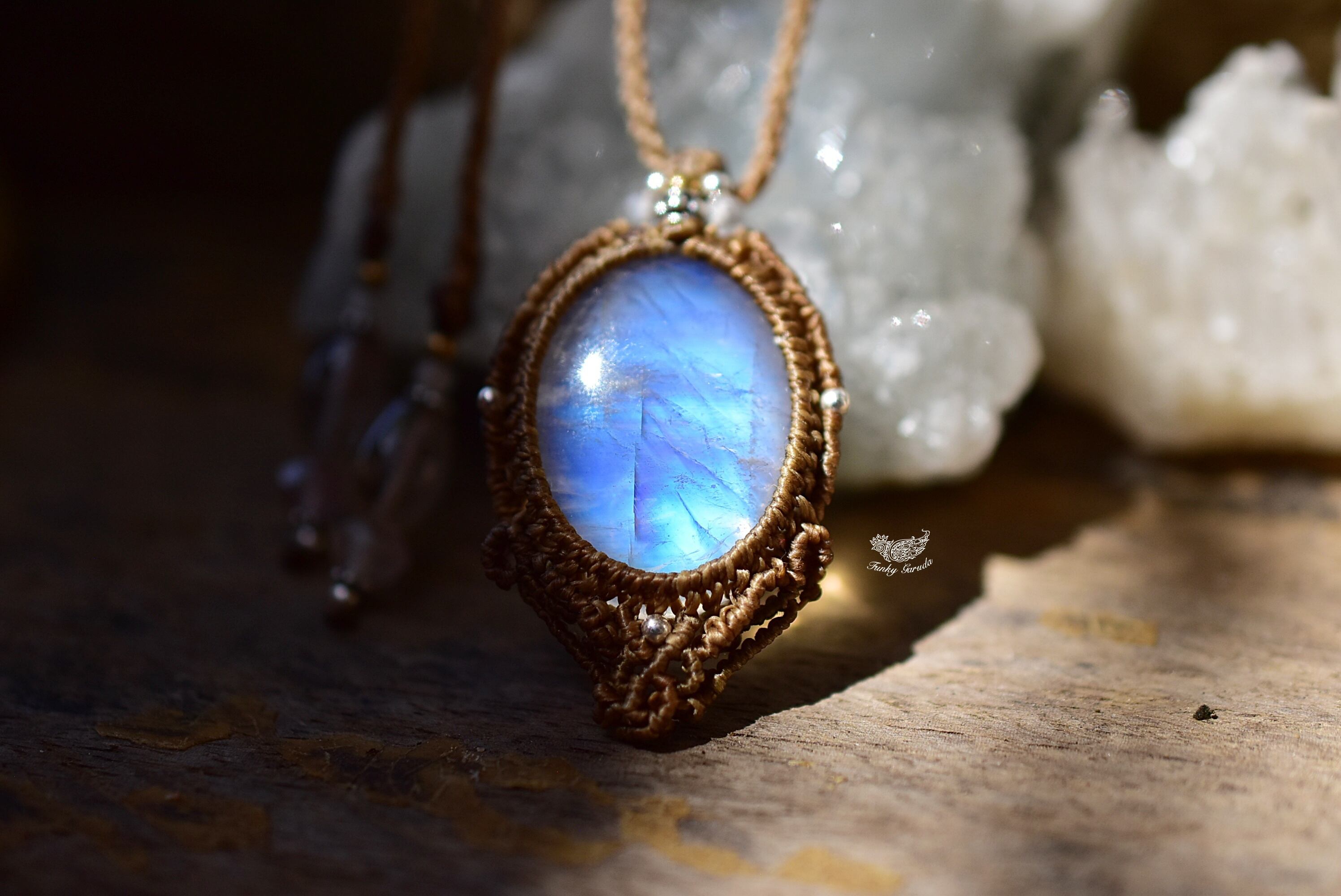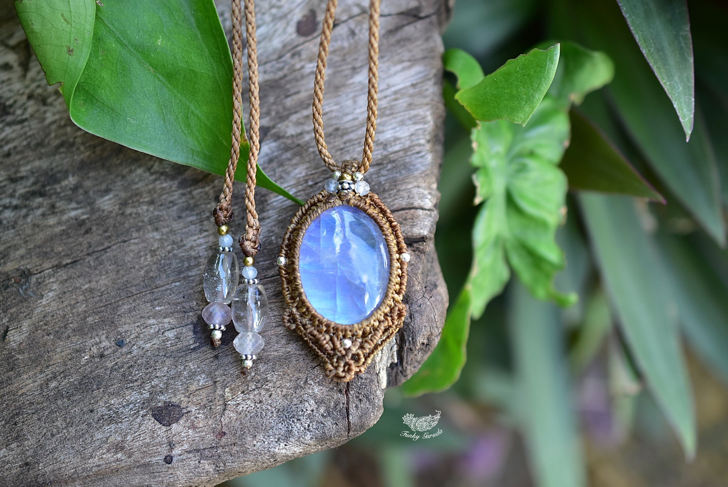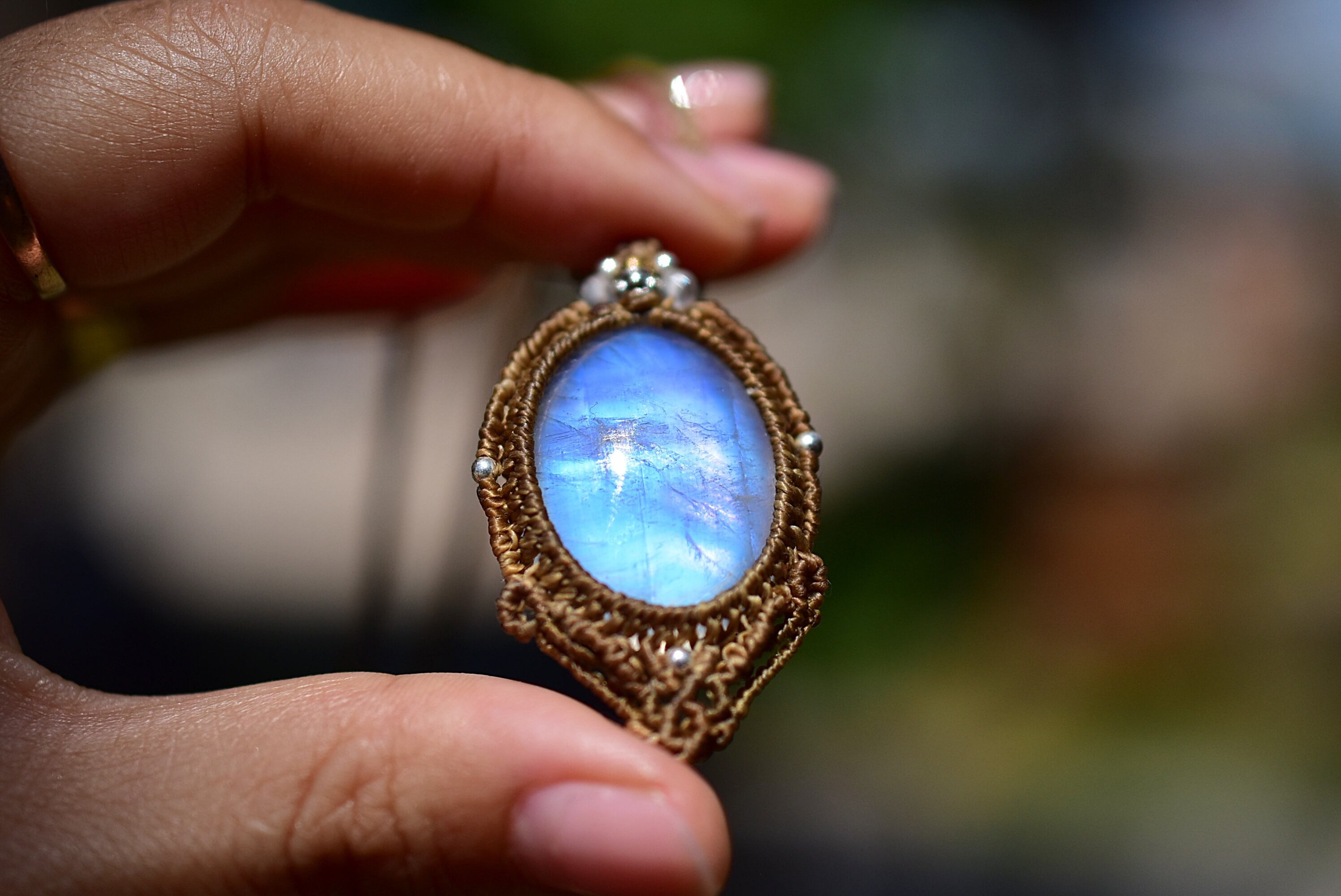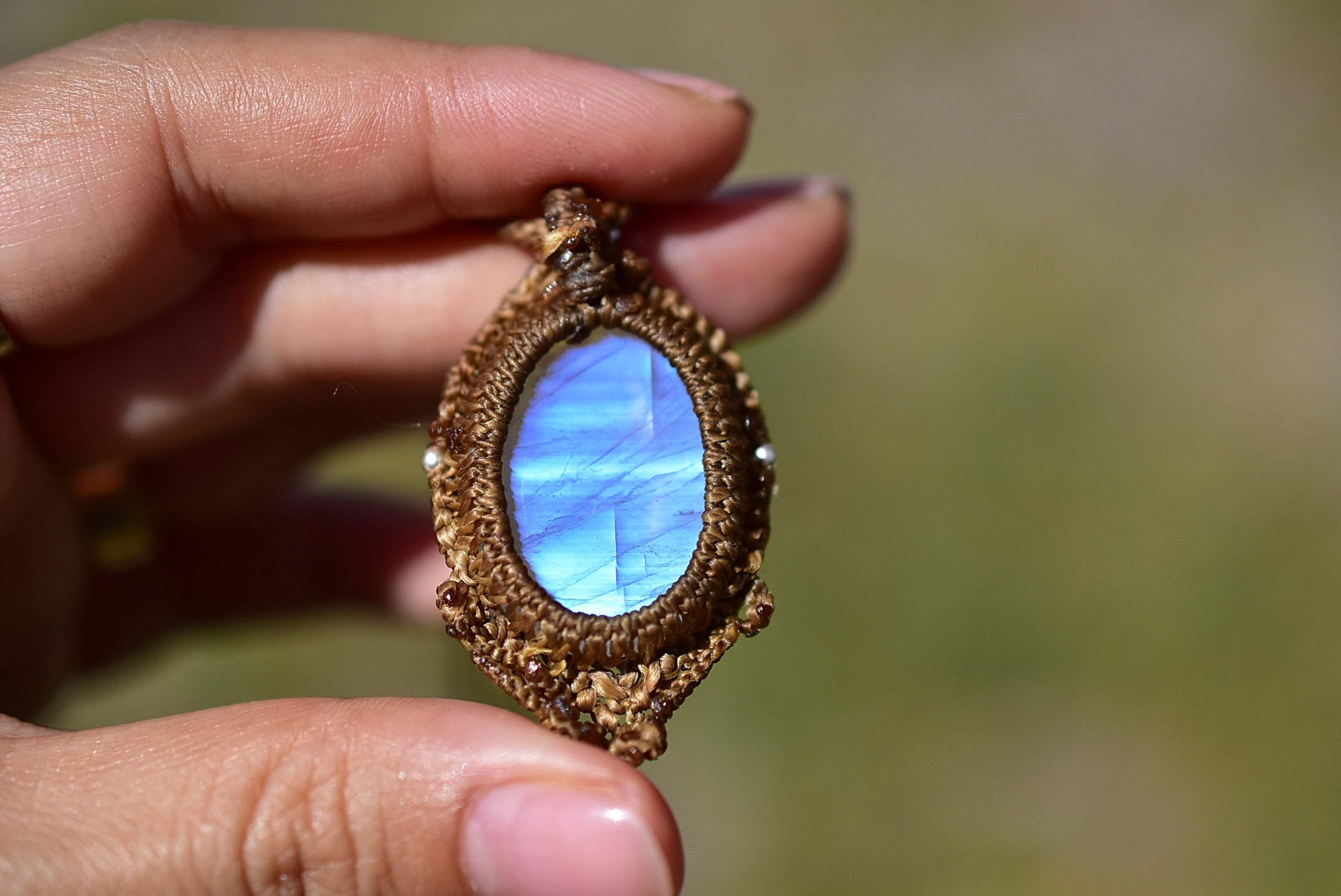 暗闇ブルー★レインボームーンストーン マクラメペンダント826