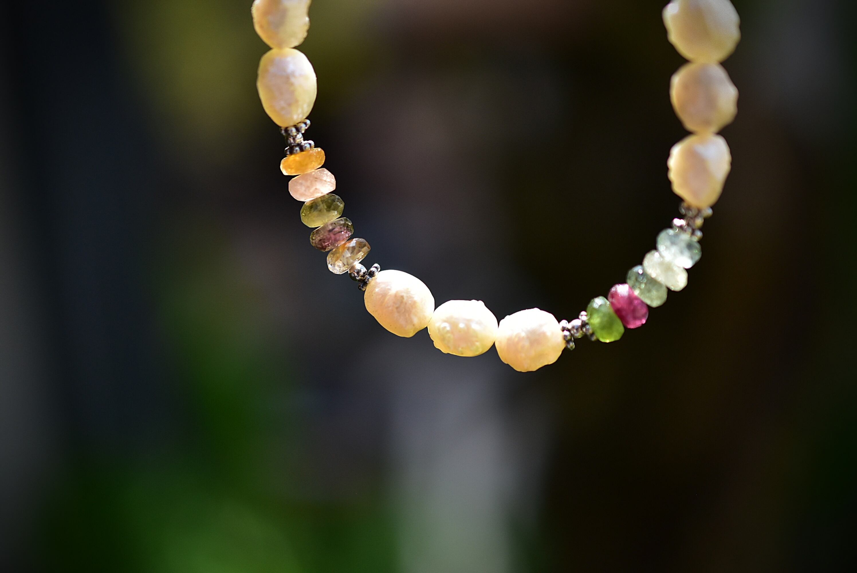 天然石トルマリンをふんだんに使用したネックレスを制作しました。