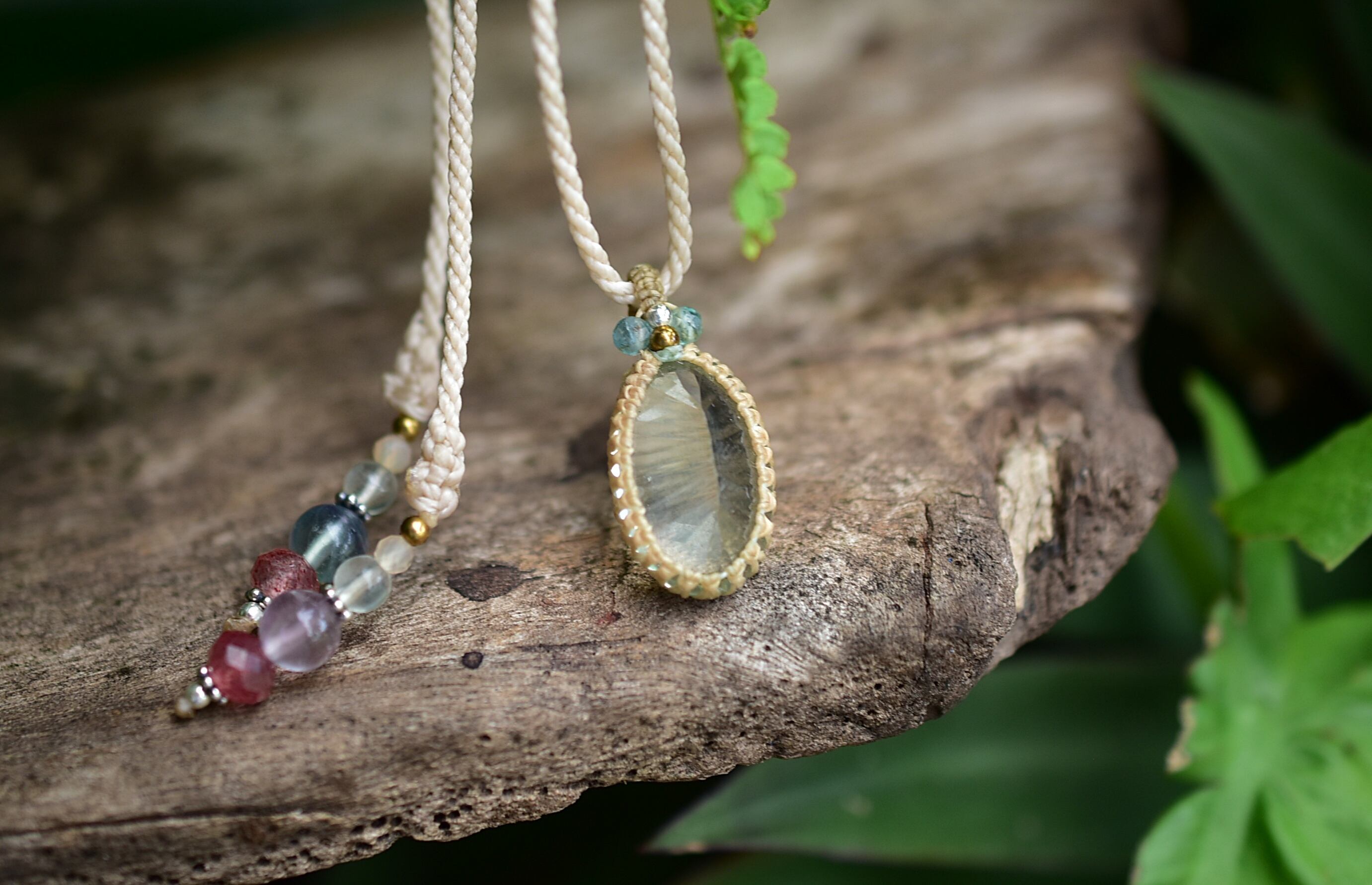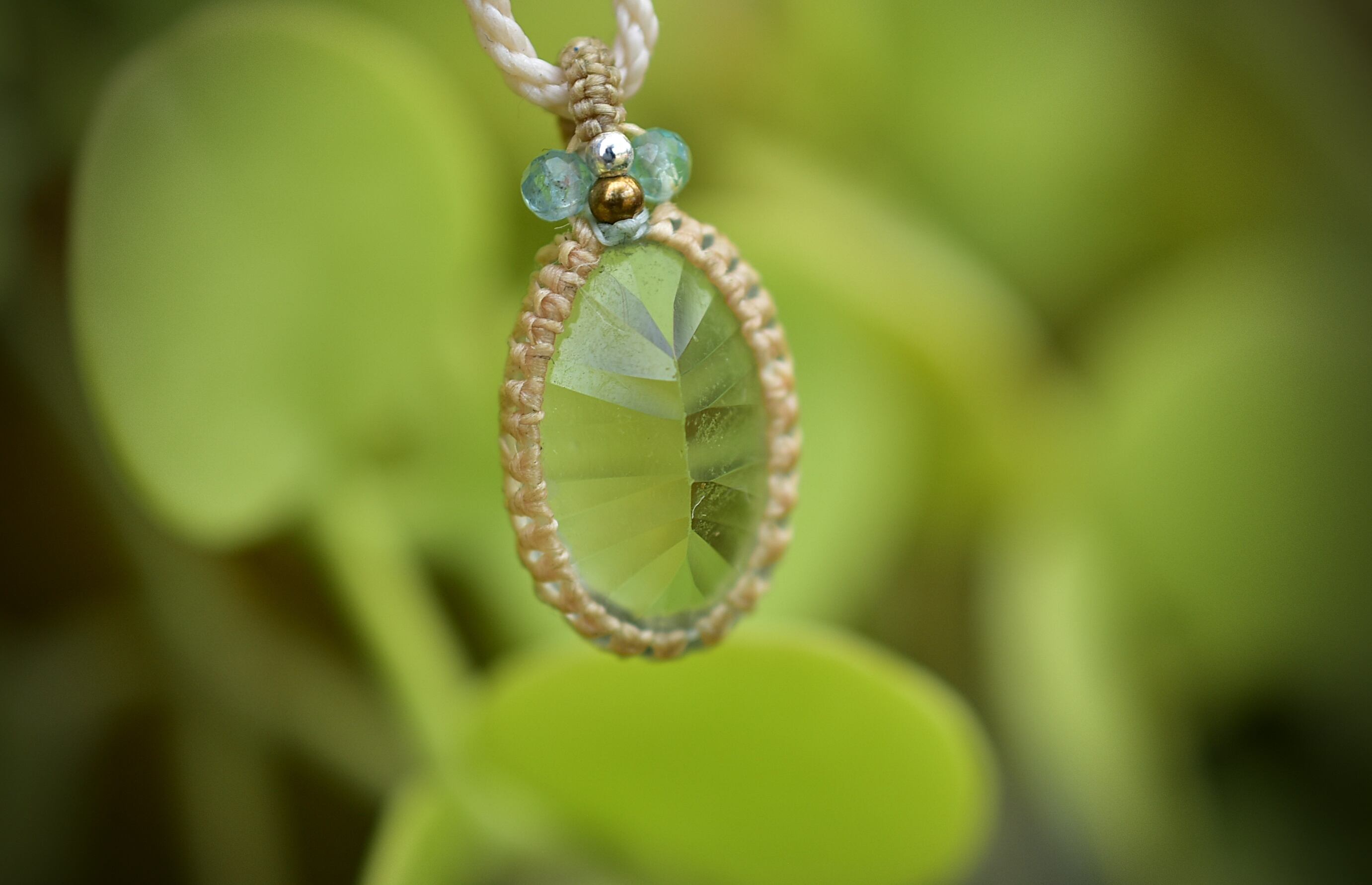 プラシオライト(グリーンアメジスト )マクラメネックレス 848