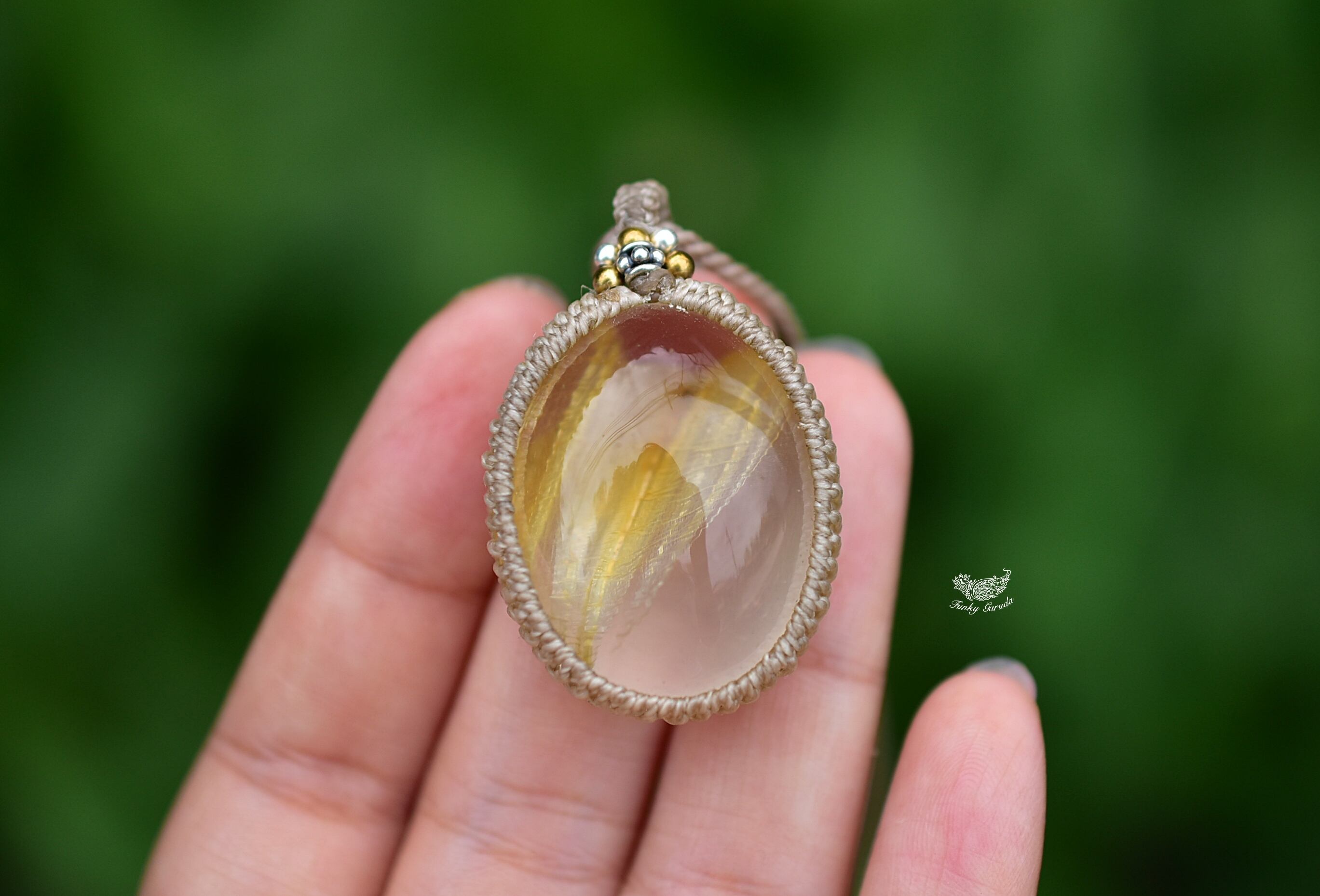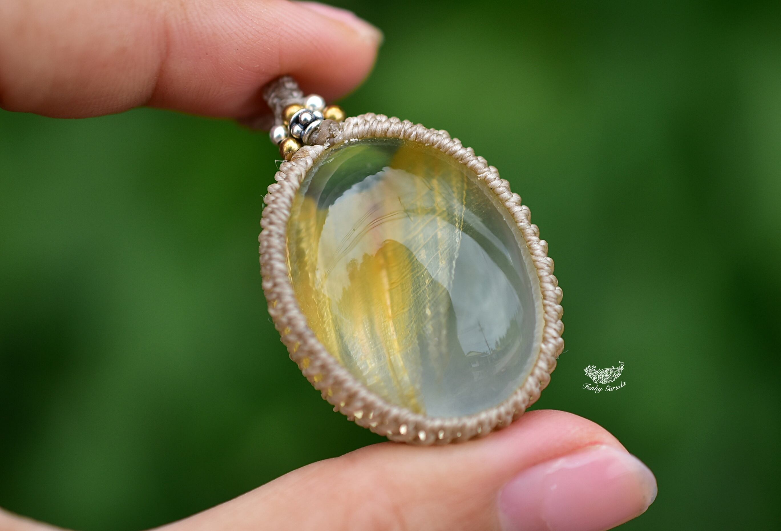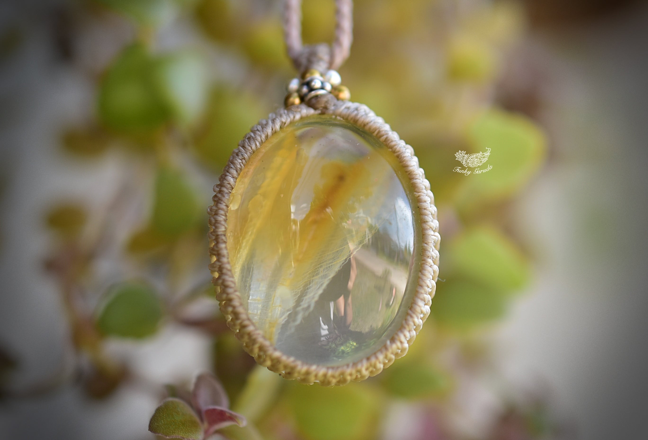 黄金の立体★ガーデンクォーツ マクラメネックレス835