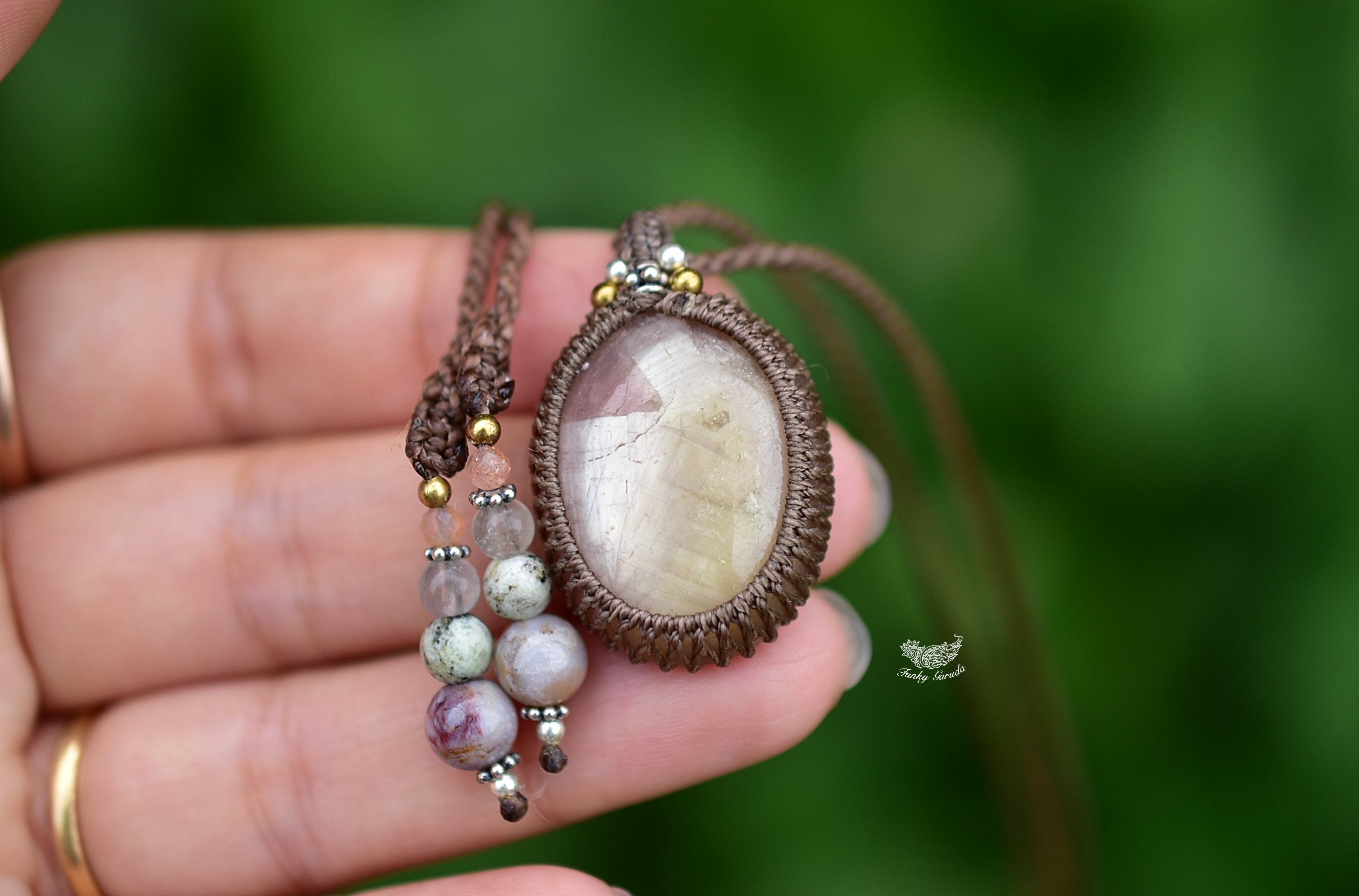 シルキーコランダム★イエローサファイア マクラメネックレス849