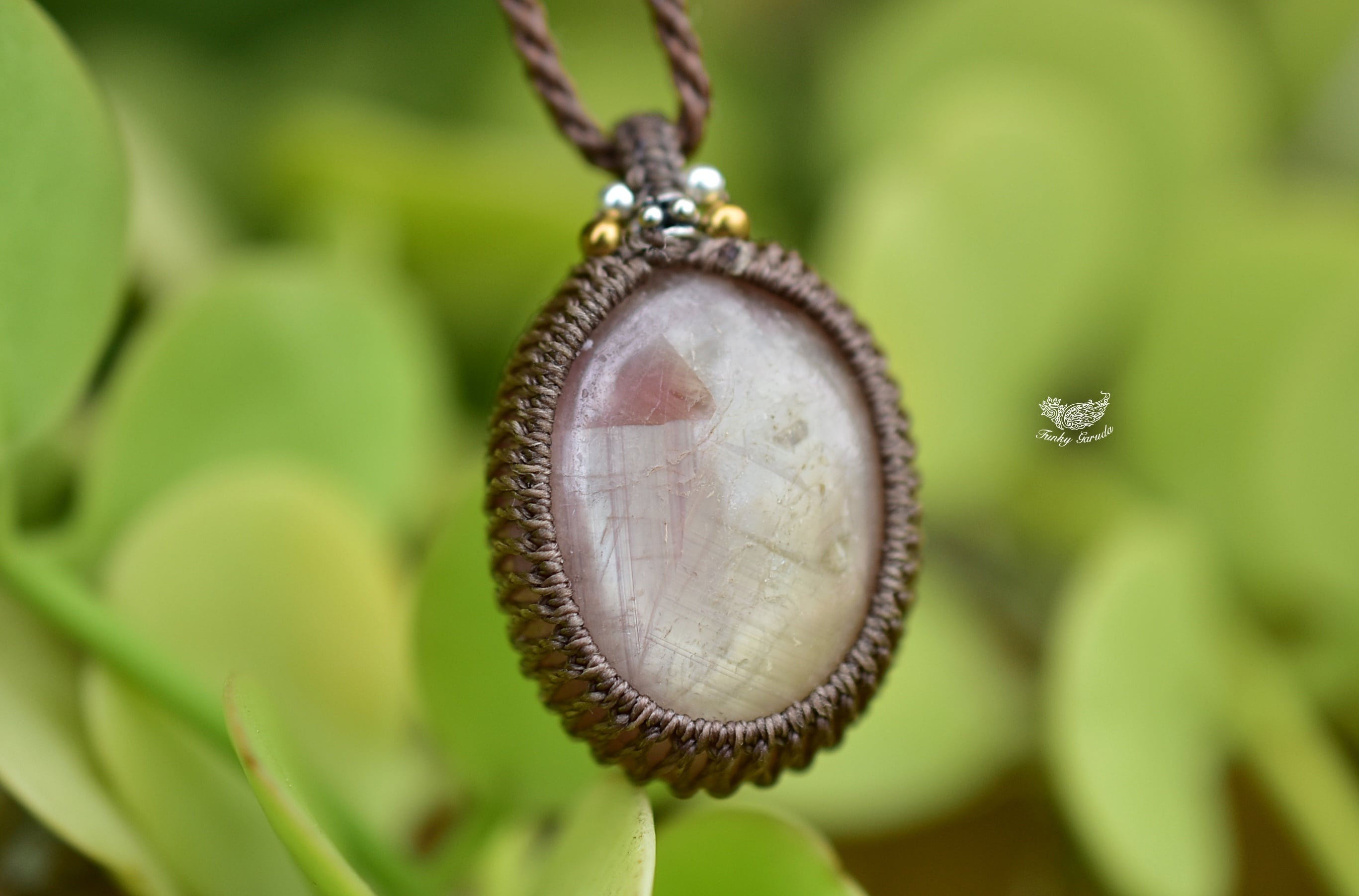 ◆このたびはテディベアブラウン色の蝋引き糸を使用しマクラメ編み装飾を施しました。
