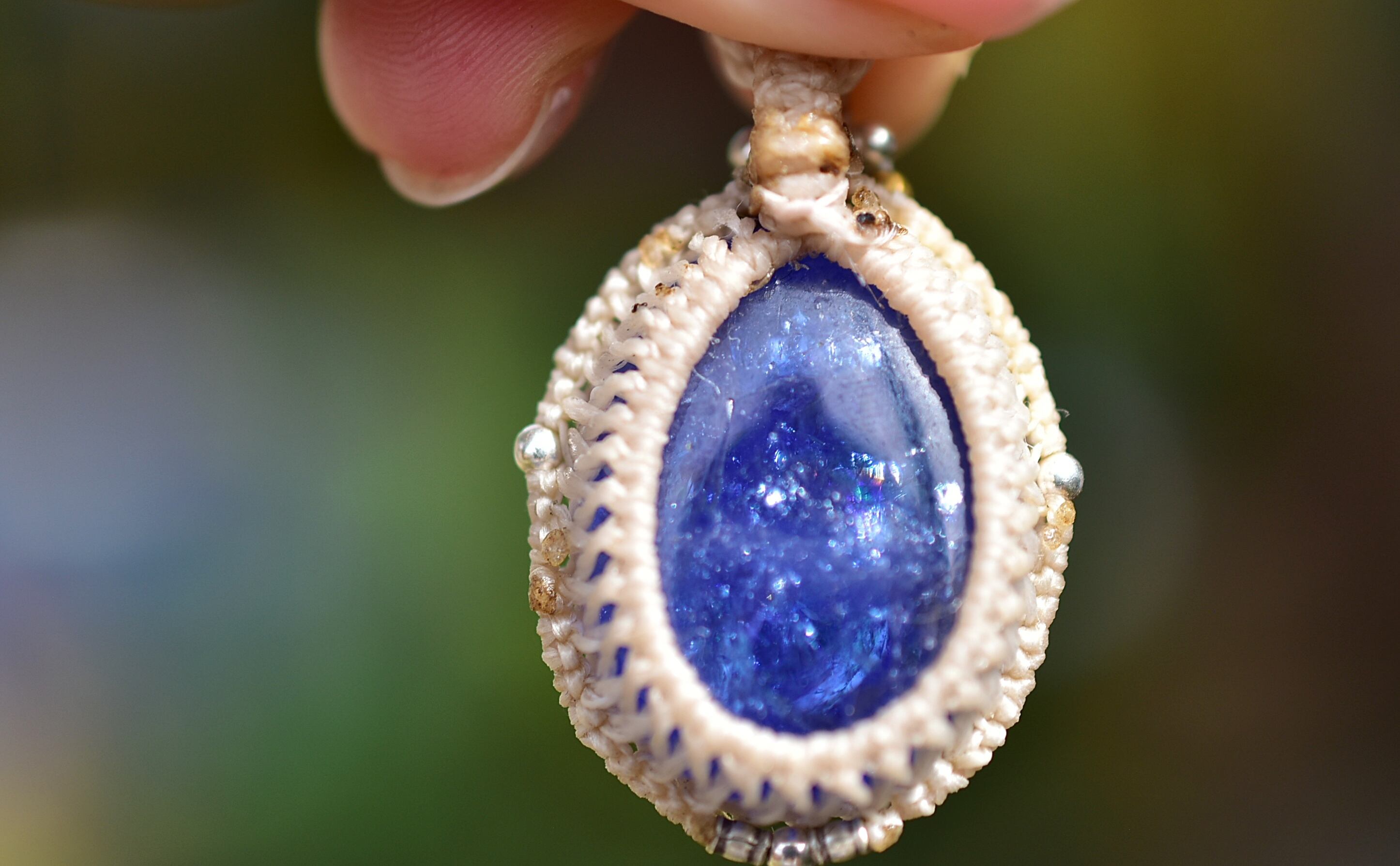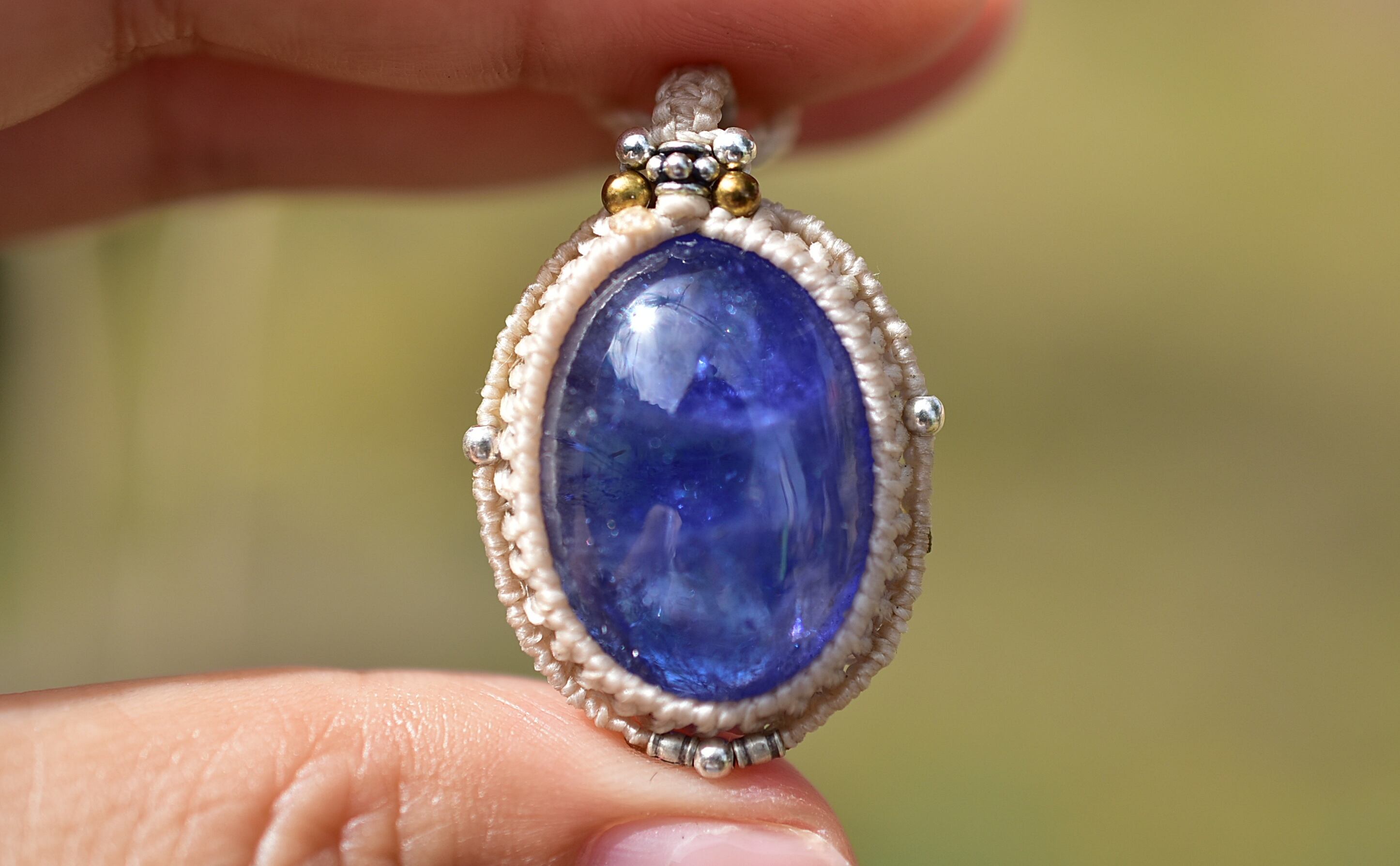 高品質で大きなタンザナイトをマクラメペンダントに仕上げました。