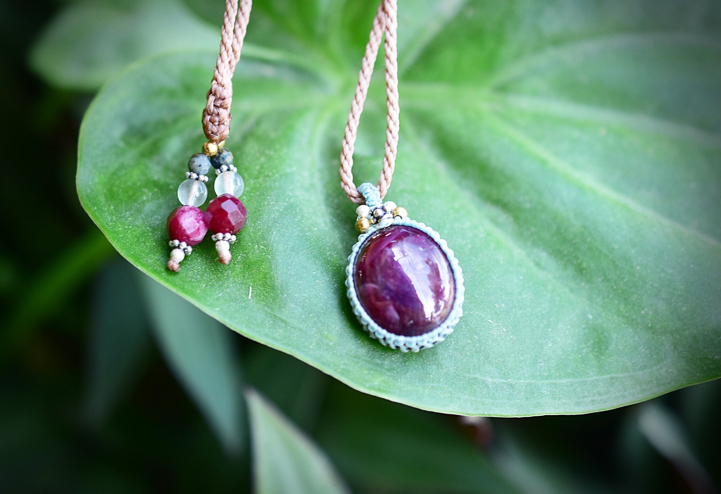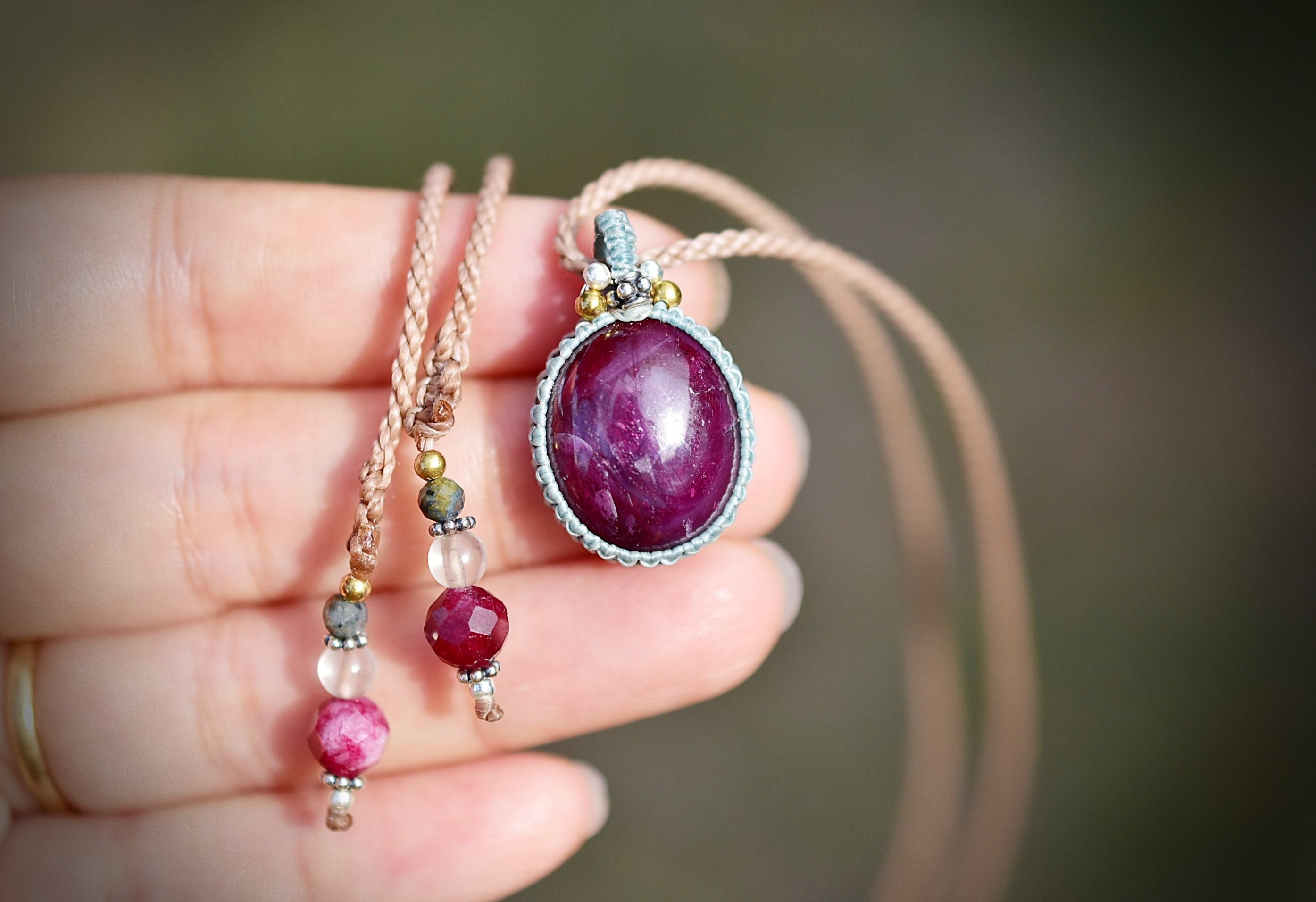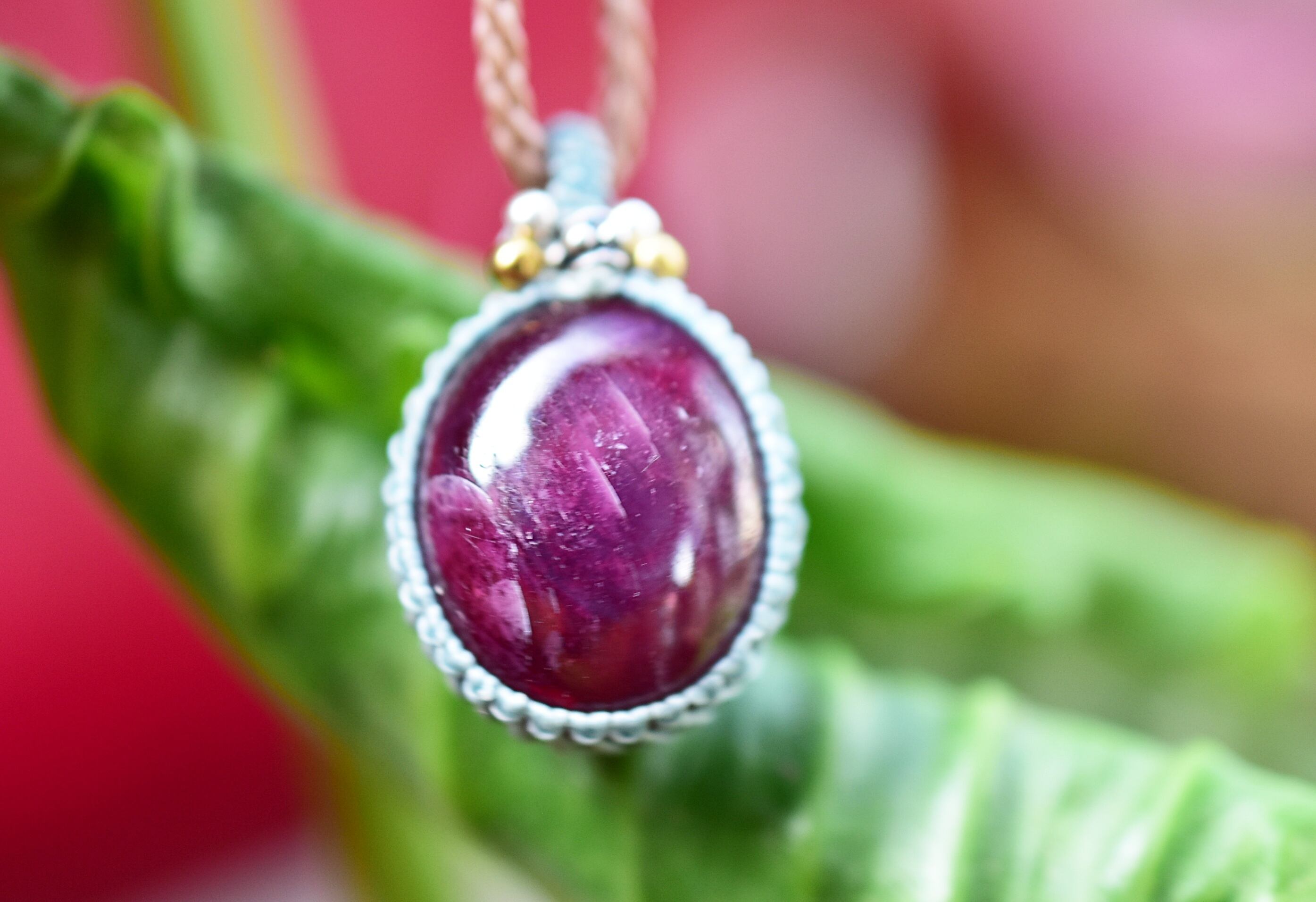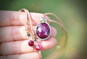 32.ct★レッドピンクルビー マクラメネックレス857