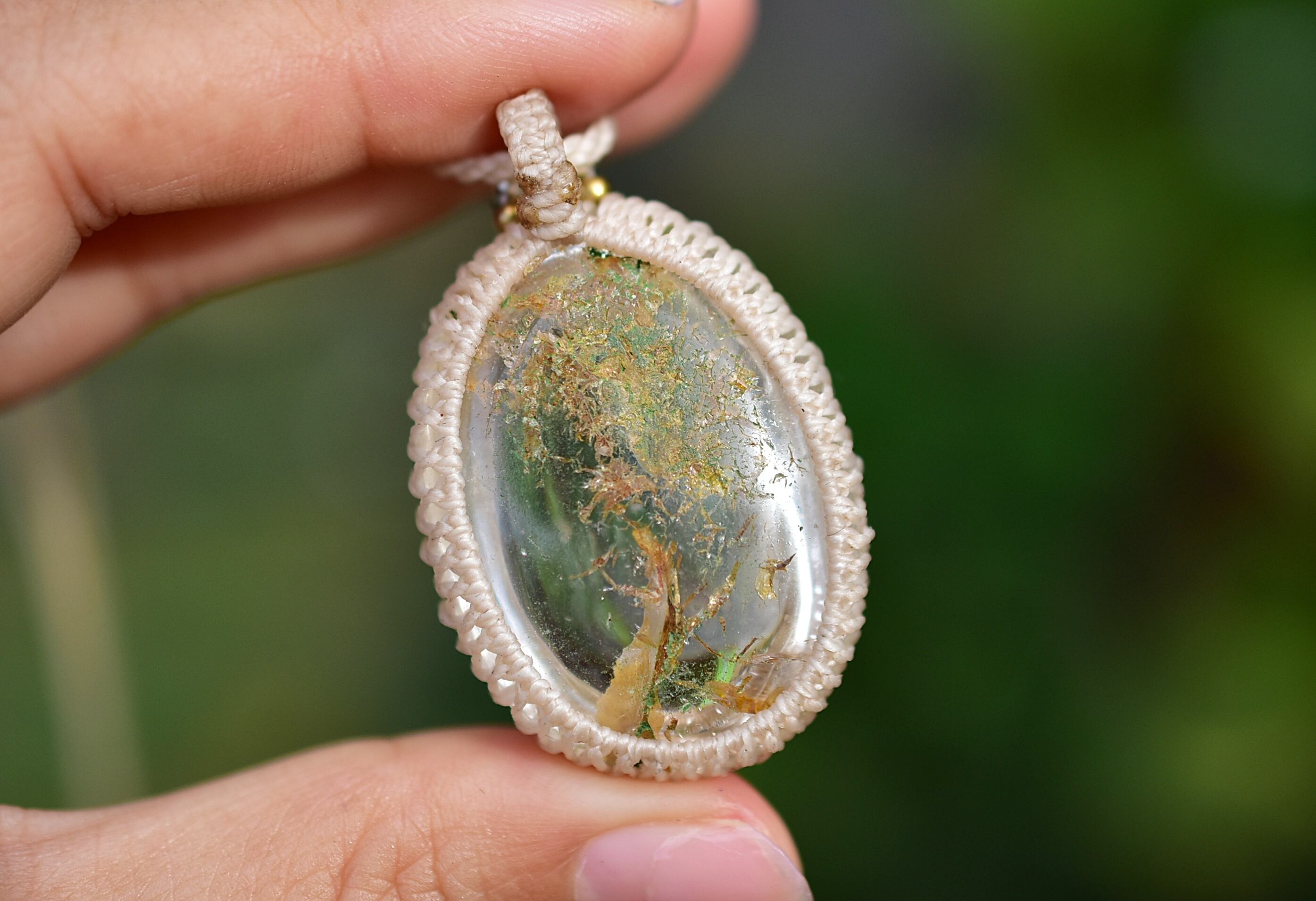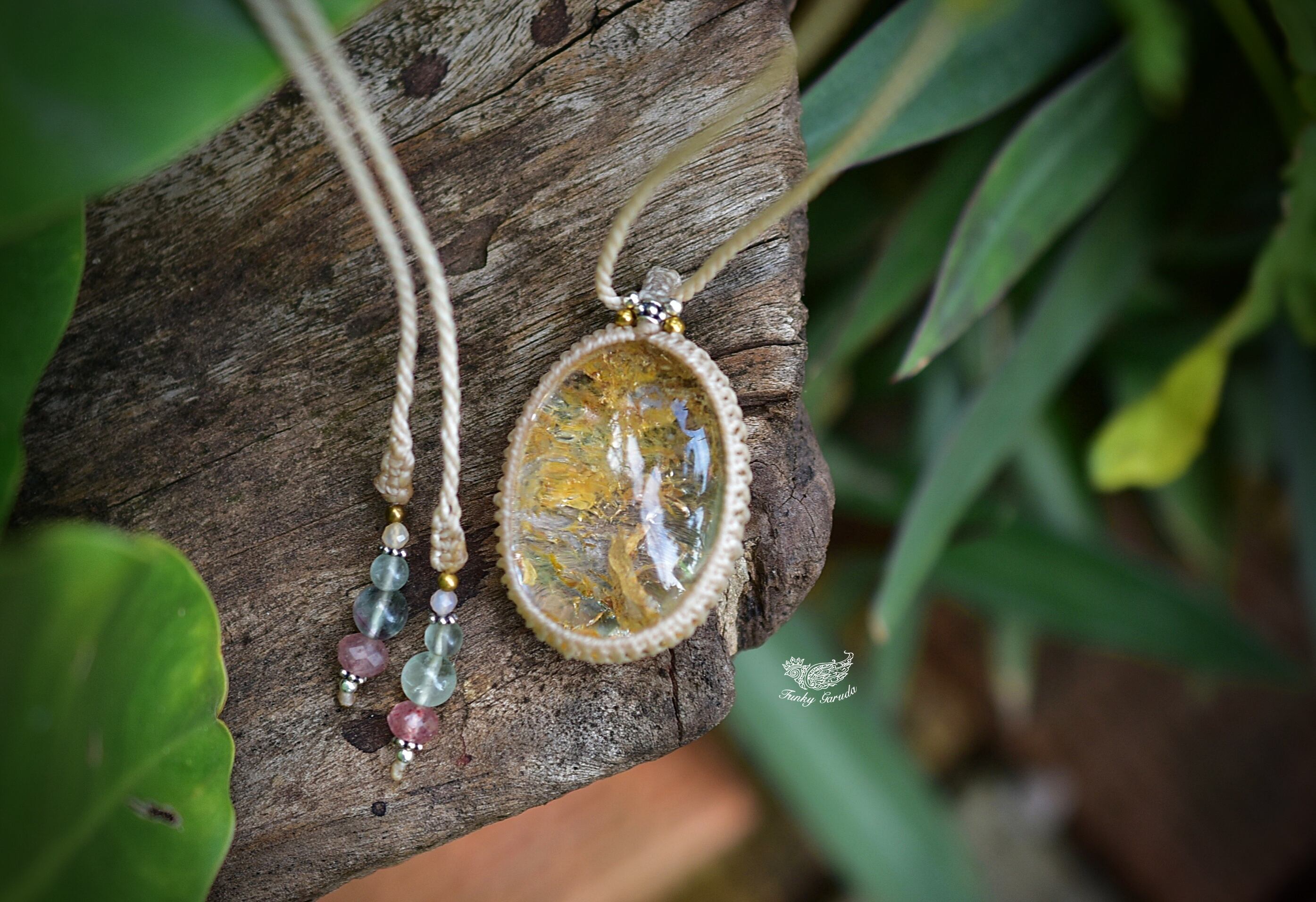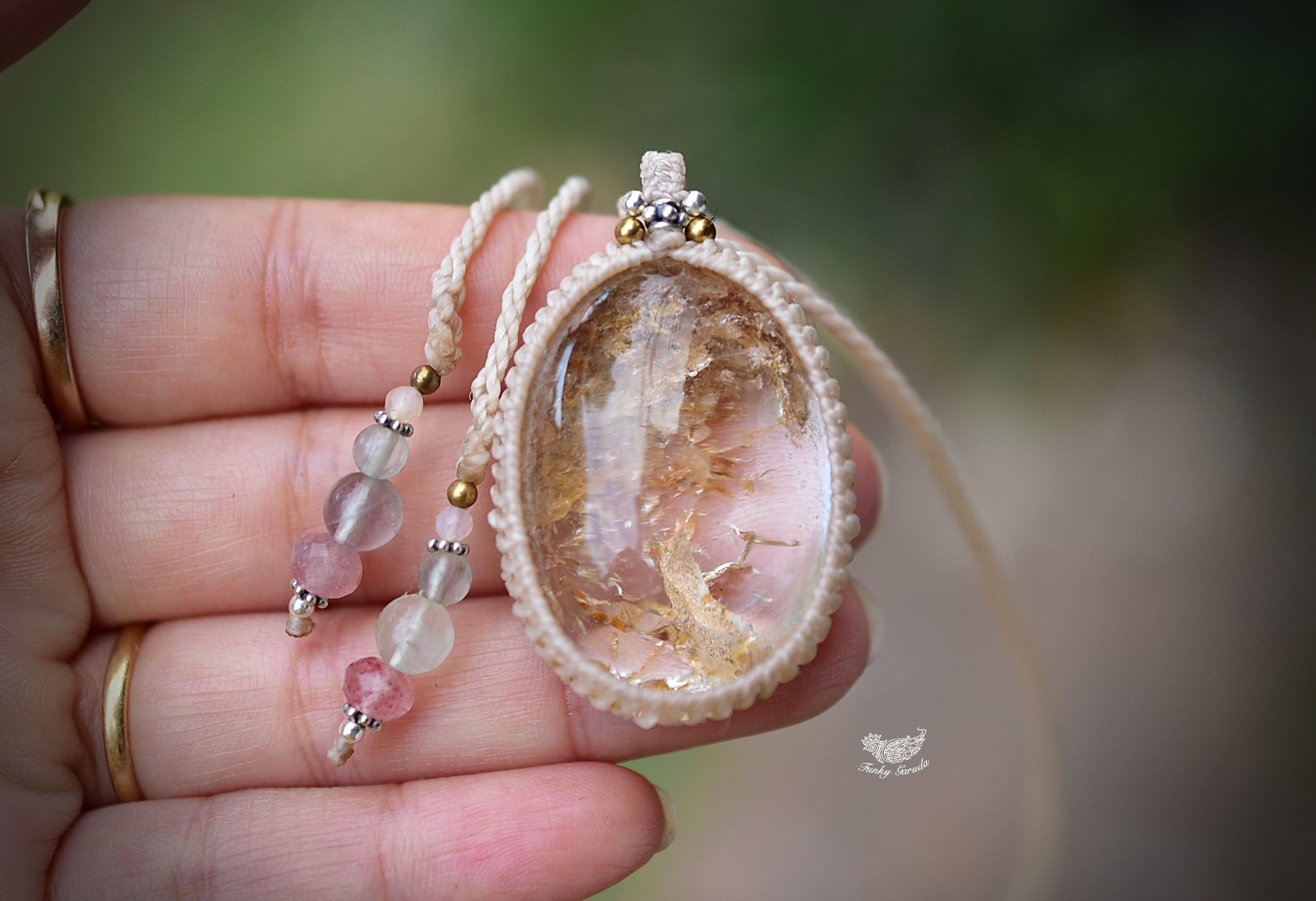 中粒★黄金クラック★ガーデンクォーツ マクラメネックレス858