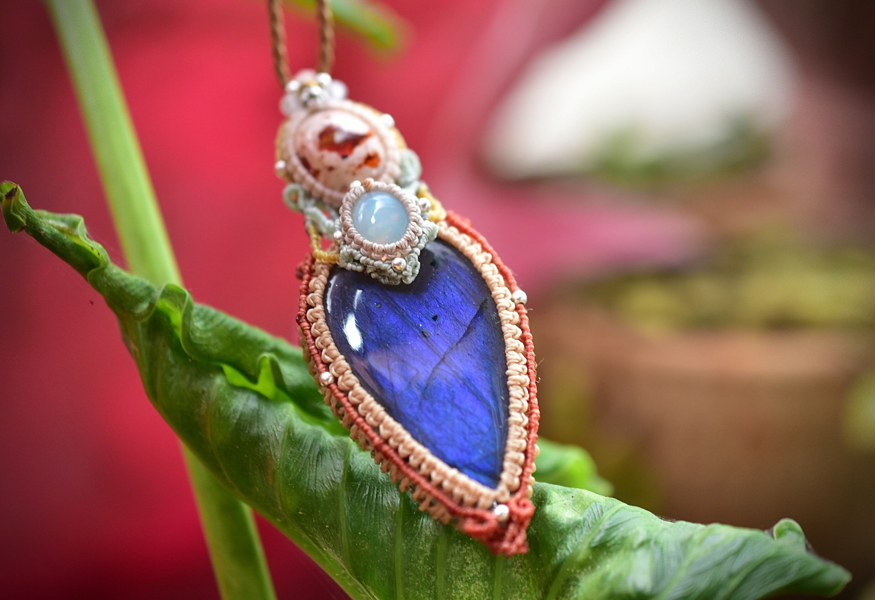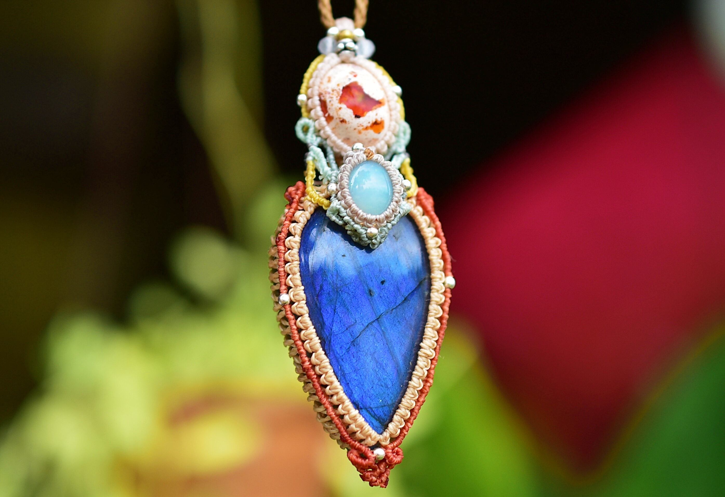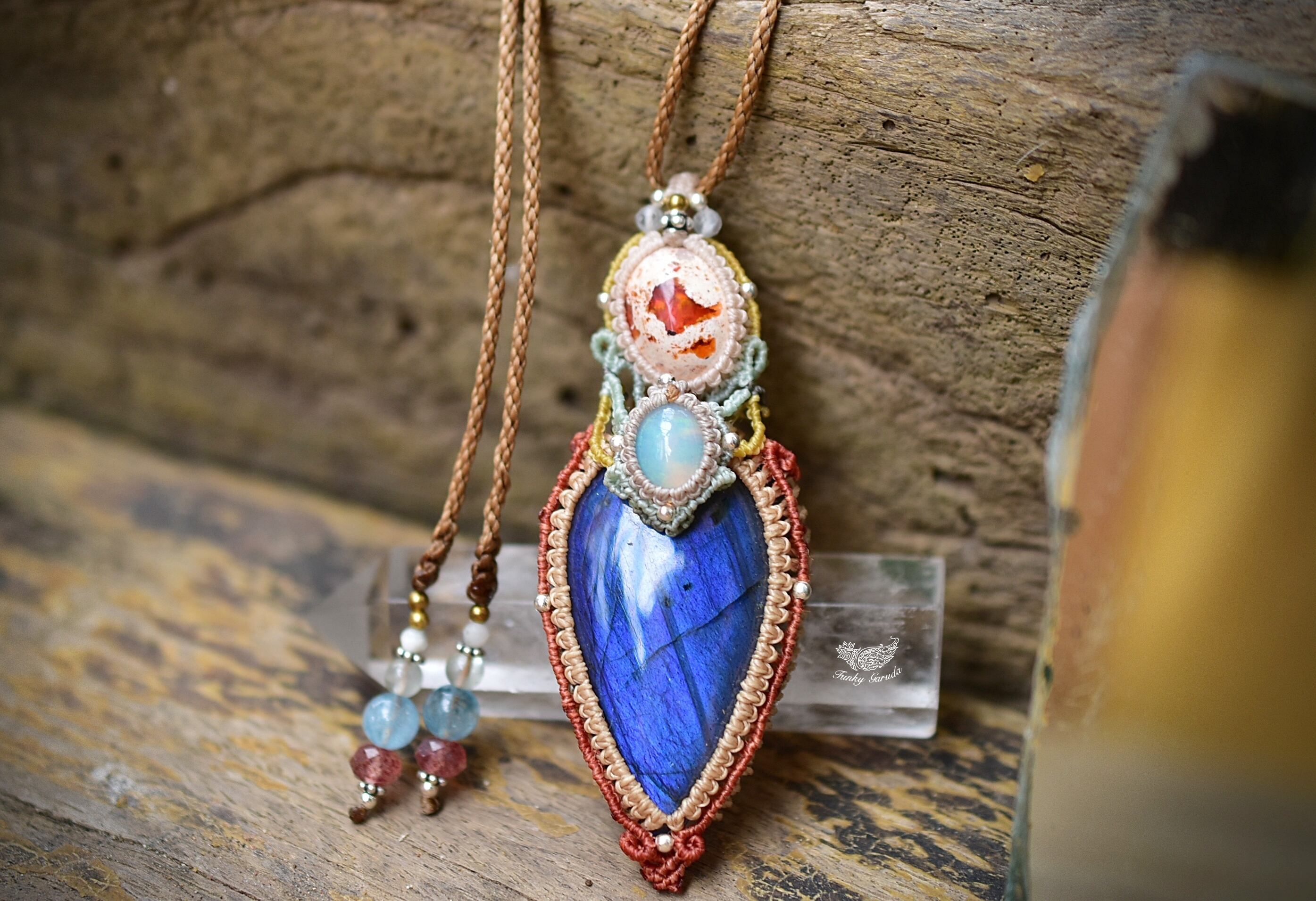 宇宙と親密★ラブラドライトマクラメネックレス869