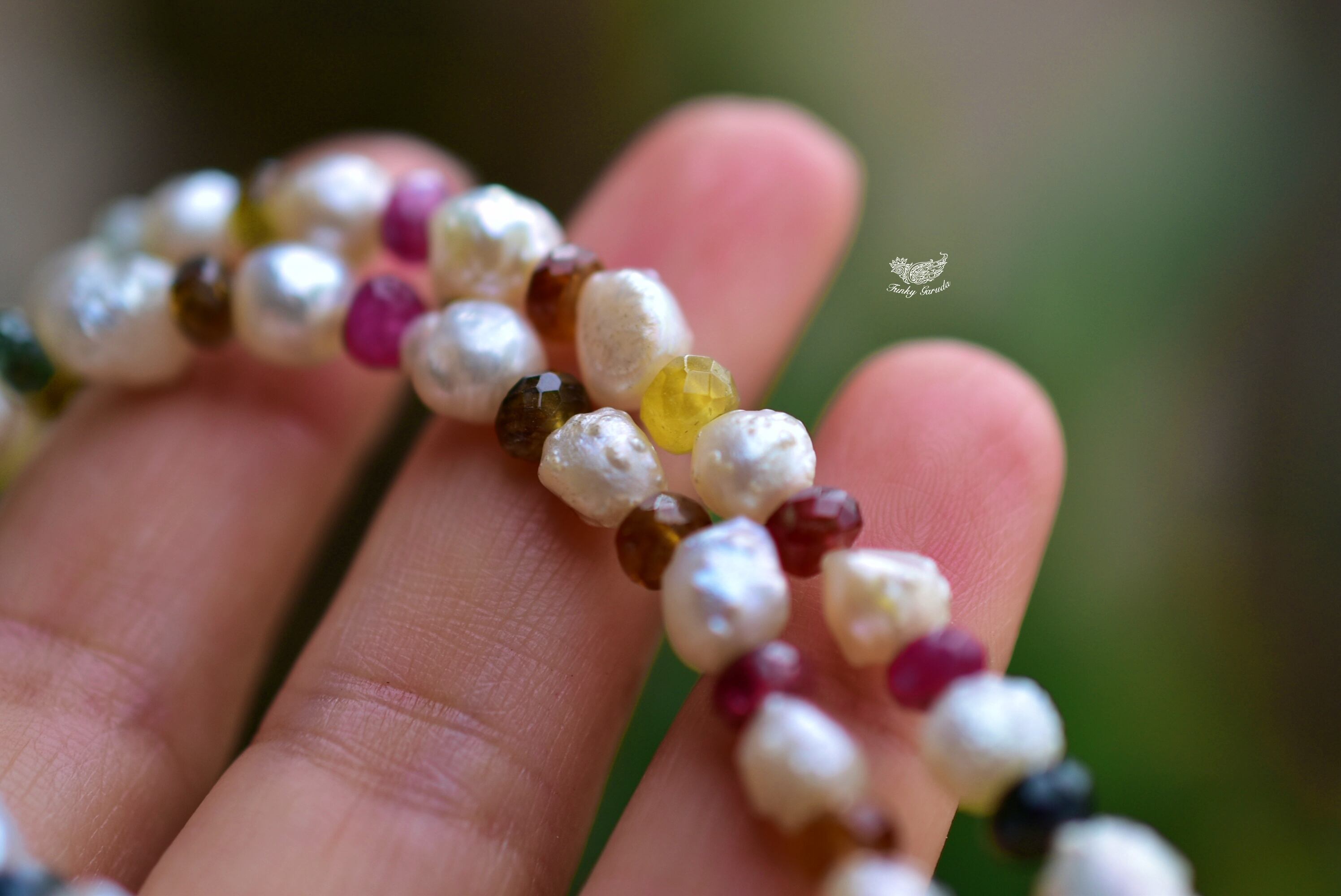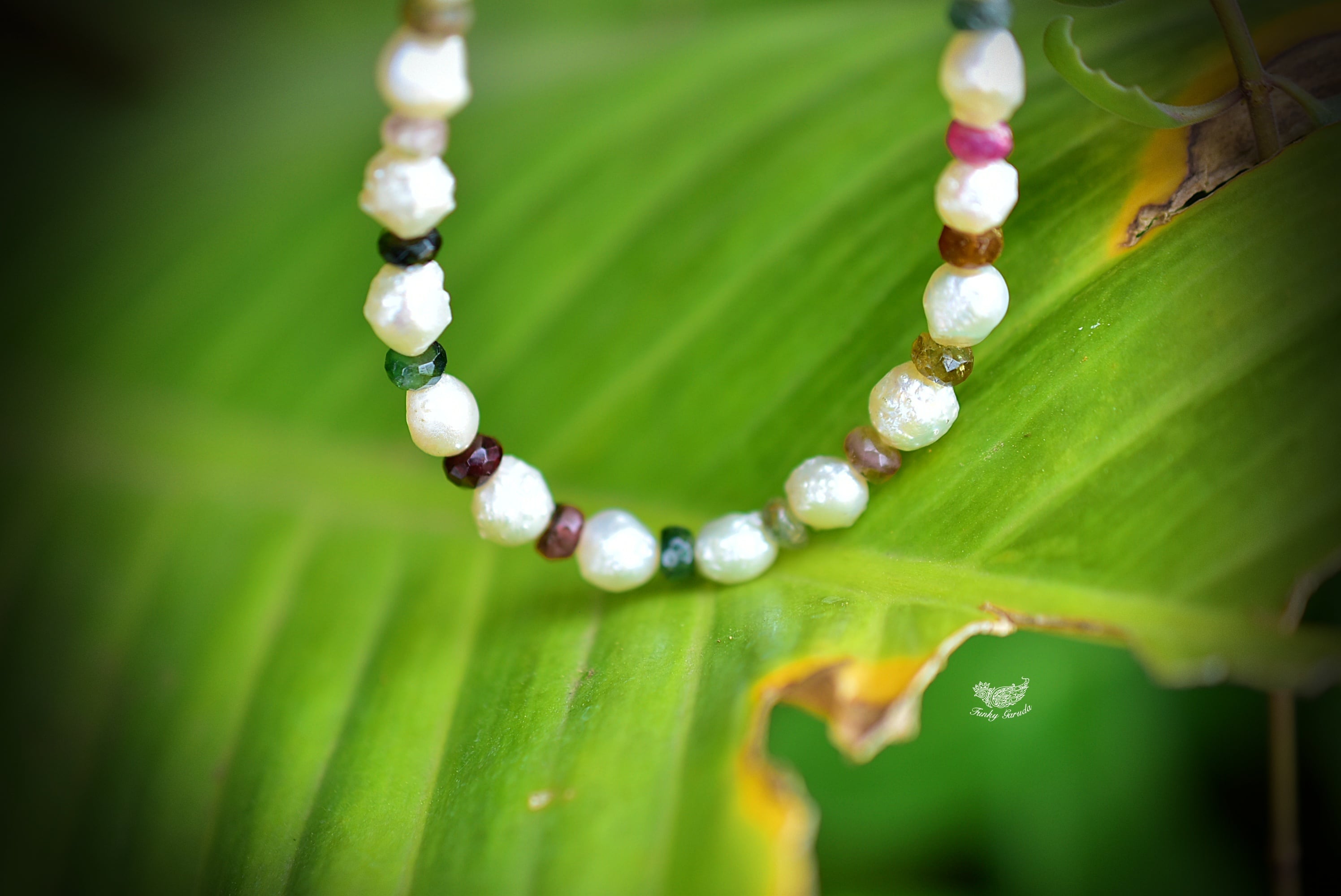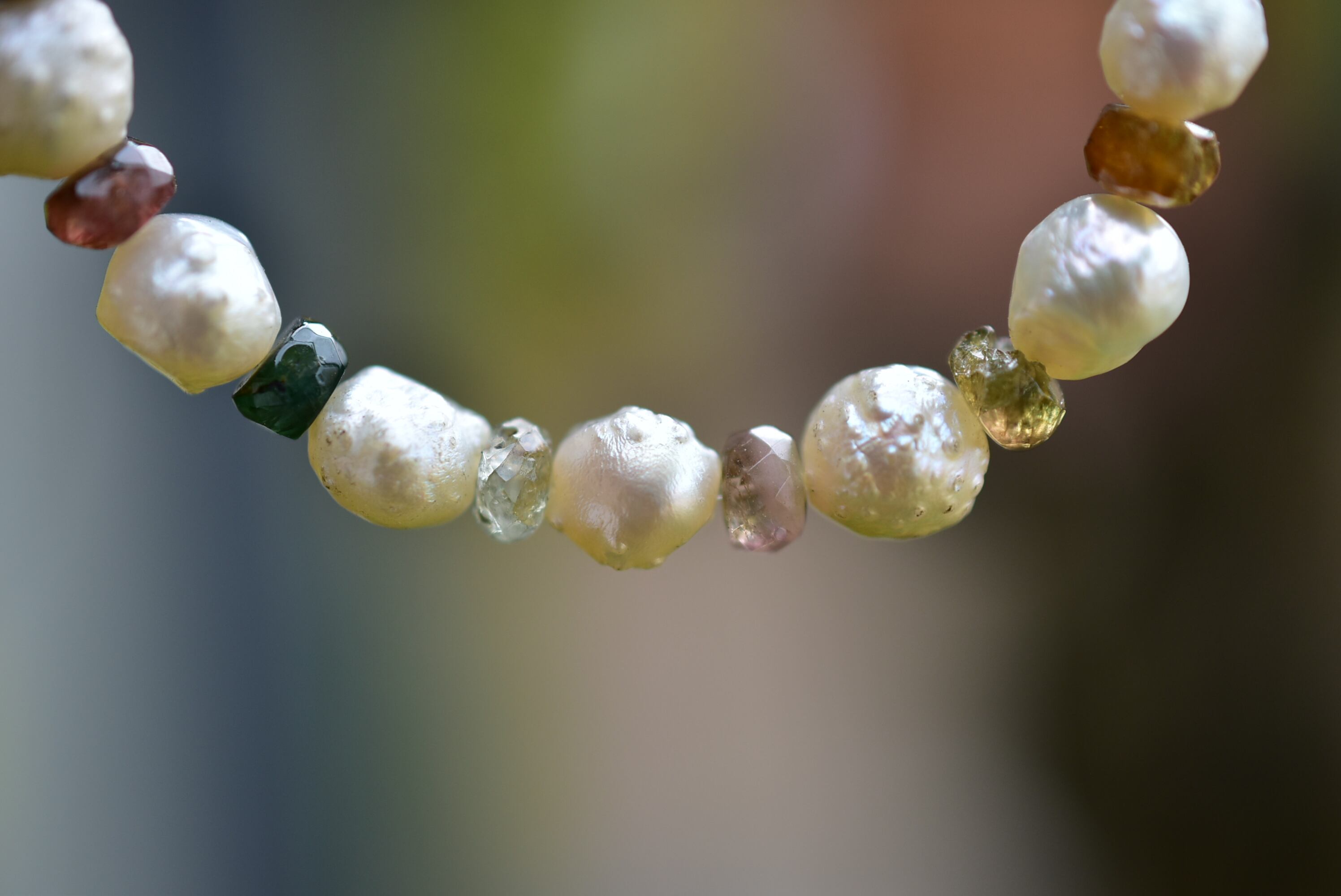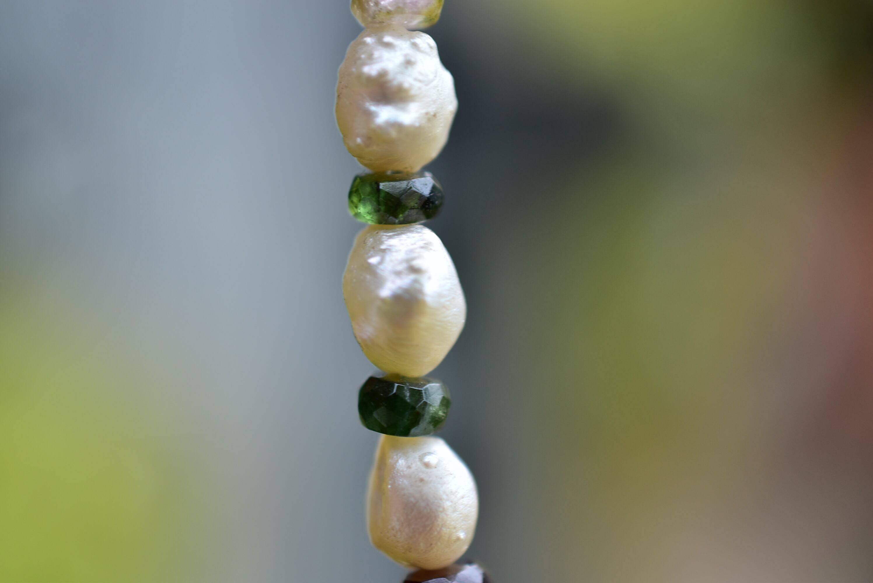 不思議な形★バロック真珠パール +トルマリンネックレス870