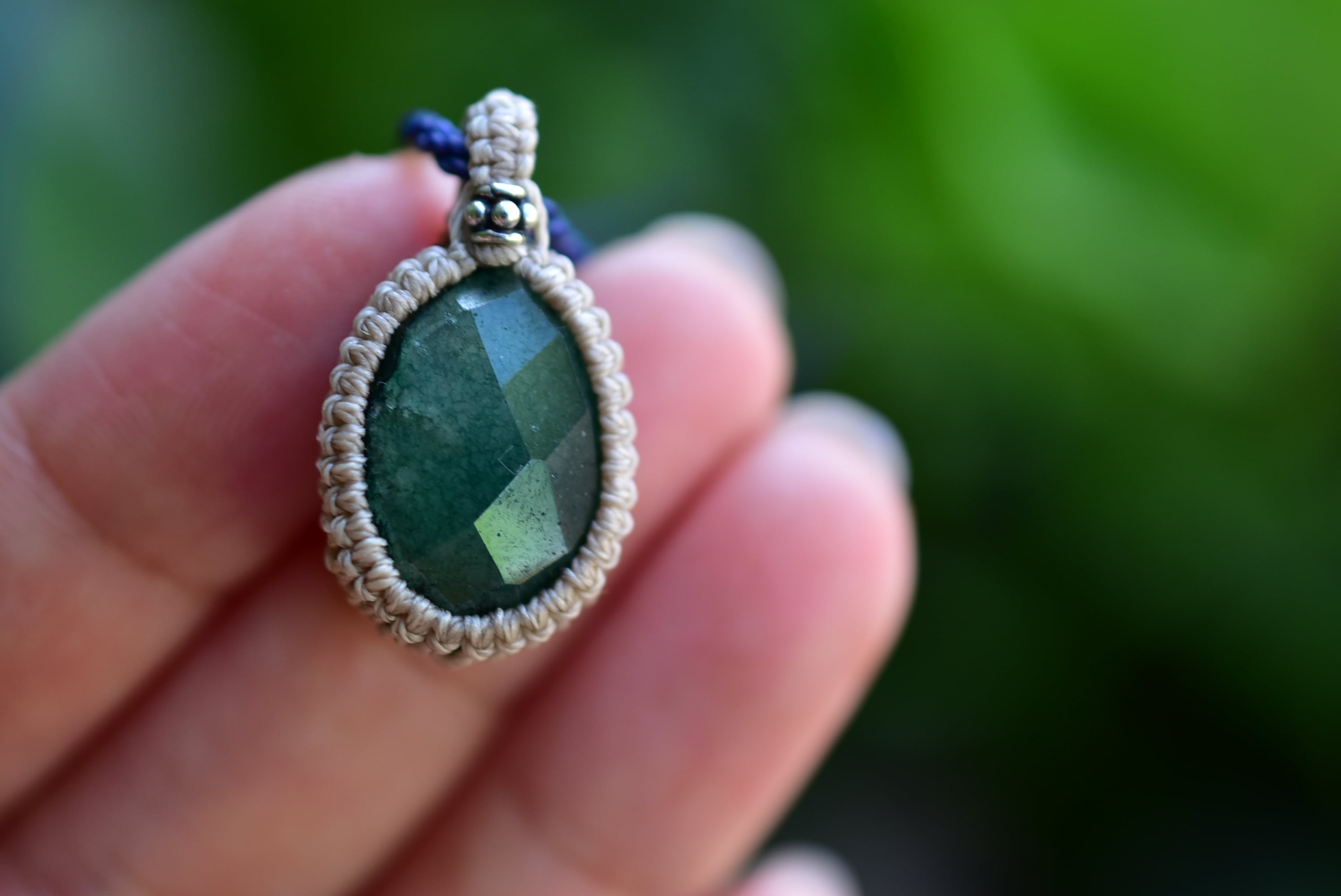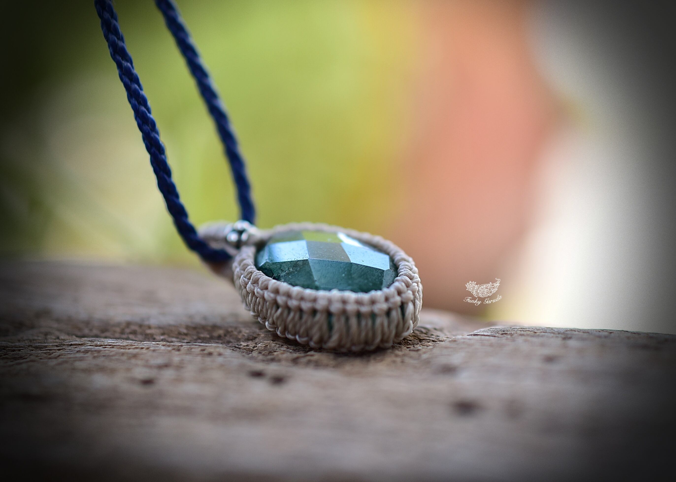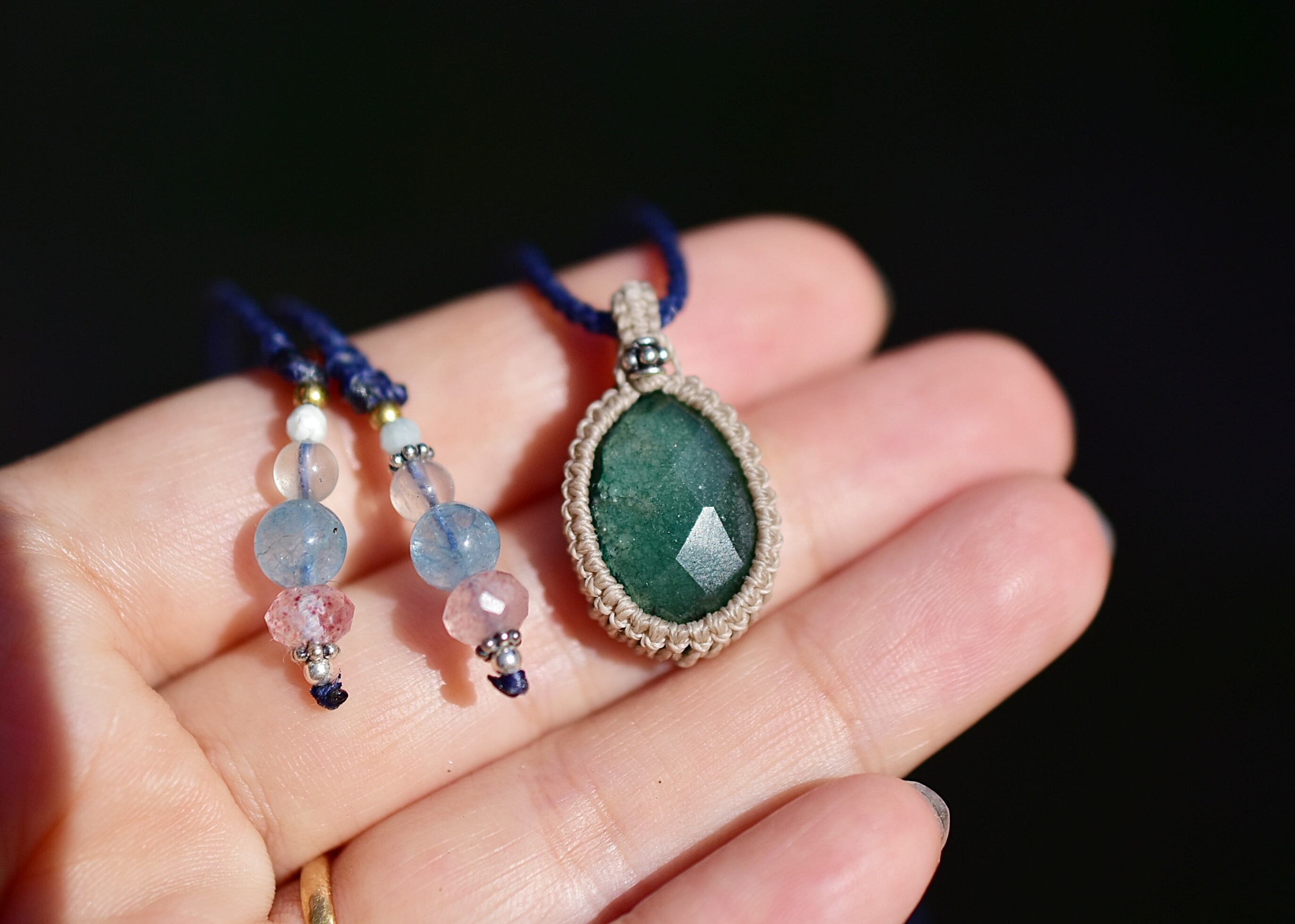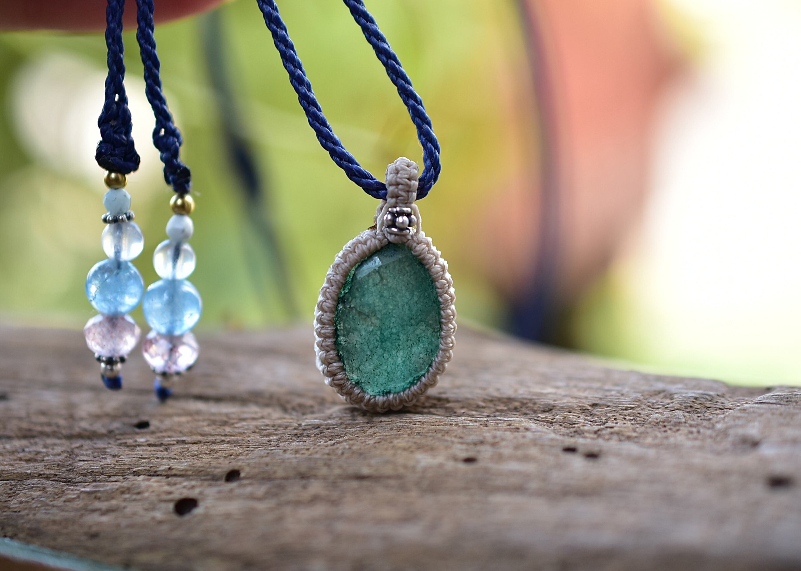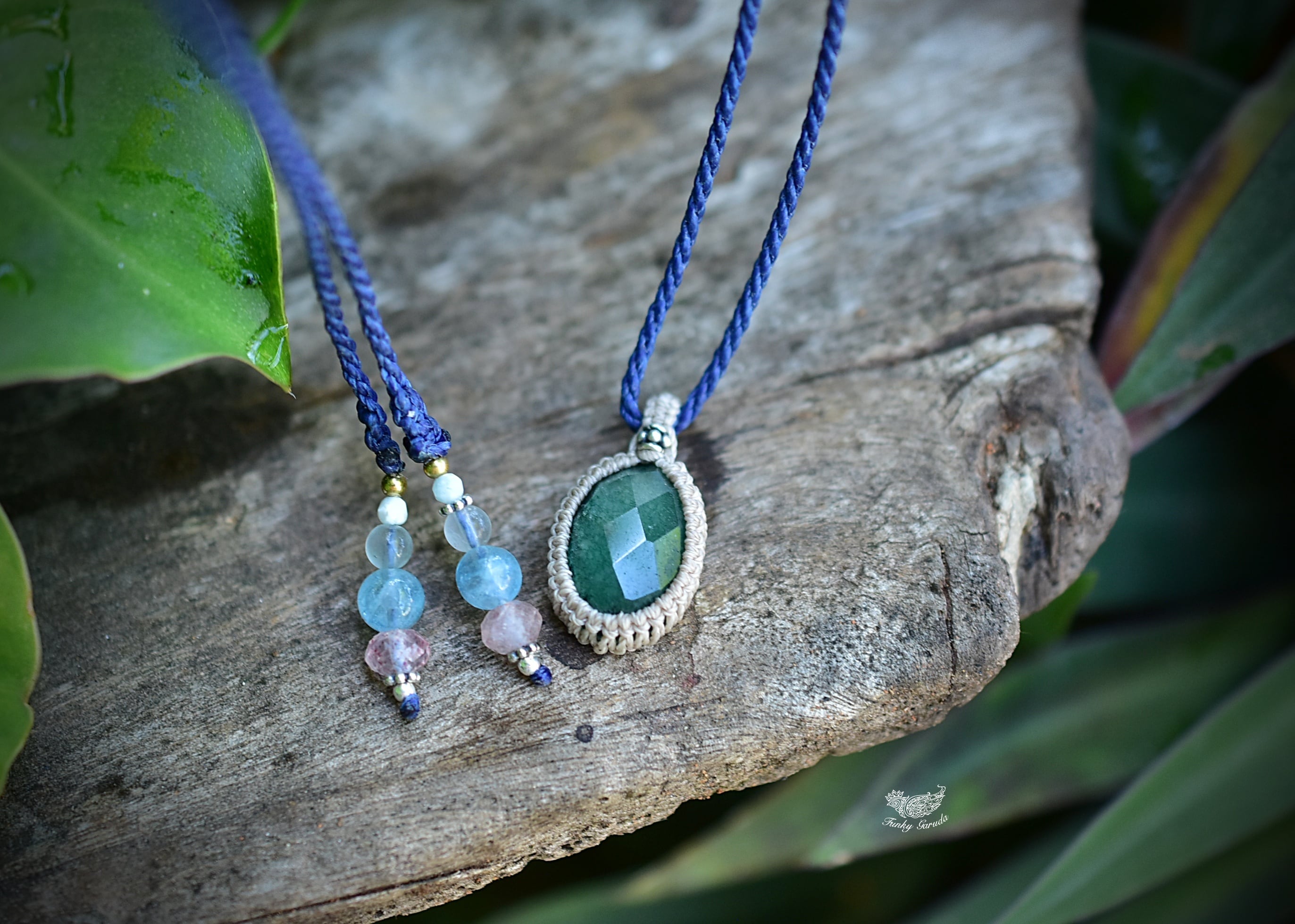 小さなサイズでマクラメ編みネックレスにお仕立てしました。