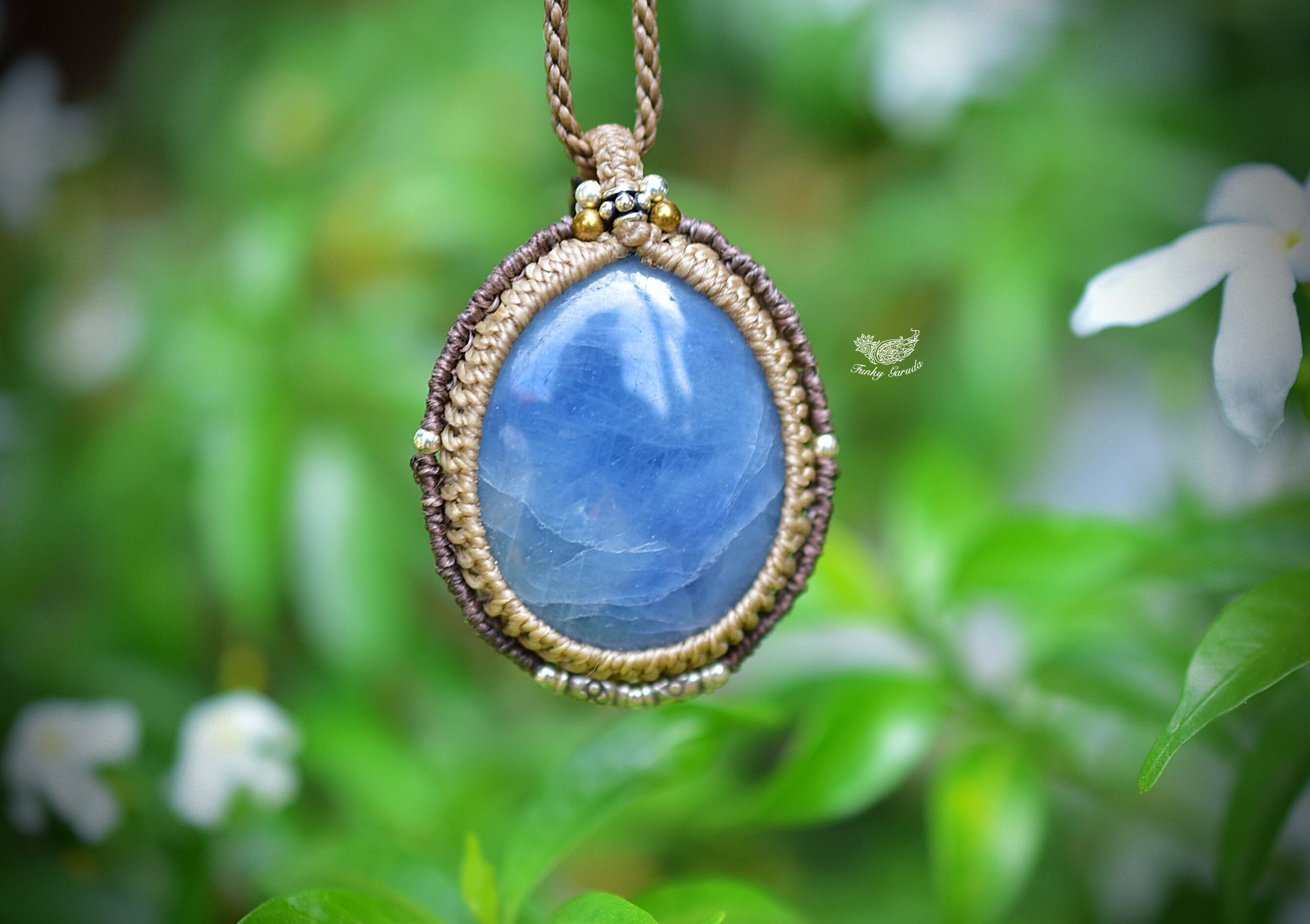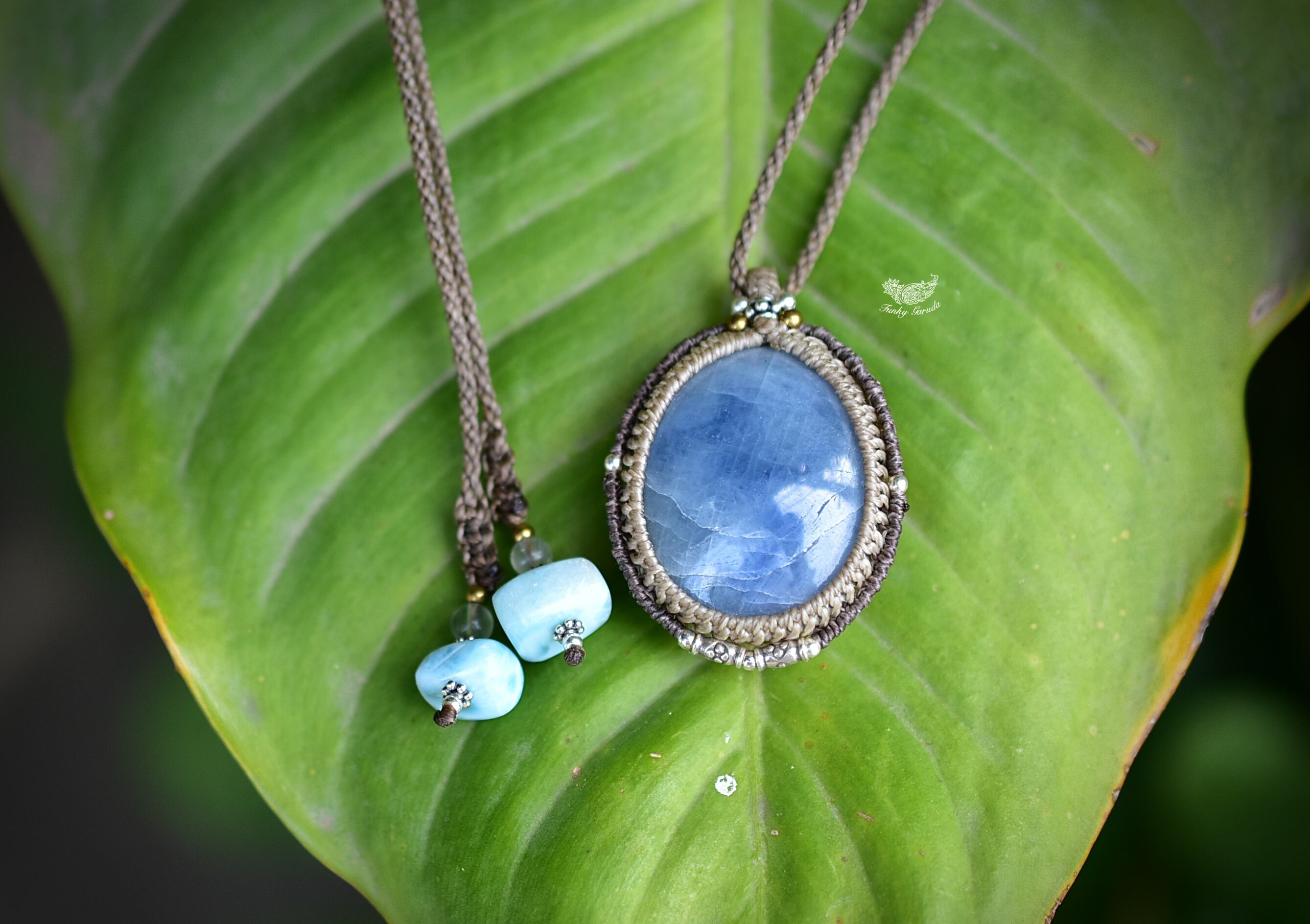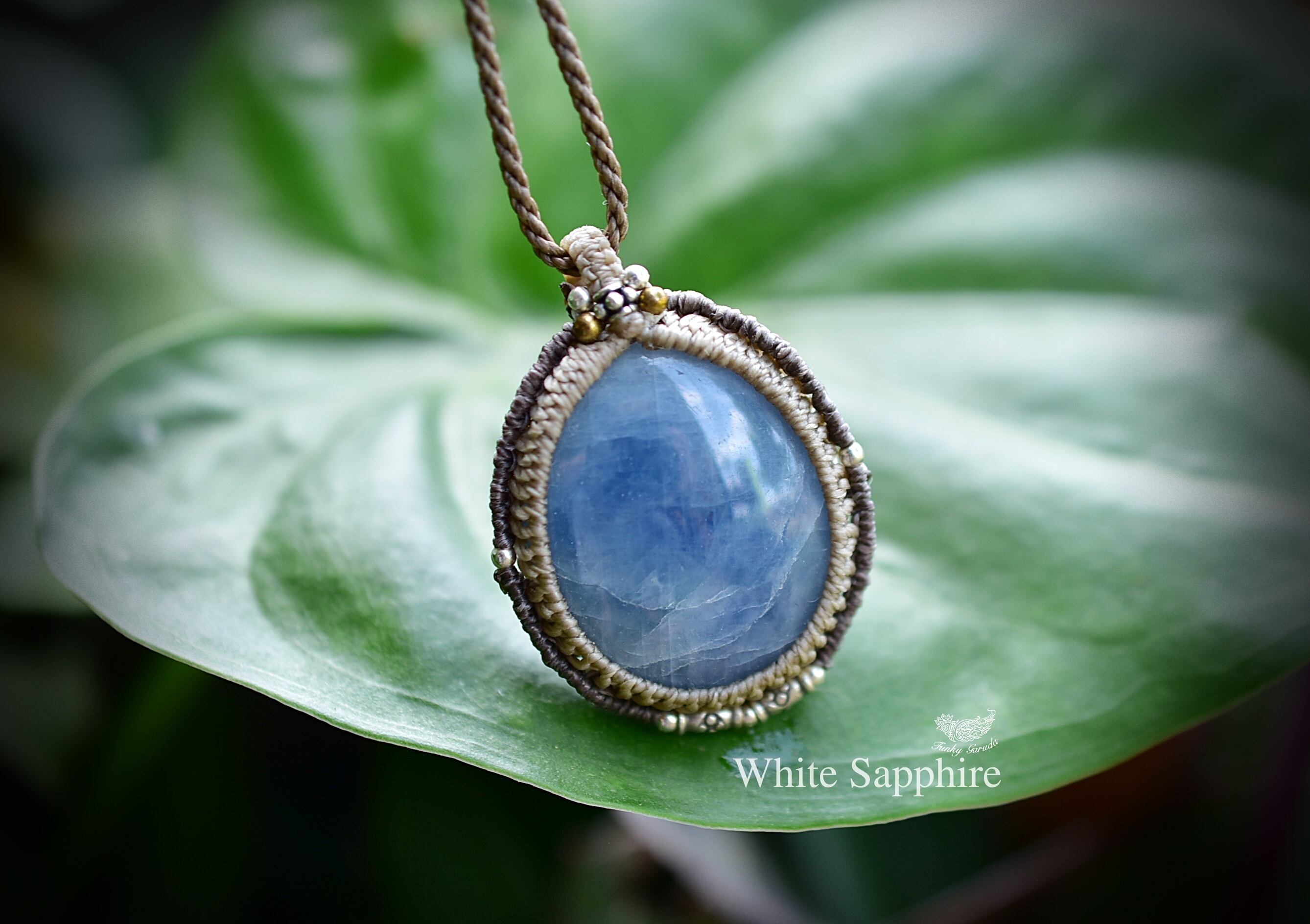レア★特大★ホワイトブルー★サファイア★マクラメネックレス882