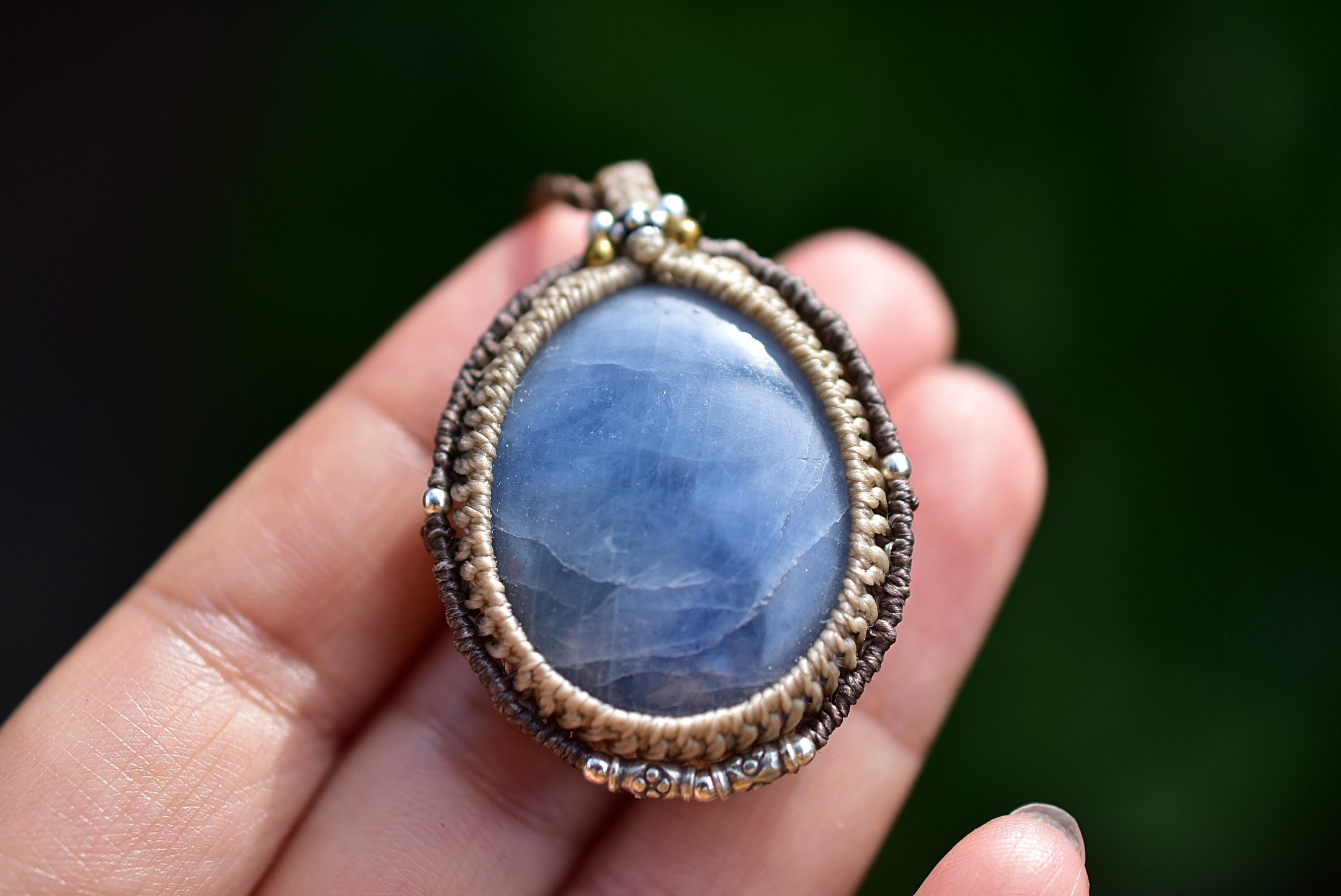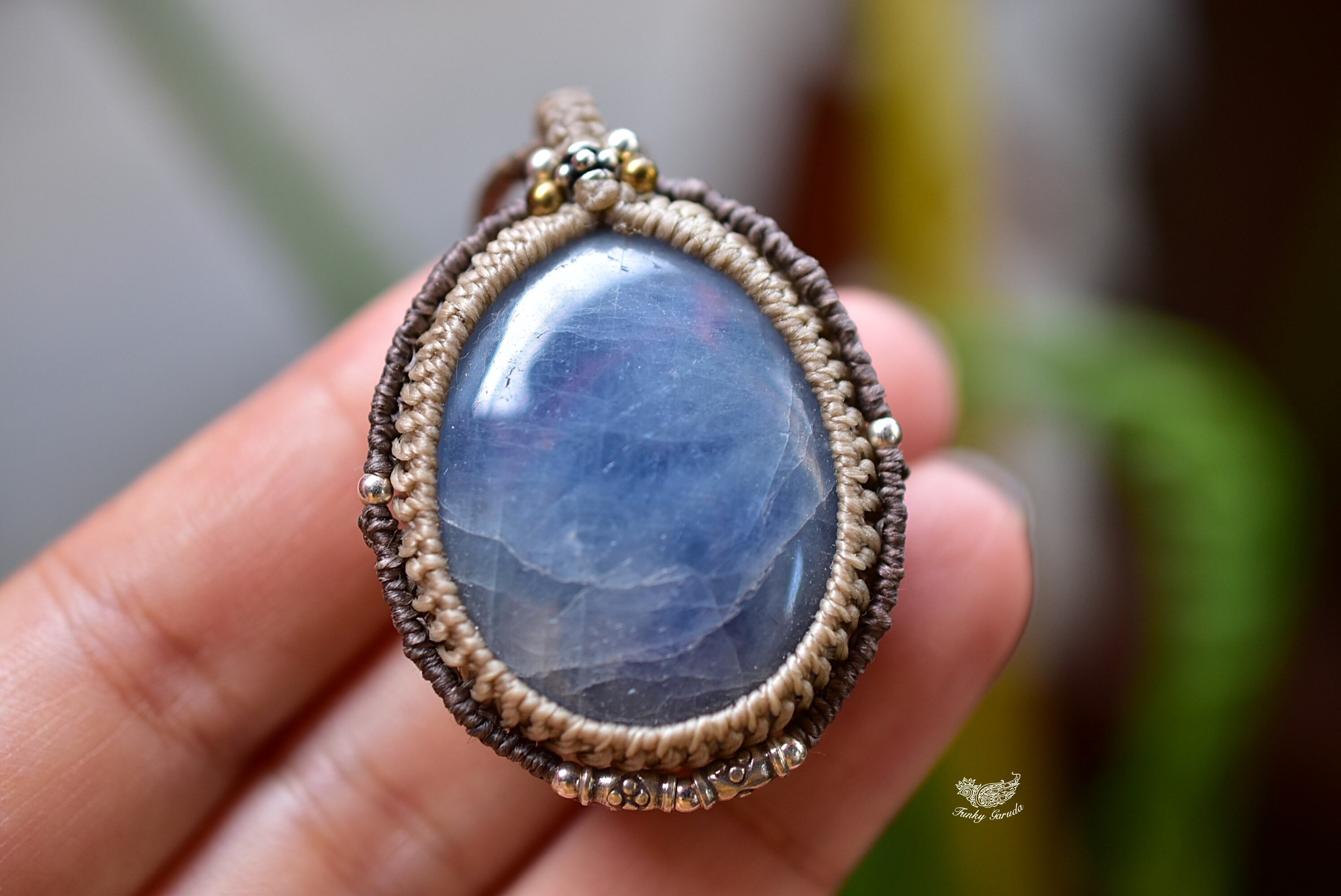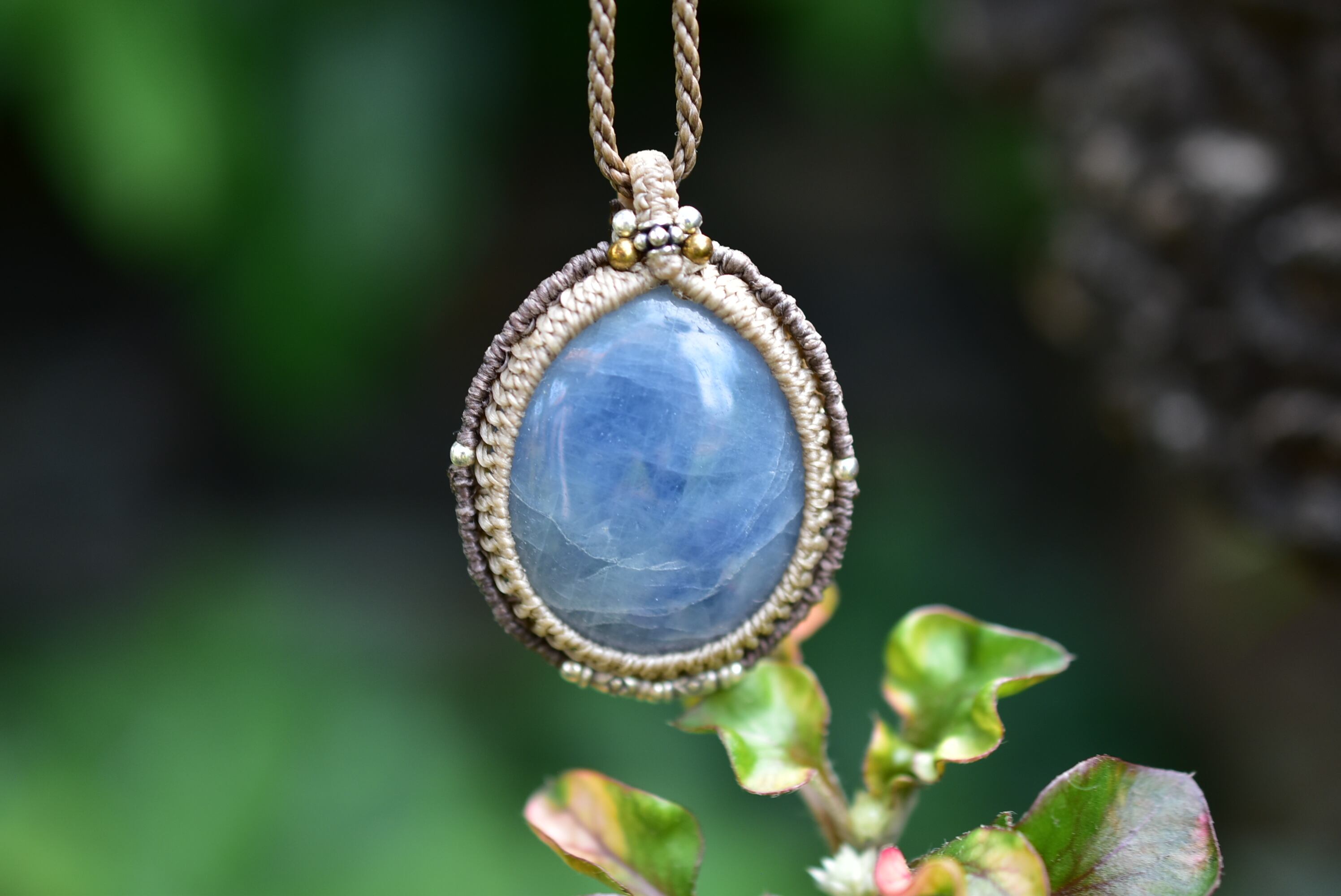 レア★特大★ホワイトブルー★サファイア★マクラメネックレス882