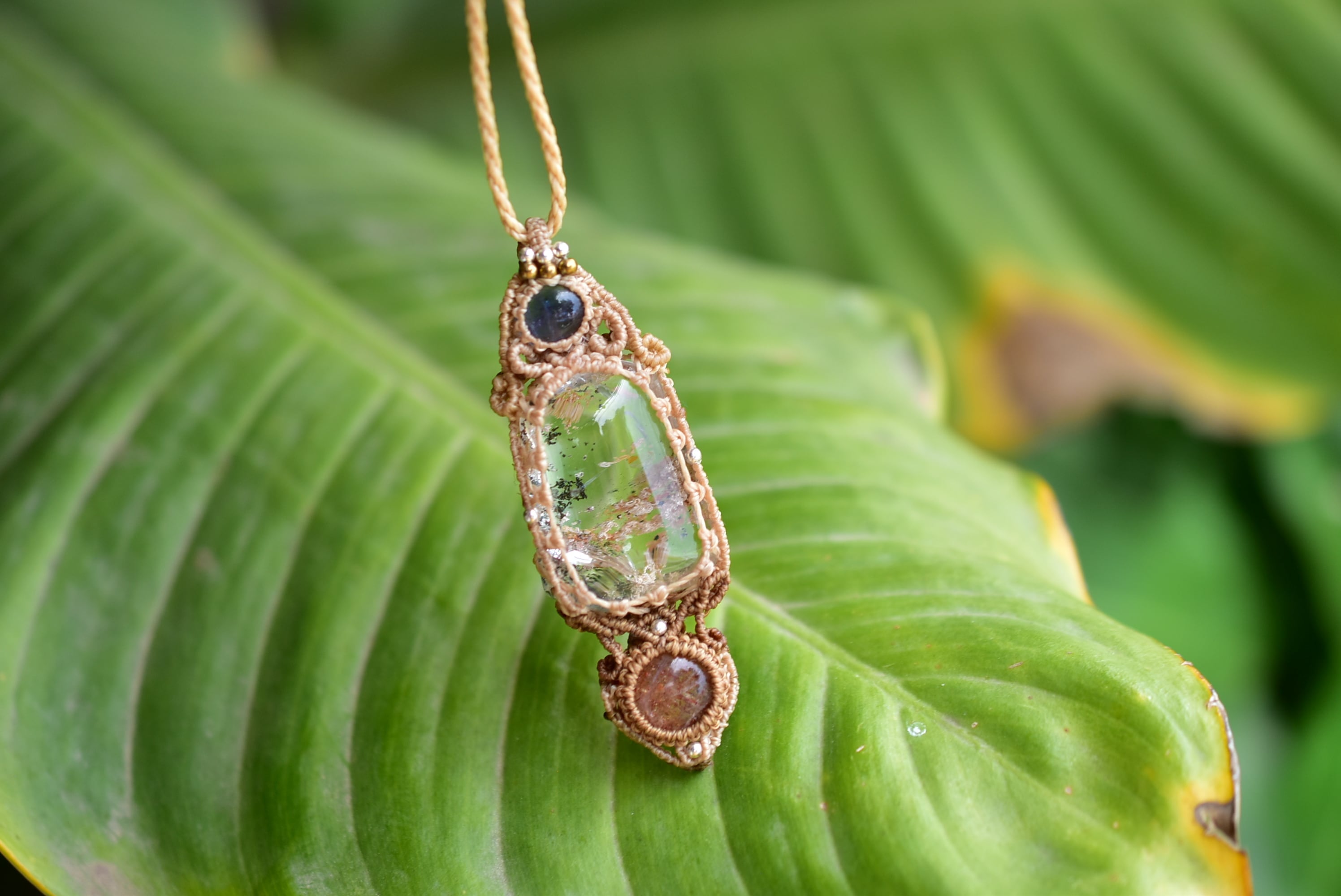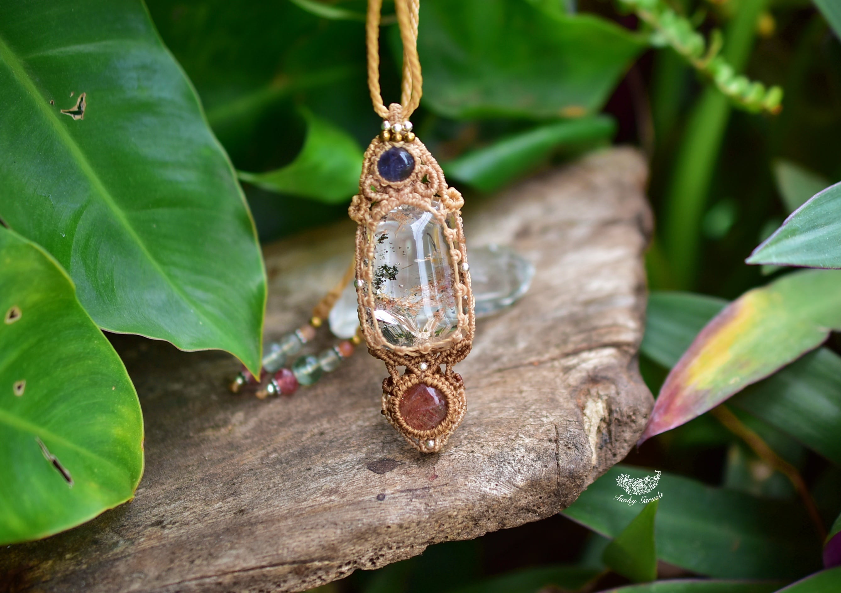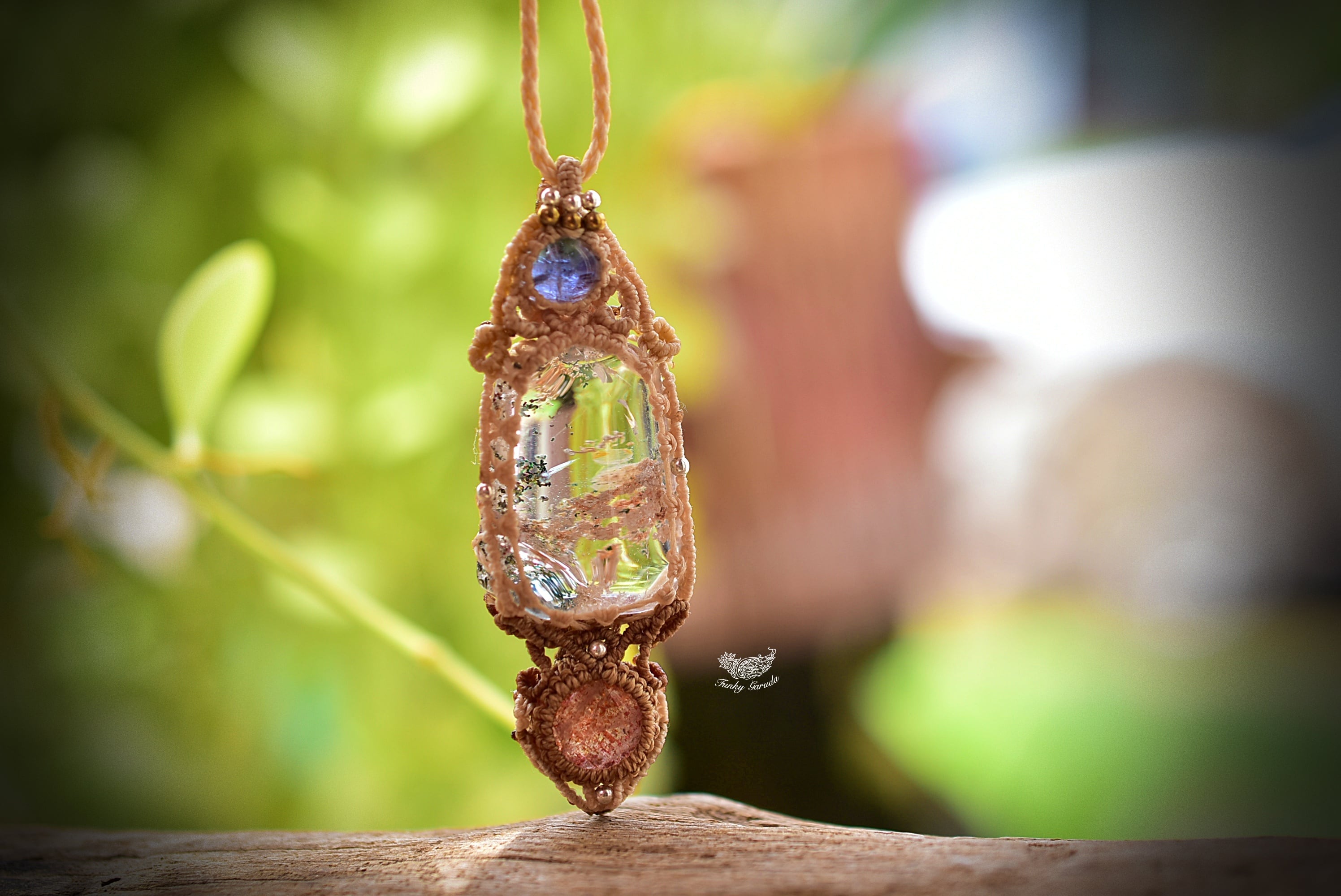 旅の3石魔法の杖★iolite sunstone★ガーデンクォーツ マクラメネックレス887