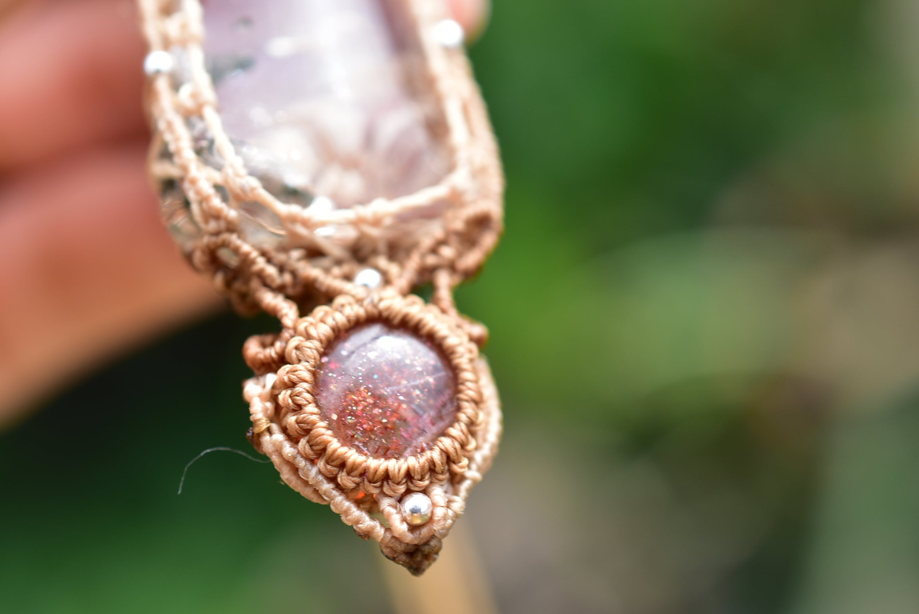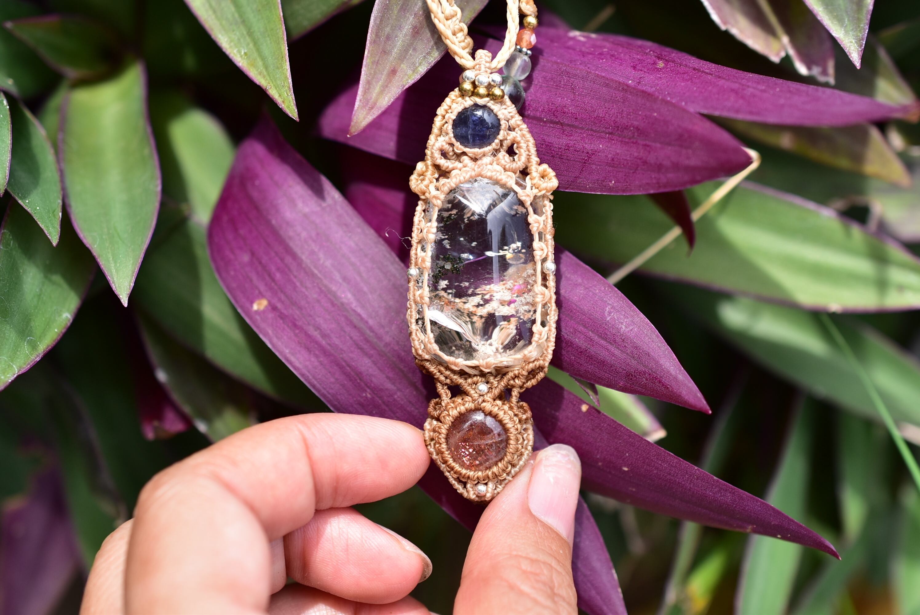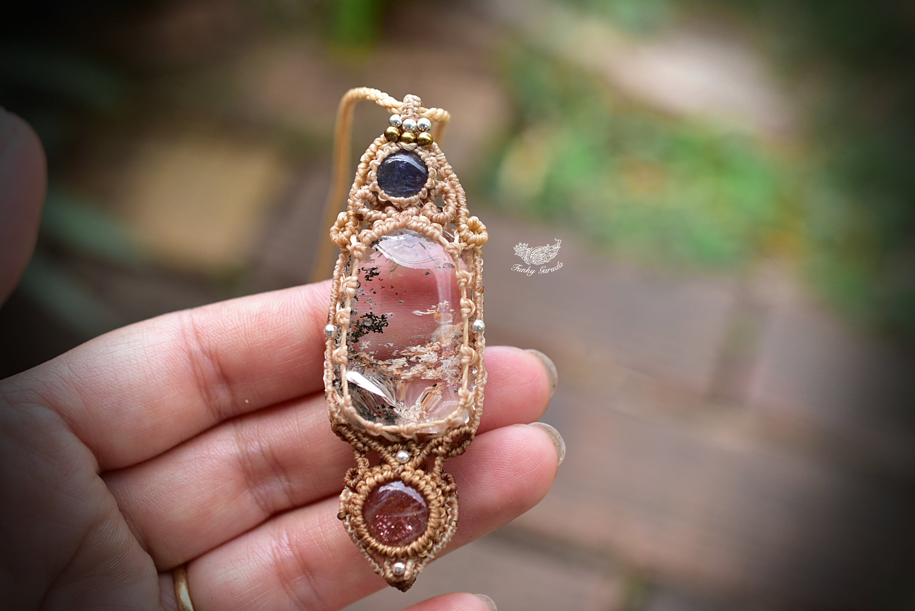 旅の3石魔法の杖★iolite sunstone★ガーデンクォーツ マクラメネックレス887