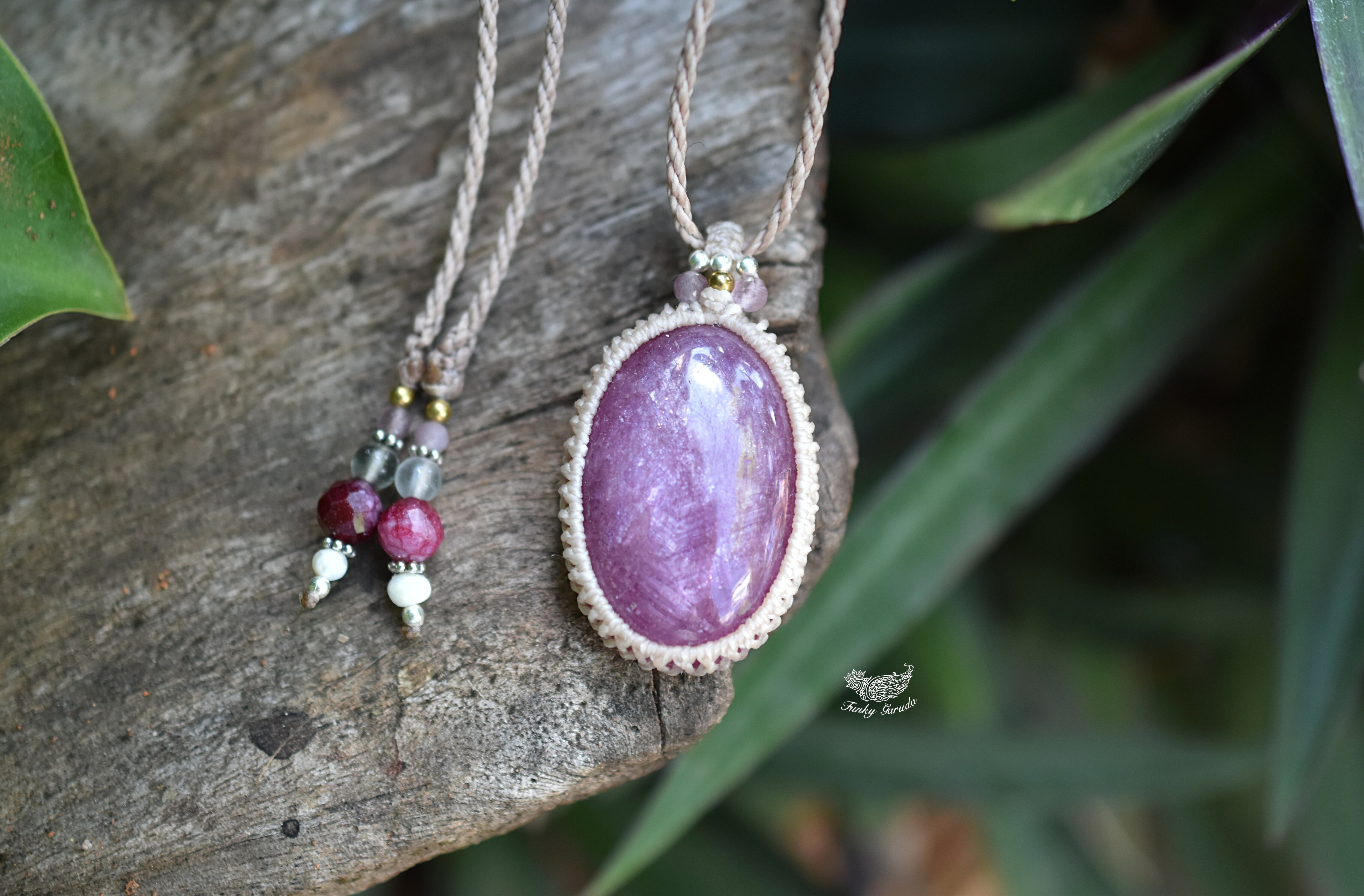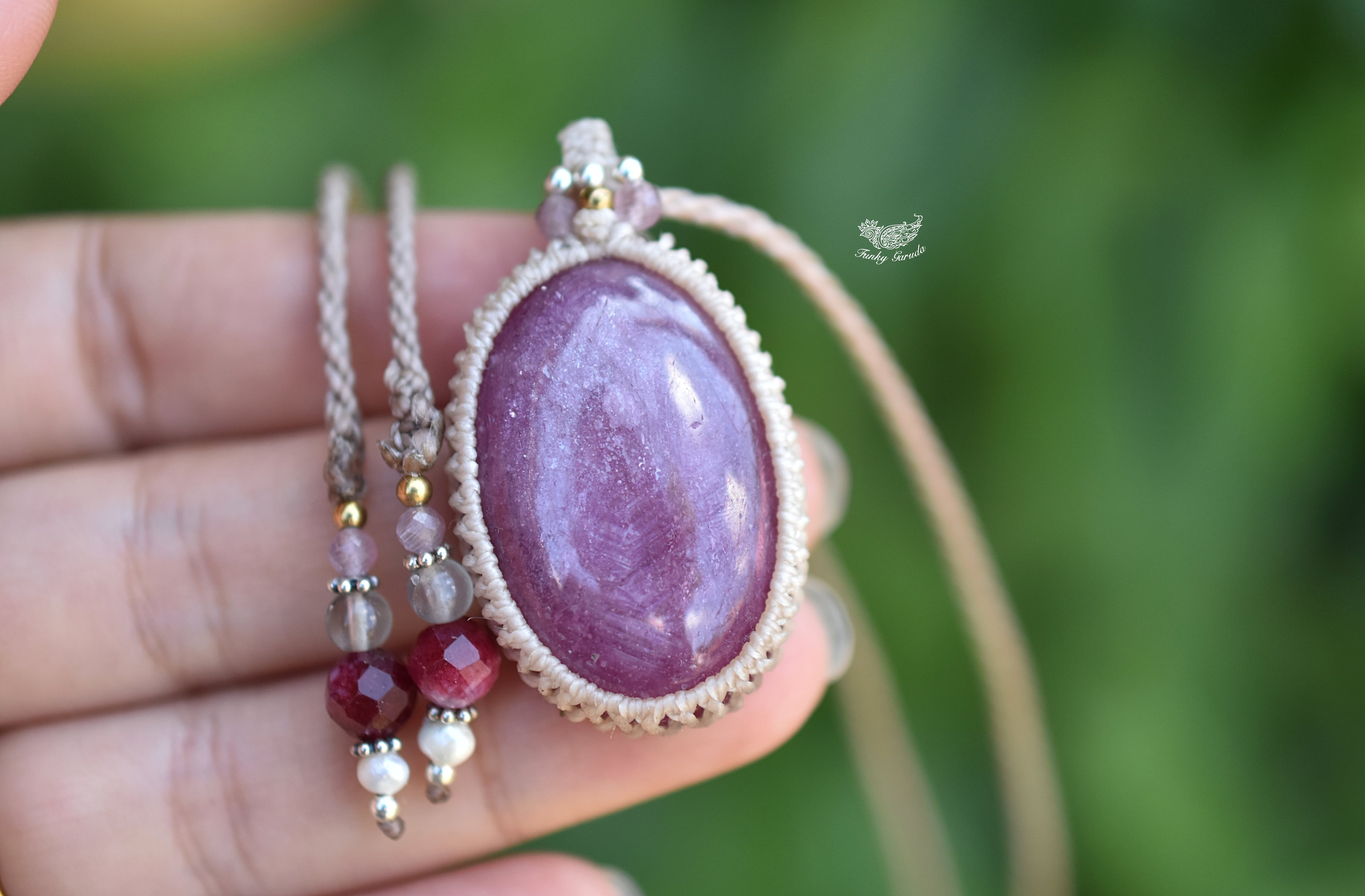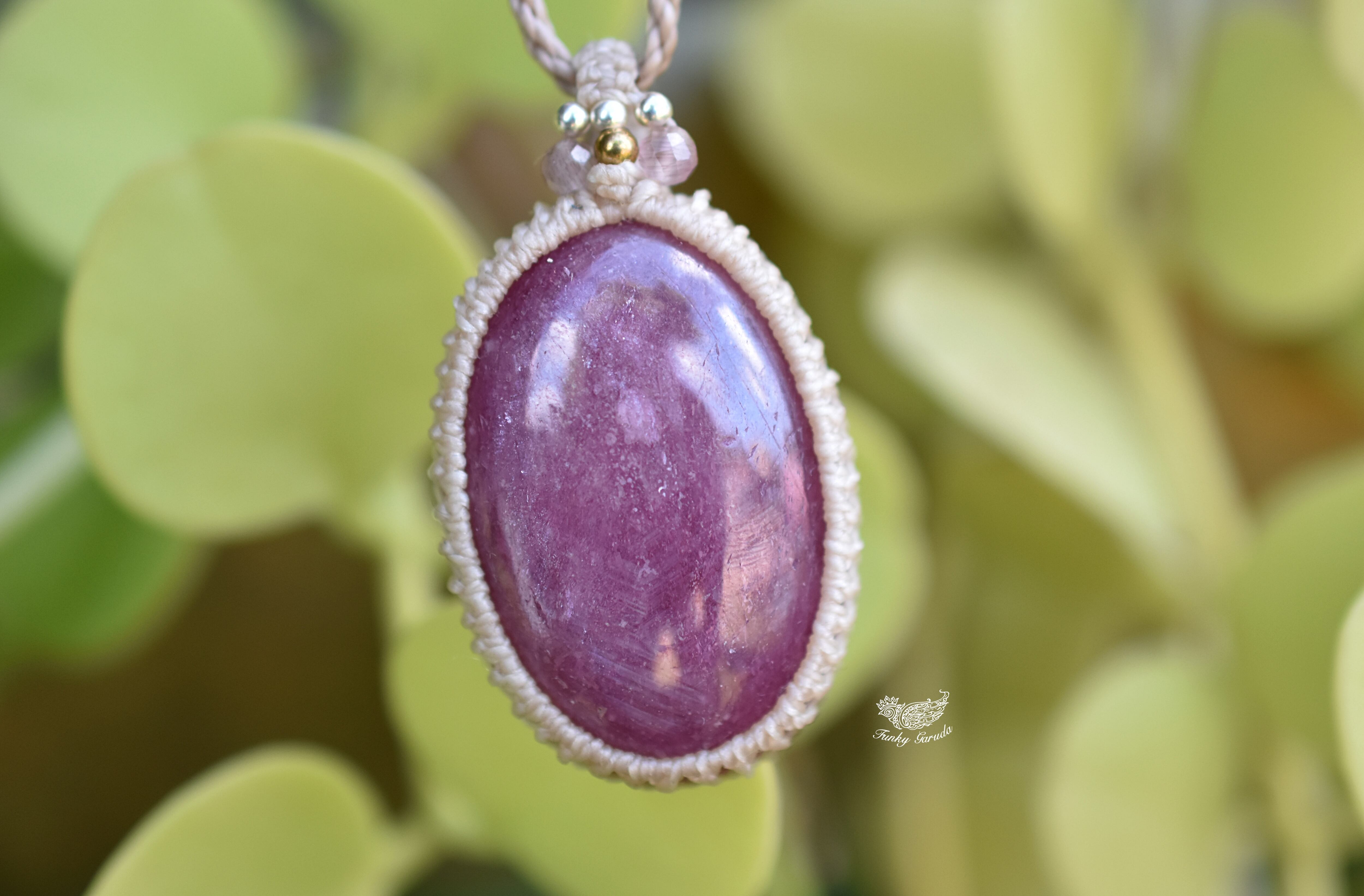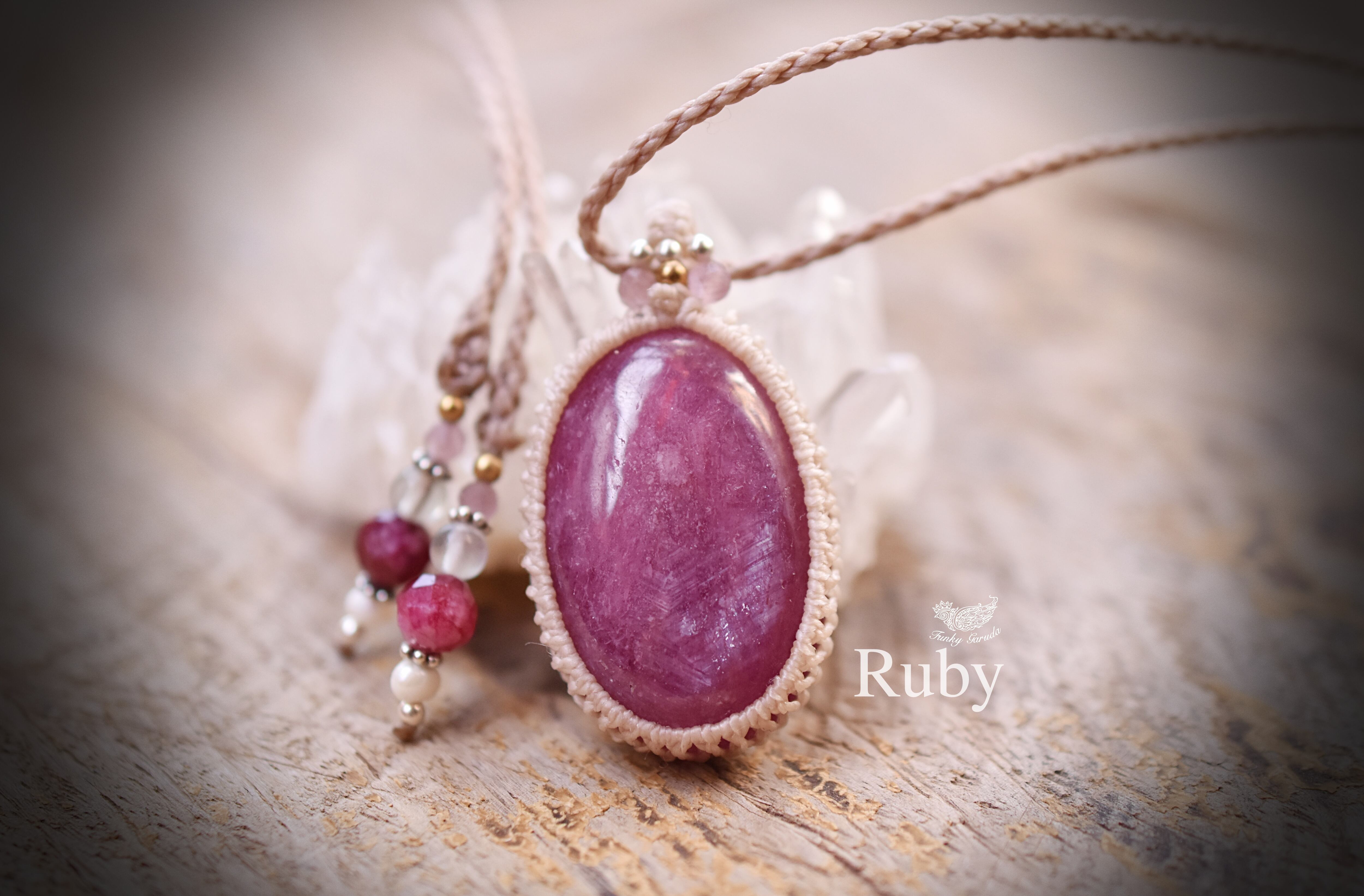 大粒シルキー★ピンクルビー マクラメネックレス901