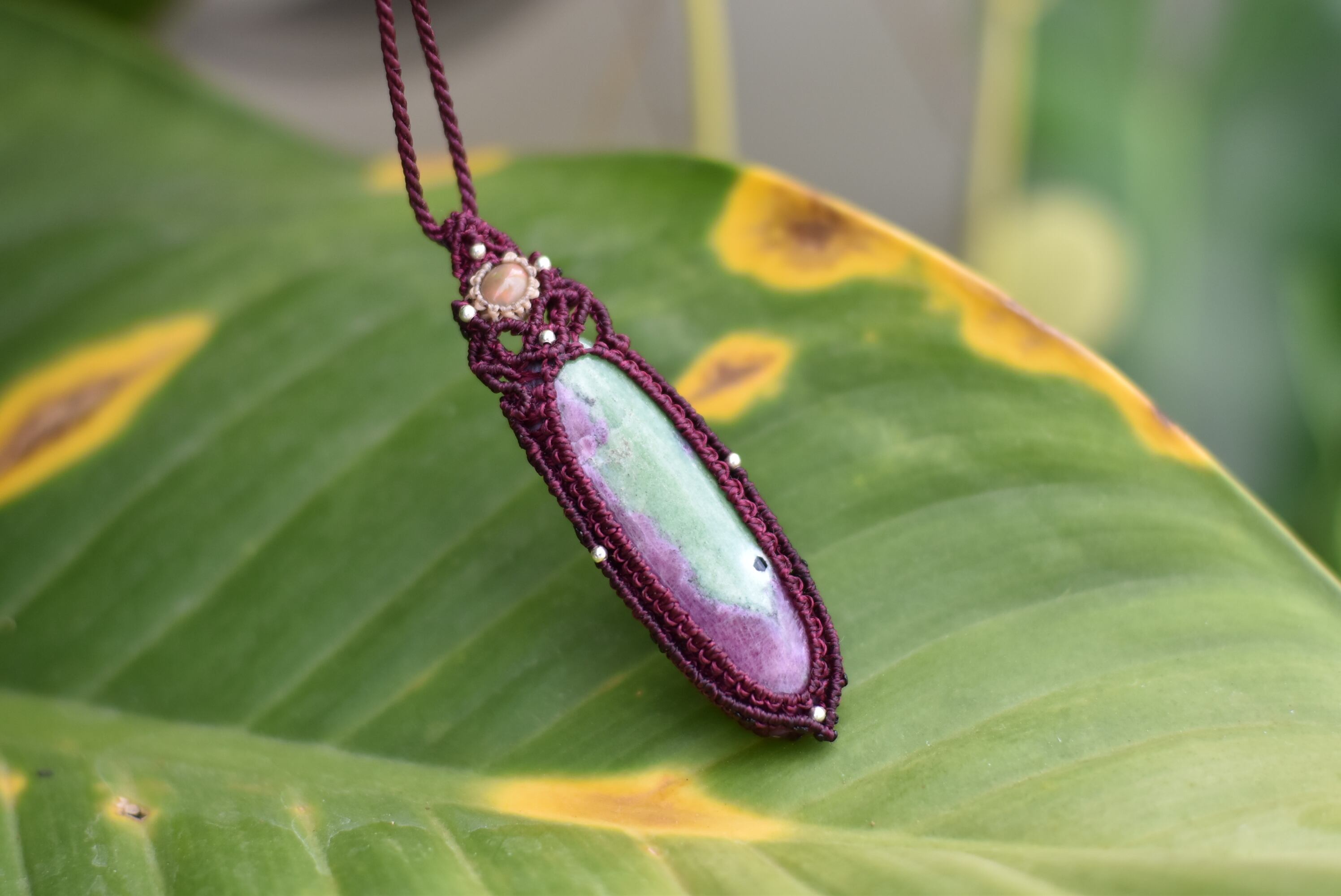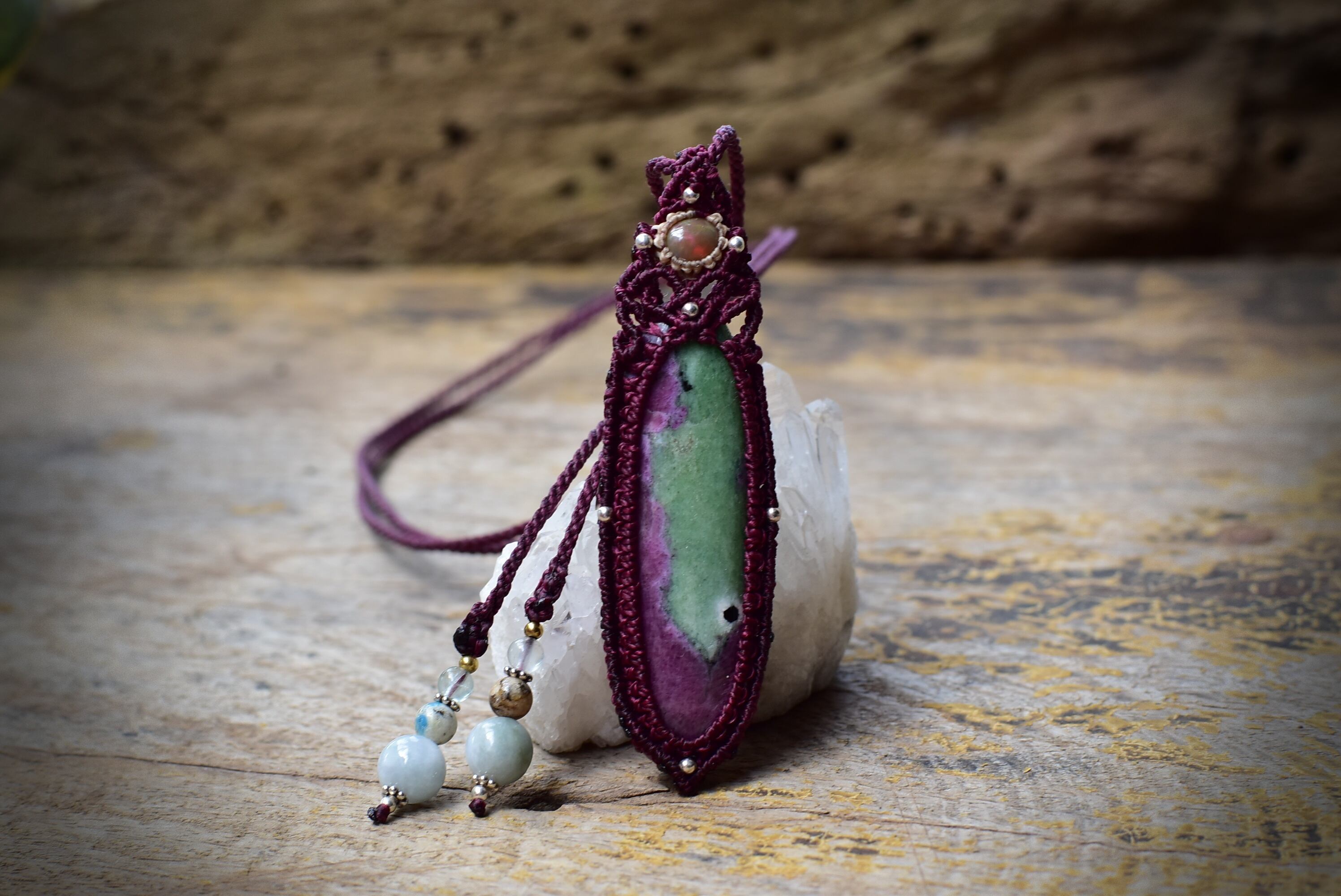 プリズムと自然治癒★オパール★ルビーインゾイサイト マクラメネックレス917