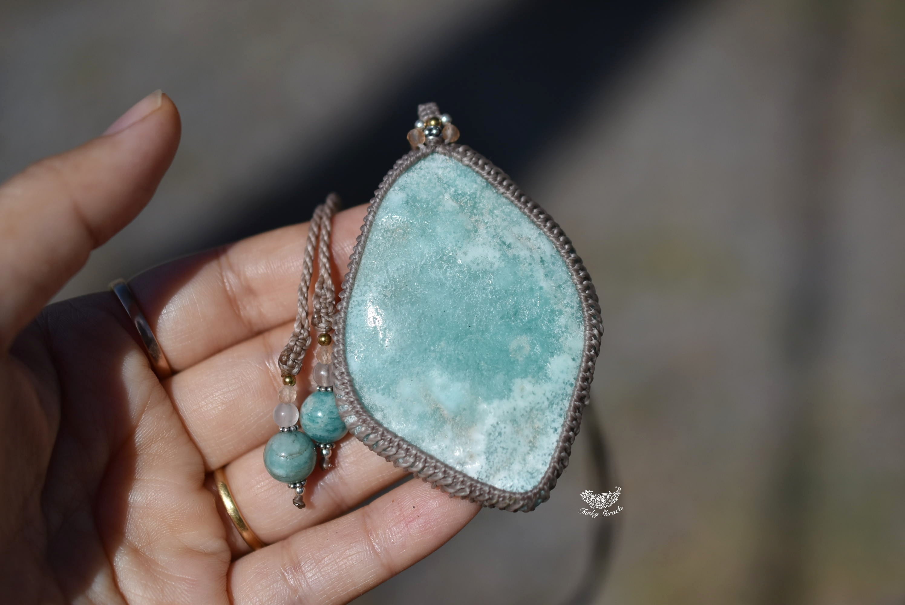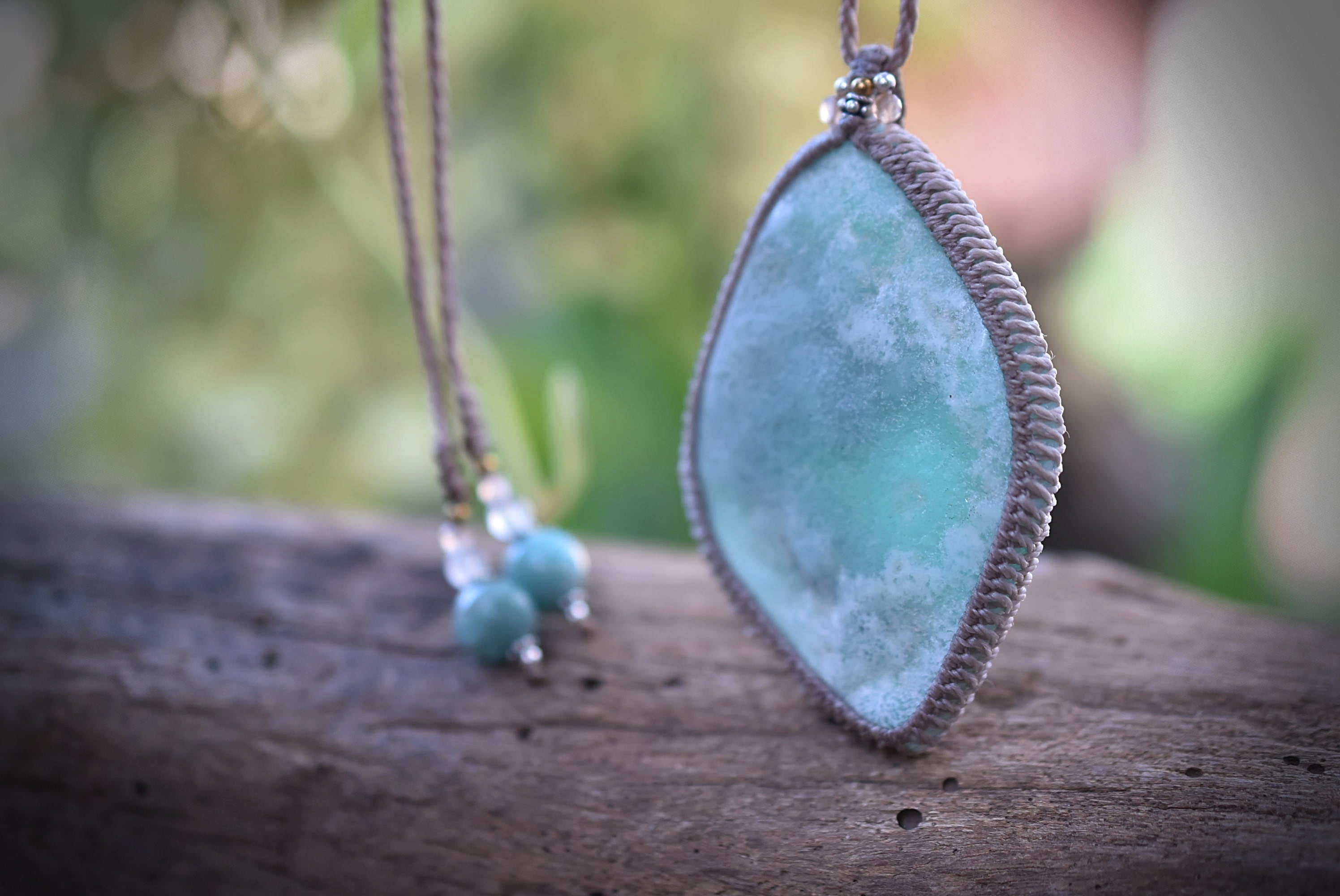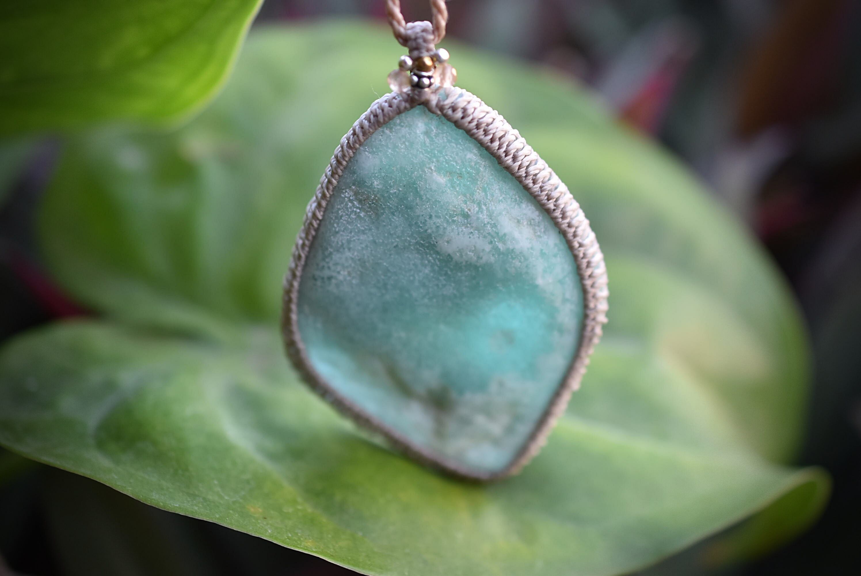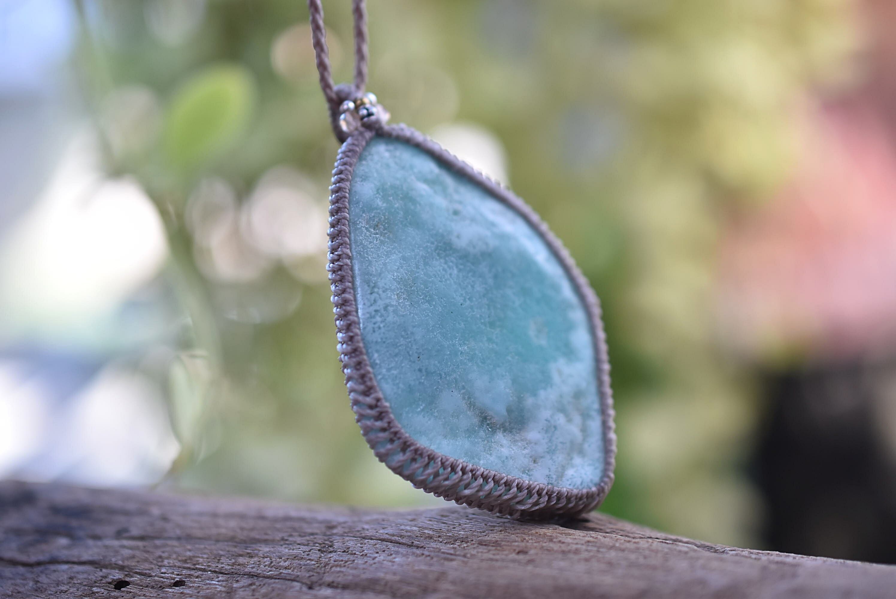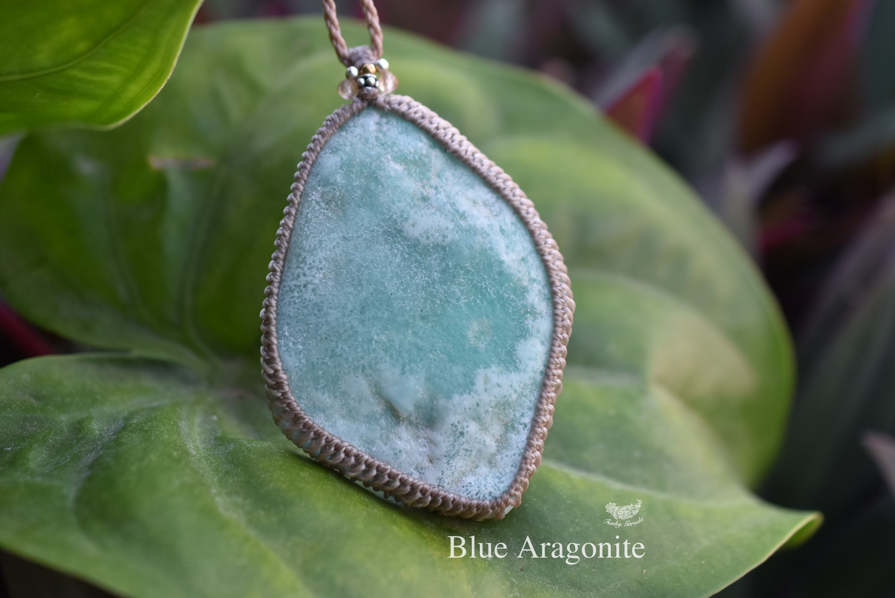 大きな空色★ブルーアラゴナイト原石 マクラメネックレス923