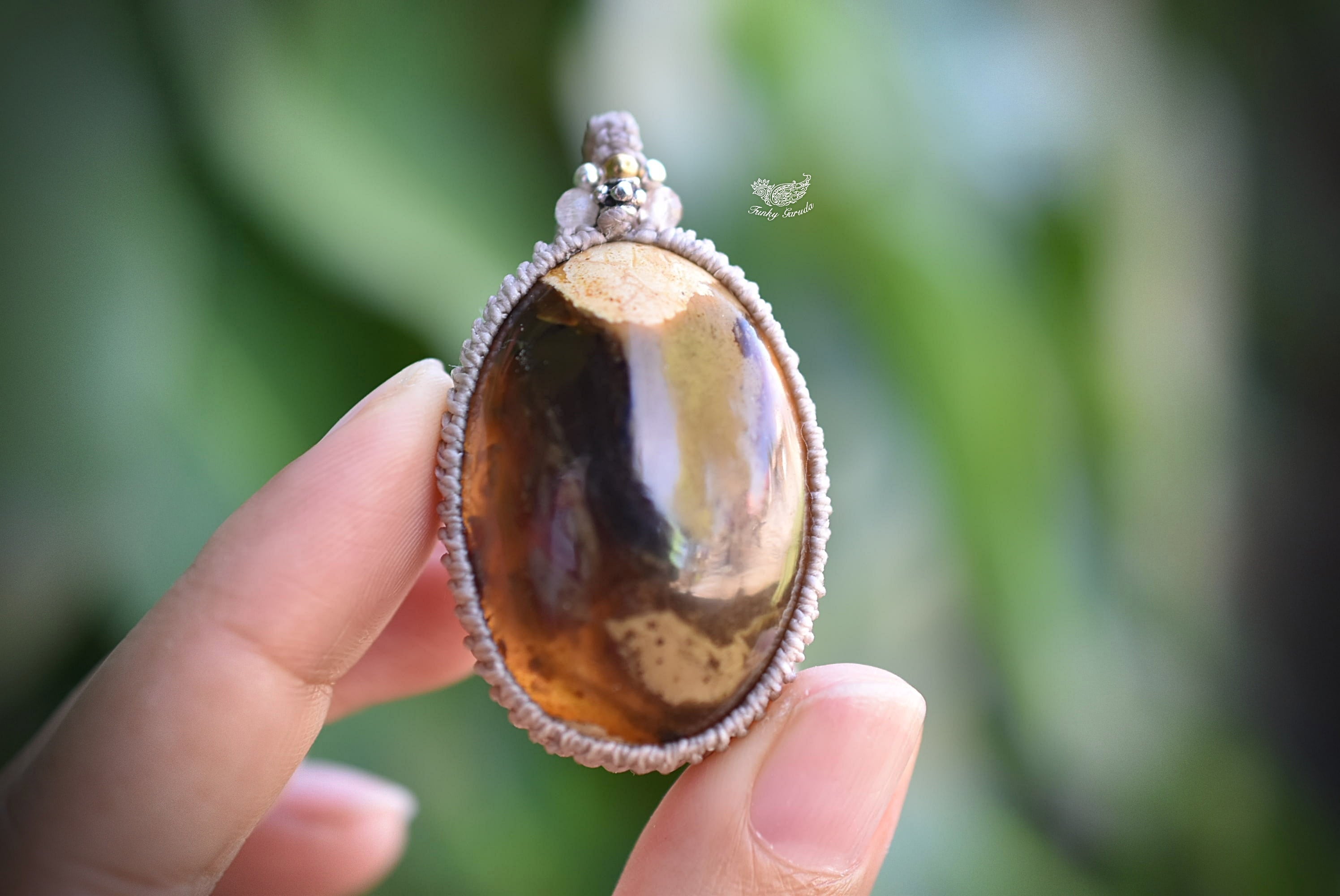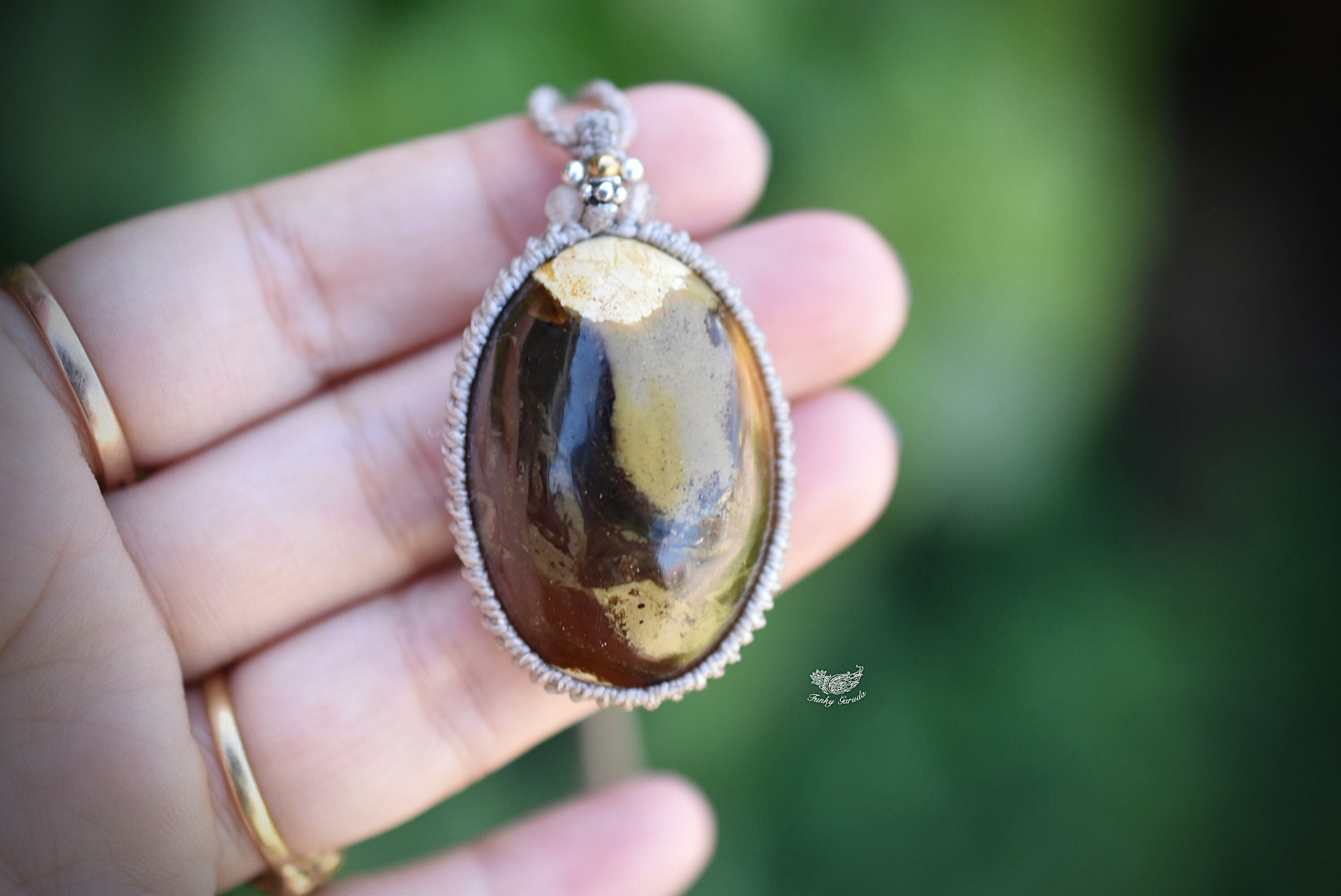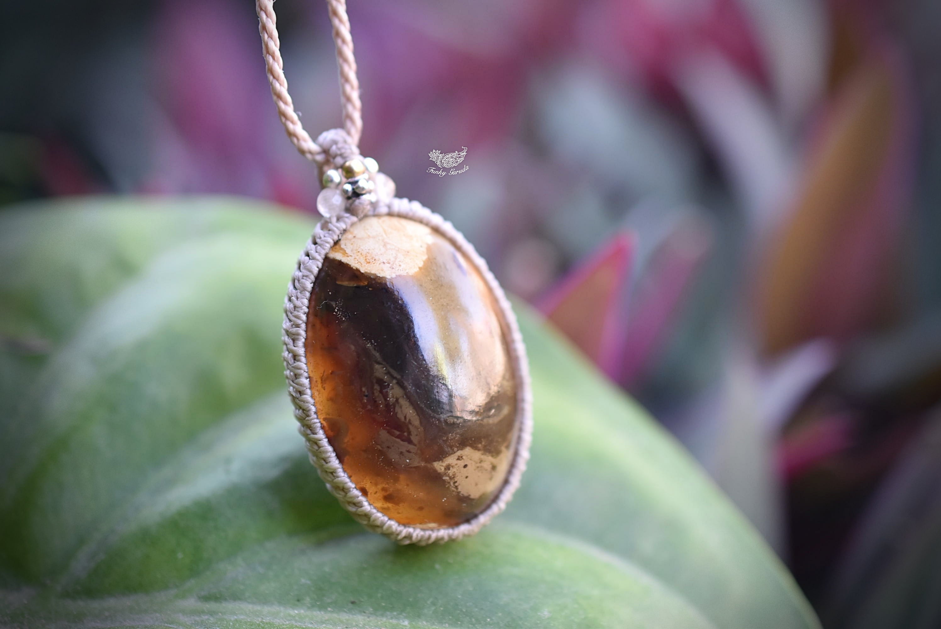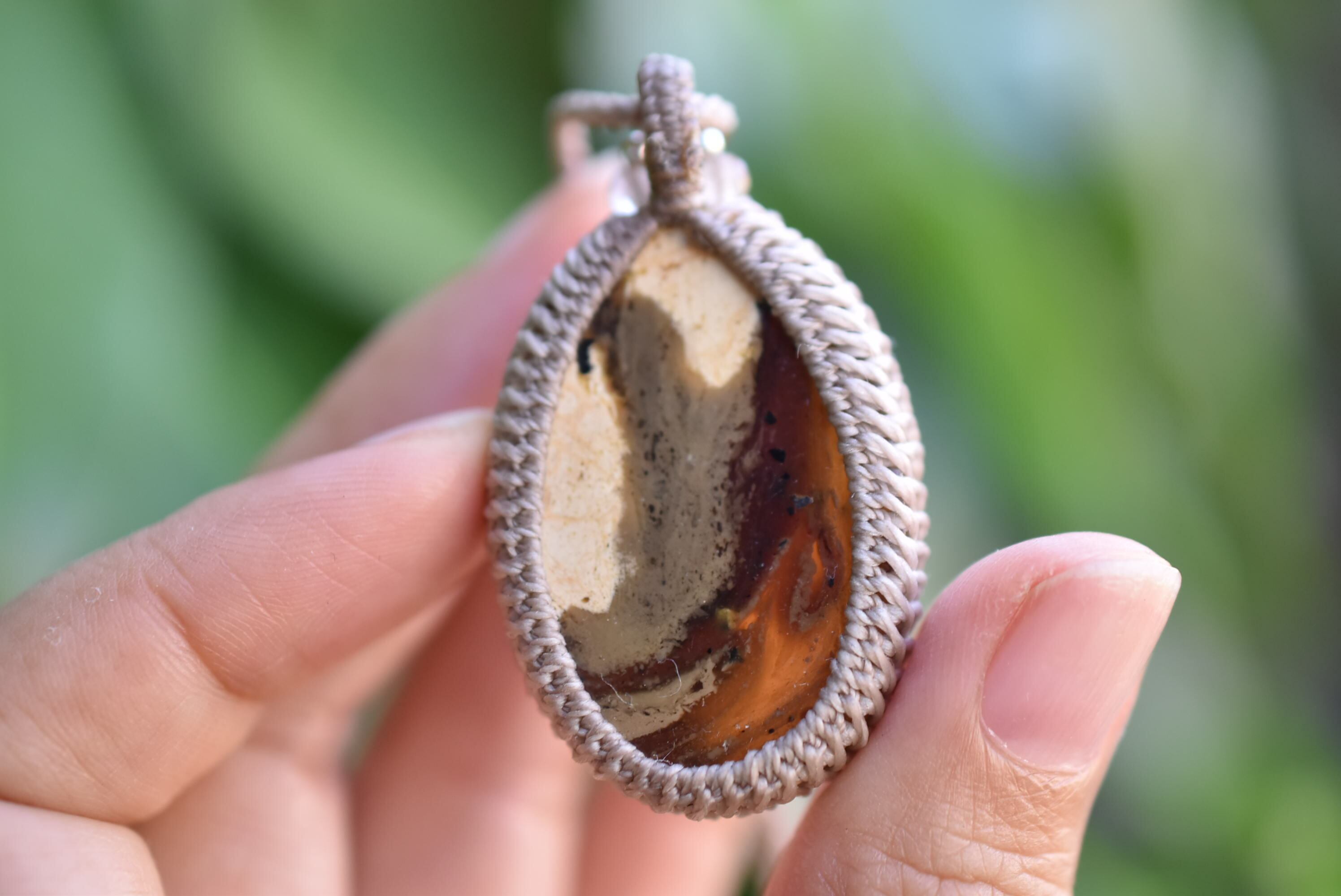 ボルネオ★アンバー琥珀 マクラメネックレス924