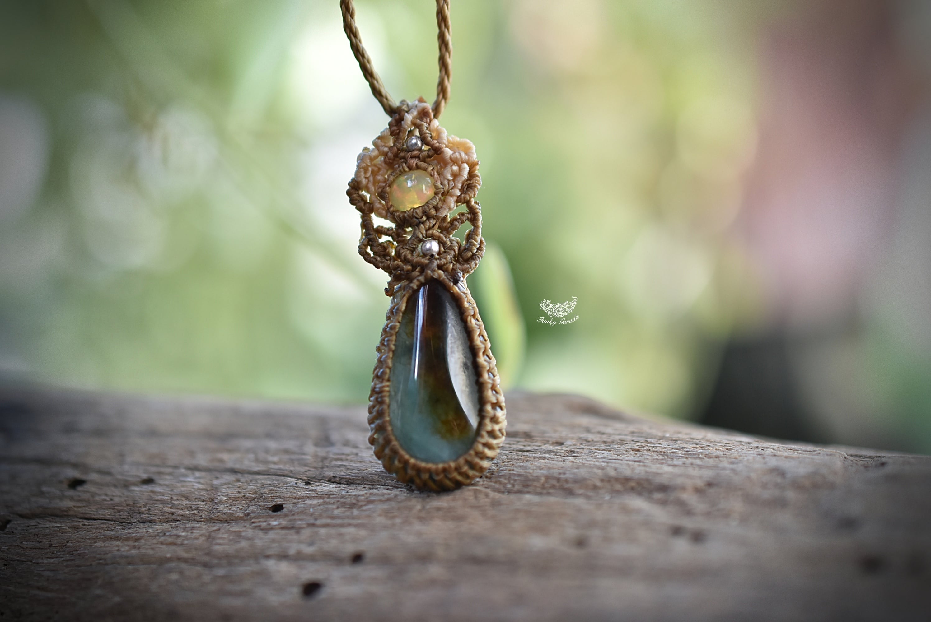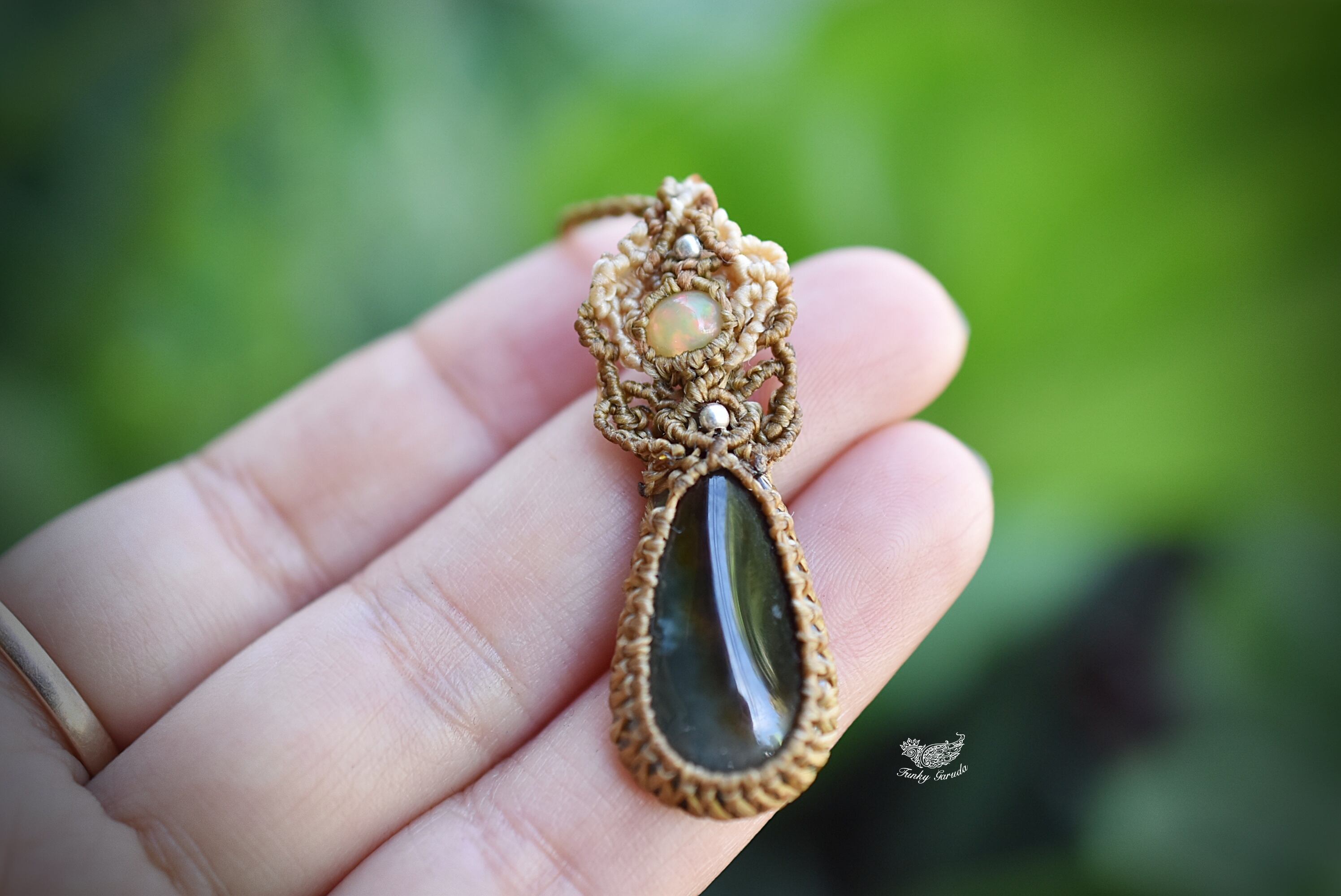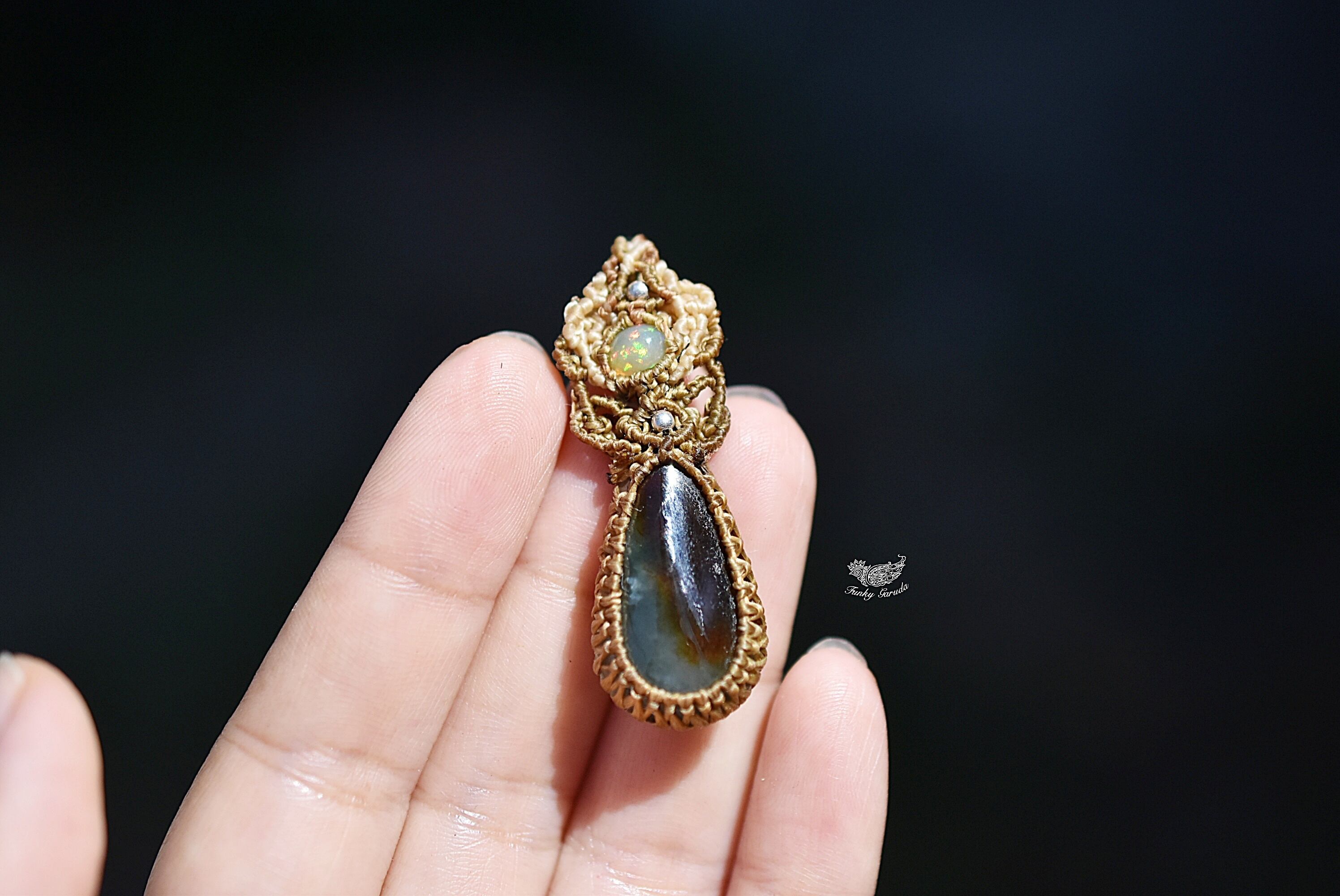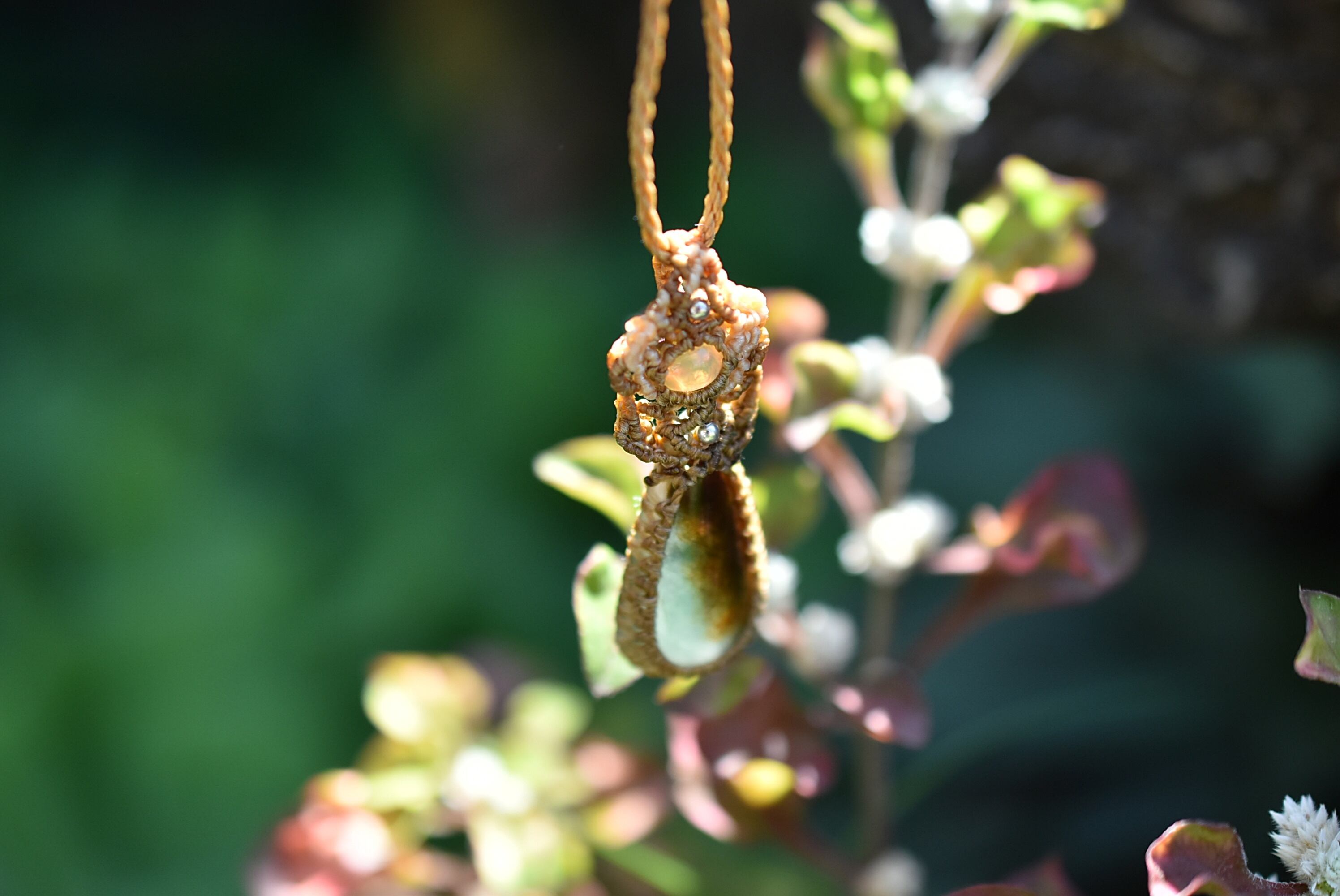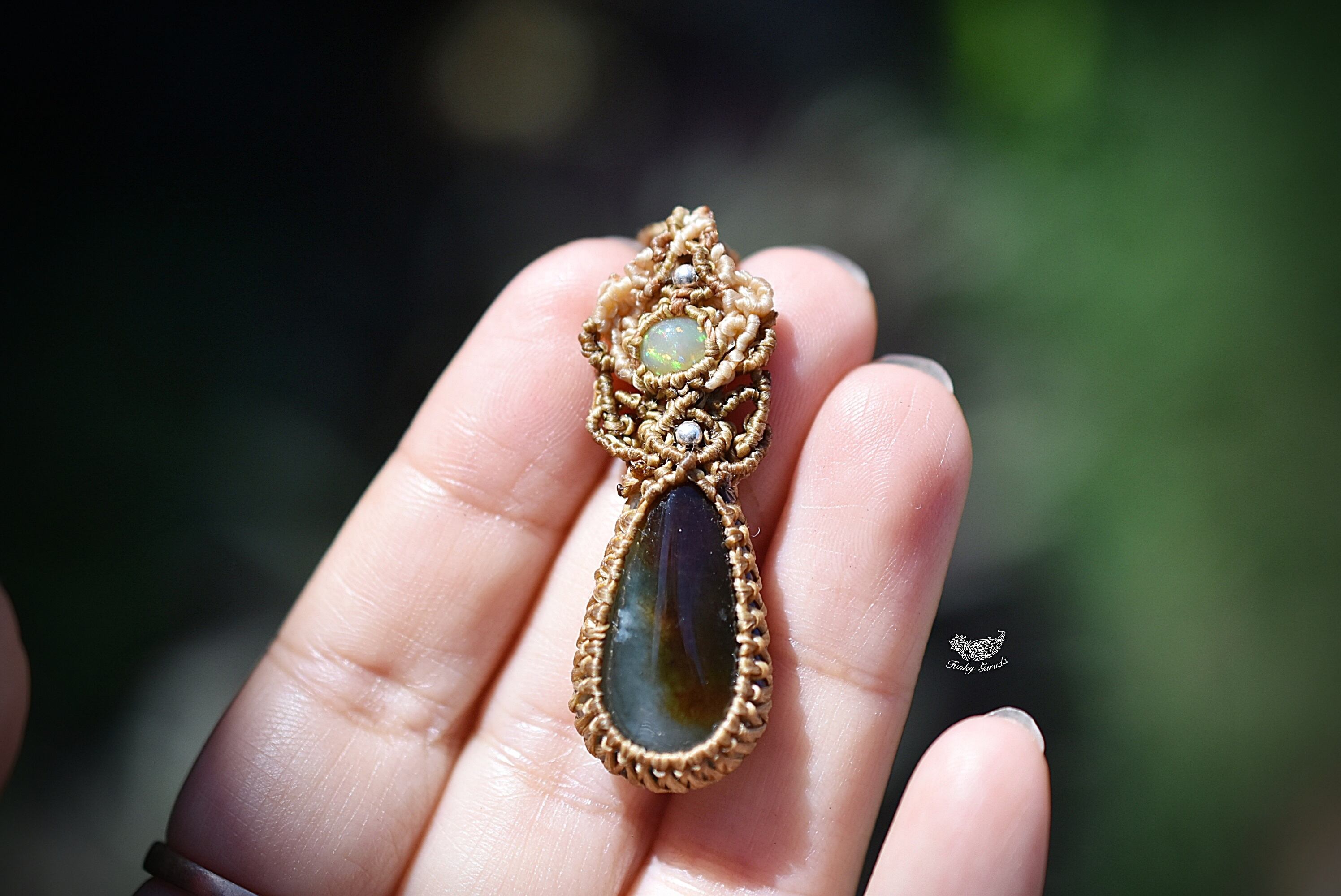 緑の情景★オパール ミャンマー翡翠★マクラメネックレス925