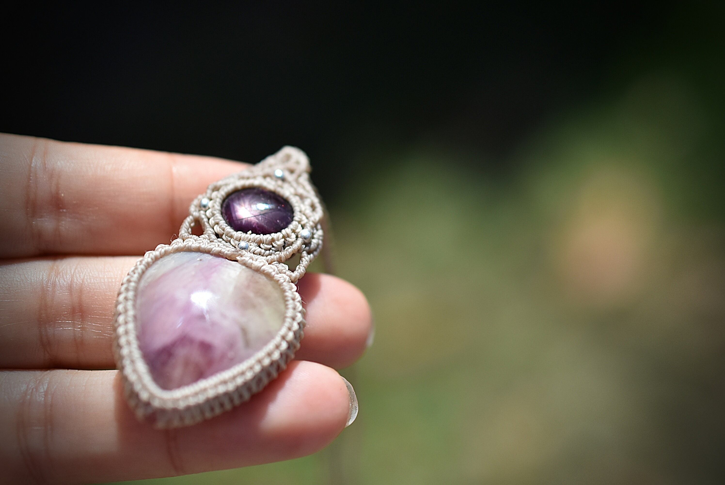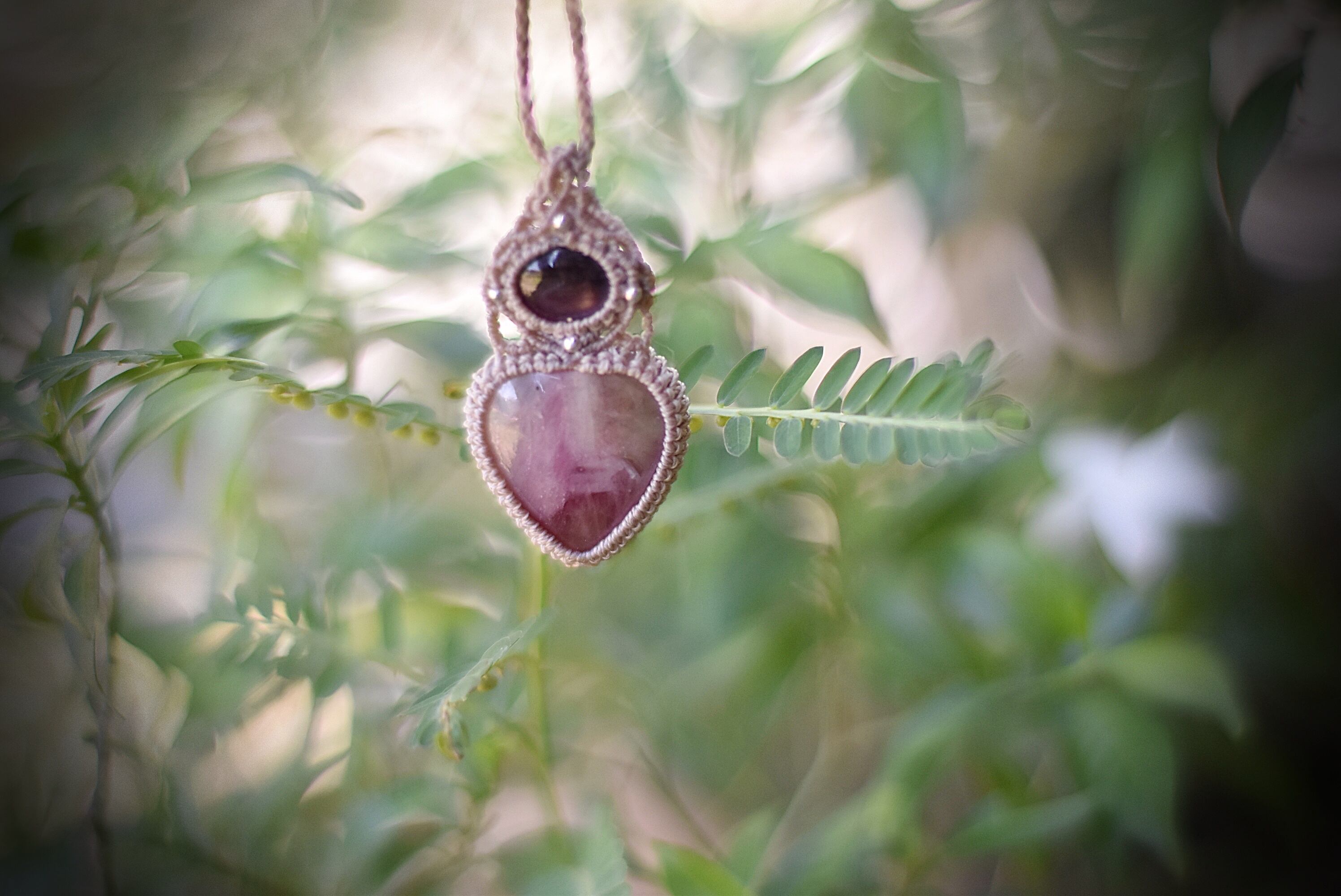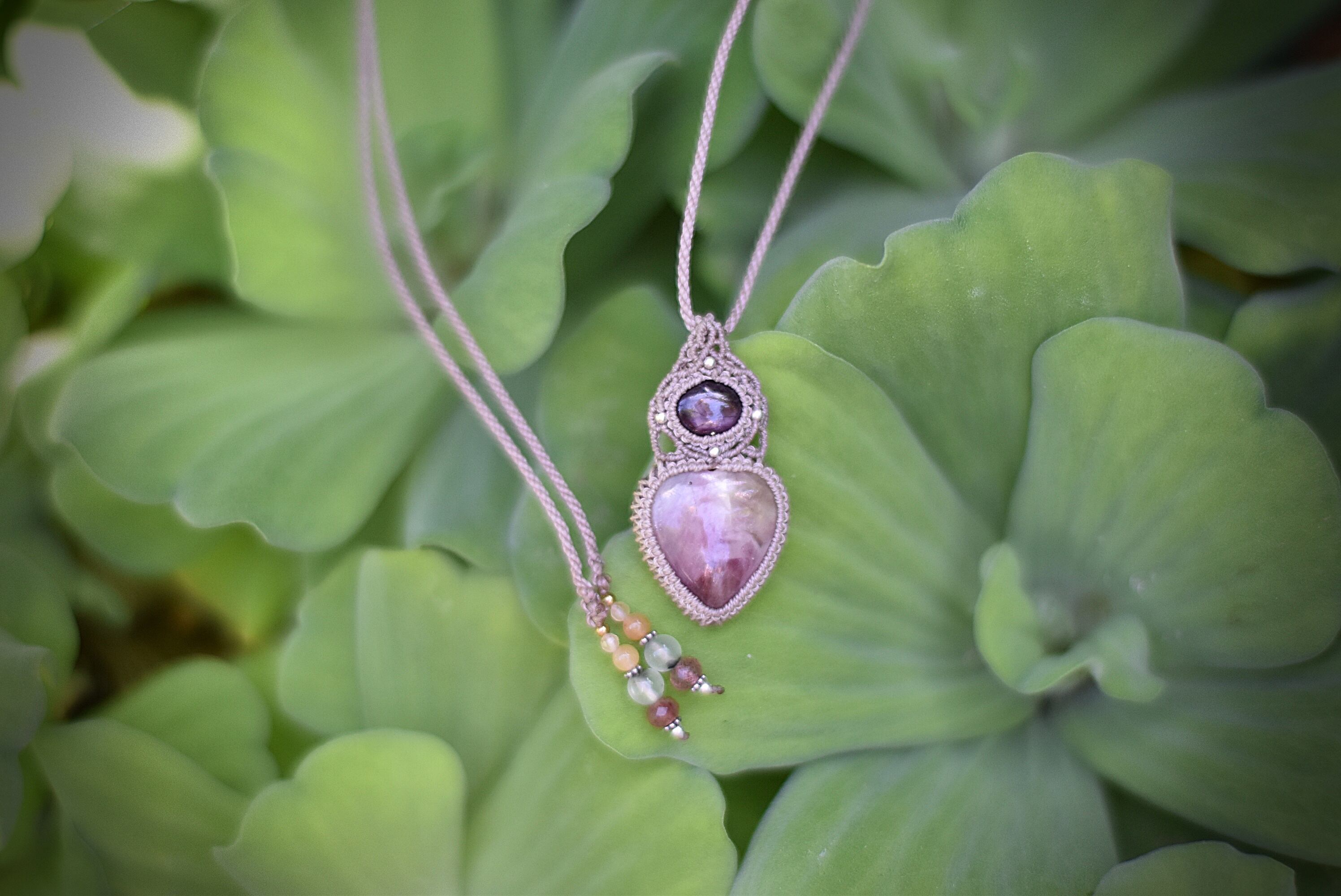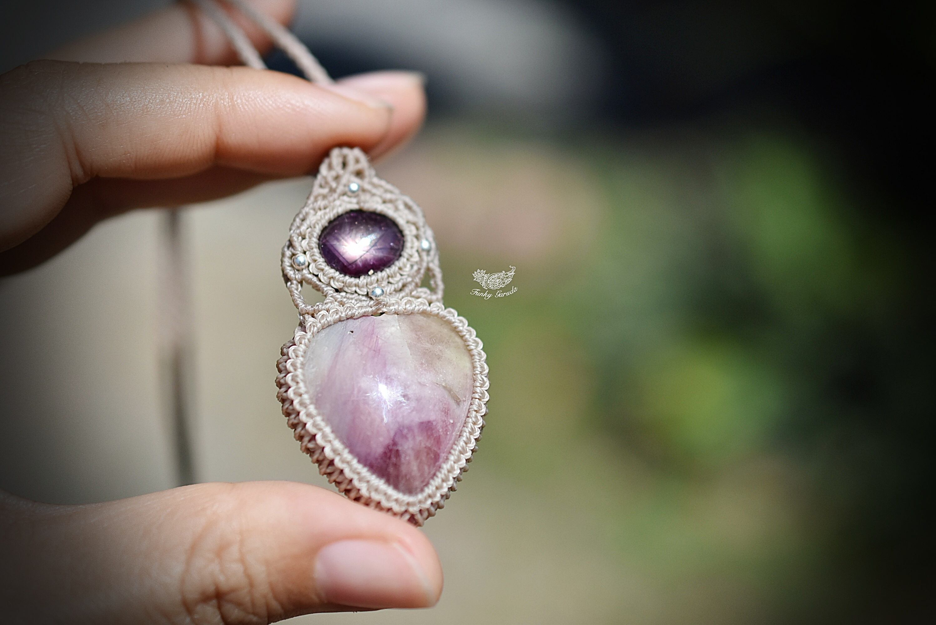 ハートの模様★ピンクサファイア★スタールビー マクラメネックレス932