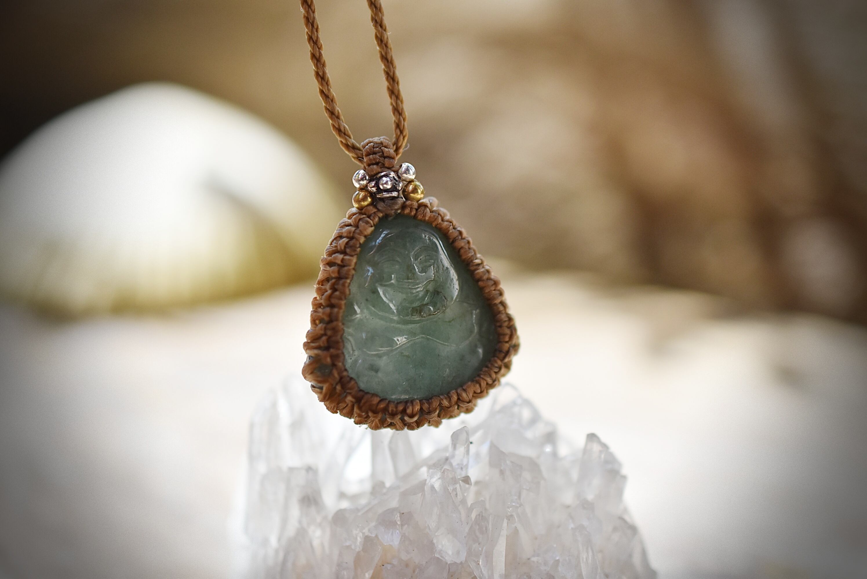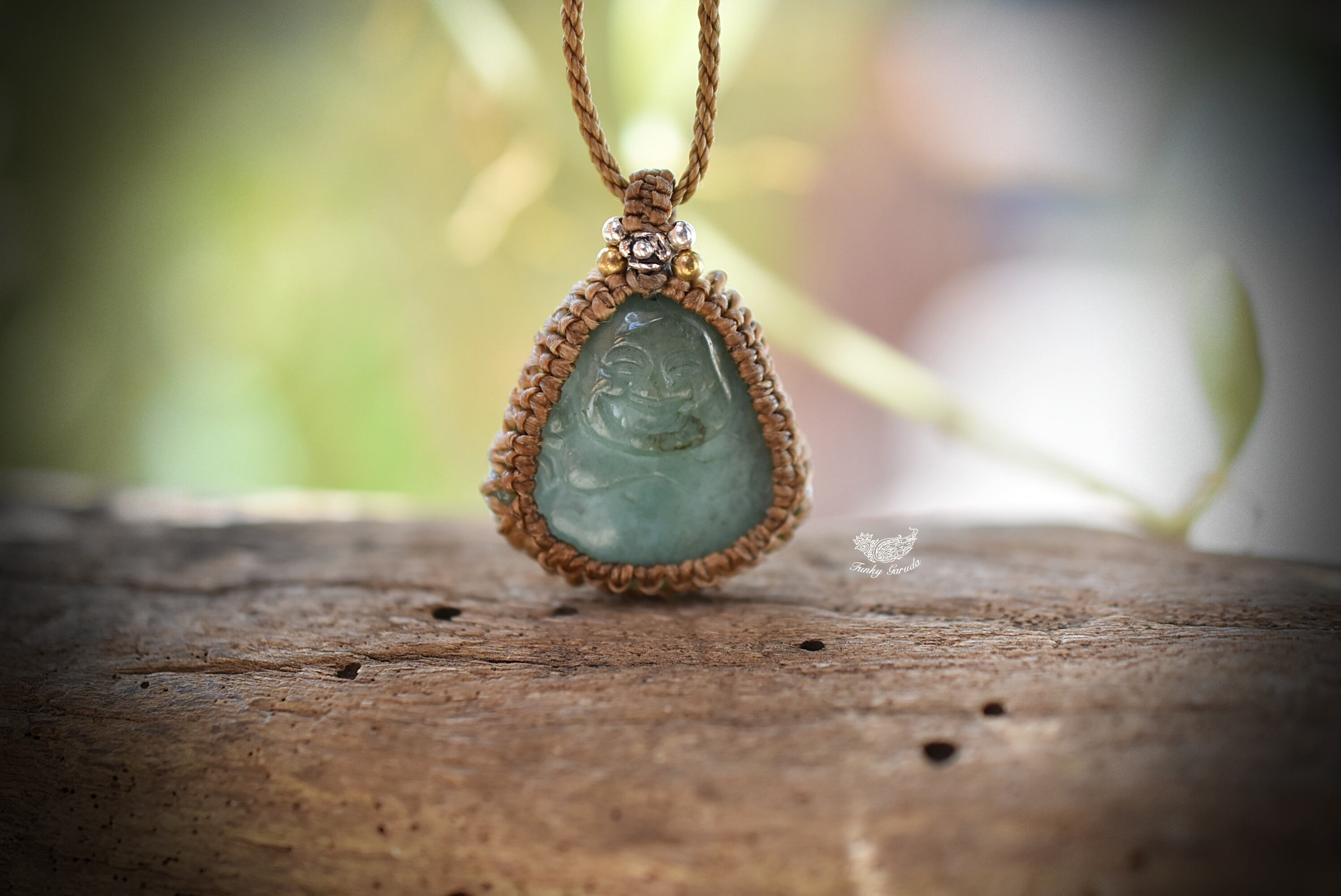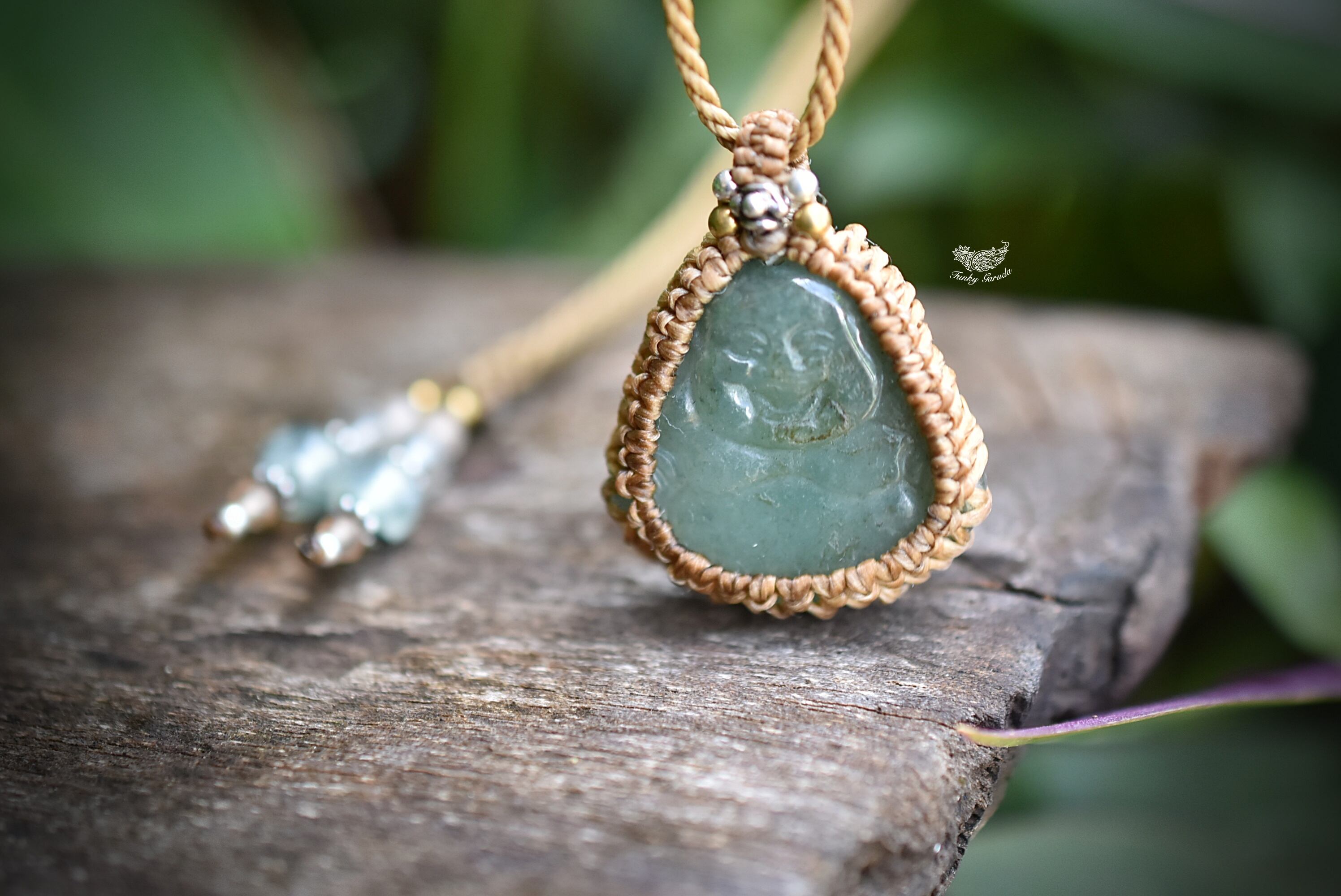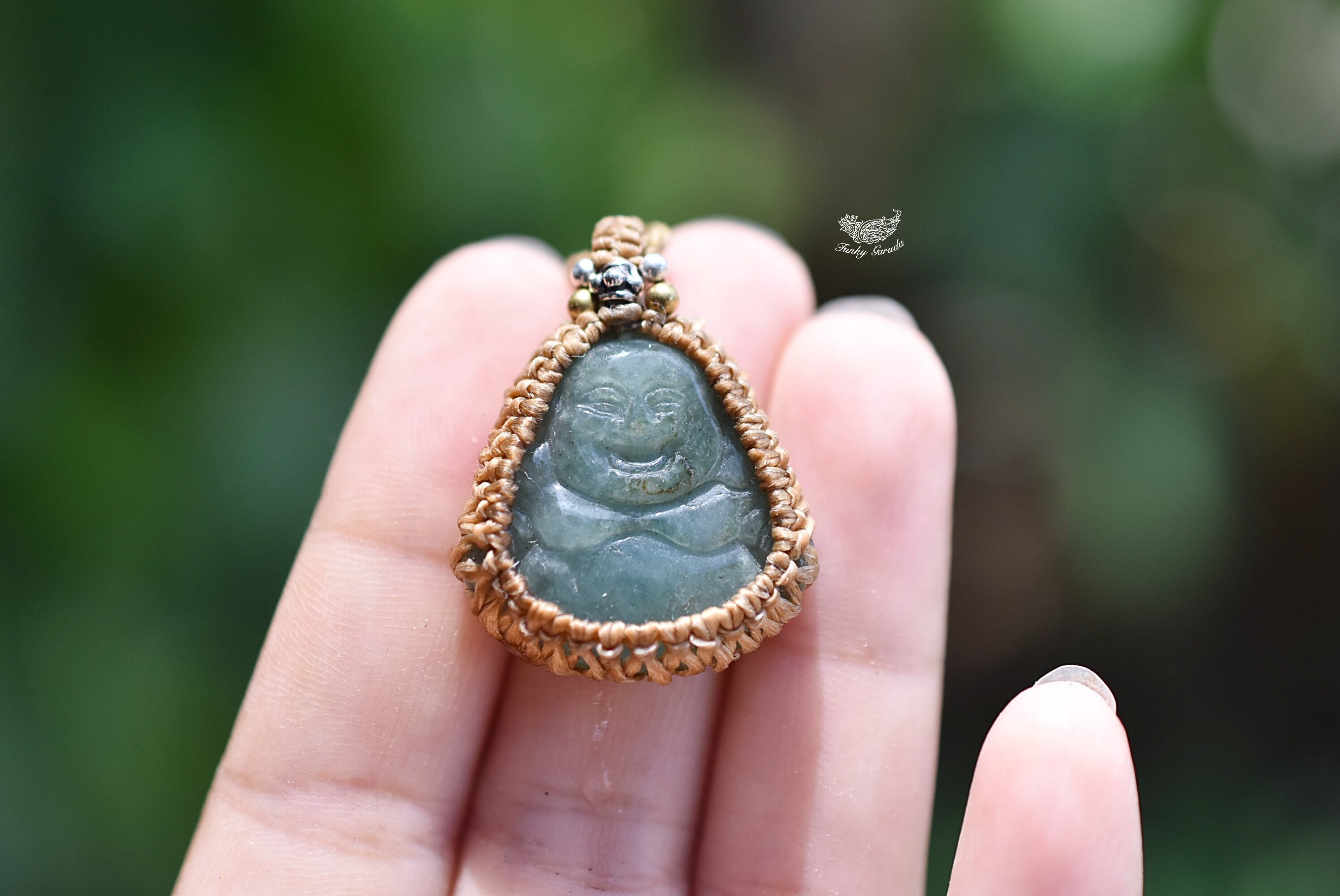 手彫り★Happy ブッダ★グリーンアベンチュリン★マクラメネックレス938