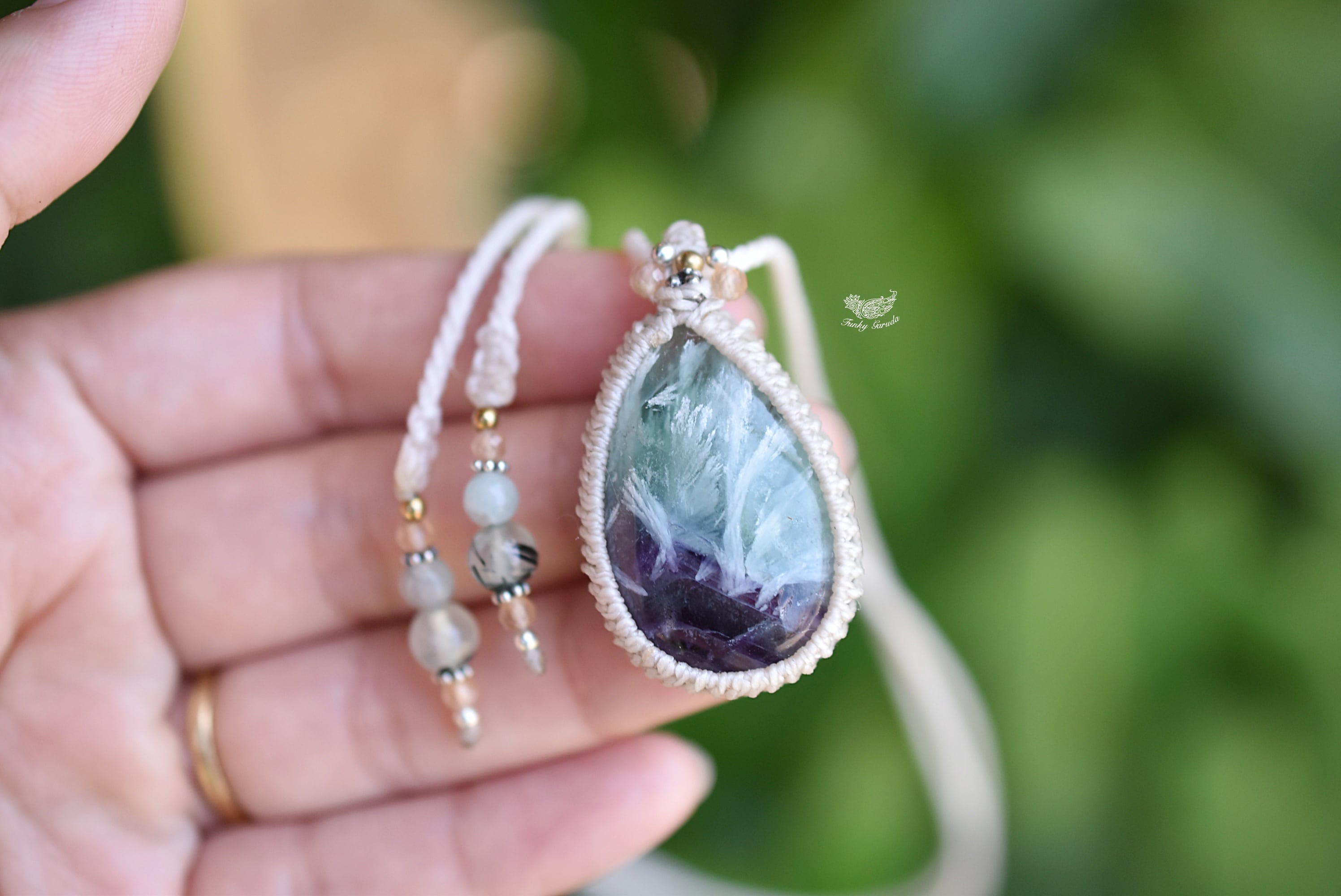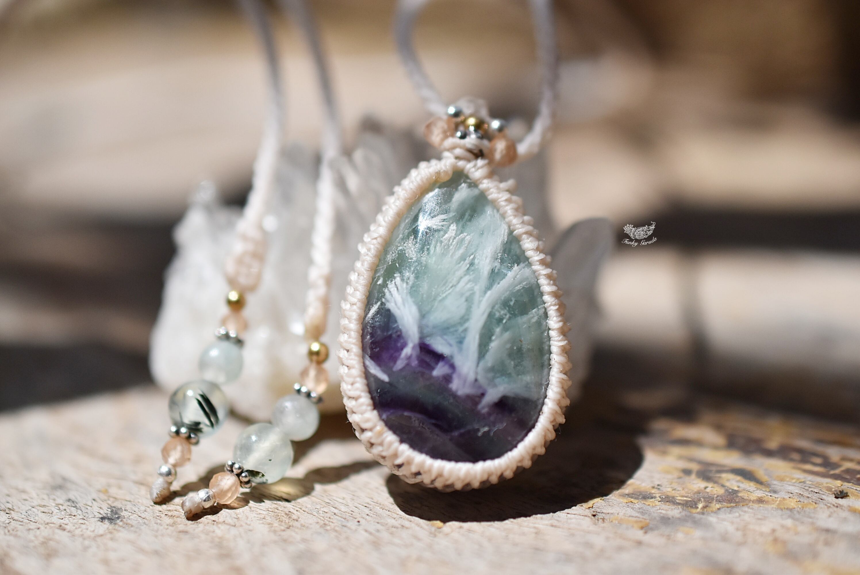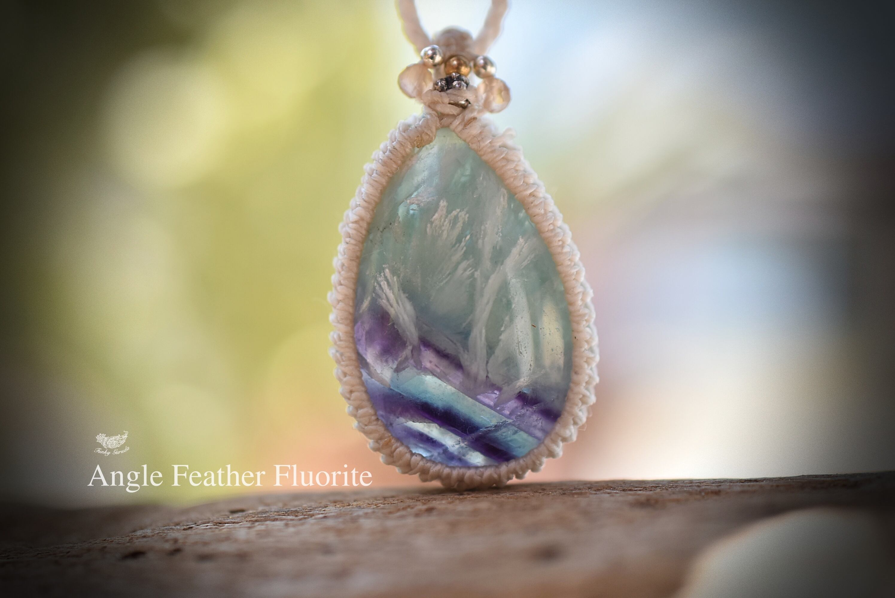 羽根と立体感★エンジェルフェザーフローライト マクラメネックレス964
