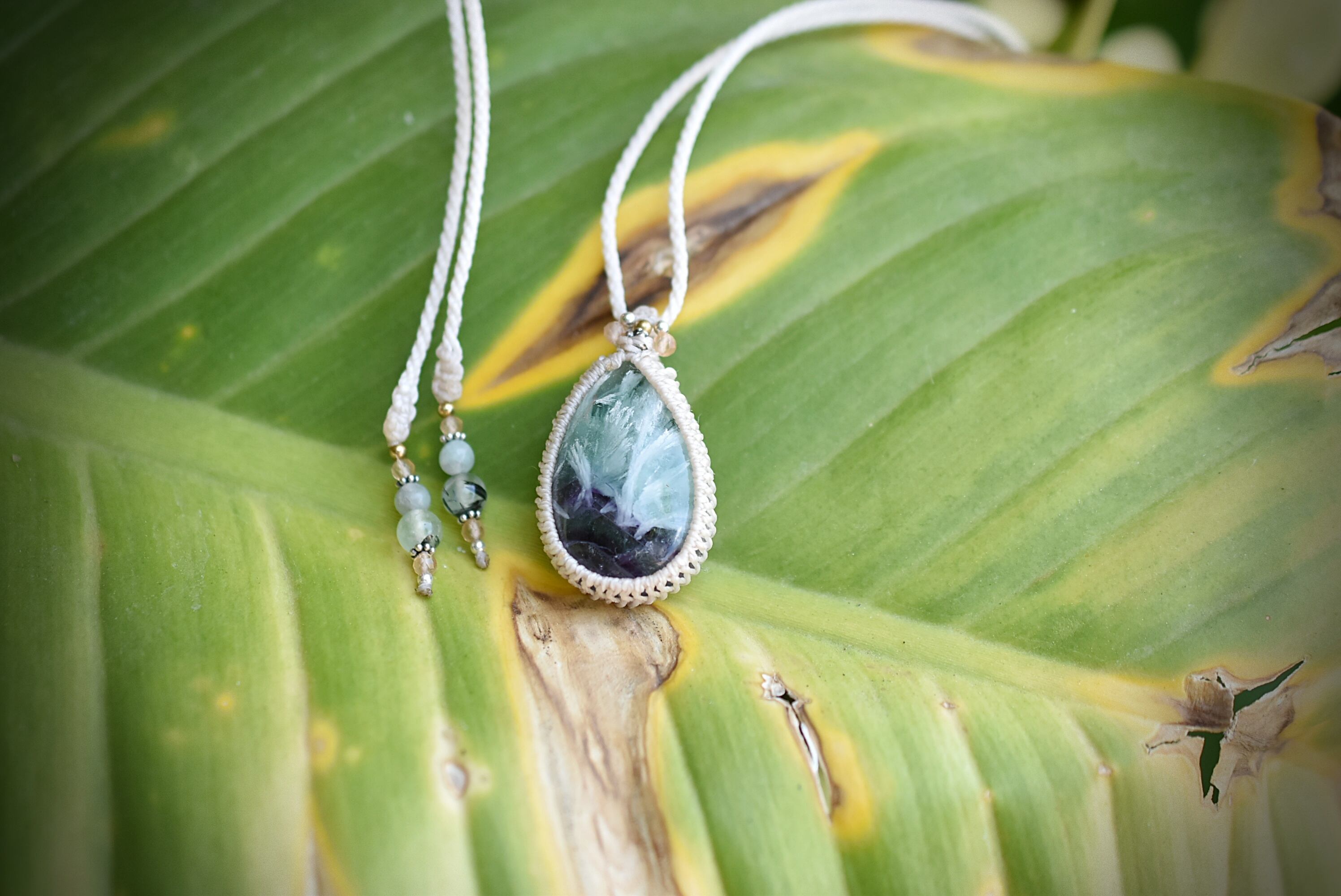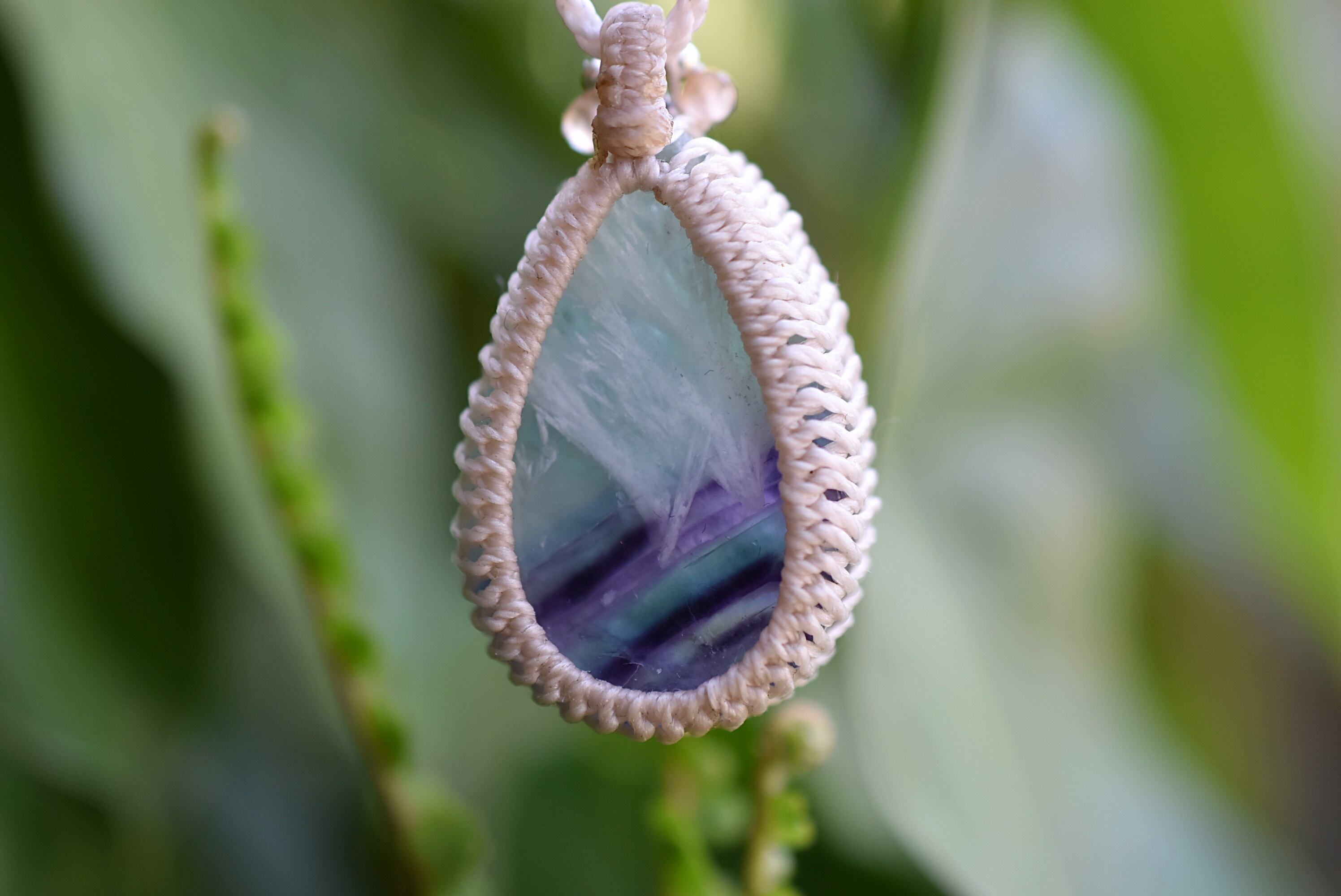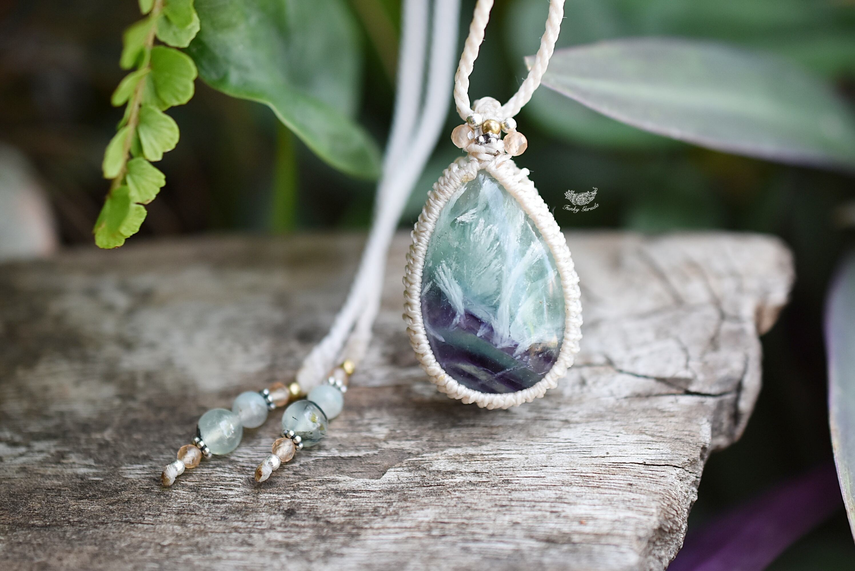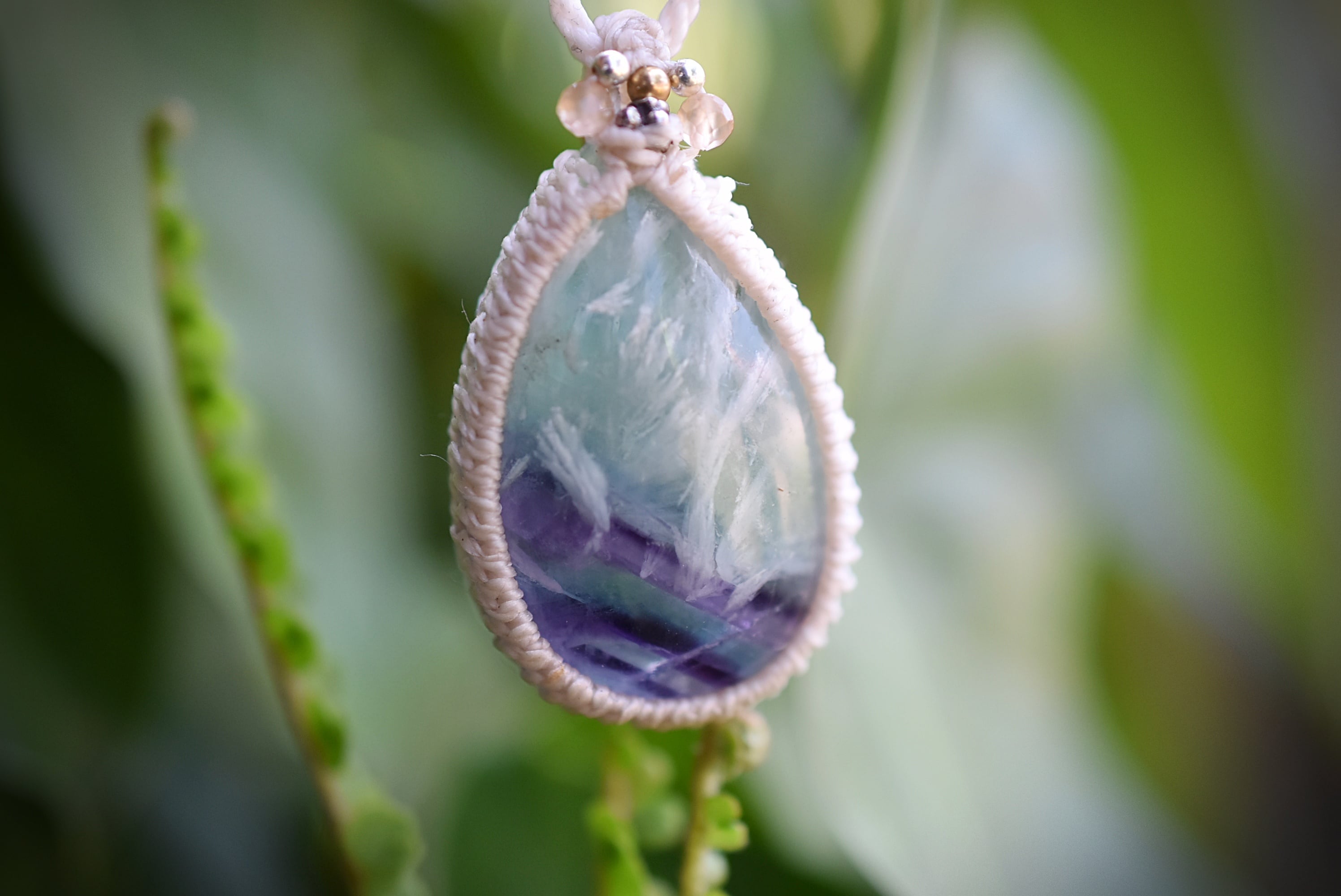 羽根と立体感★エンジェルフェザーフローライト マクラメネックレス964