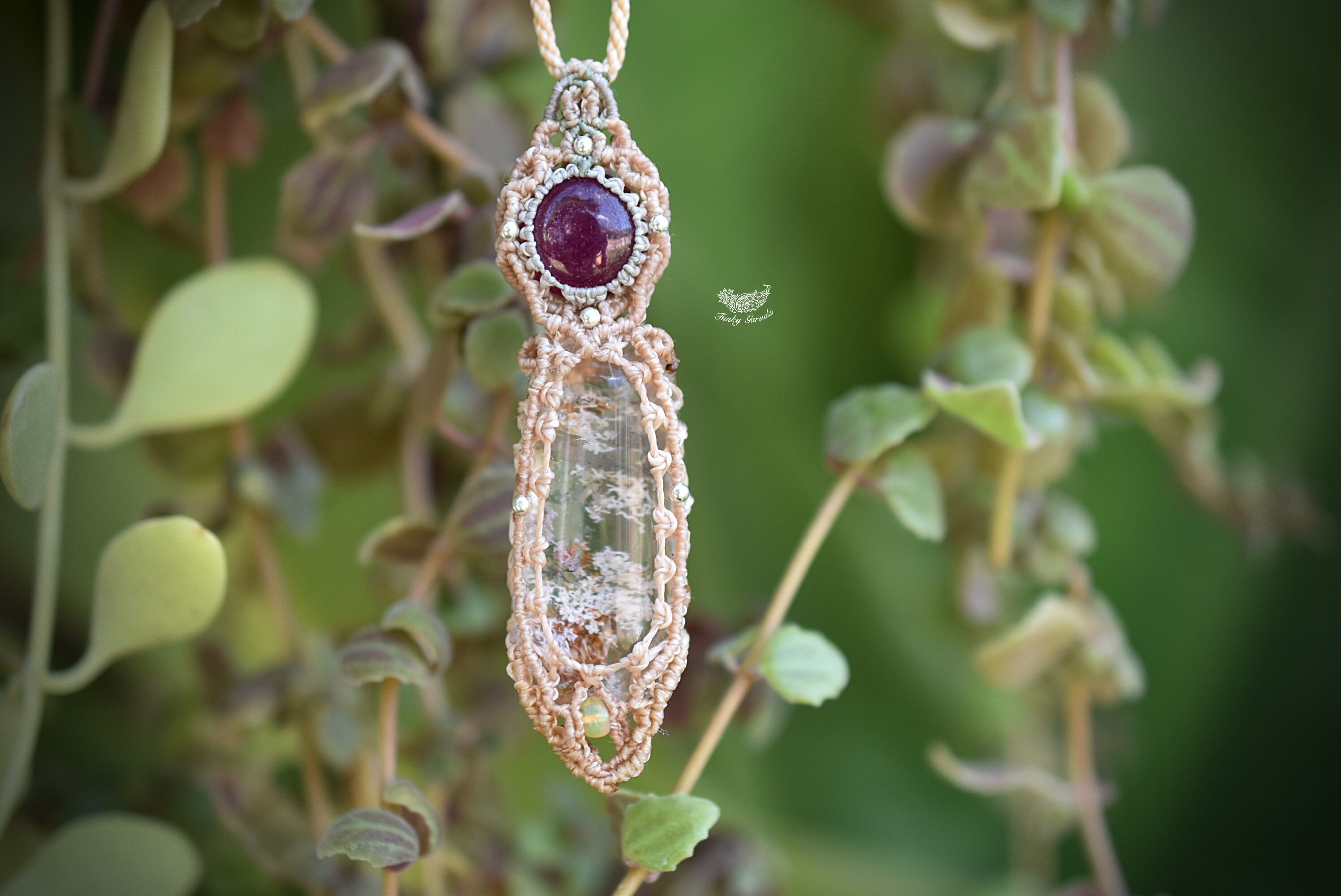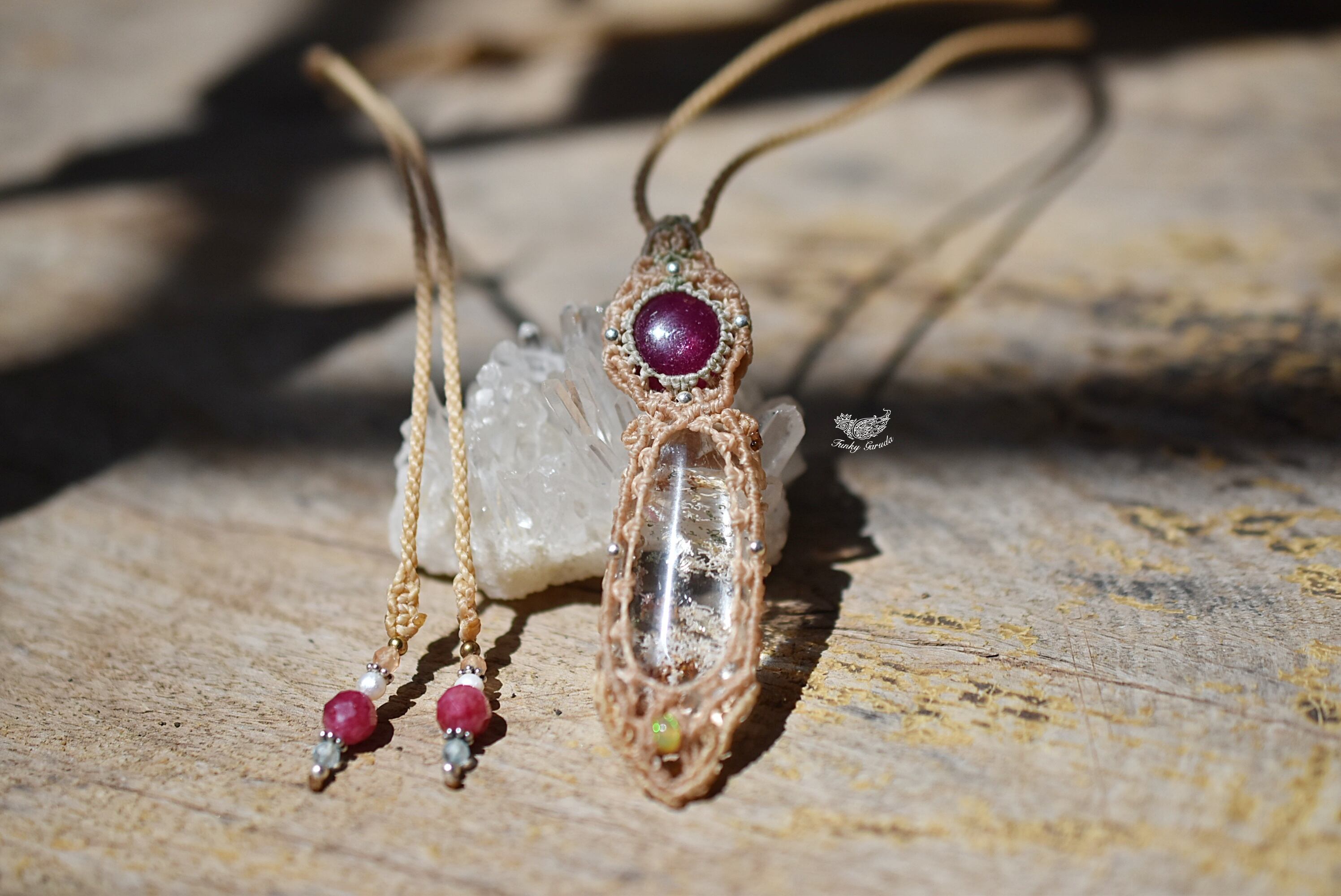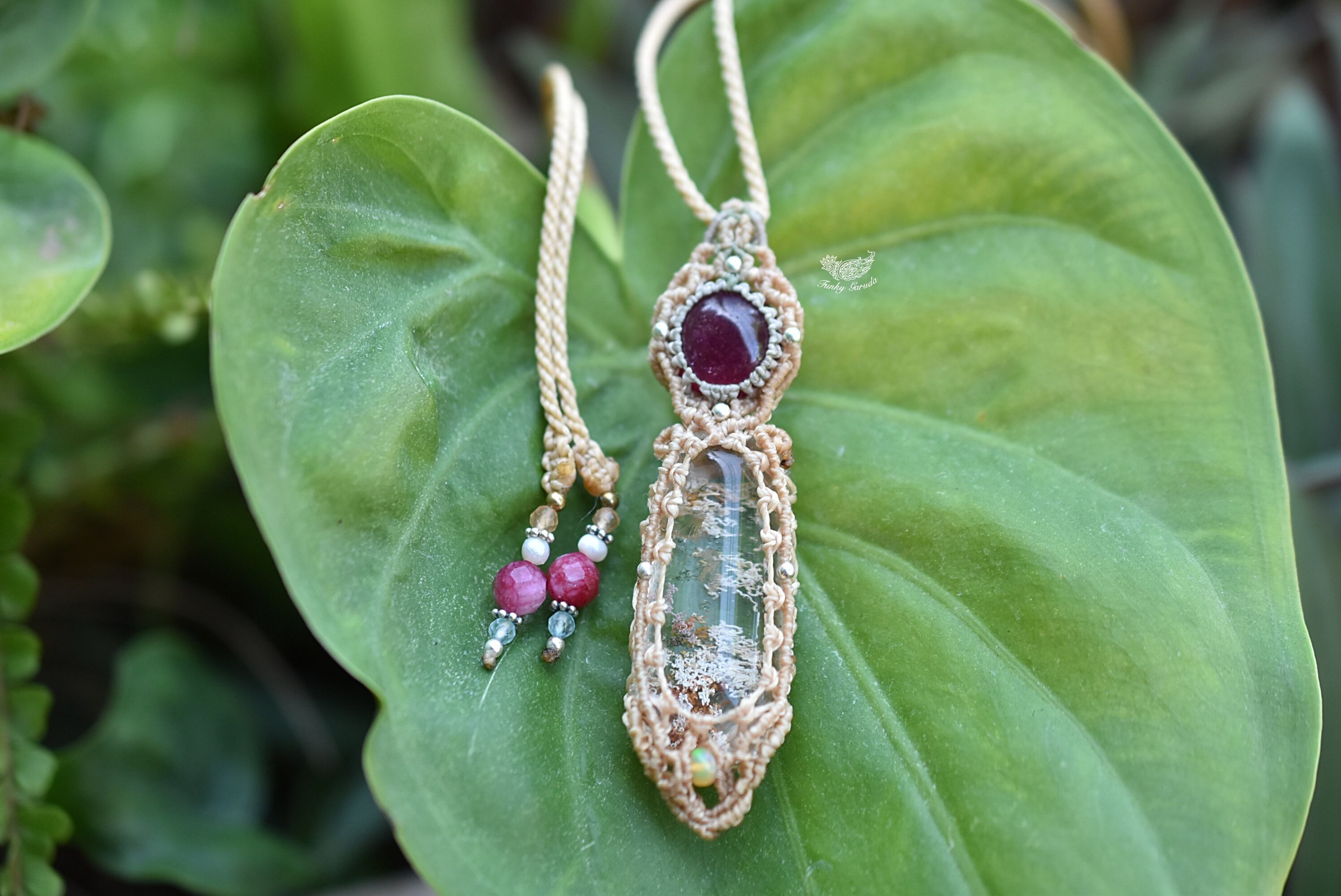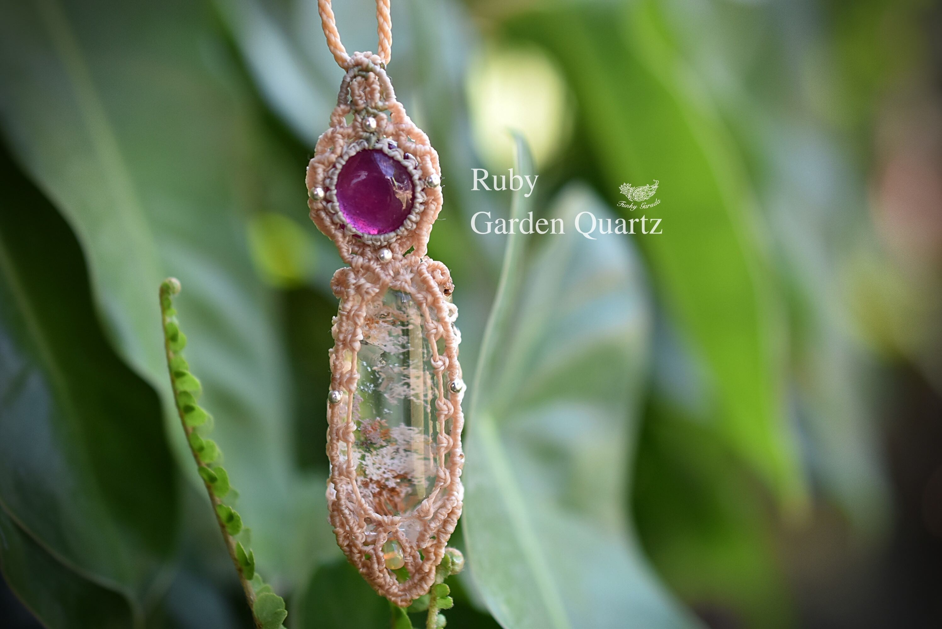 時空を越える旅★ルビー★ホワイトガーデンクォーツ マクラメネックレス965