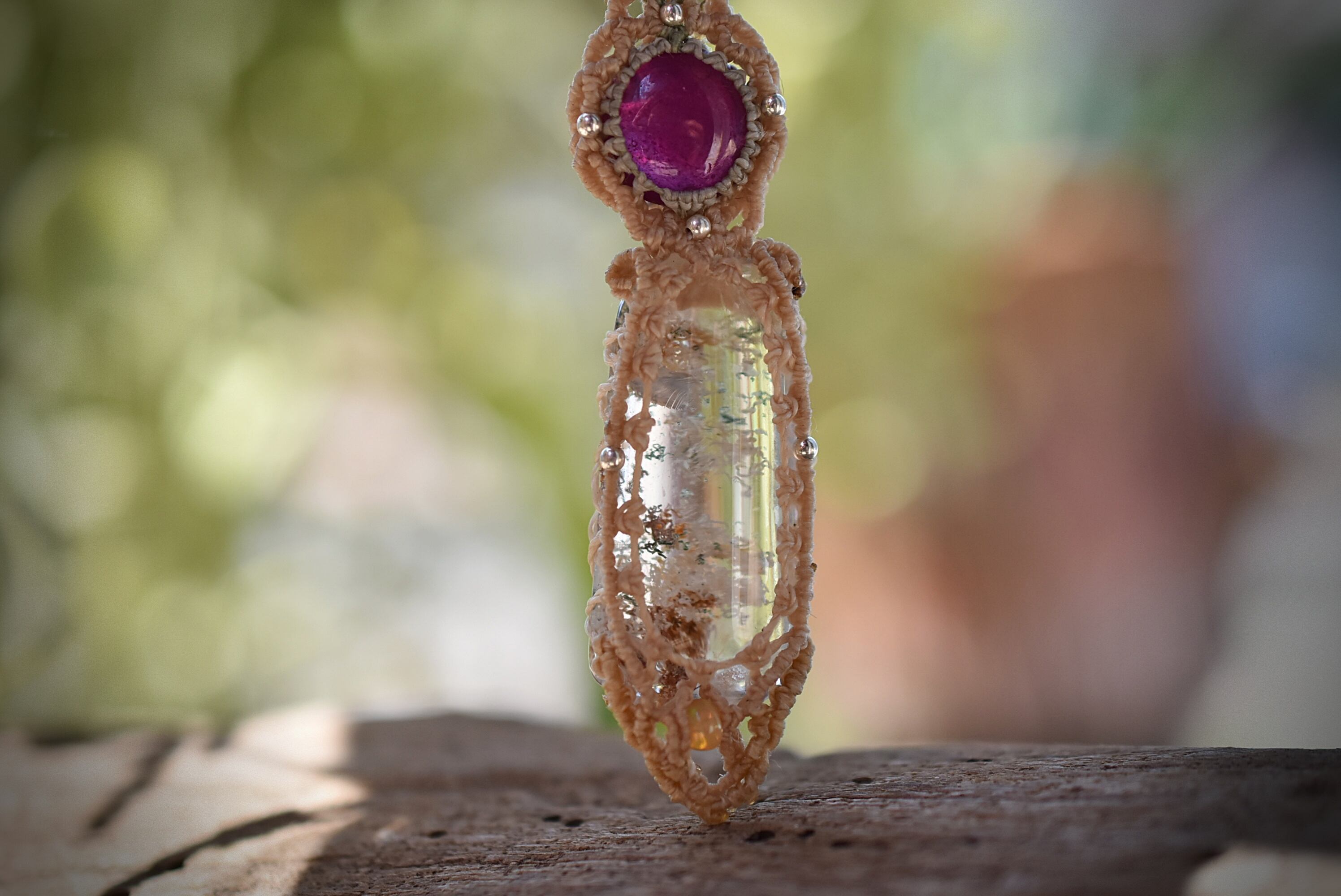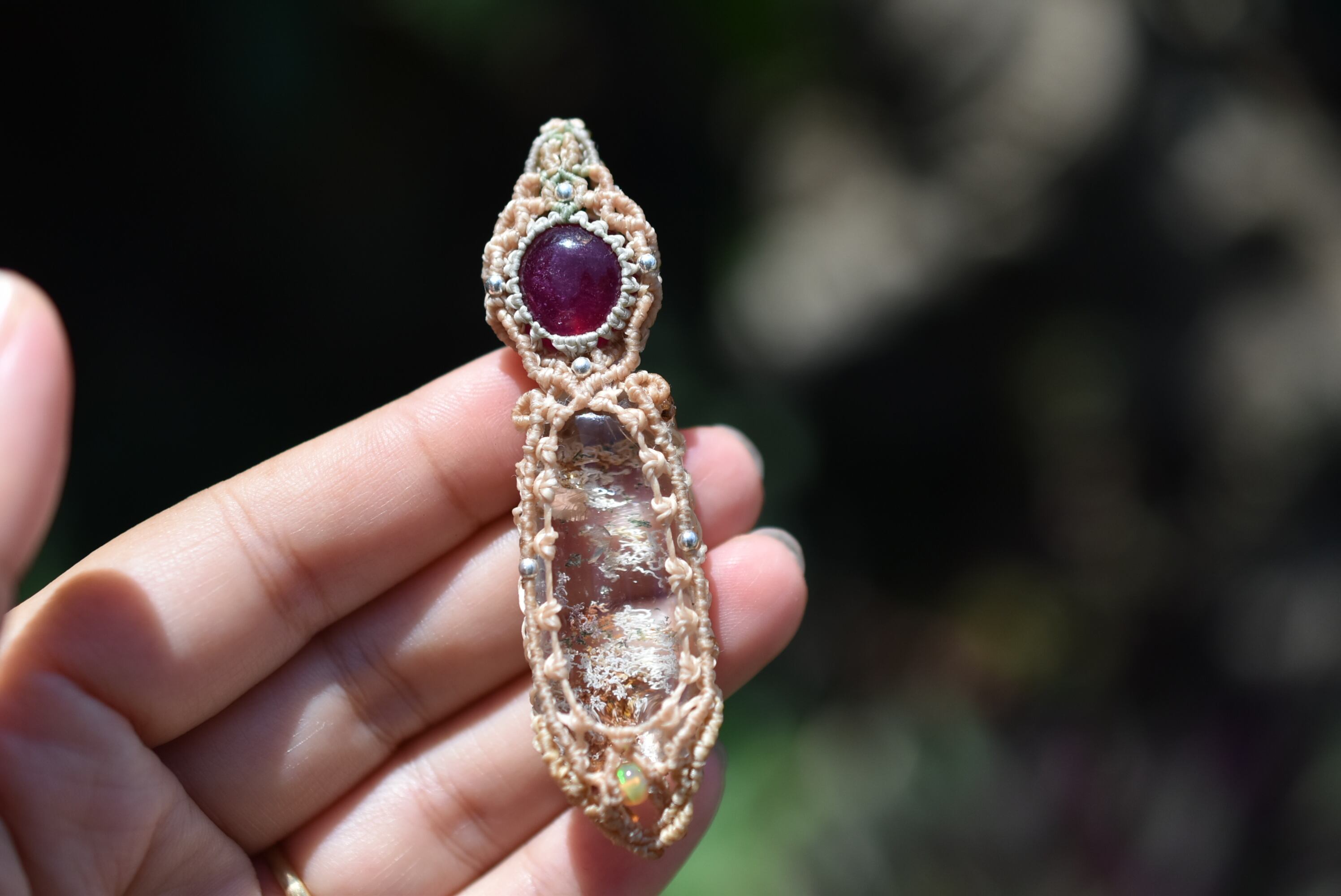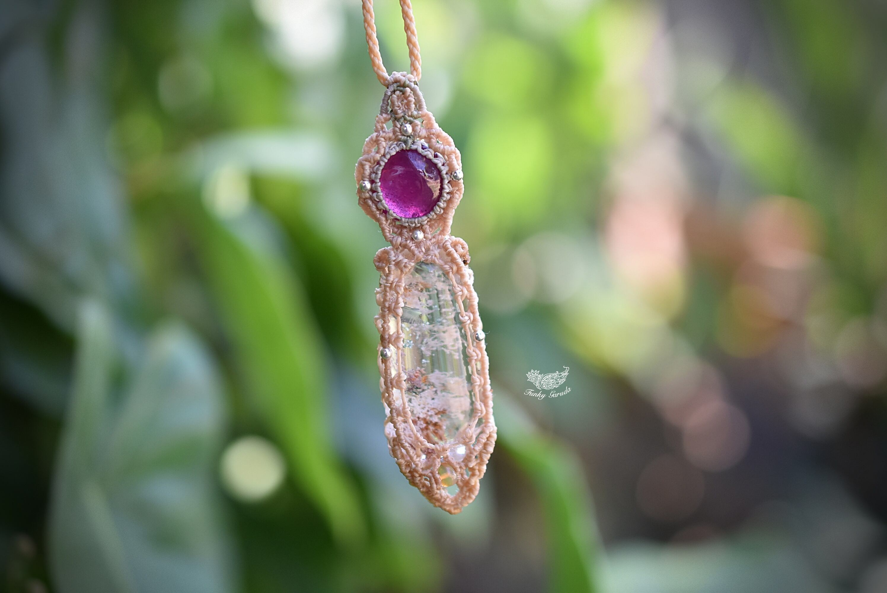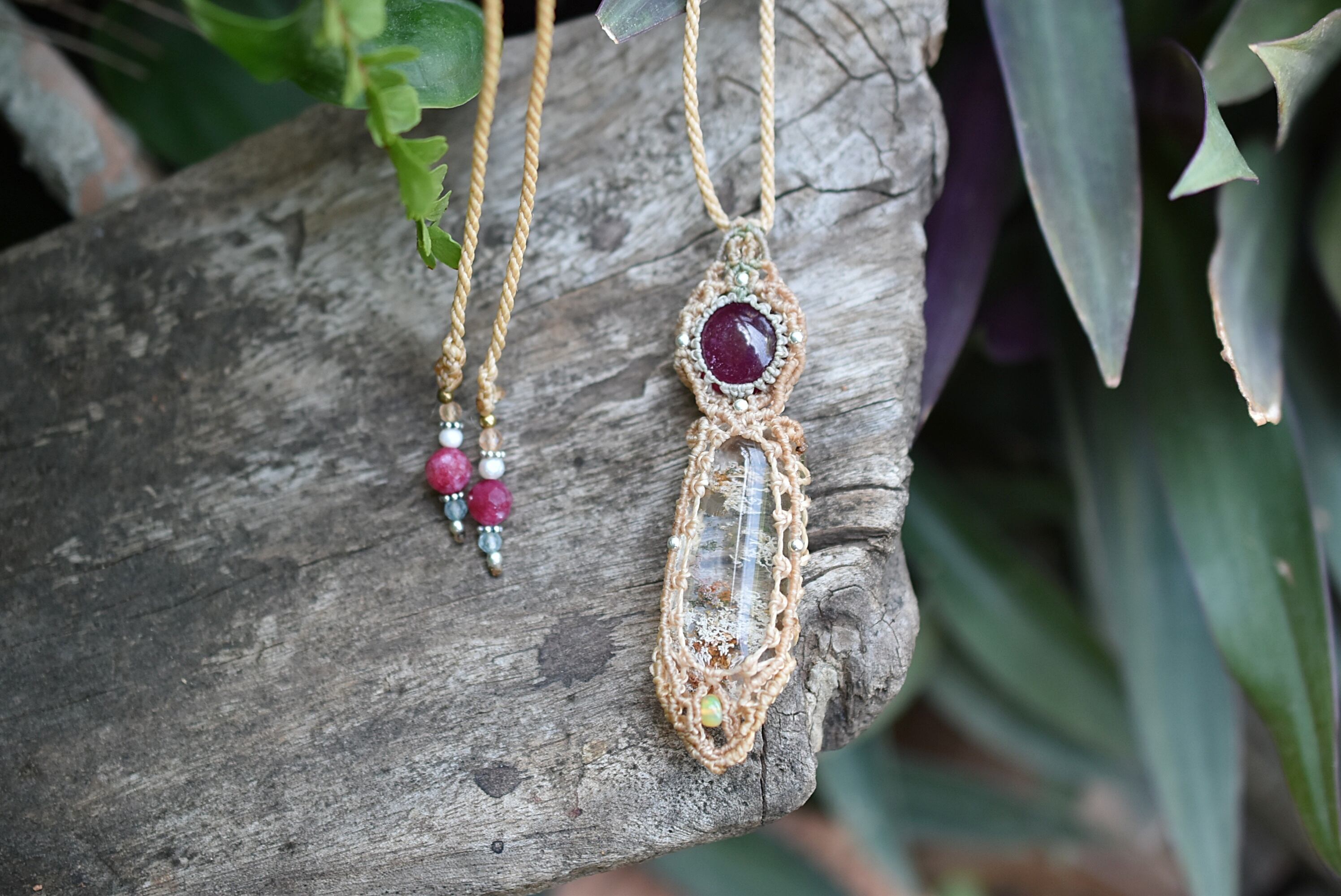 時空を越える旅★ルビー★ホワイトガーデンクォーツ マクラメネックレス965