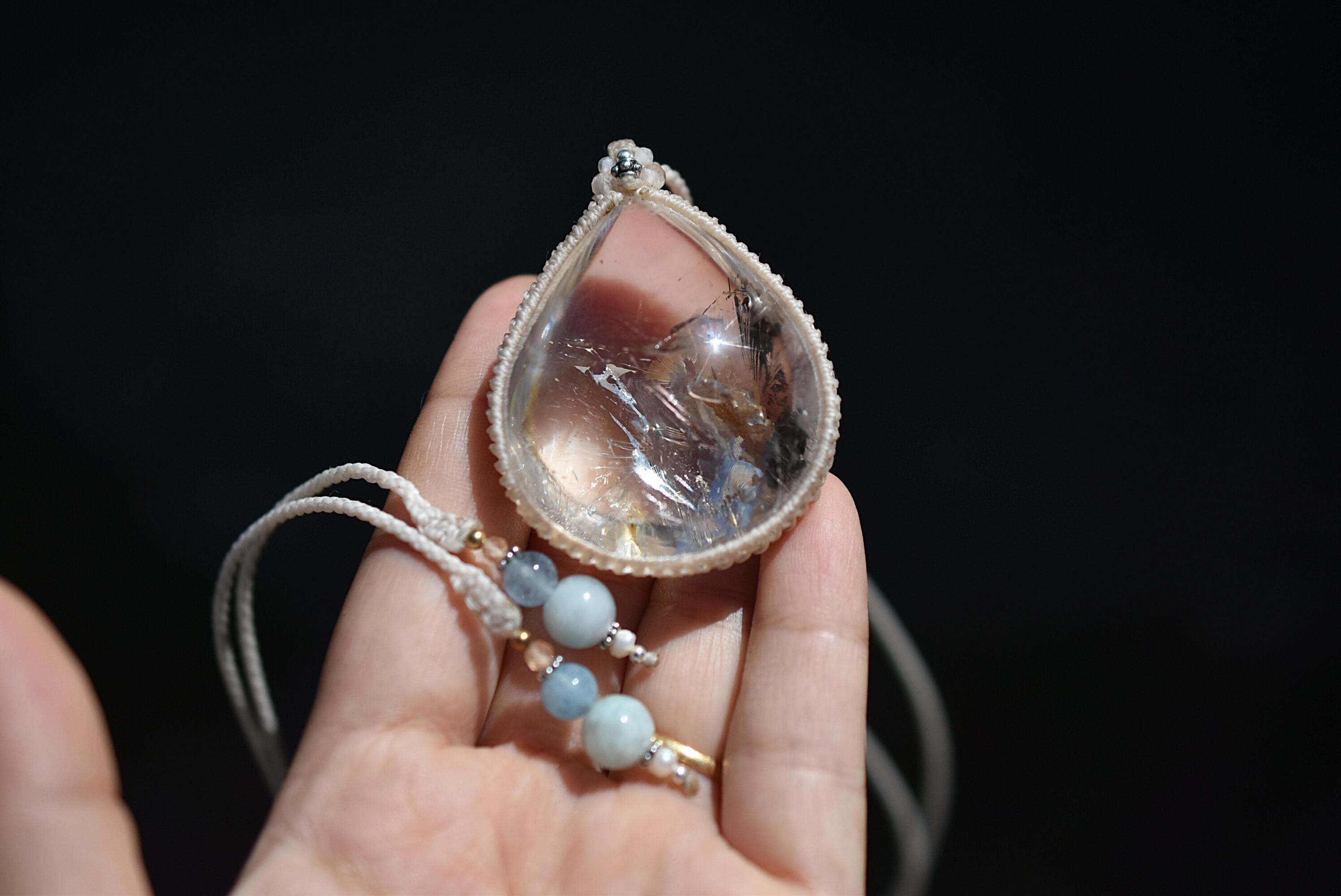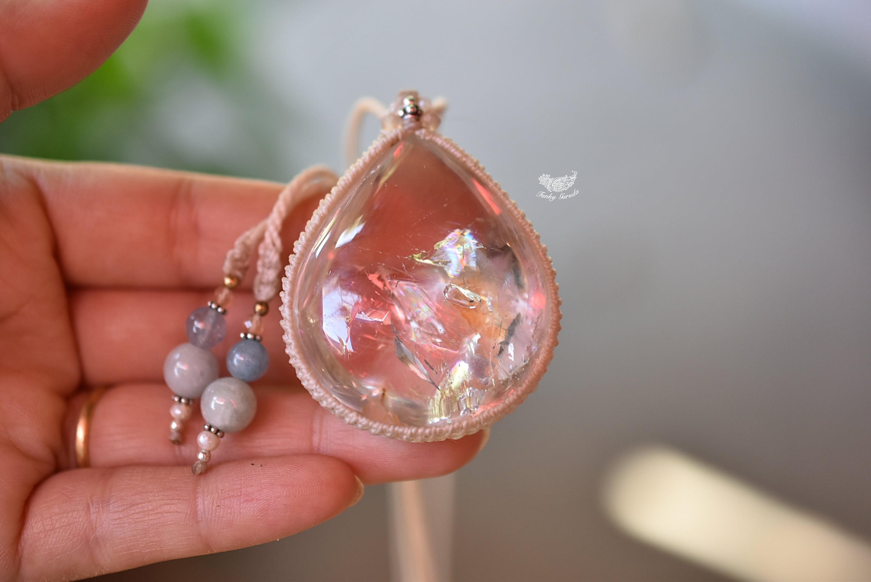 特大★古代の水入り★虹大橋★水晶 マクラメネックレス968