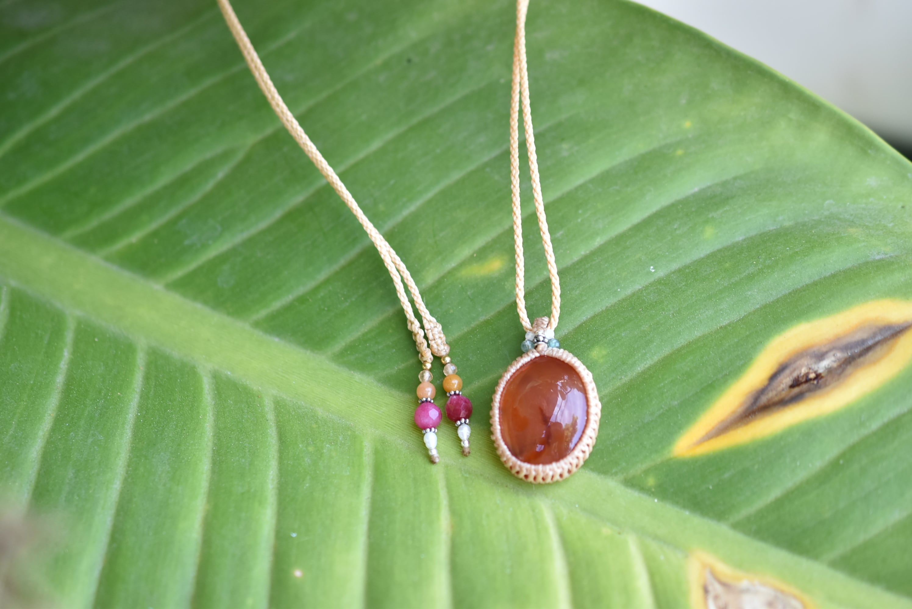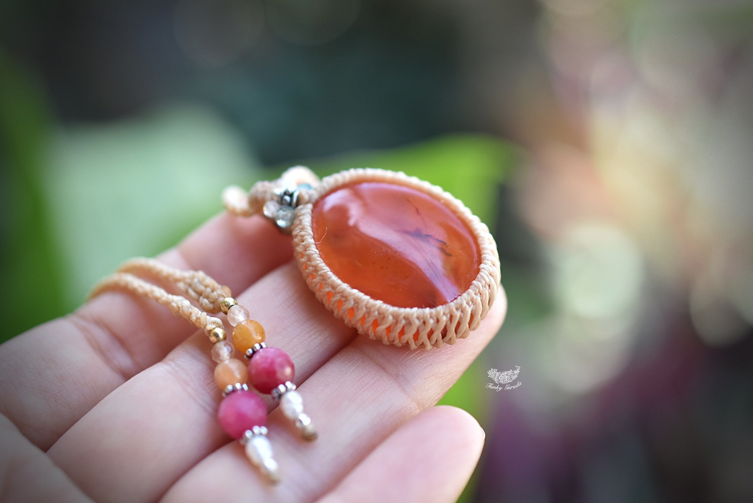 夕日の思い出★カーネリアン マクラメペンダント970