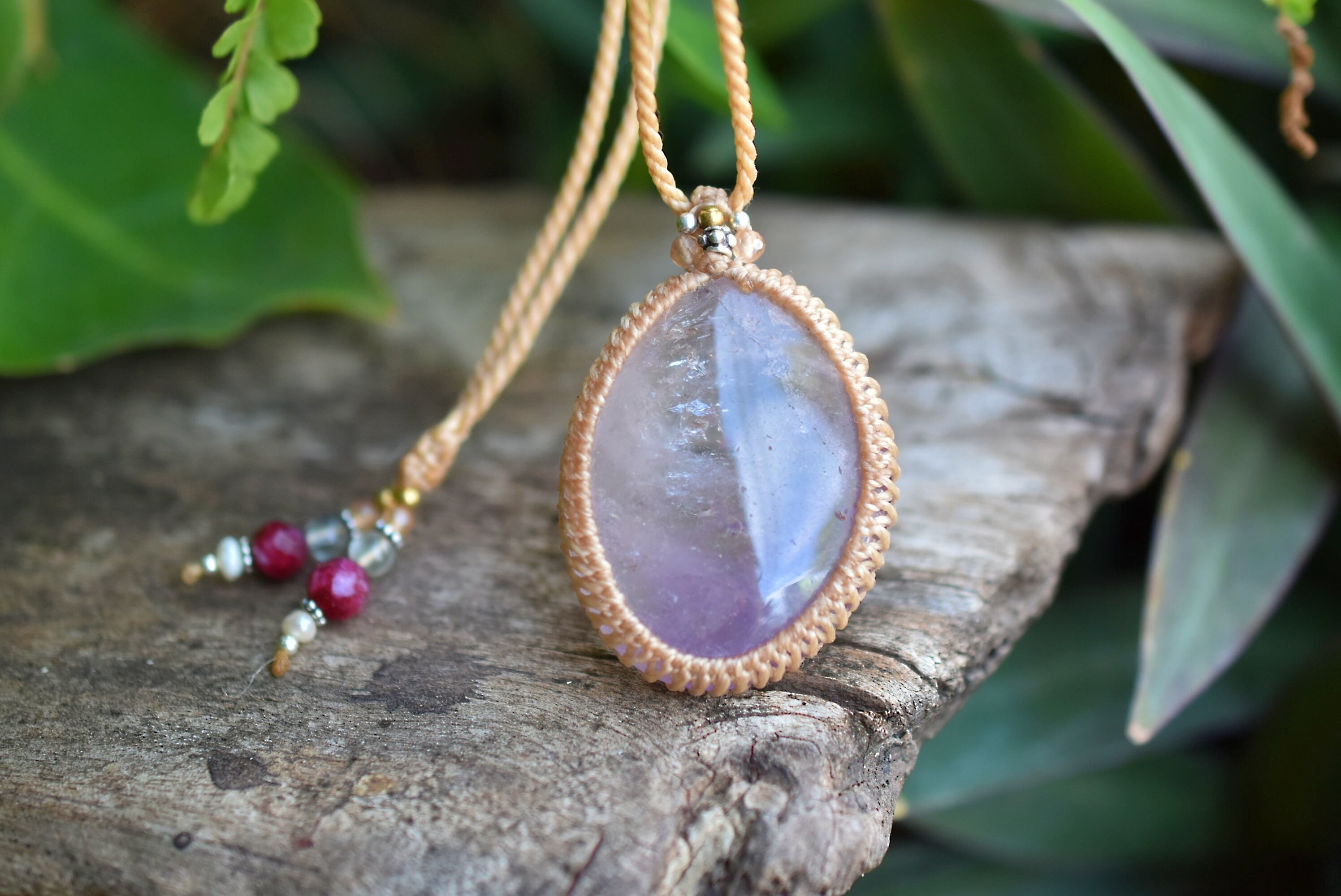 虹グラデーション★ラベンダーアメジスト マクラメペンダント971