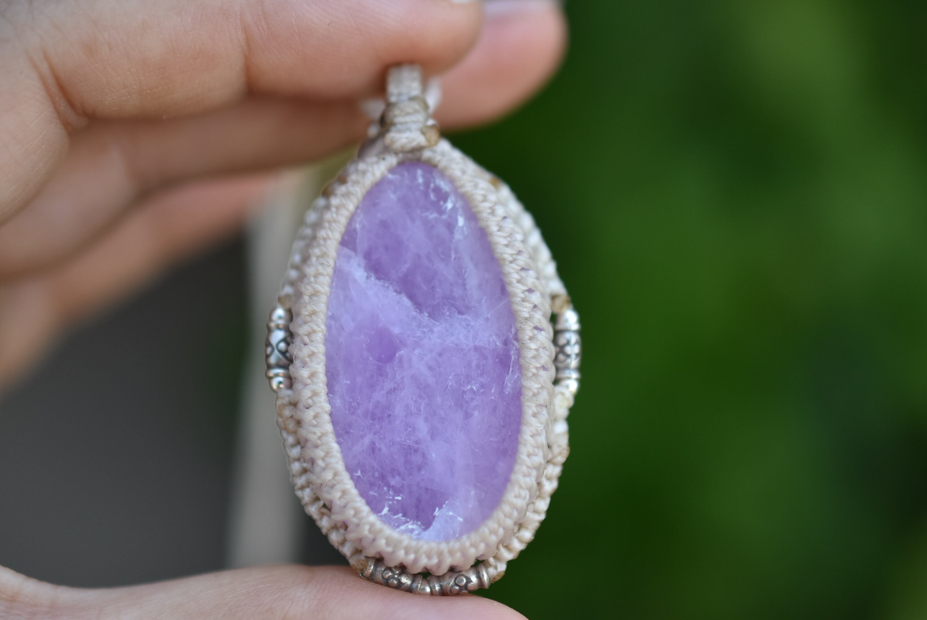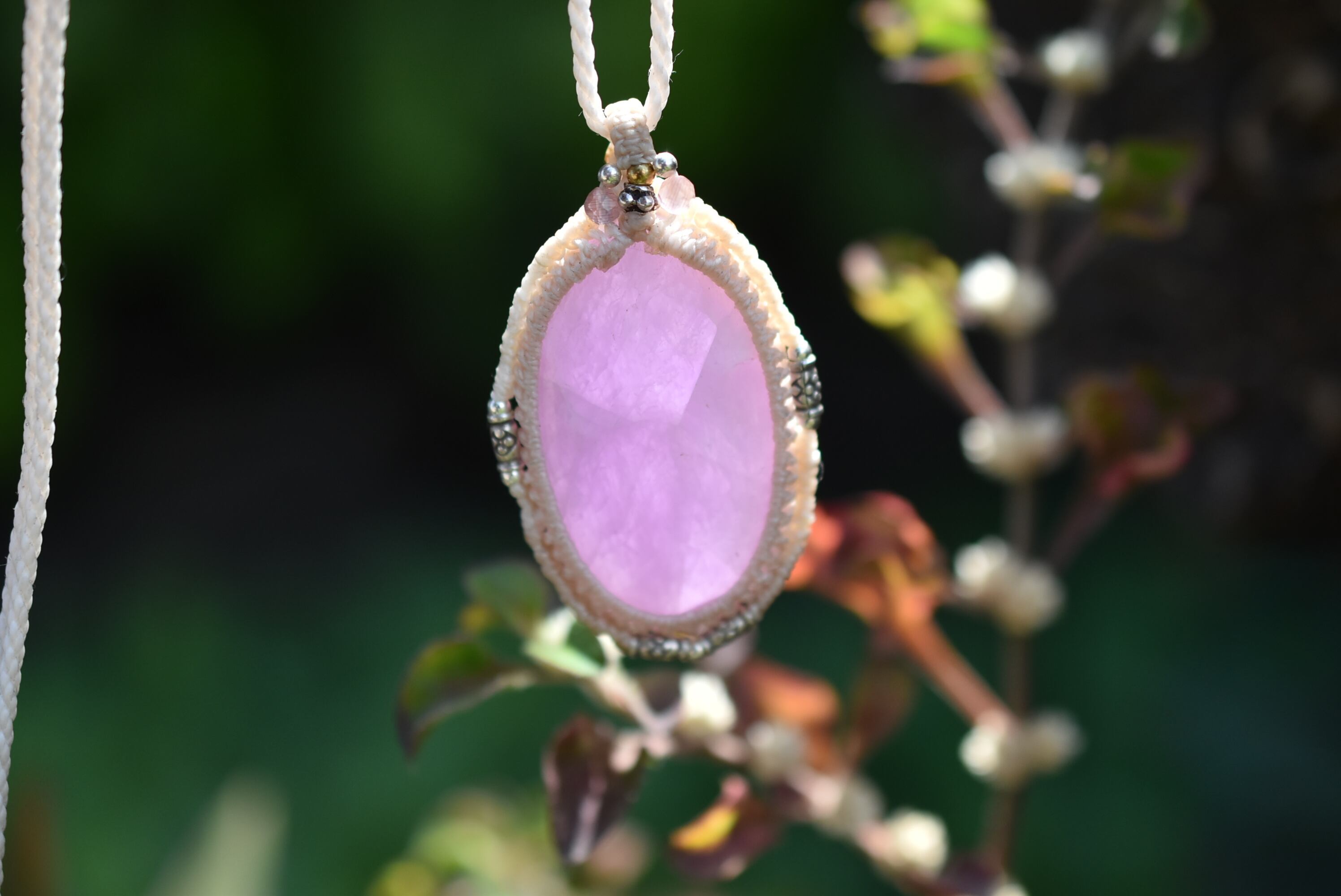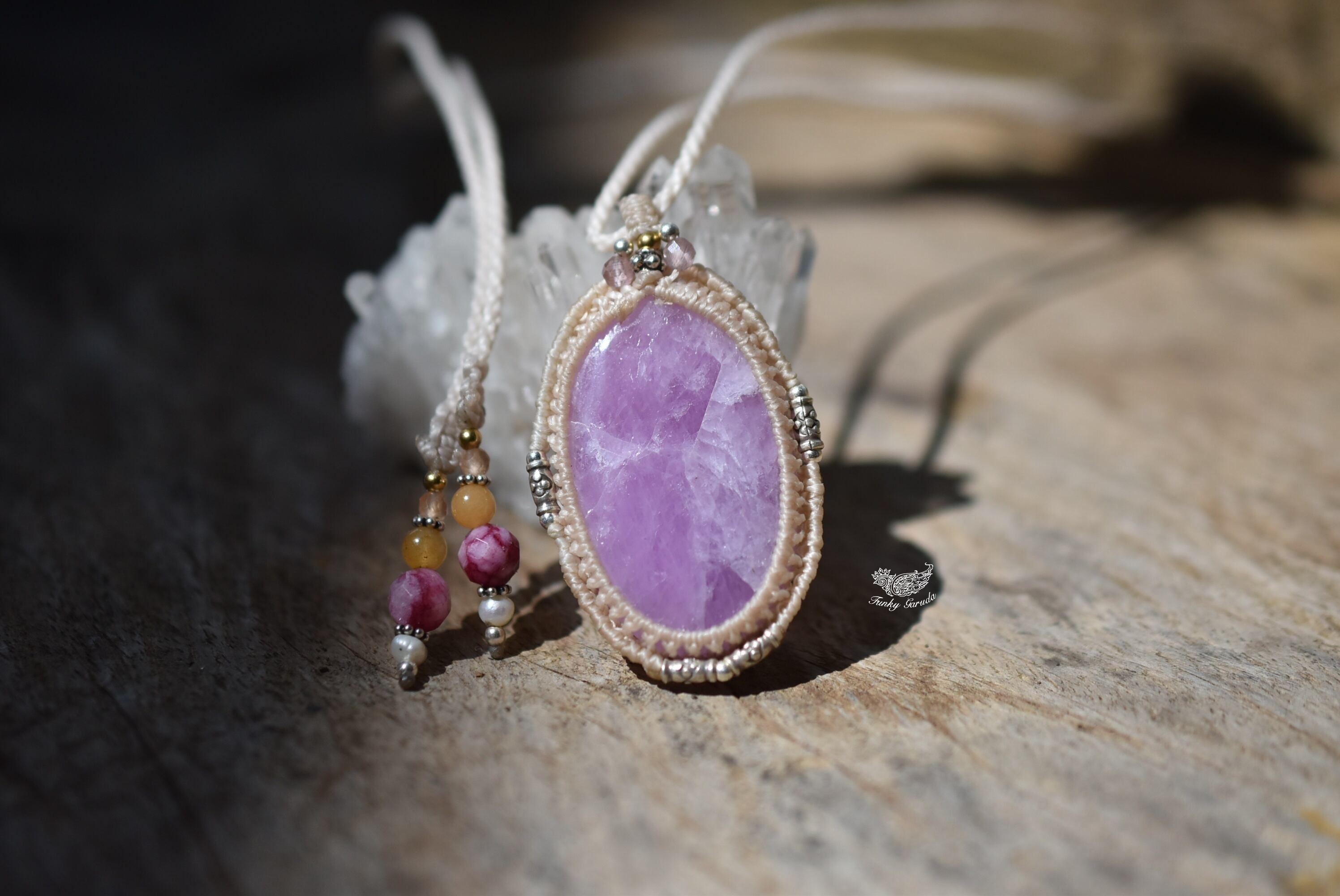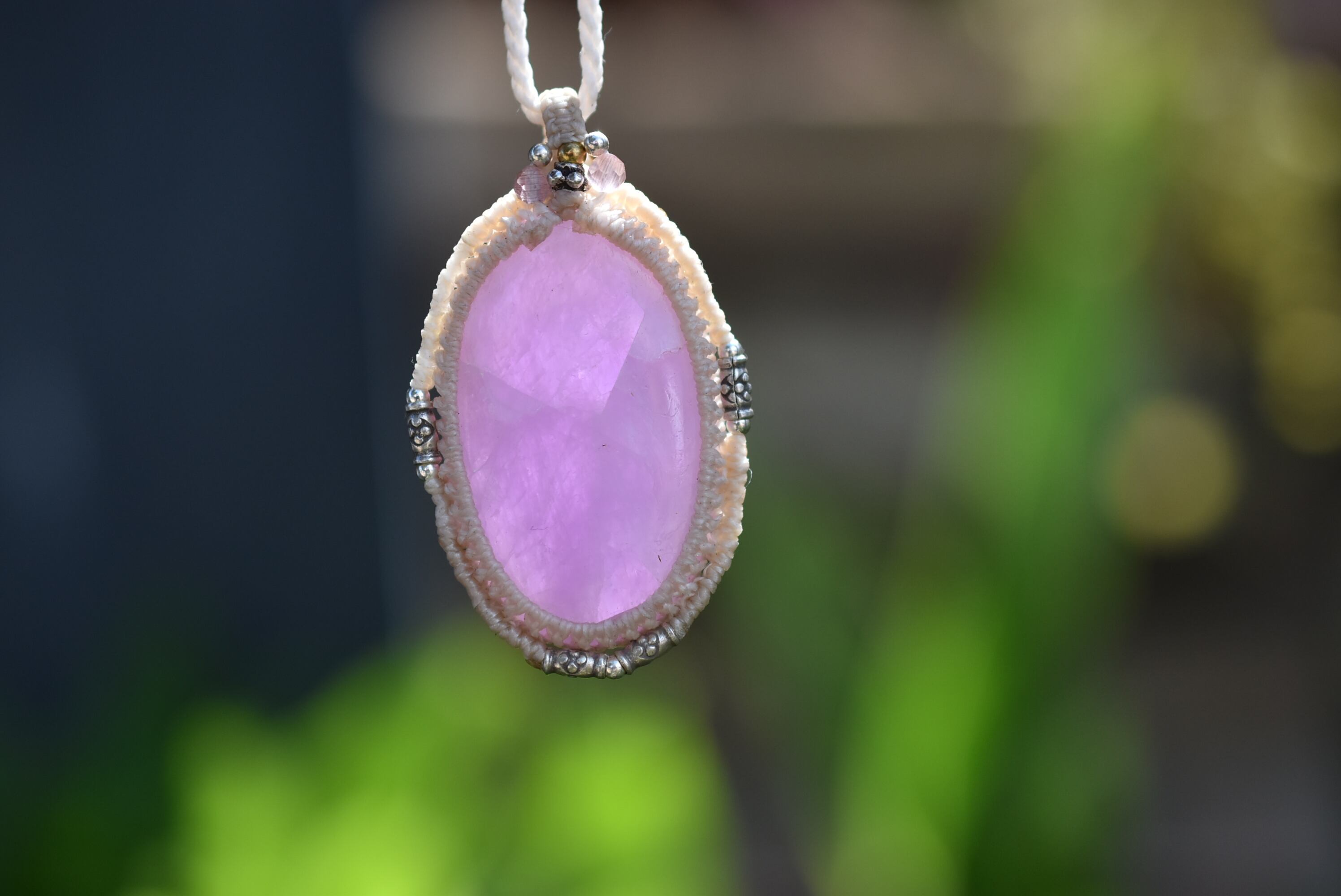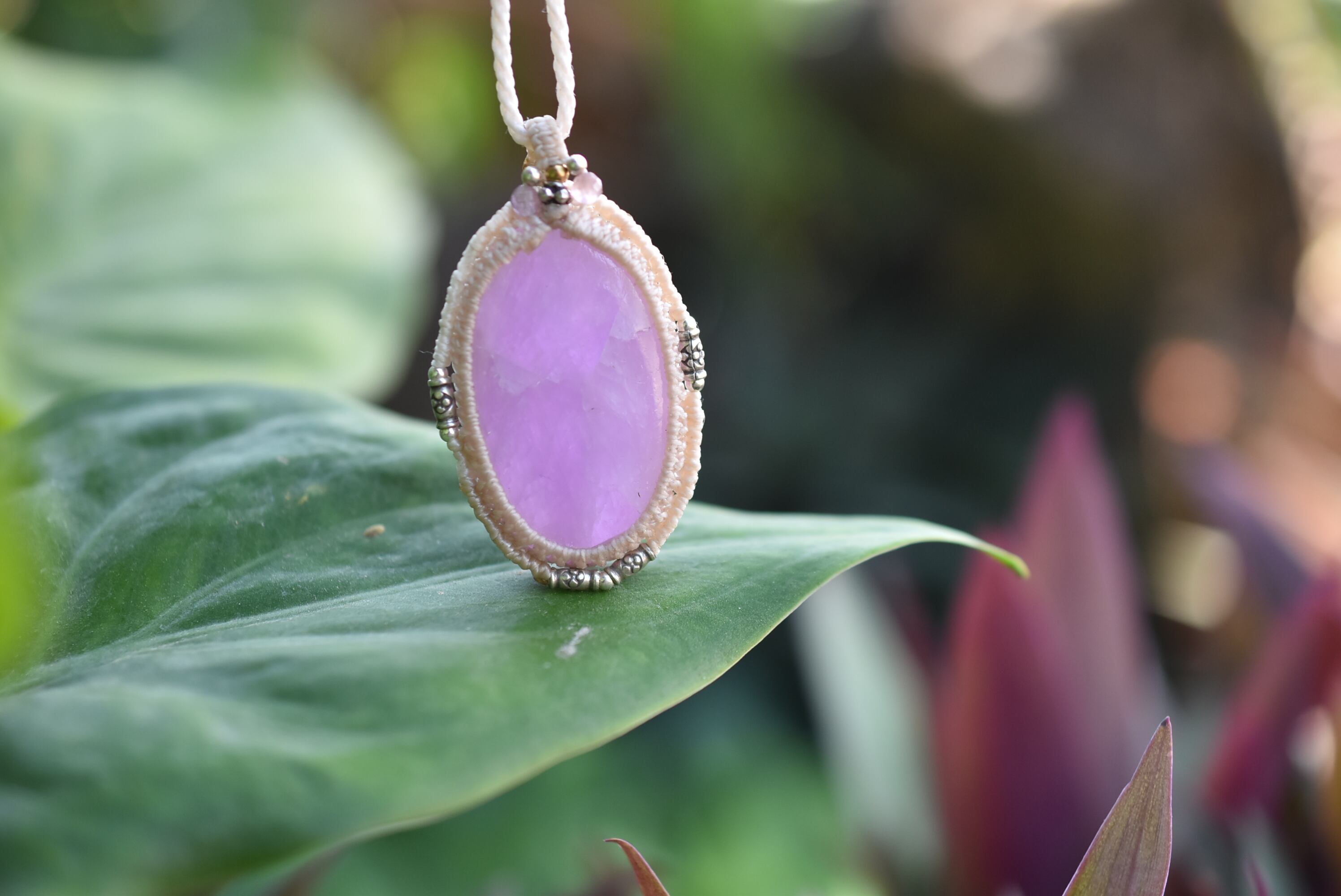 ◆このたびはナチュラルホワイト色の蝋引き糸を使用しマクラメ編み装飾を施しました。