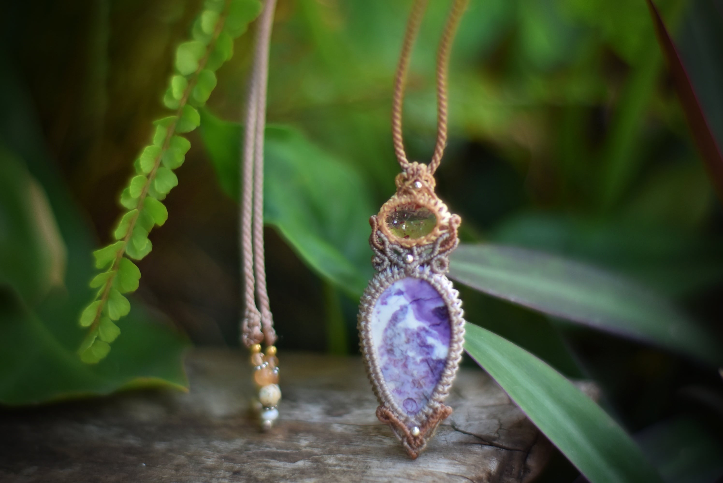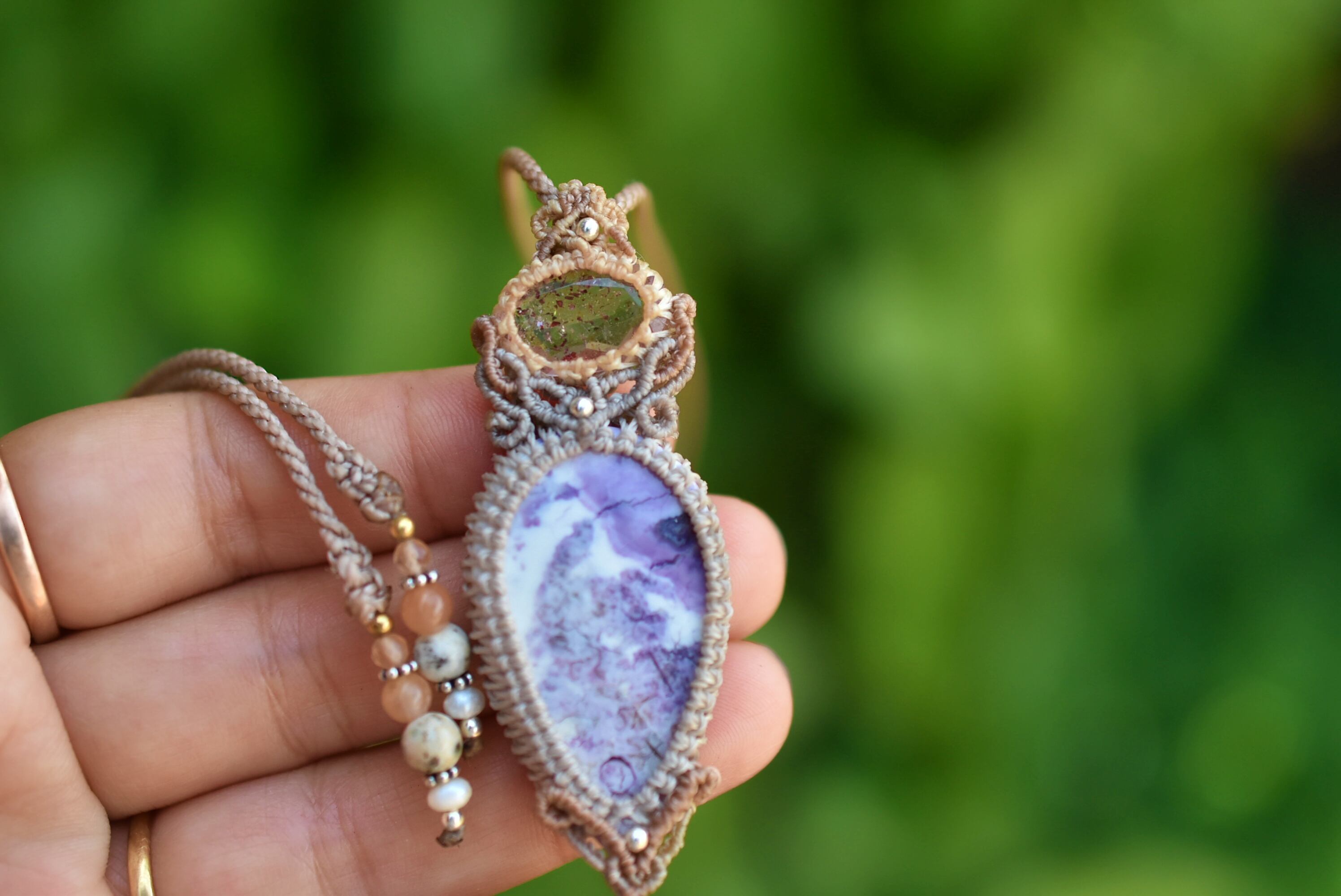 麗しの色★スーパーセブン★ティファニーストーン マクラメネックレス981