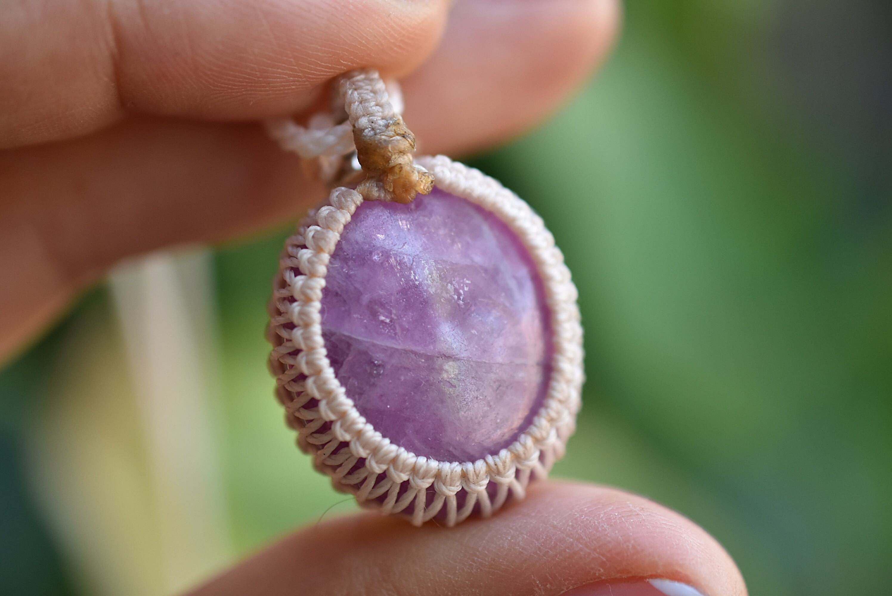 シンプルにマクラメネックレスに仕上げています。